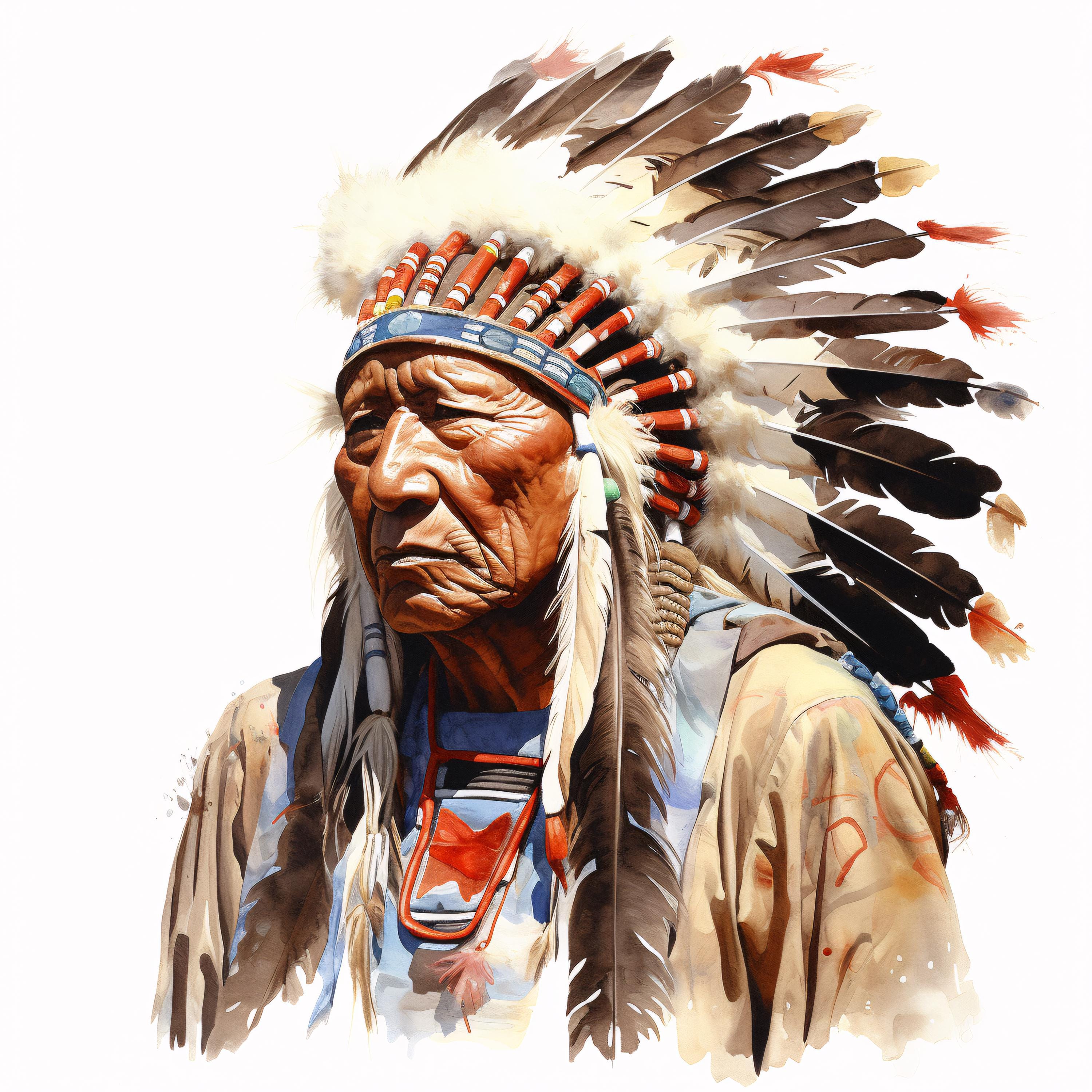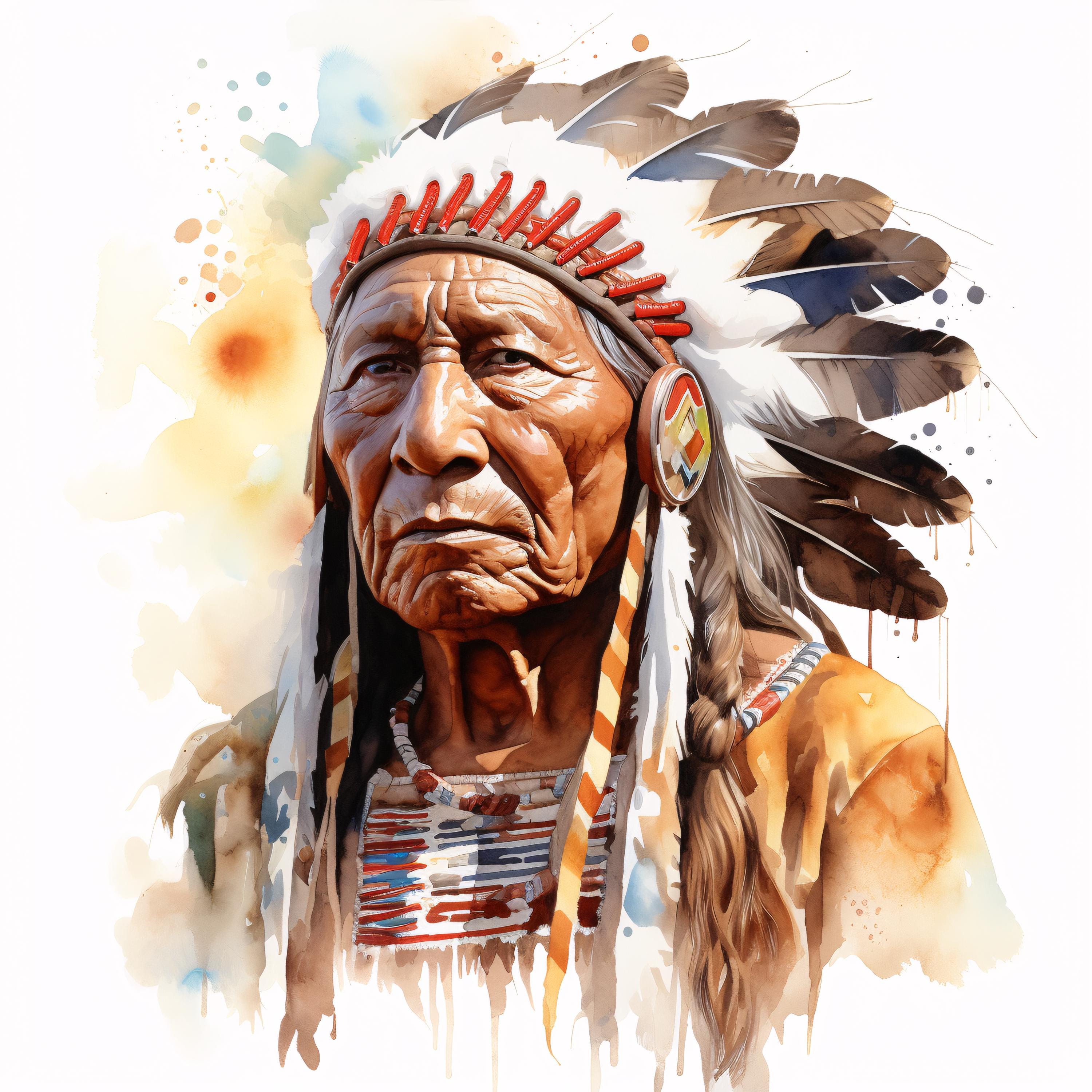 Native American Chief Clipart, Tribal Warrior Images, 10 Watercolor Clip Art, Printable JPGs, Instant Download, Commercial Use, Paper craft