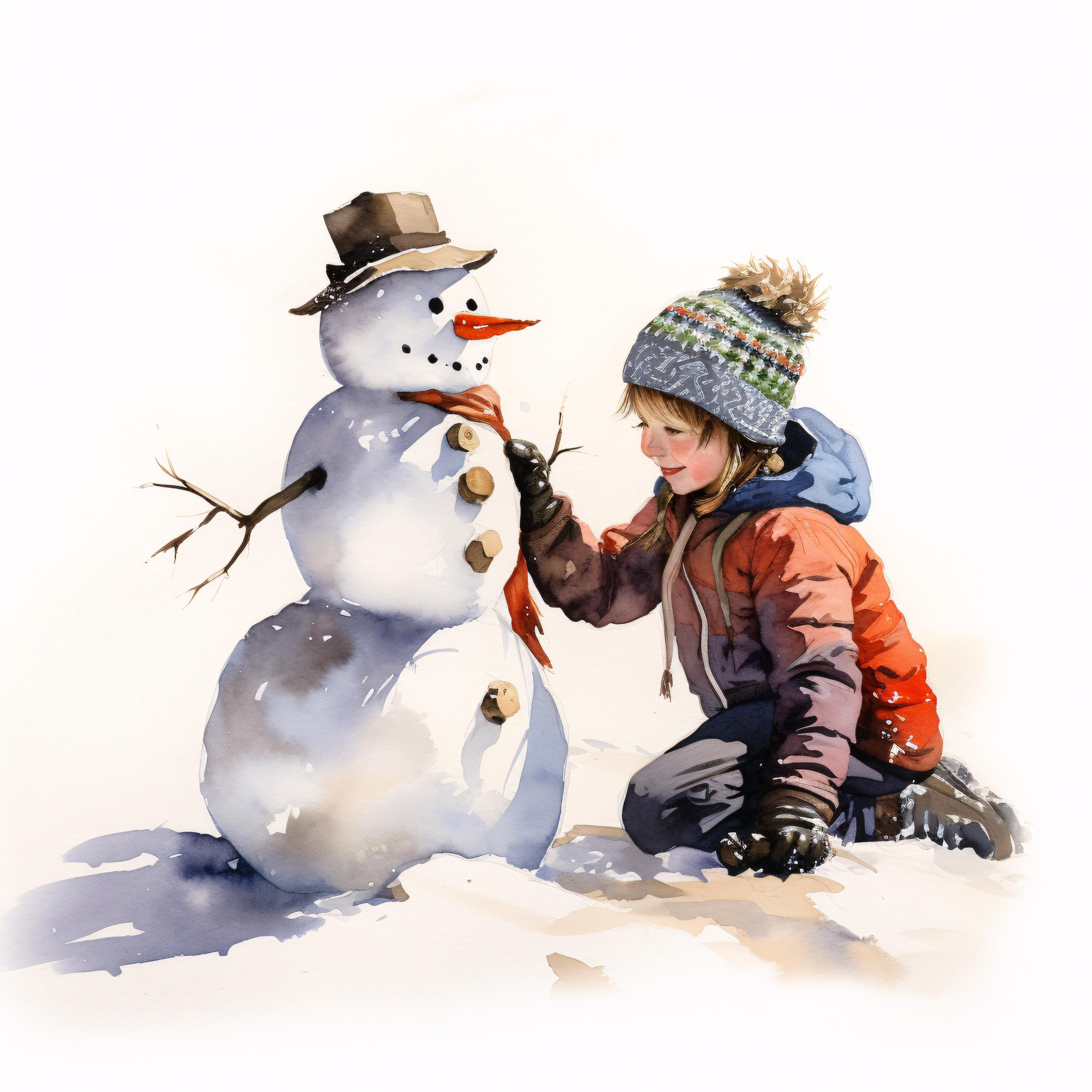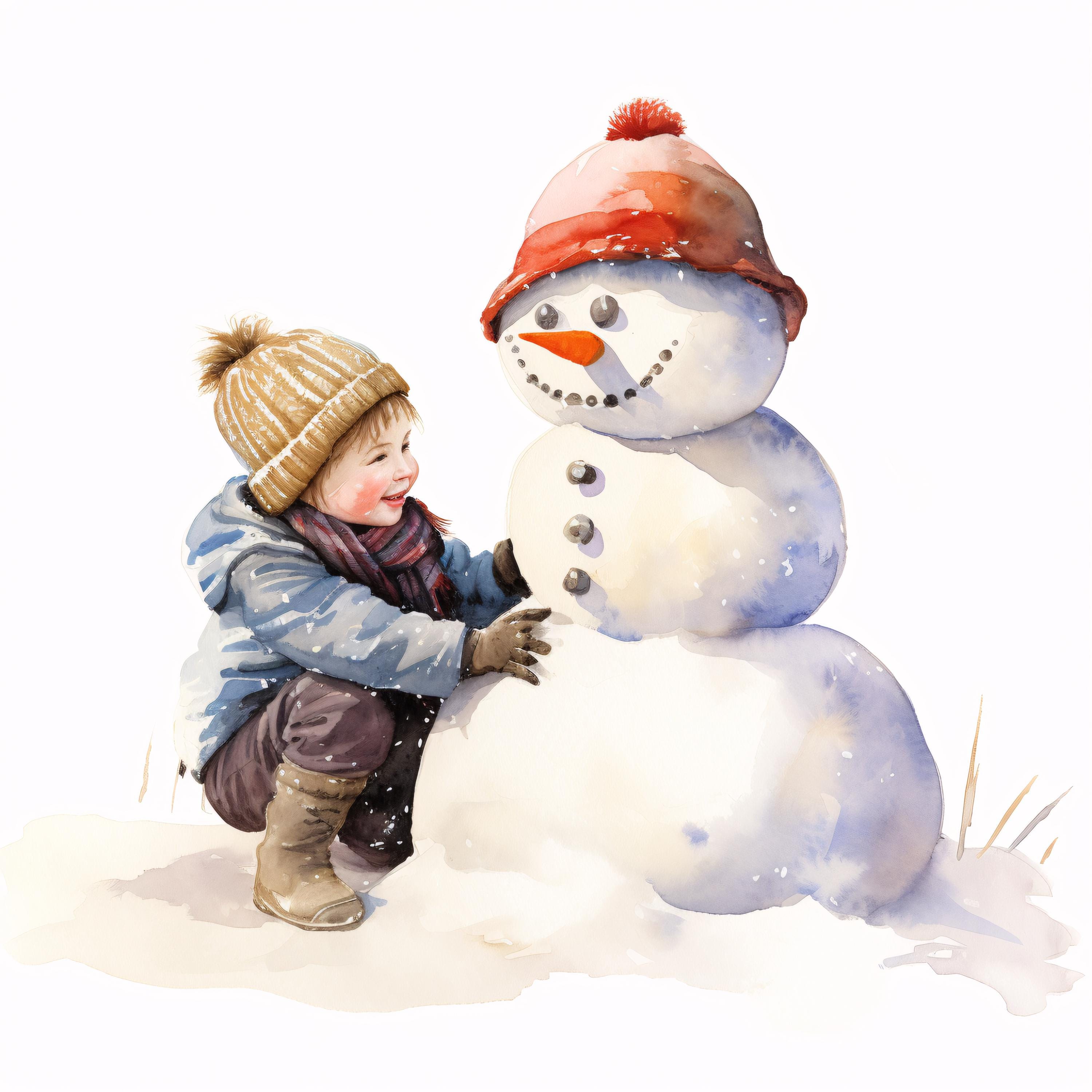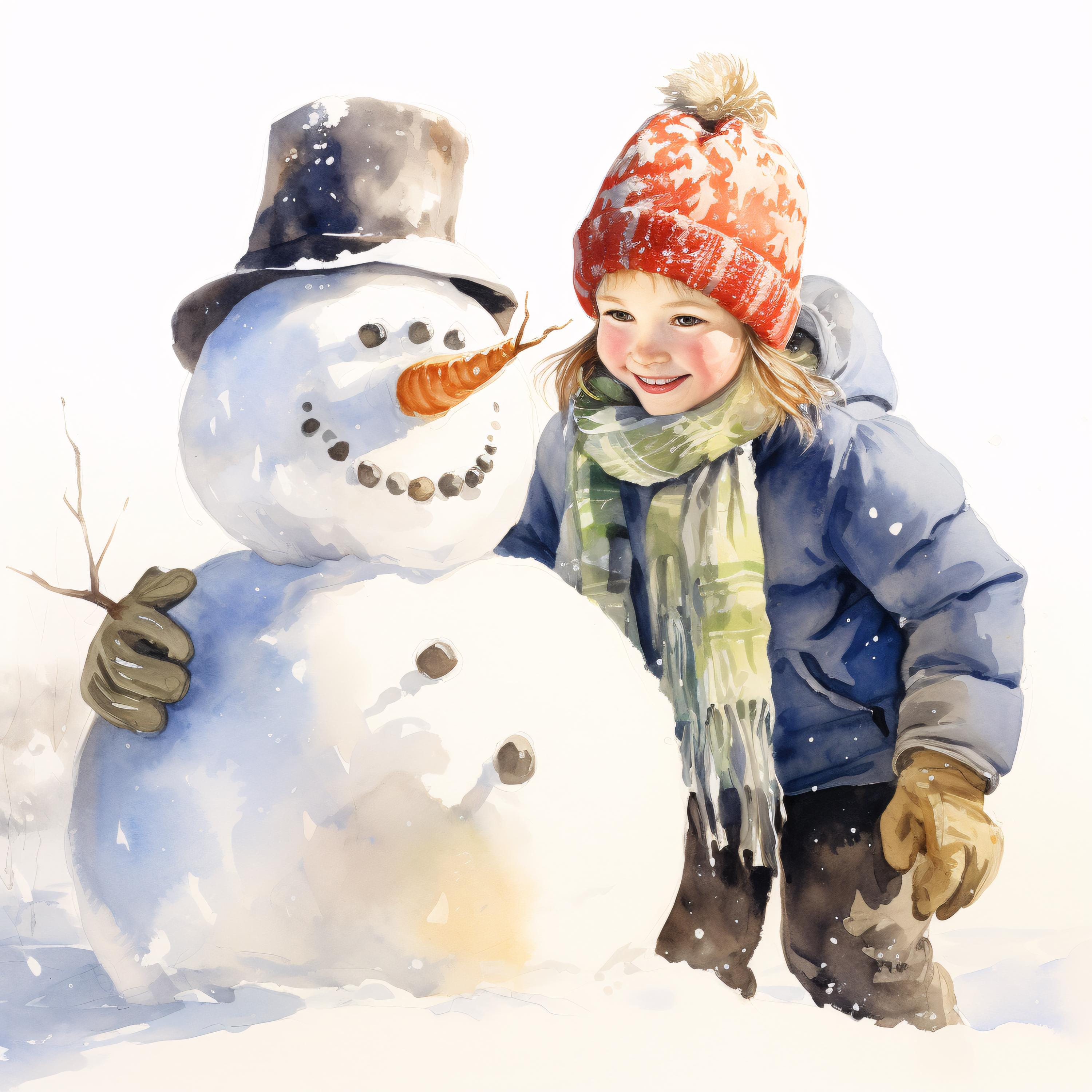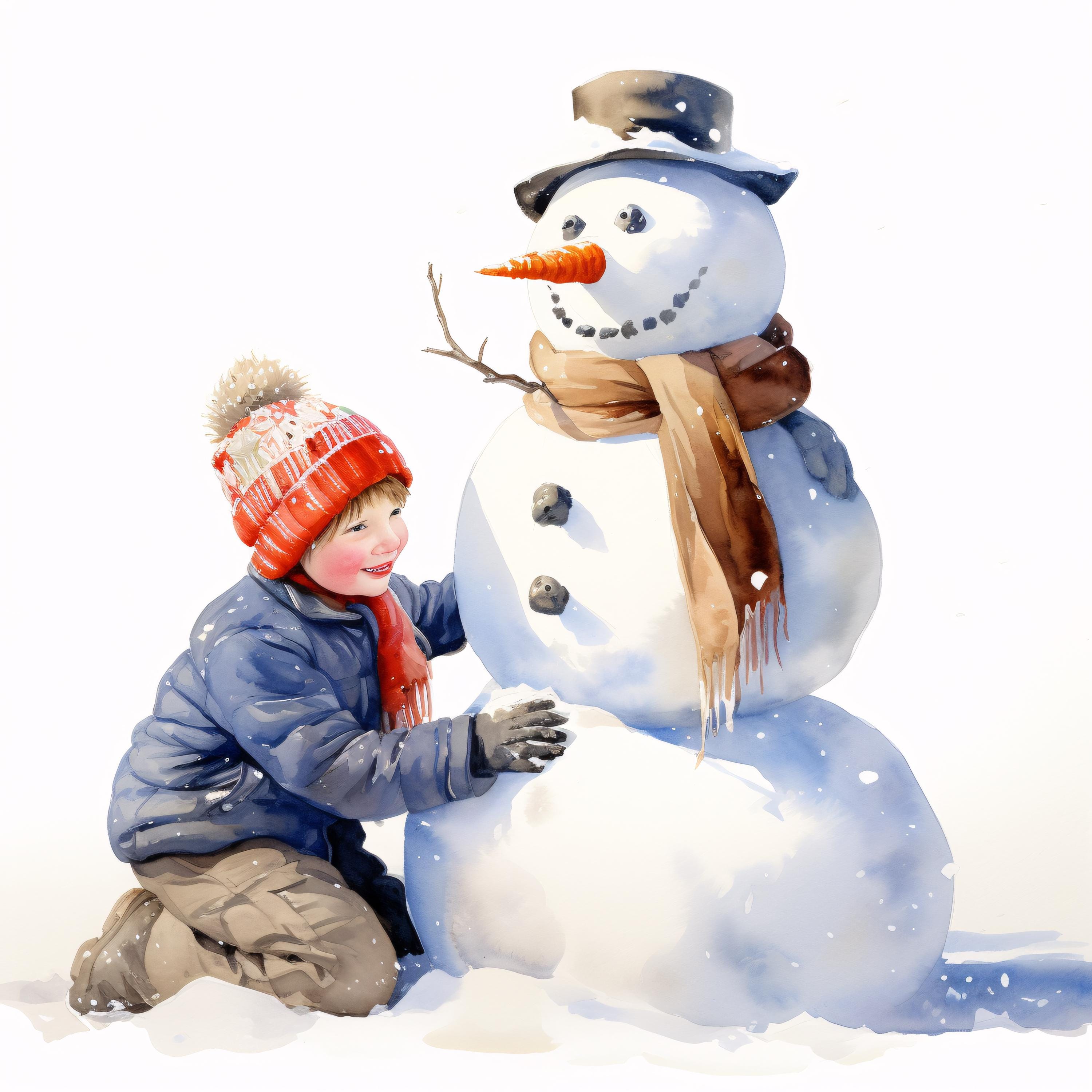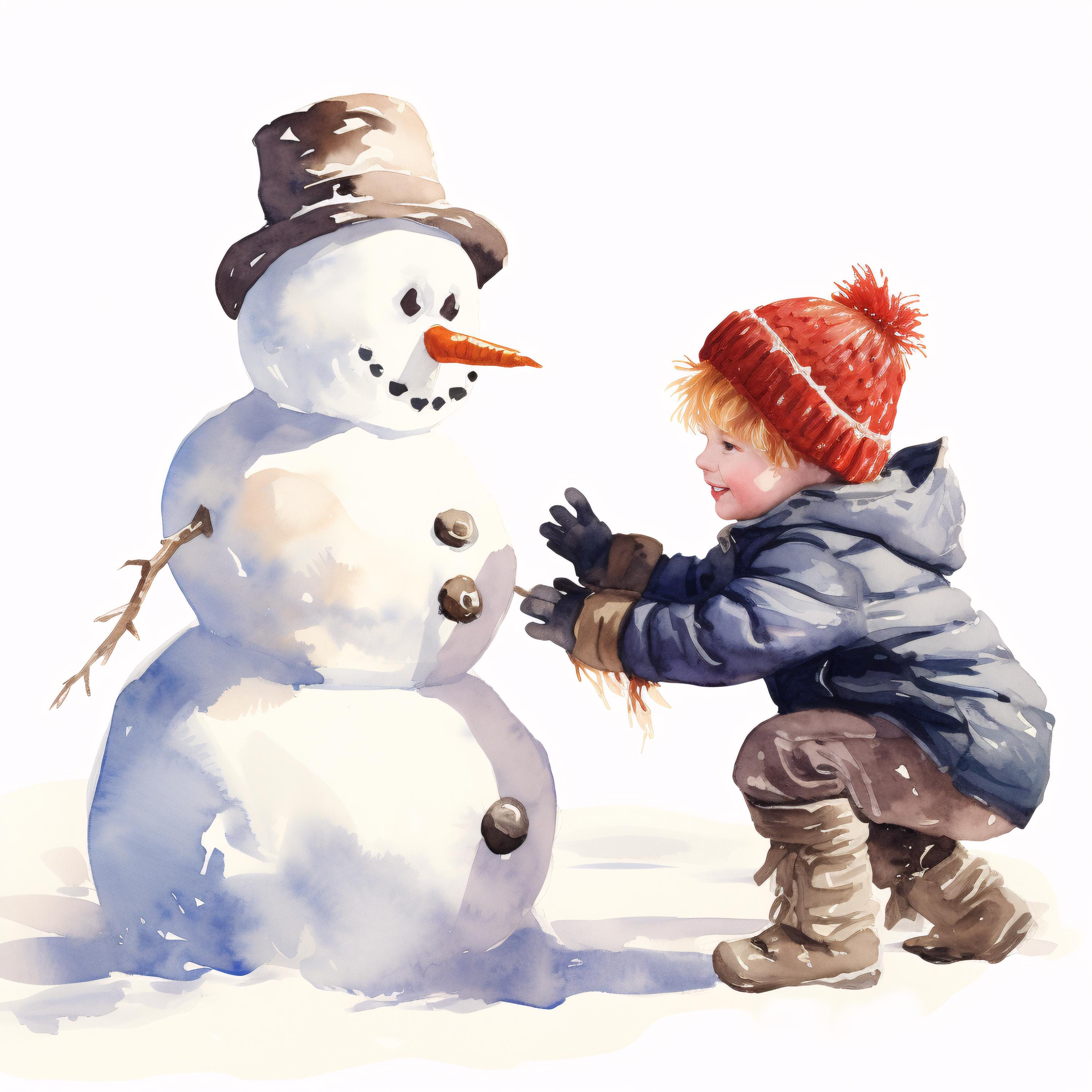Boy and Snowman Clipart, Winter Fun Images, 10 Watercolor Clip Art, Printable JPGs, Instant Download, Commercial Use, Paper craft