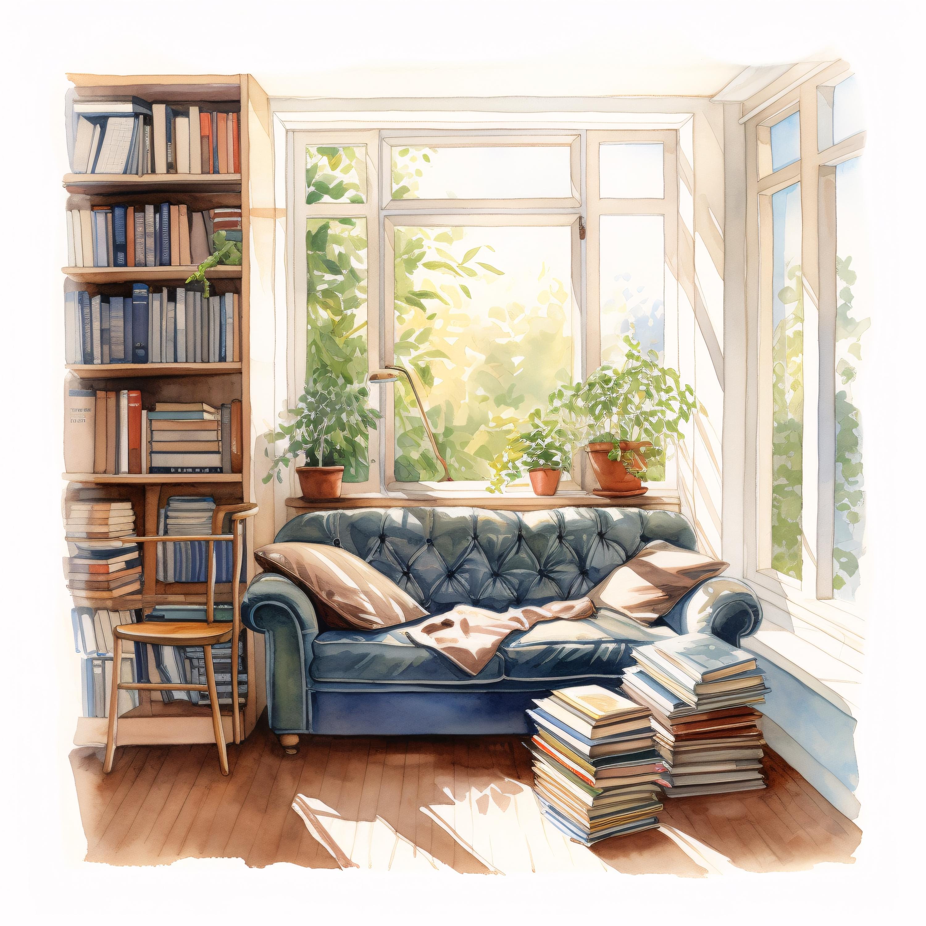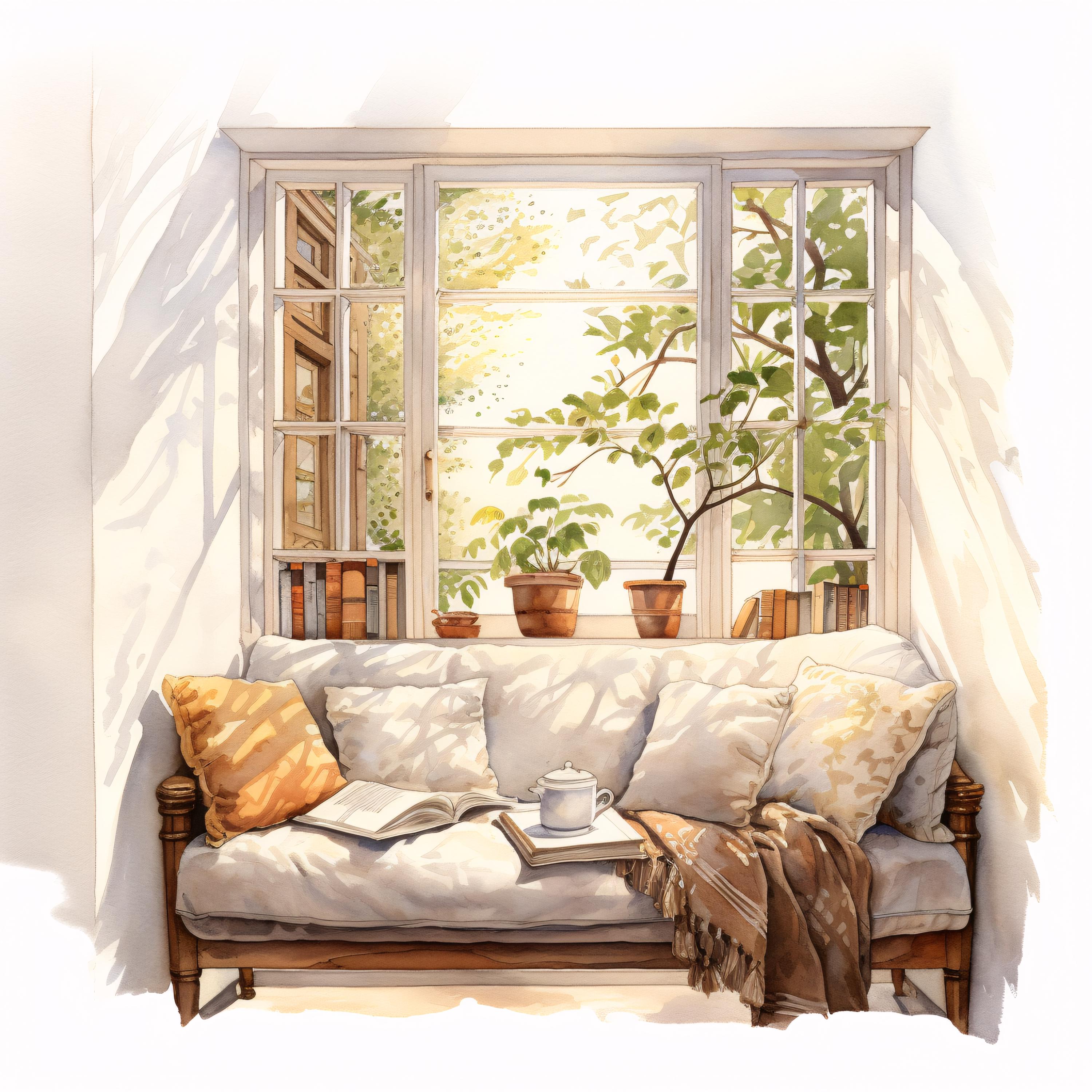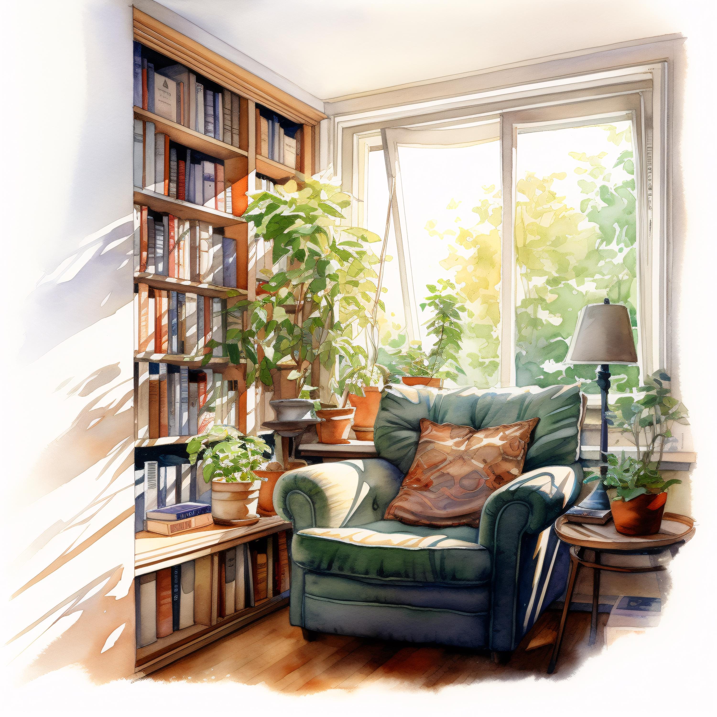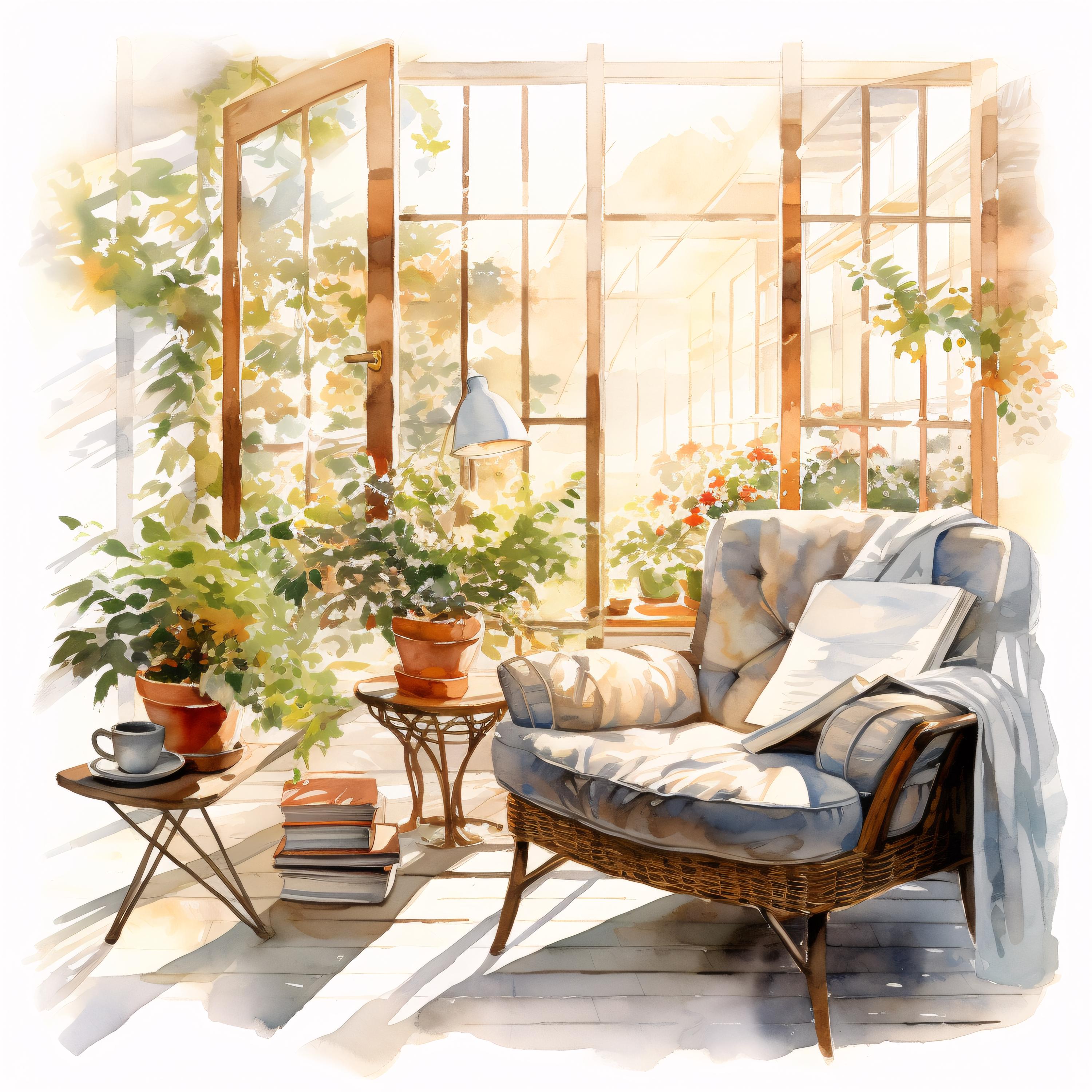 Cozy Book Nook Clipart, Reading Corner Images, 10 Watercolor Clip Art, Printable JPGs, Instant Download, Commercial Use, Paper craft