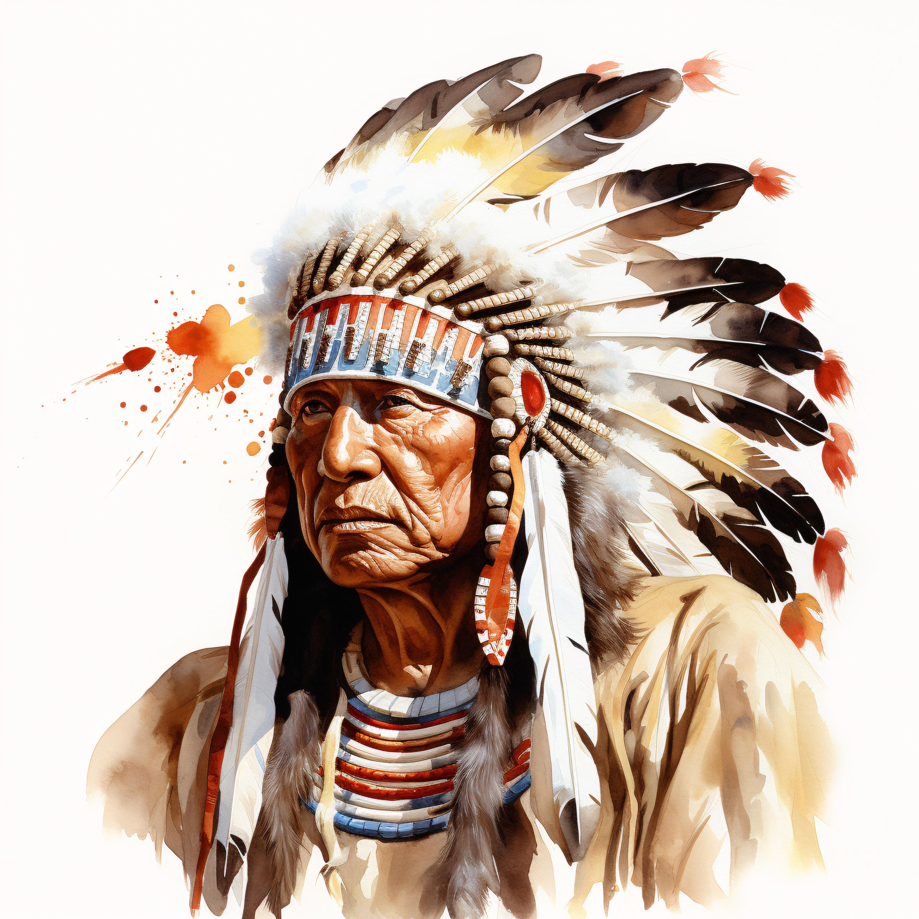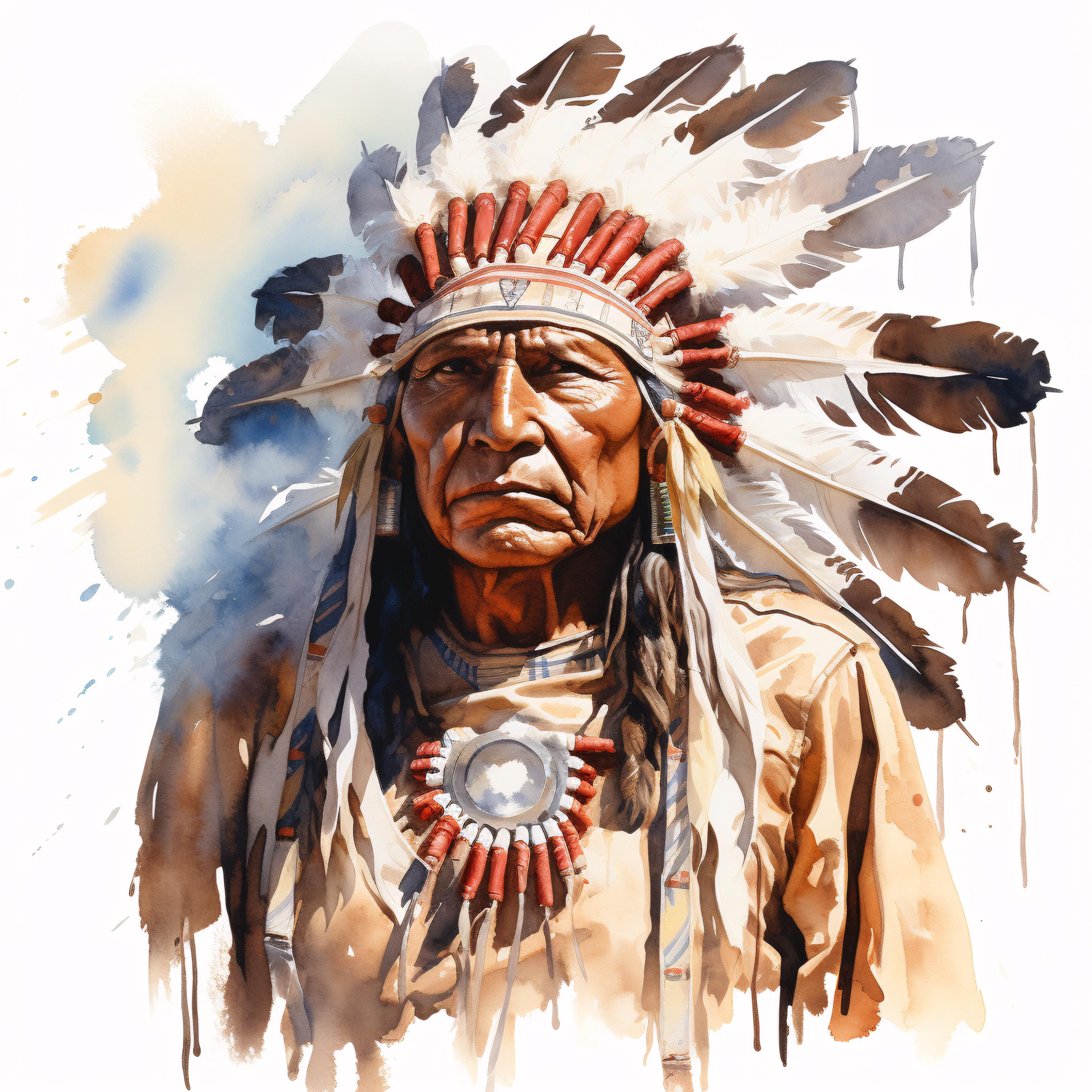 Native American Warrior Clipart, Tribal Chief Images, 10 Watercolor Clip Art, Printable JPGs, Instant Download, Commercial Use, Paper craft