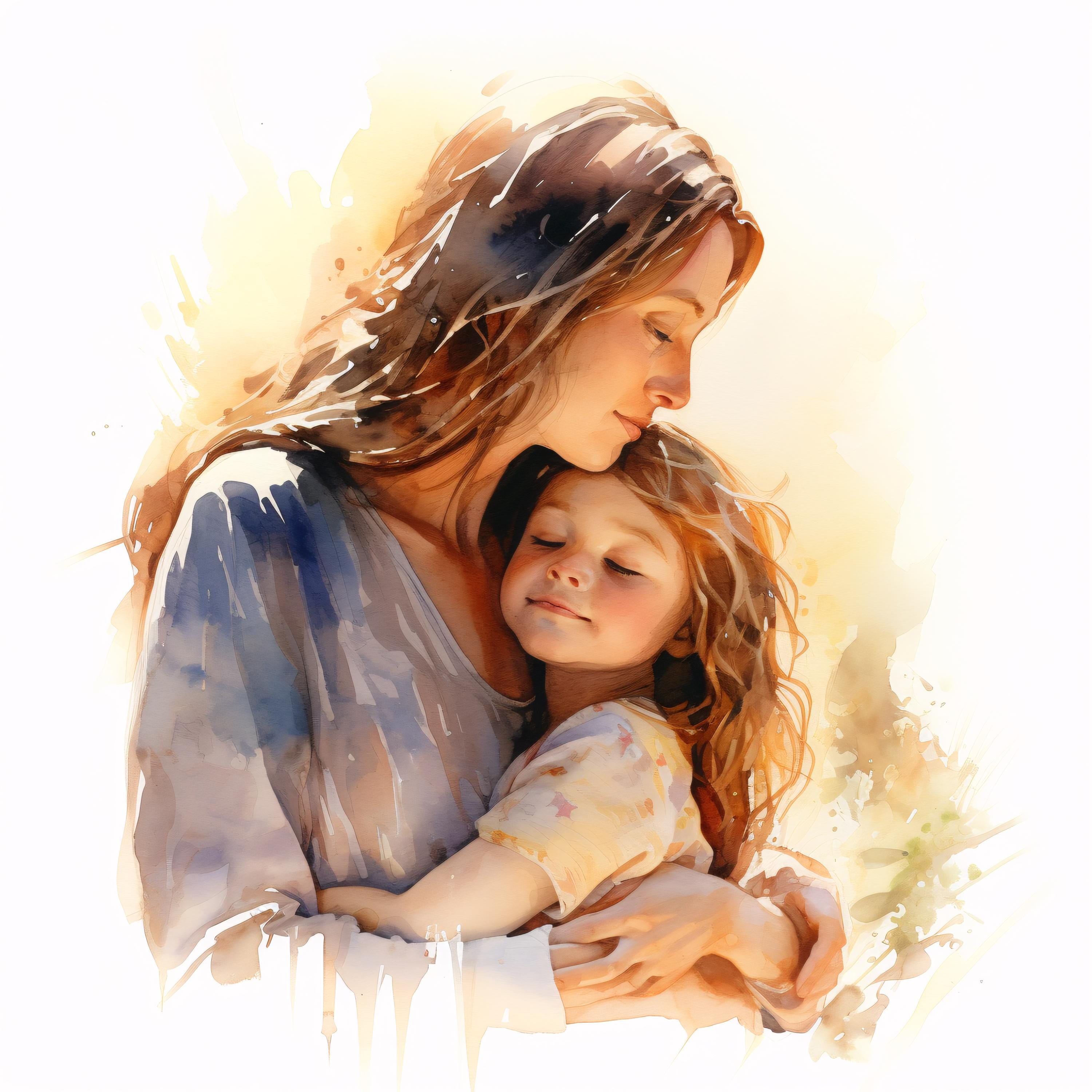 Mother and Child Clipart, Family Love Images, 10 Watercolor Clip Art, Printable JPGs, Instant Download, Commercial Use, Paper craft