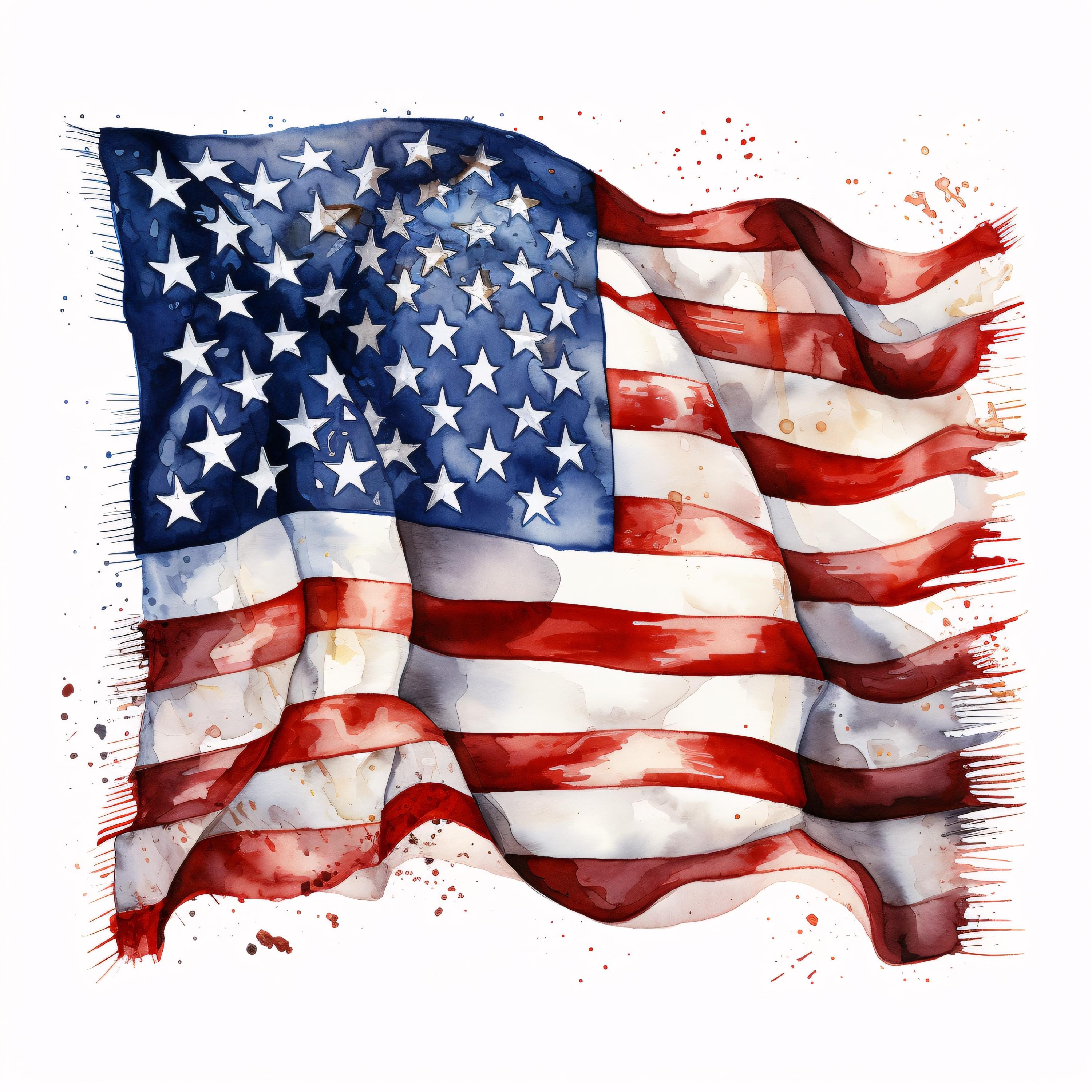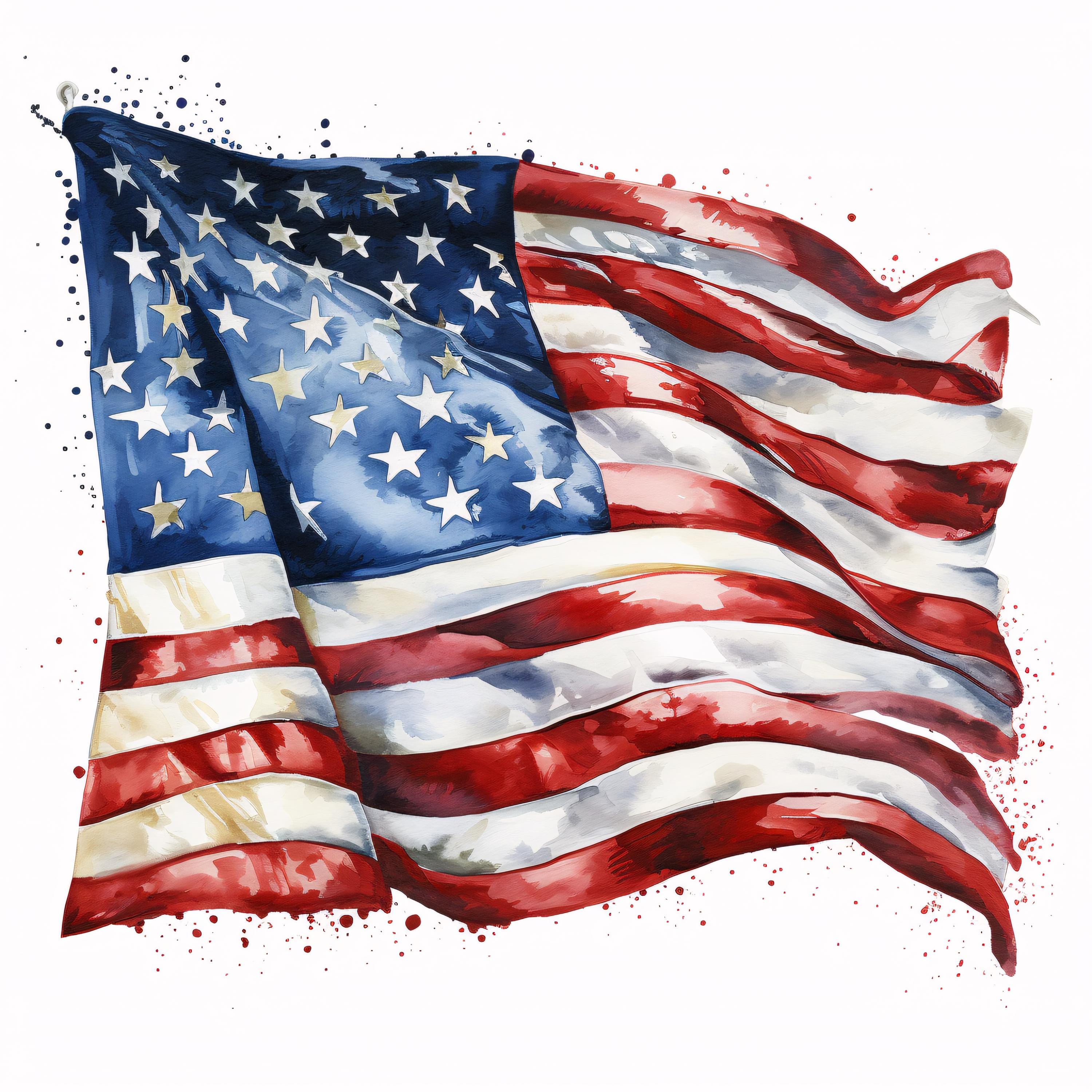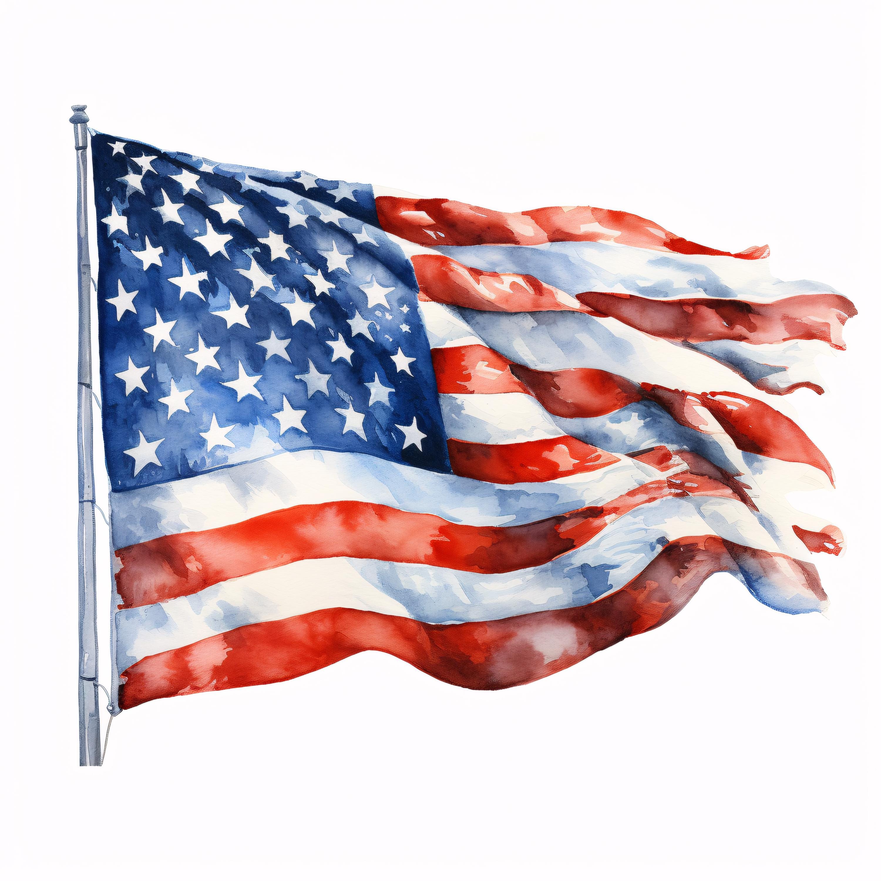 USA Flag Clipart, American Pride Images, 10 Watercolor Clip Art, Printable JPGs, Instant Download, Commercial Use, Paper craft