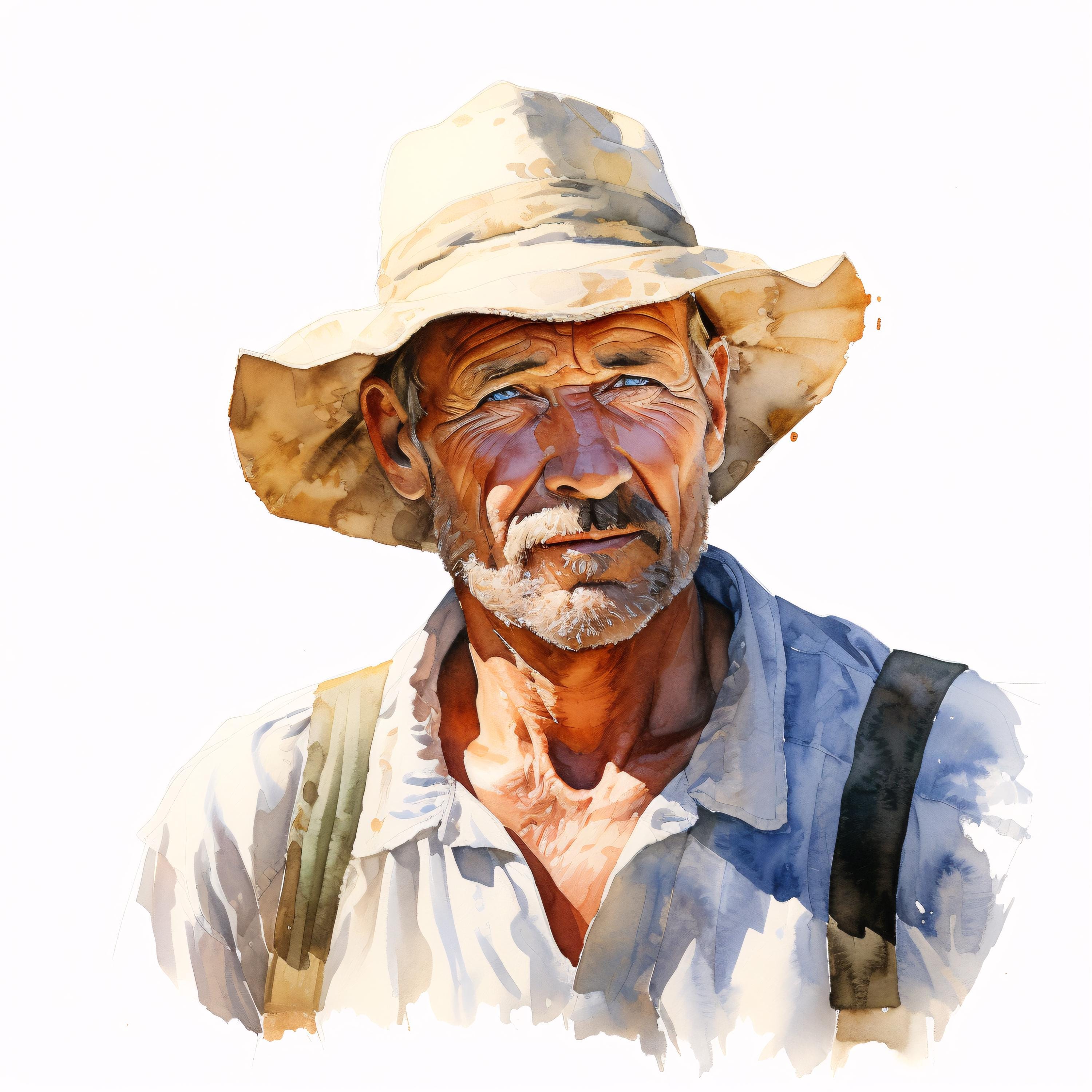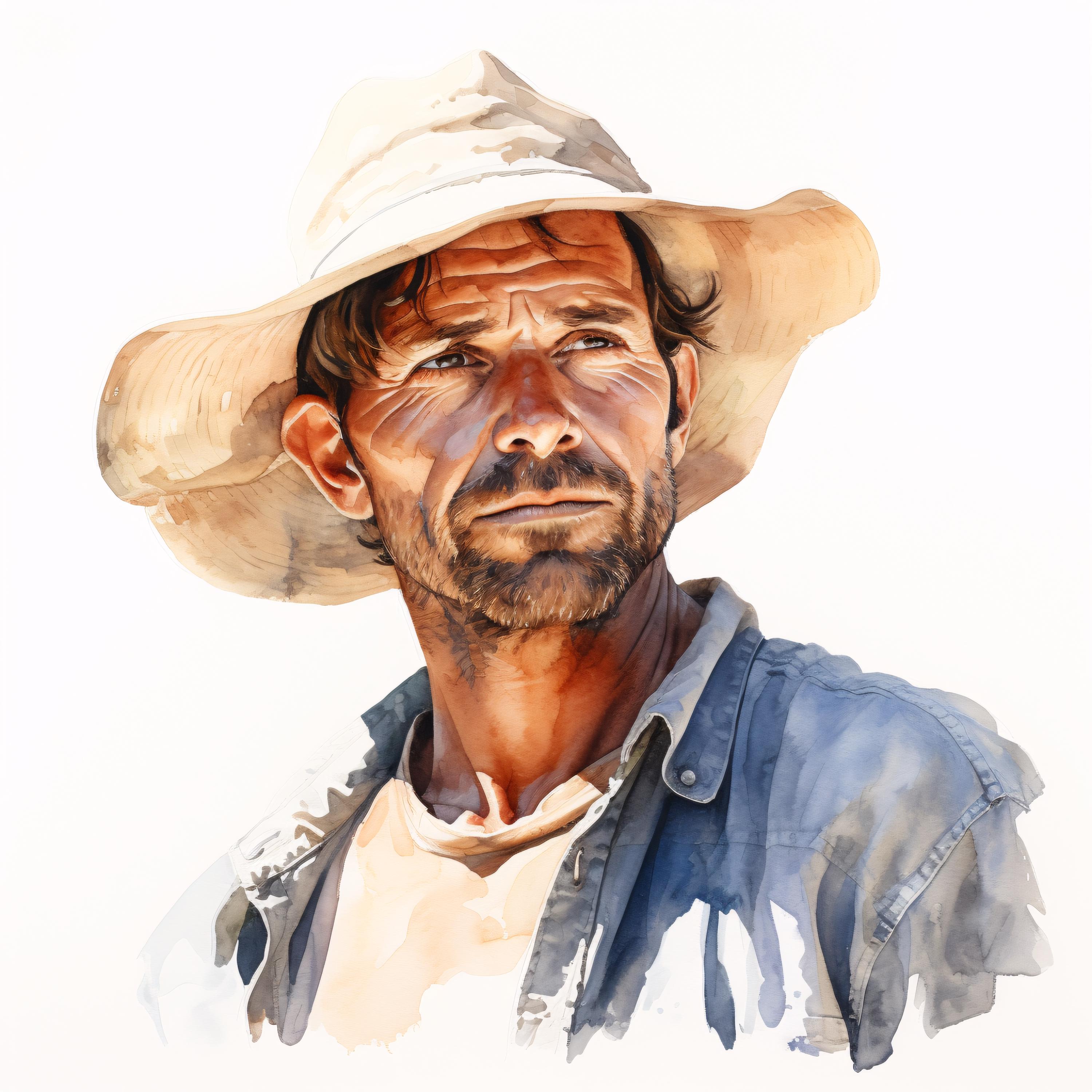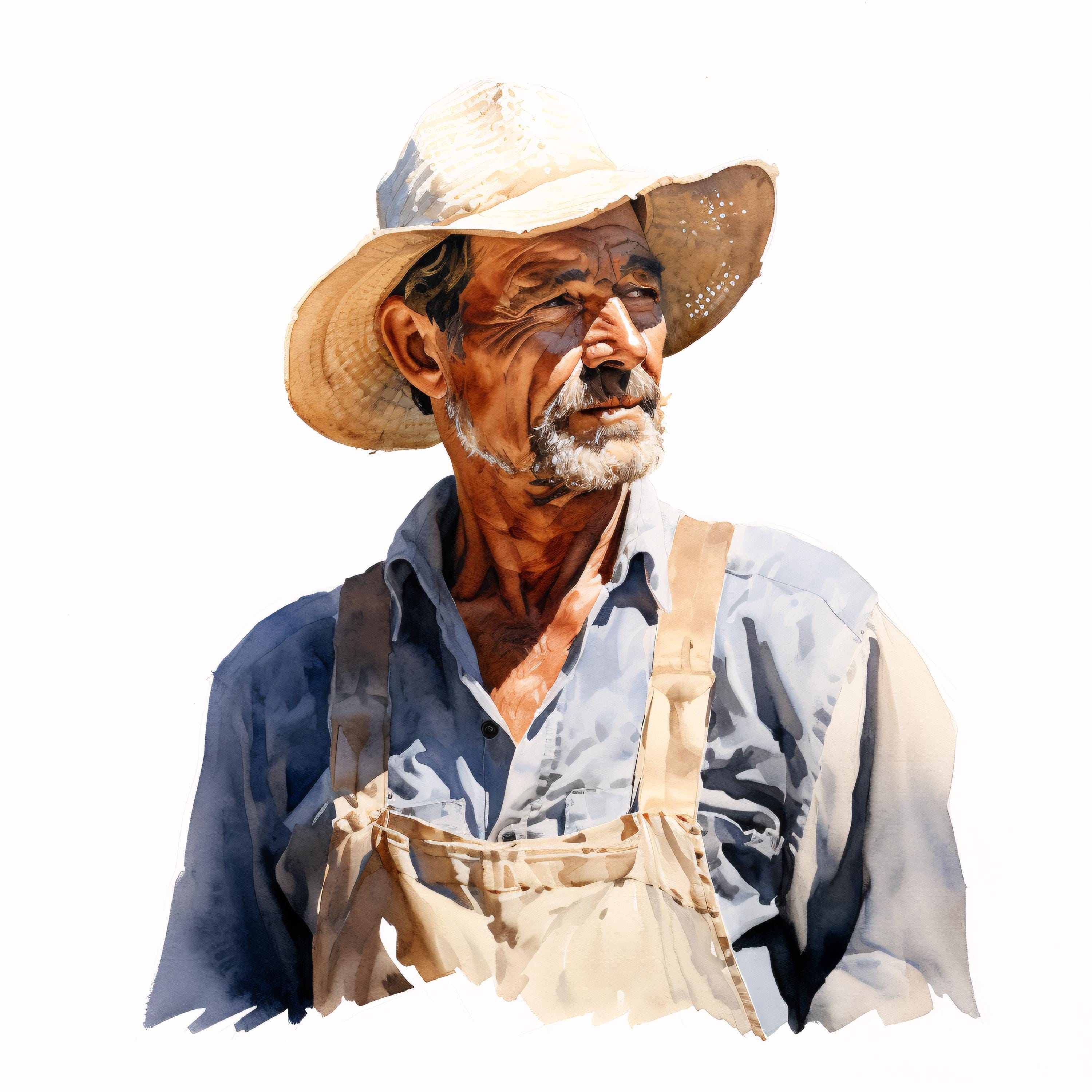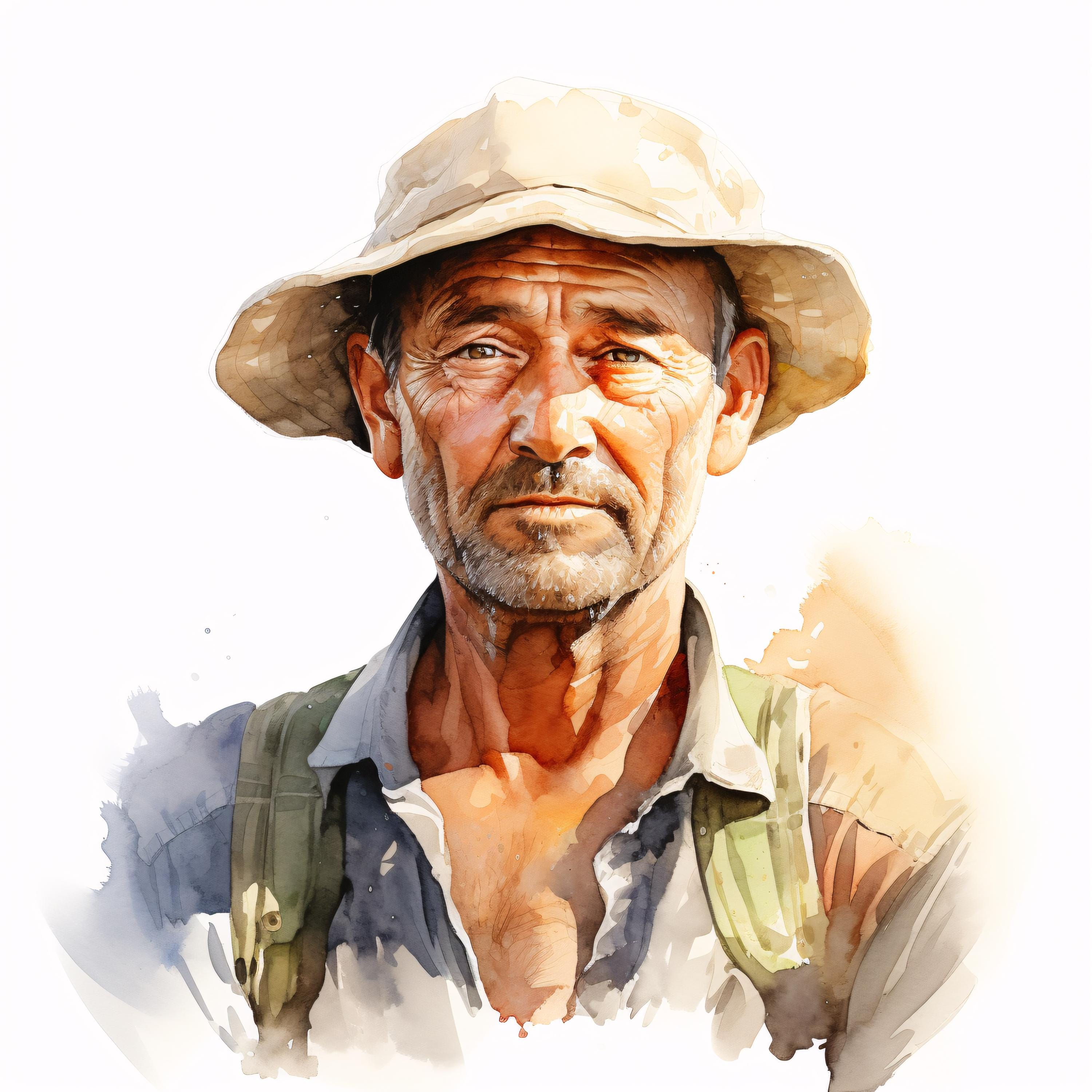 Farmer Portrait Clipart, Rustic Man Images, 10 Watercolor Clip Art, Printable JPGs, Instant Download, Commercial Use, Paper craft