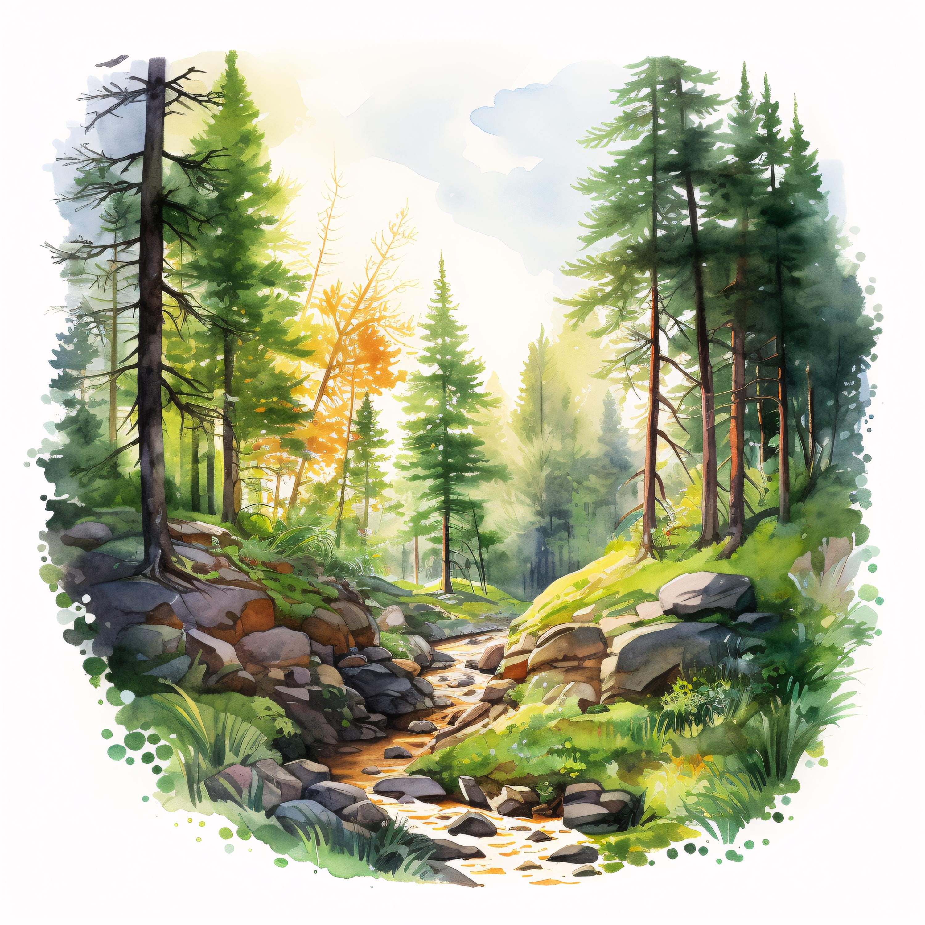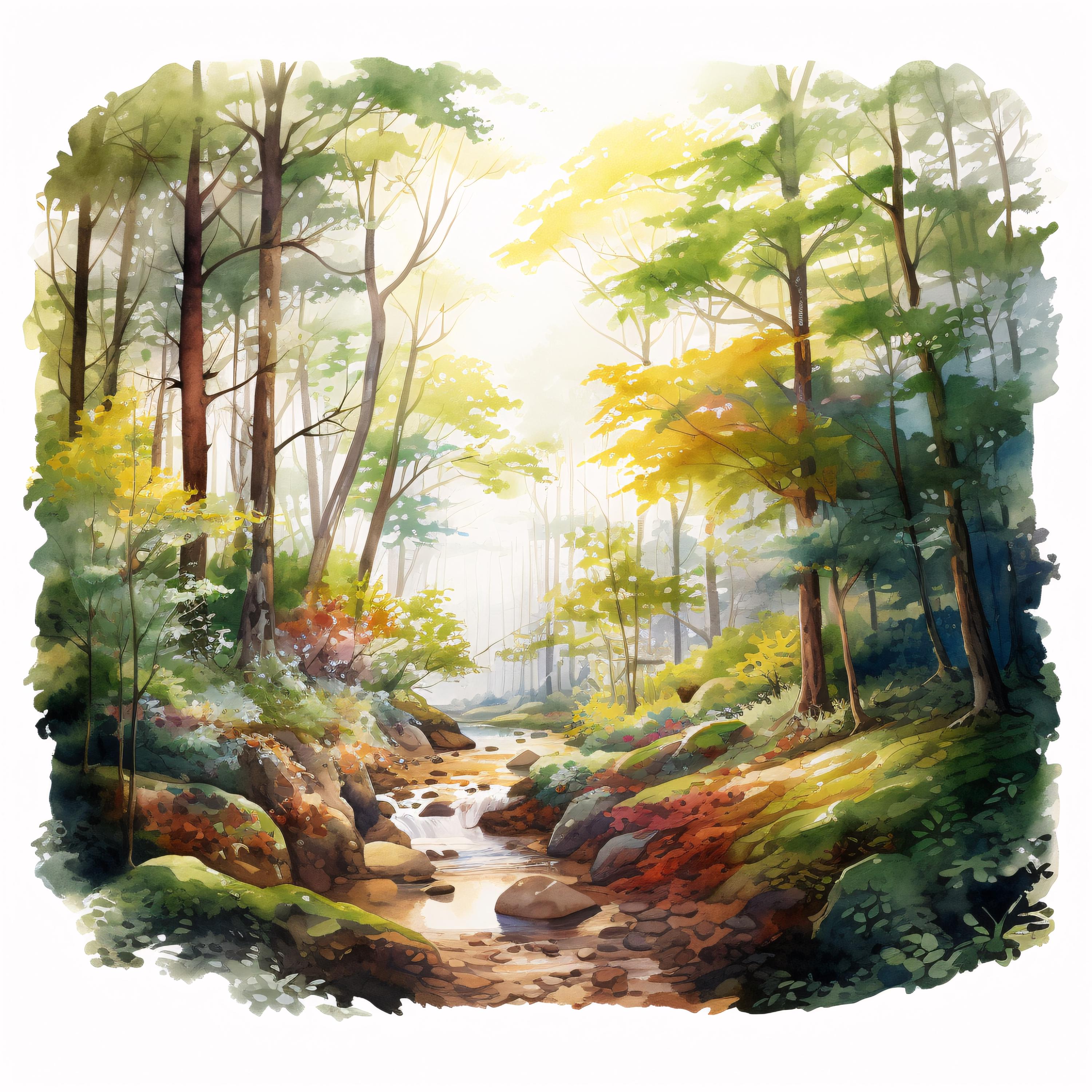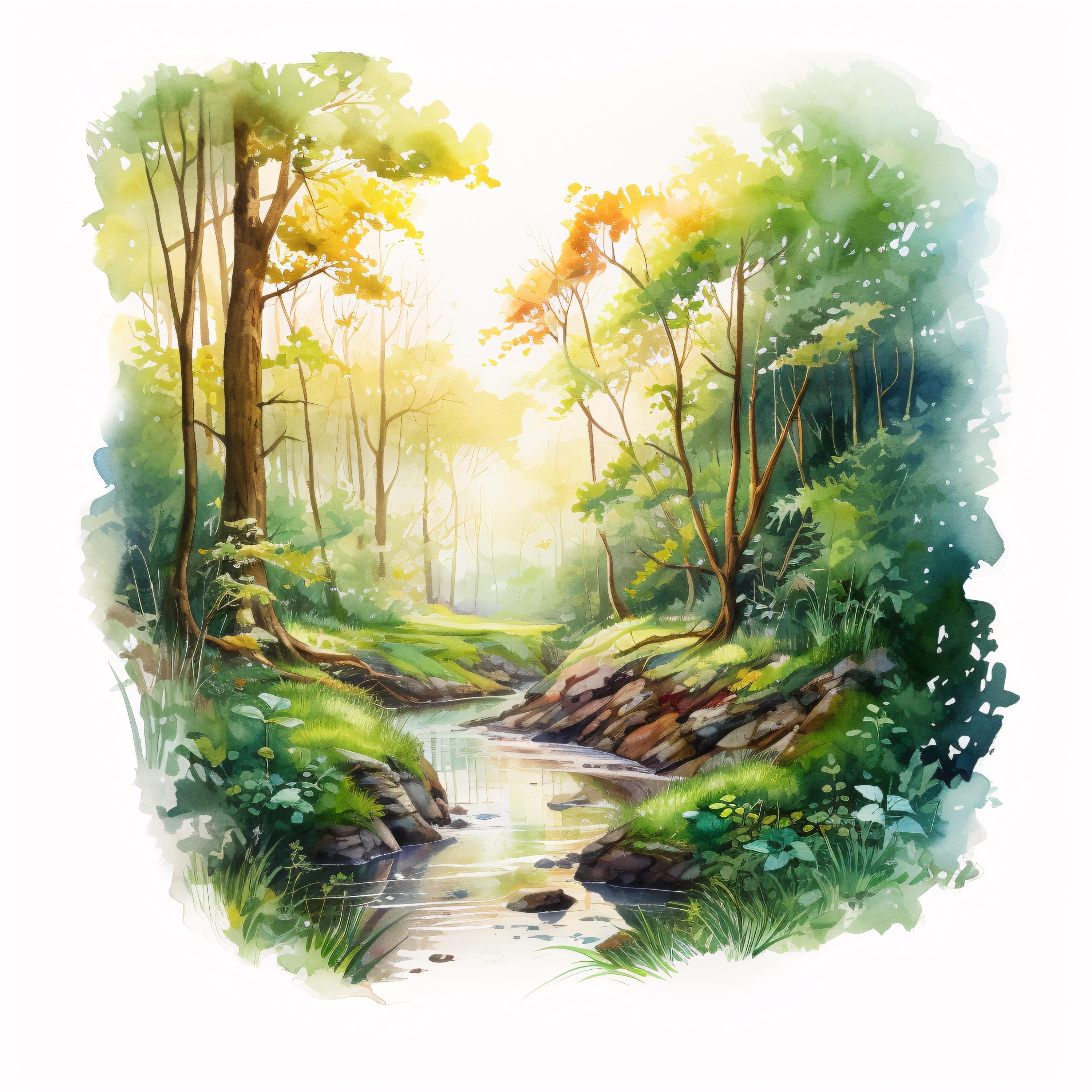 Forest Landscape Clipart, Enchanted Woods Images, 10 Watercolor Clip Art, Printable JPGs, Instant Download, Commercial Use, Paper craft