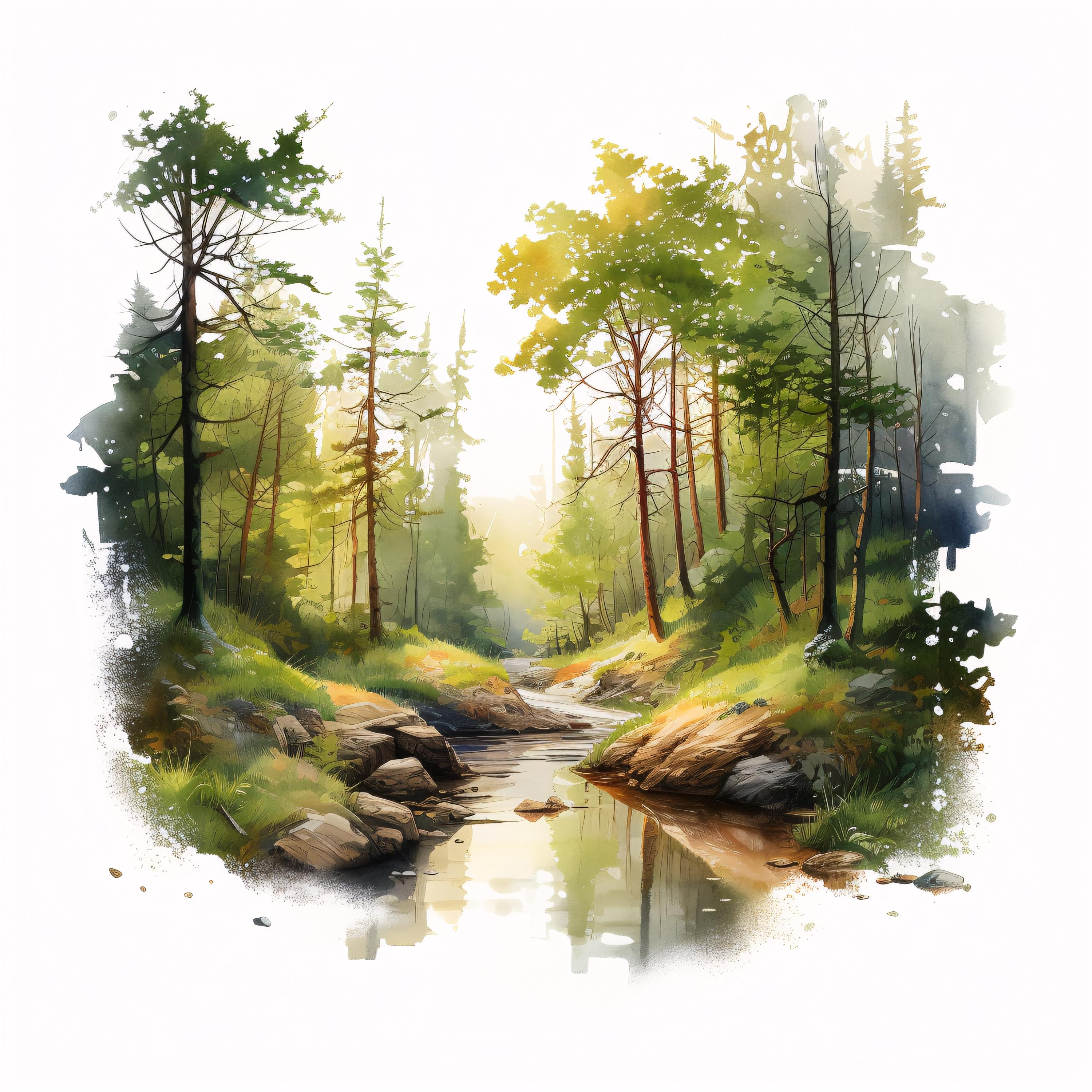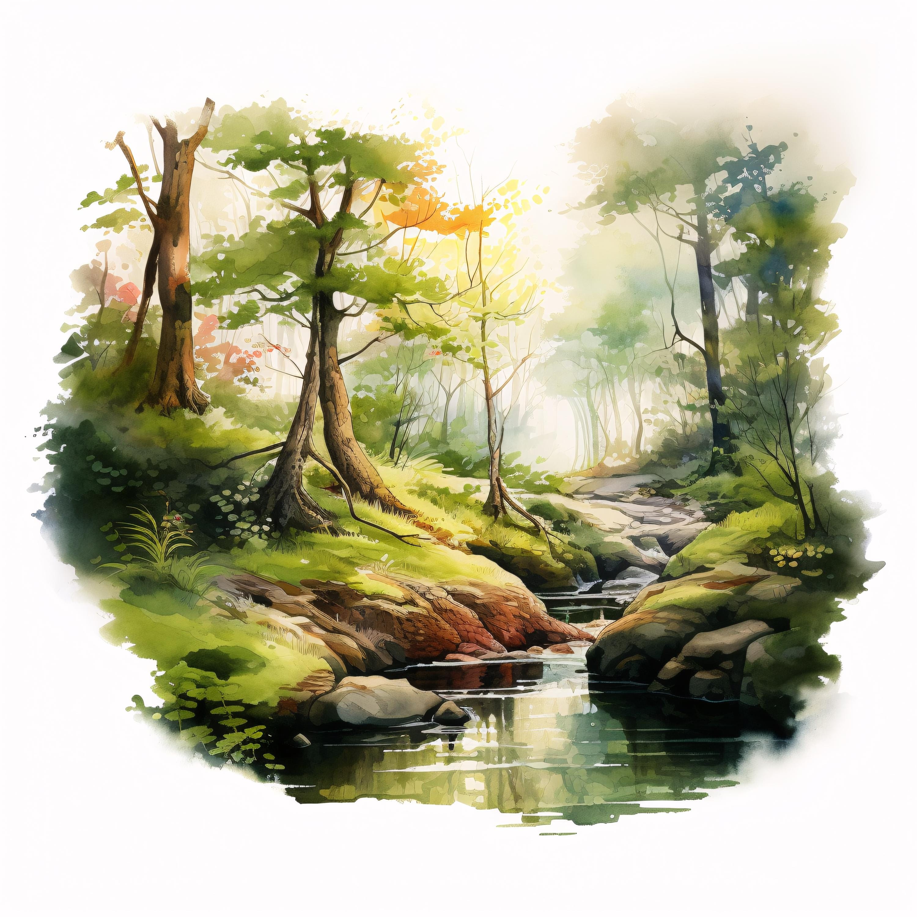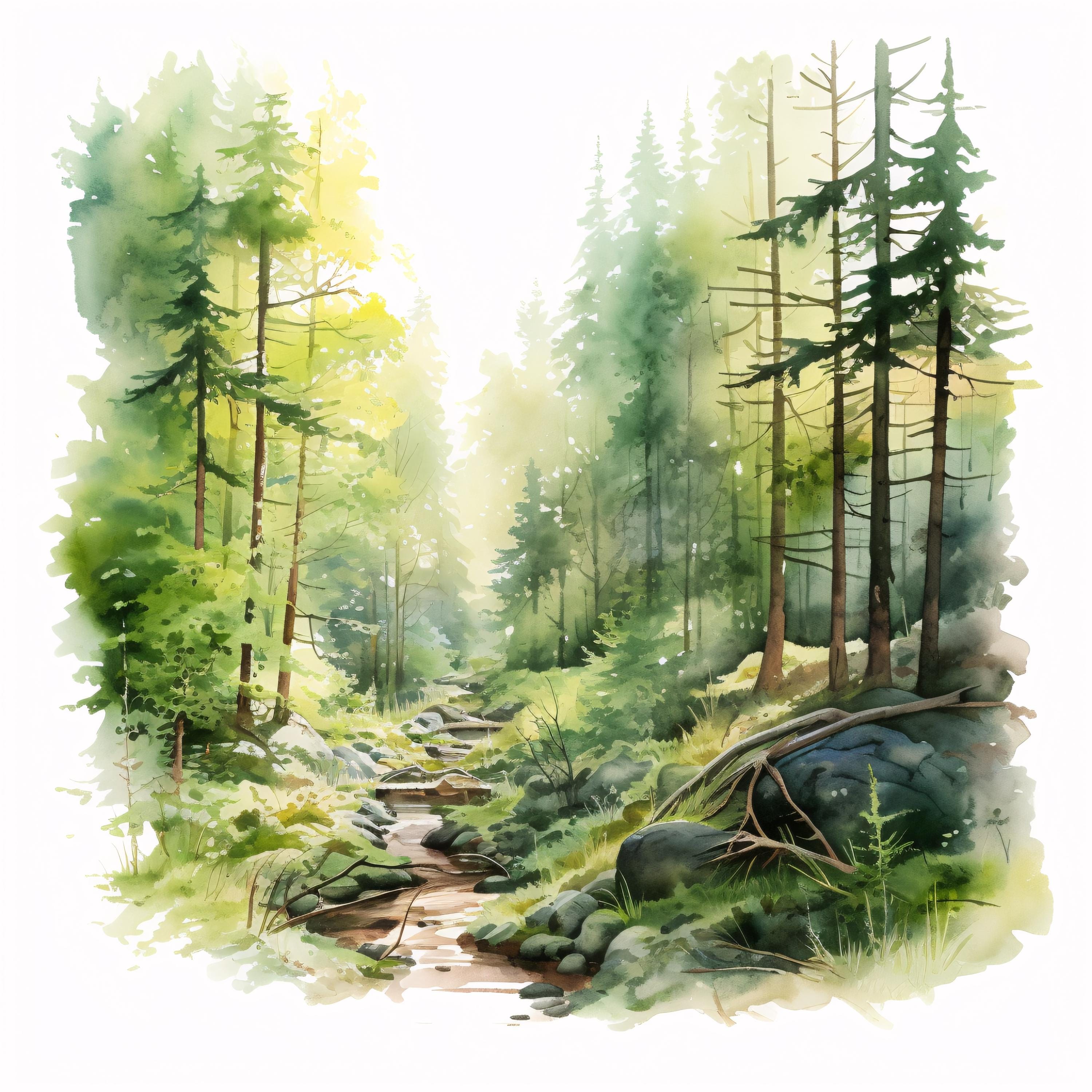 Forest Landscape Clipart, Enchanted Woods Images, 10 Watercolor Clip Art, Printable JPGs, Instant Download, Commercial Use, Paper craft