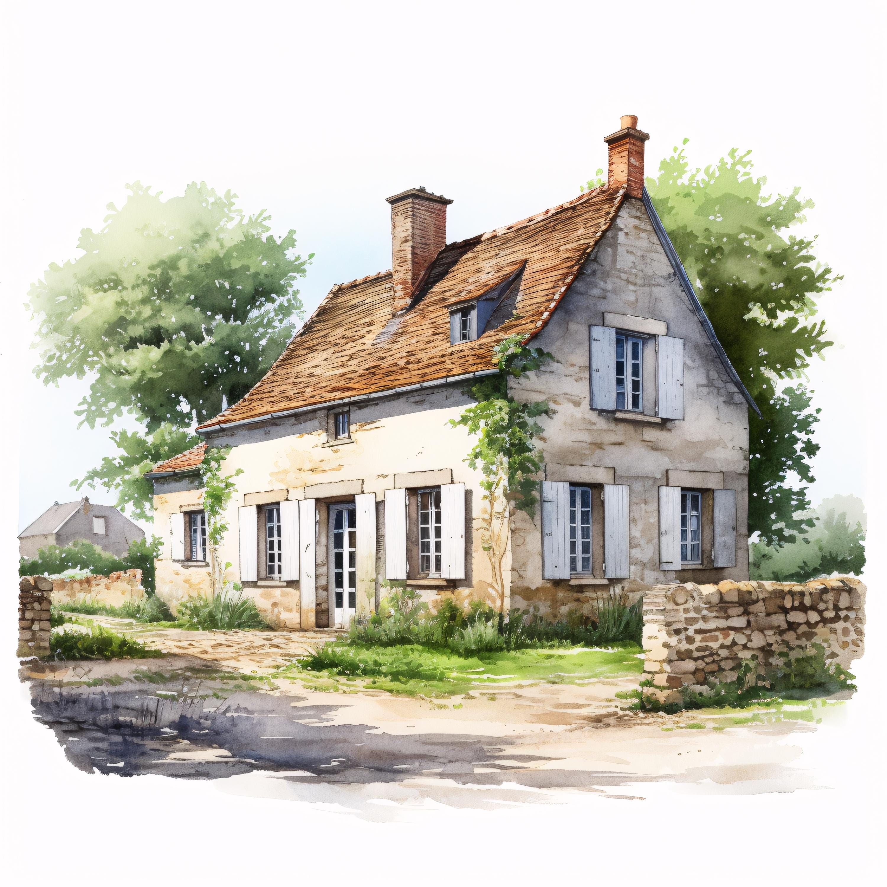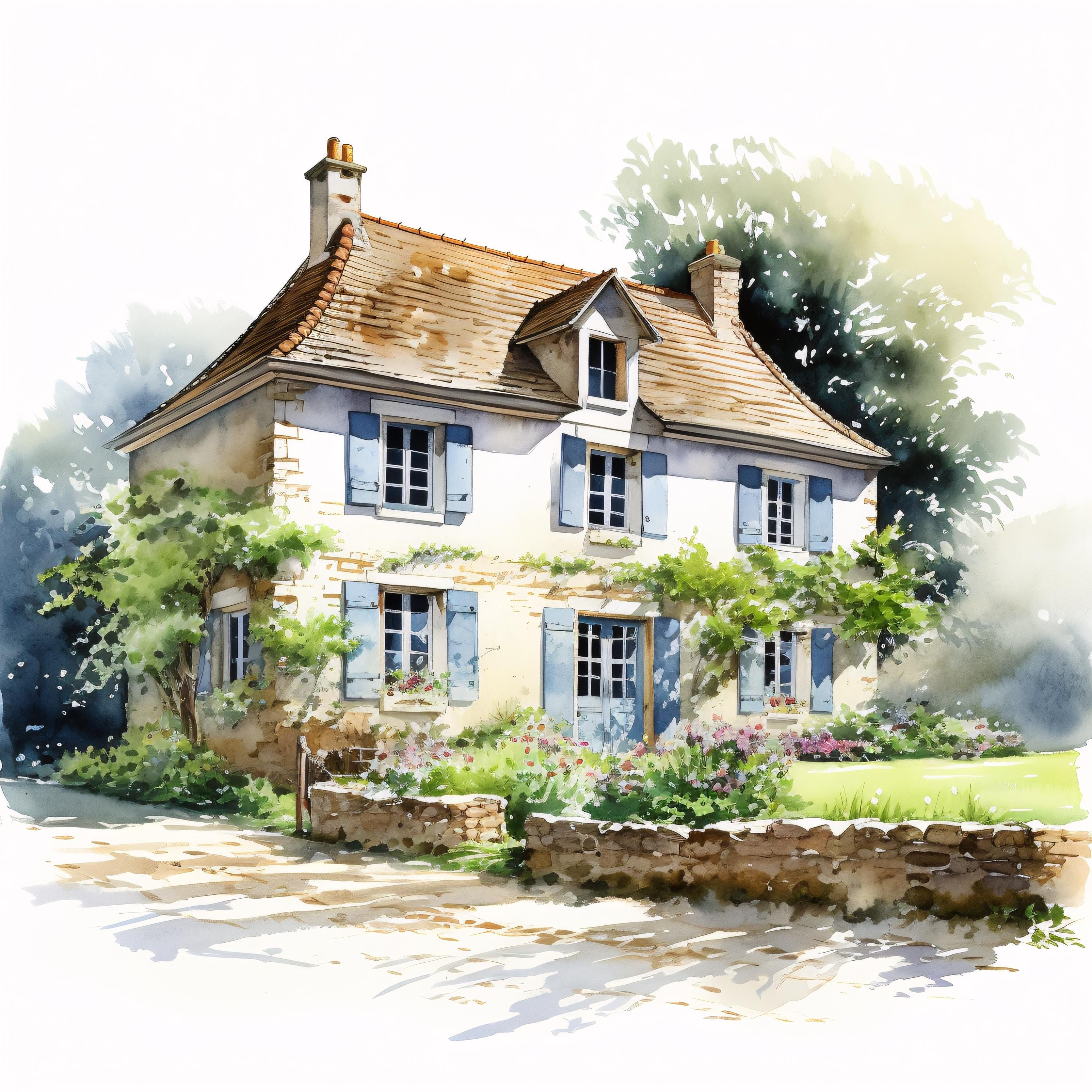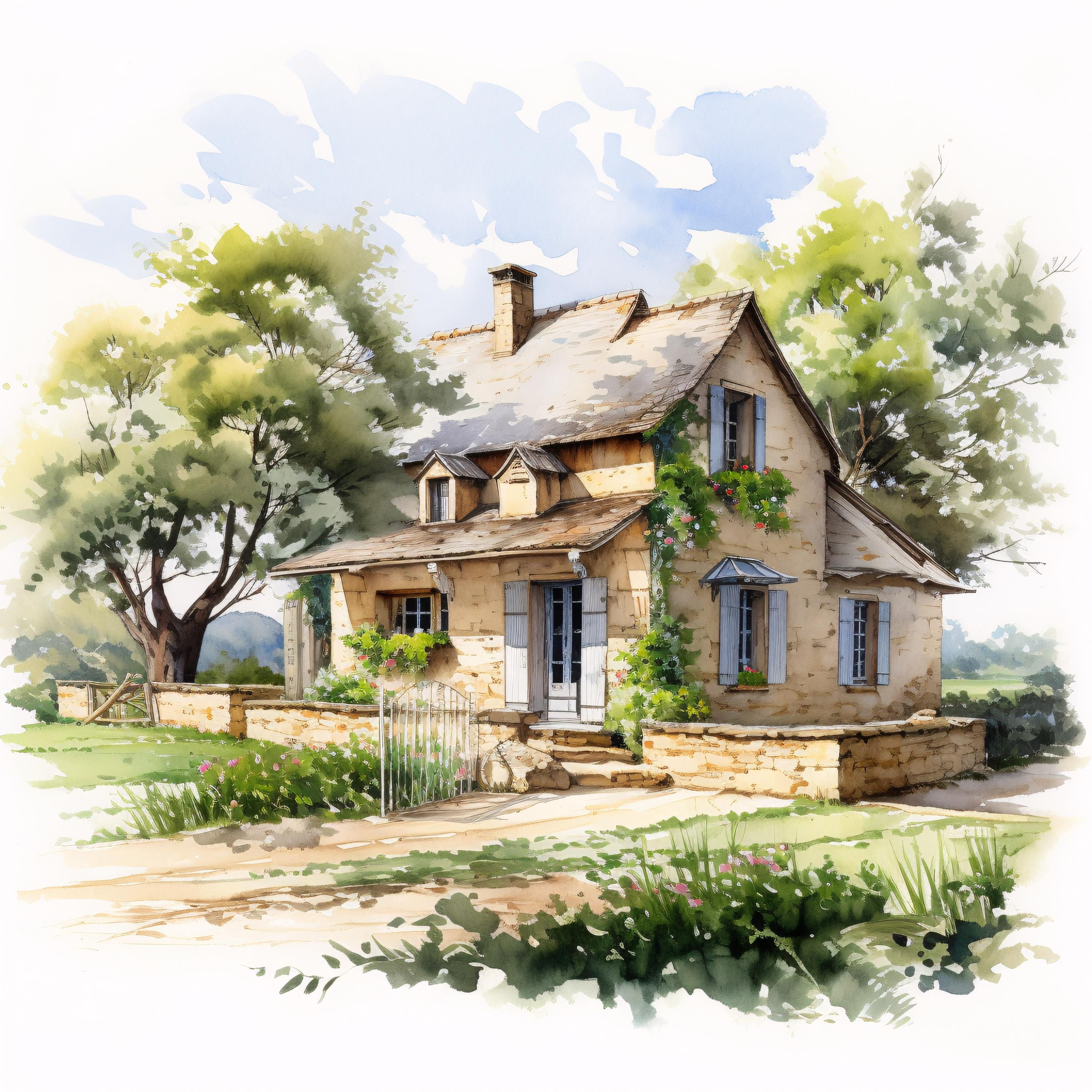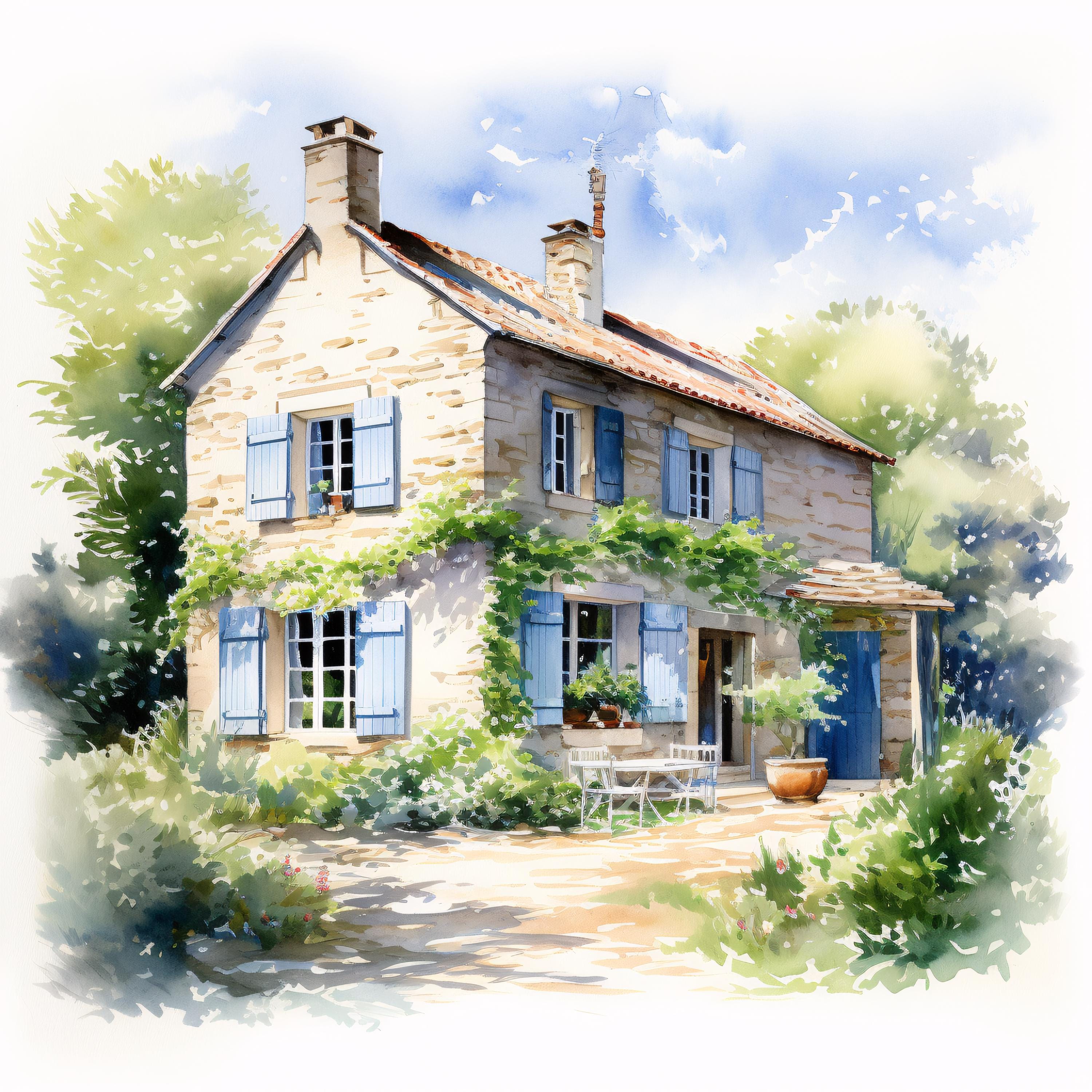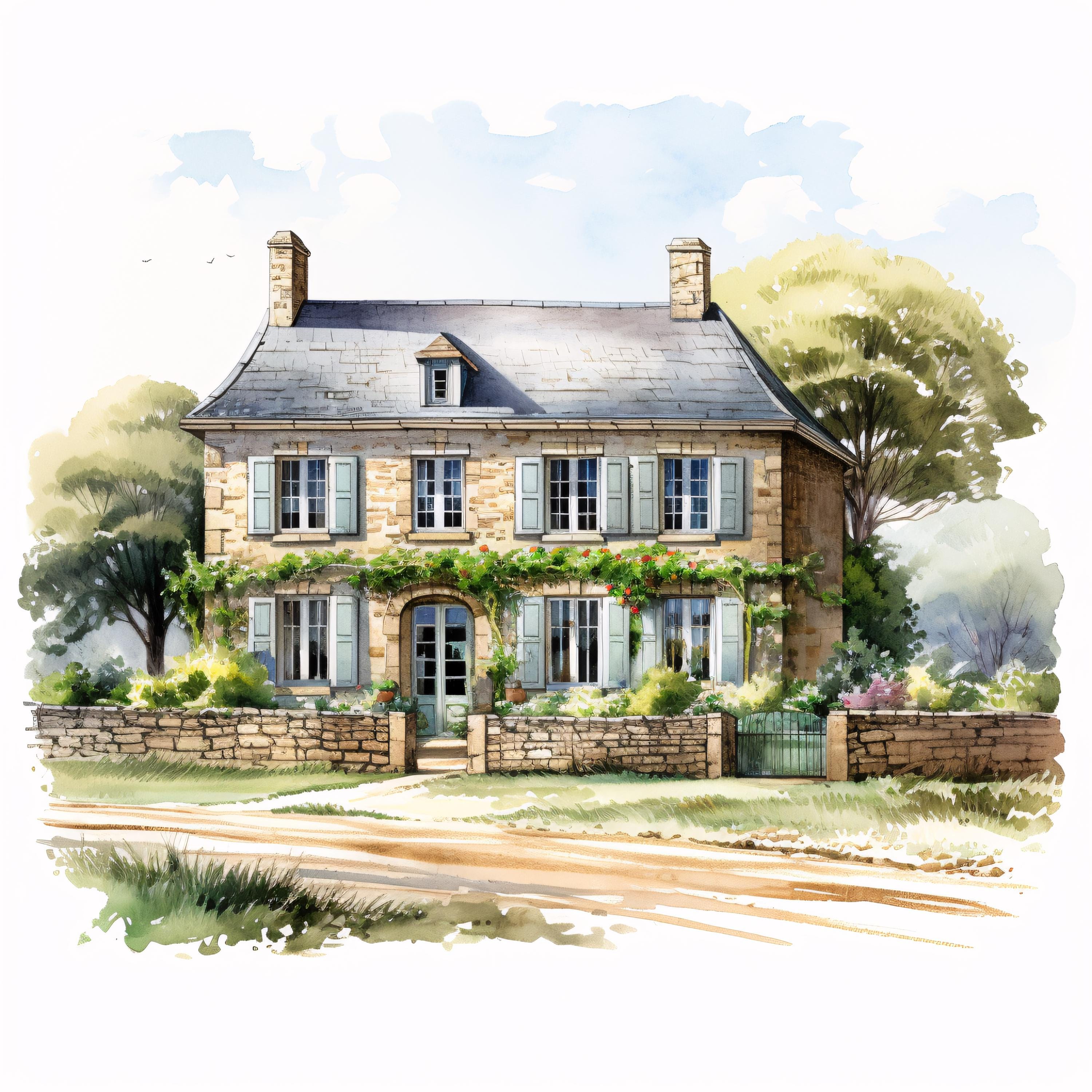 French Farmhouse Clipart, Rustic Country House Images, 10 Watercolor Clip Art, Printable JPGs, Instant Download, Commercial Use, Paper craft