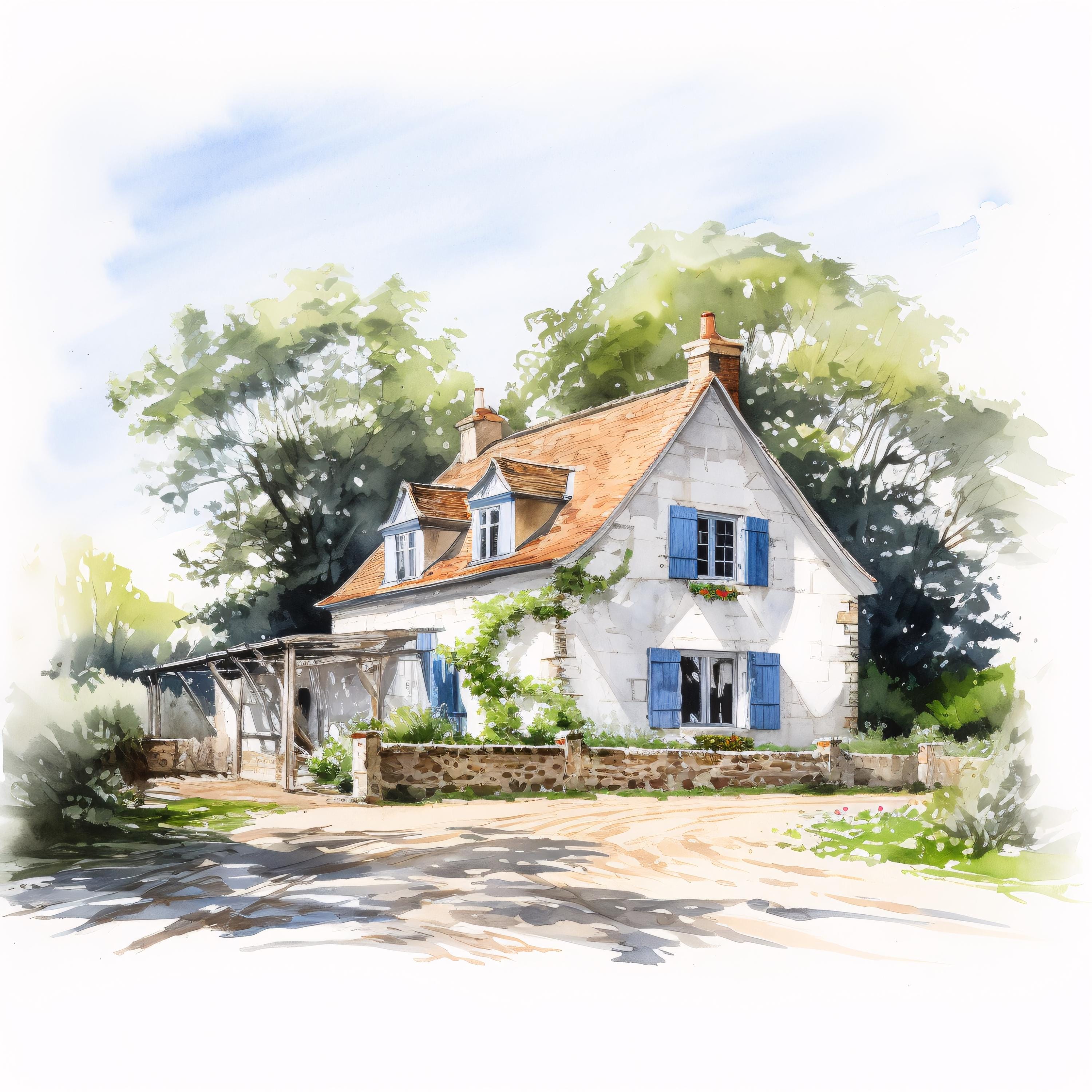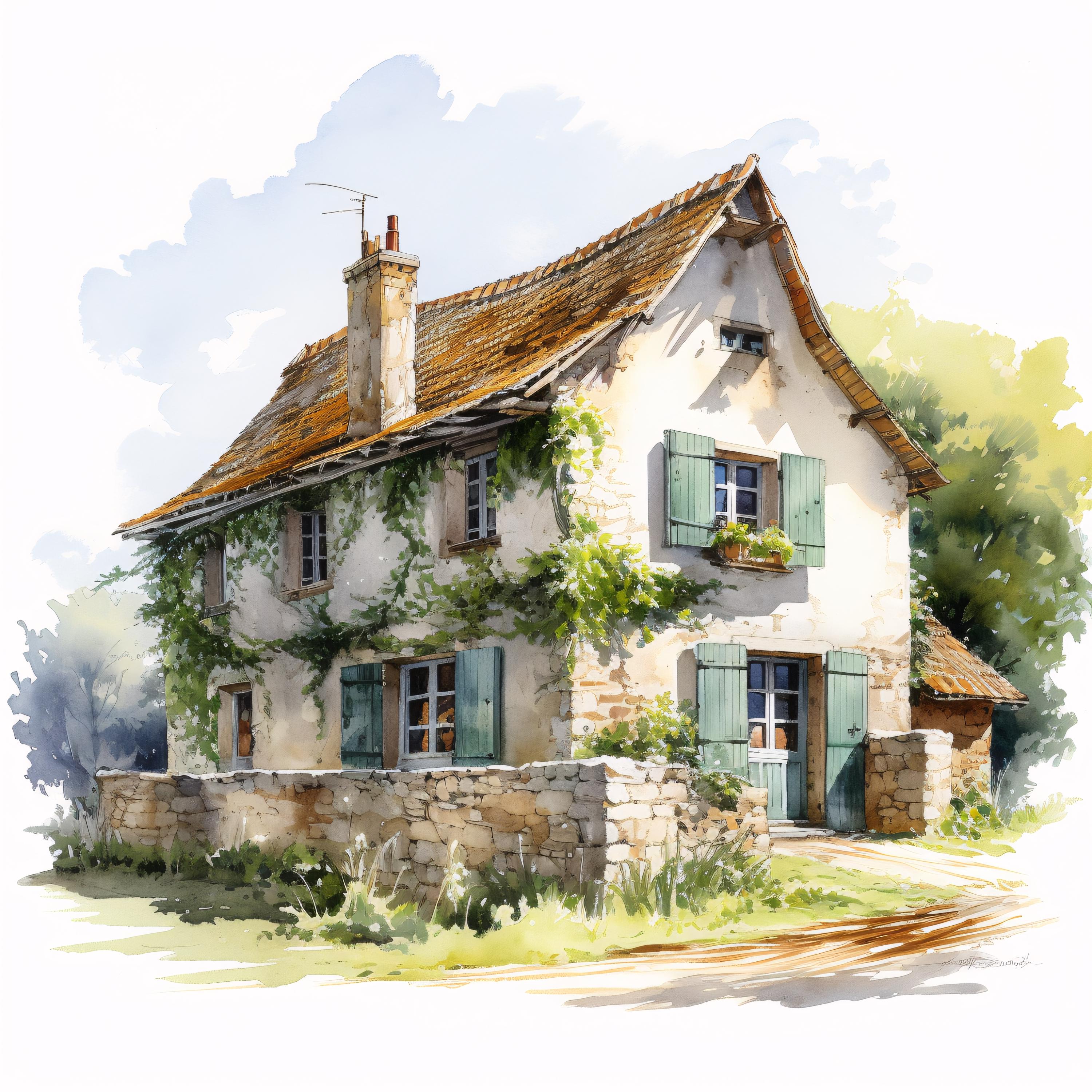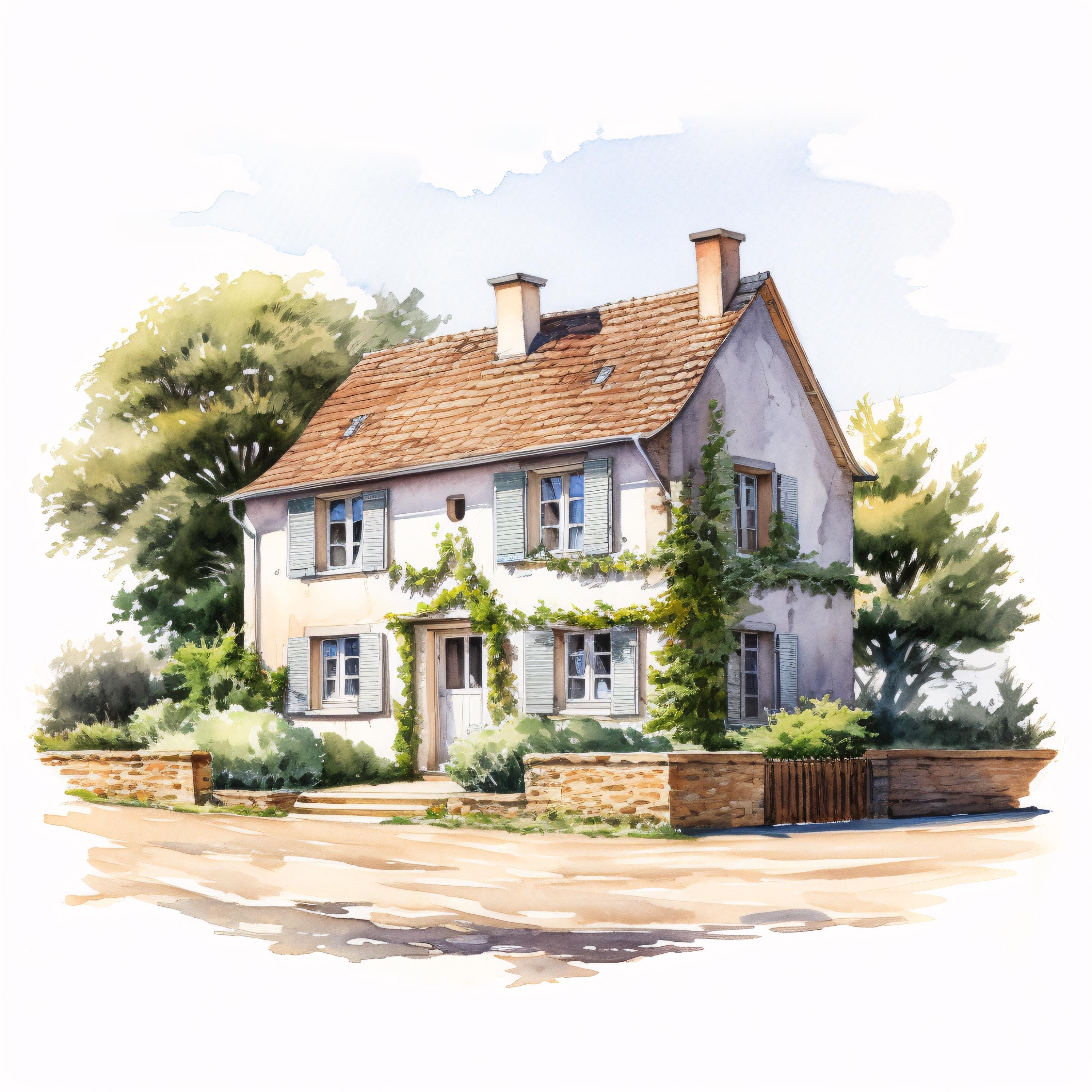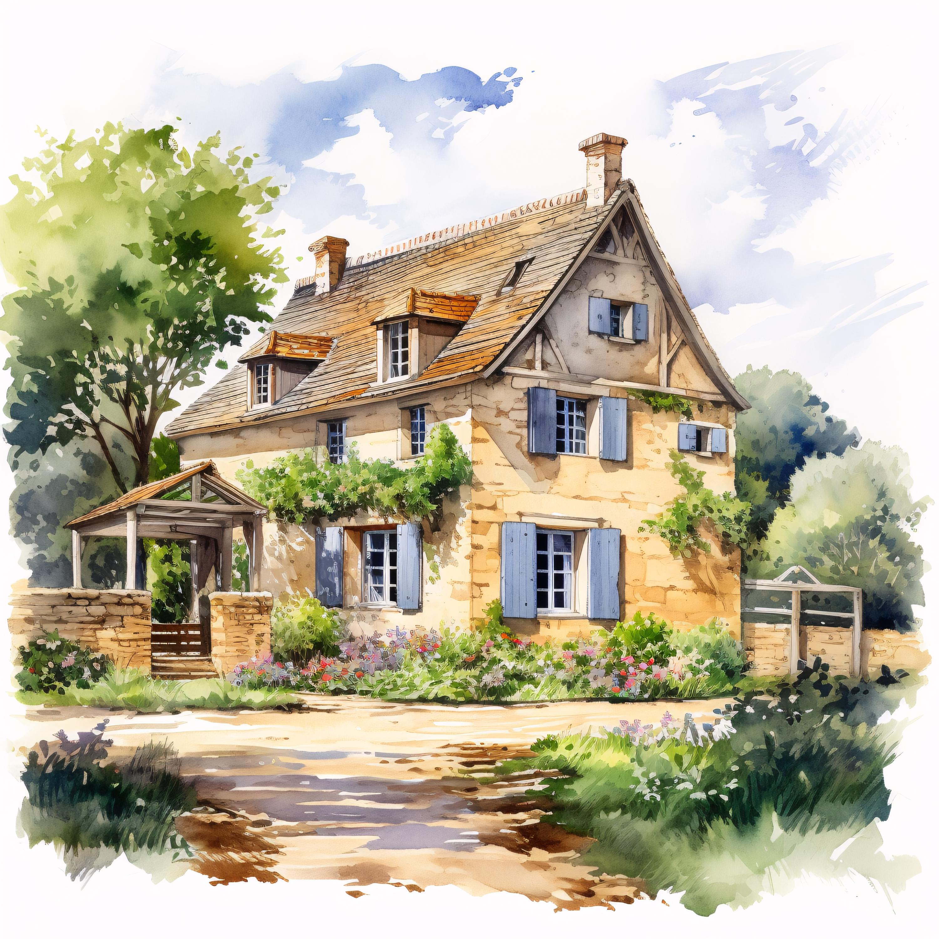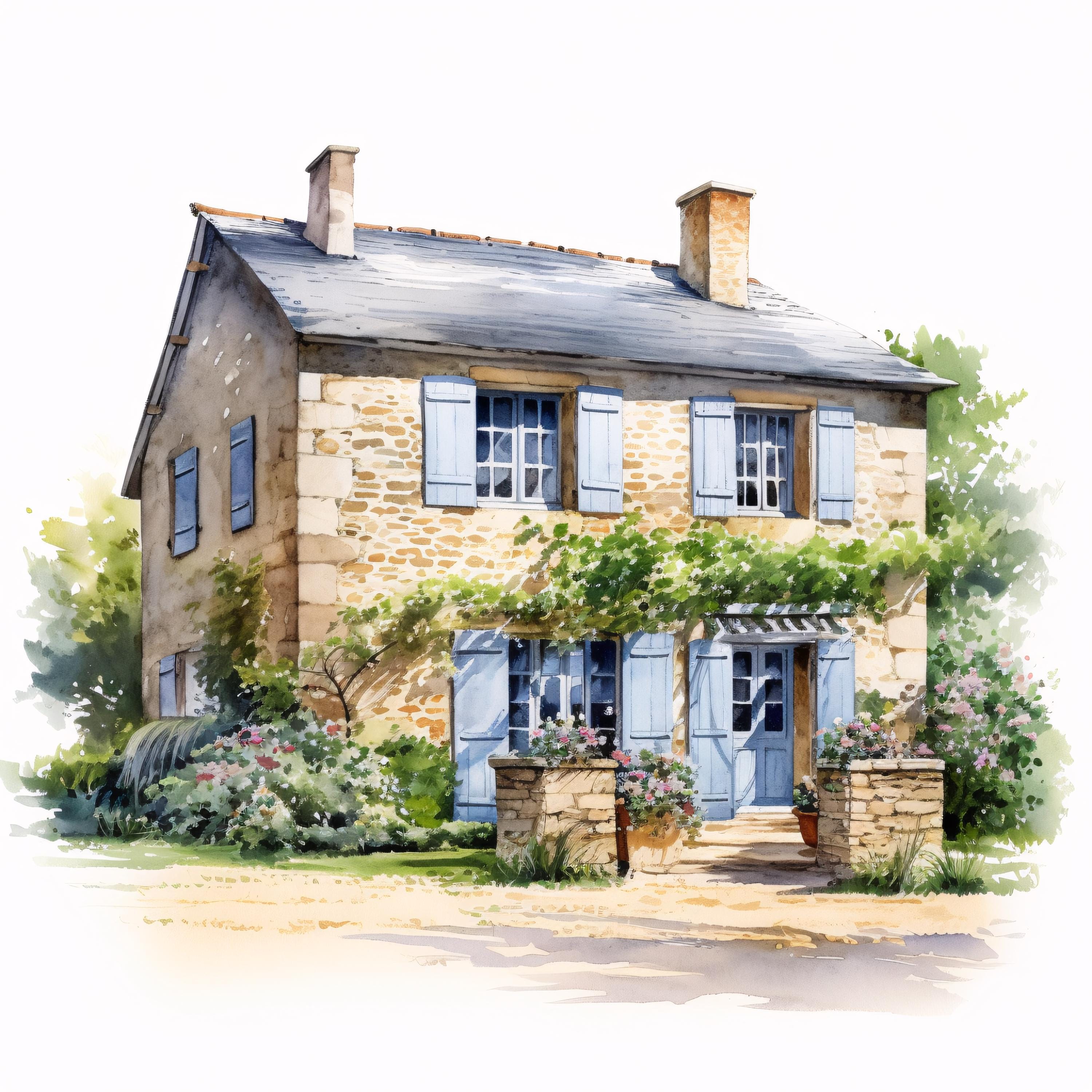 French Farmhouse Clipart, Rustic Country House Images, 10 Watercolor Clip Art, Printable JPGs, Instant Download, Commercial Use, Paper craft