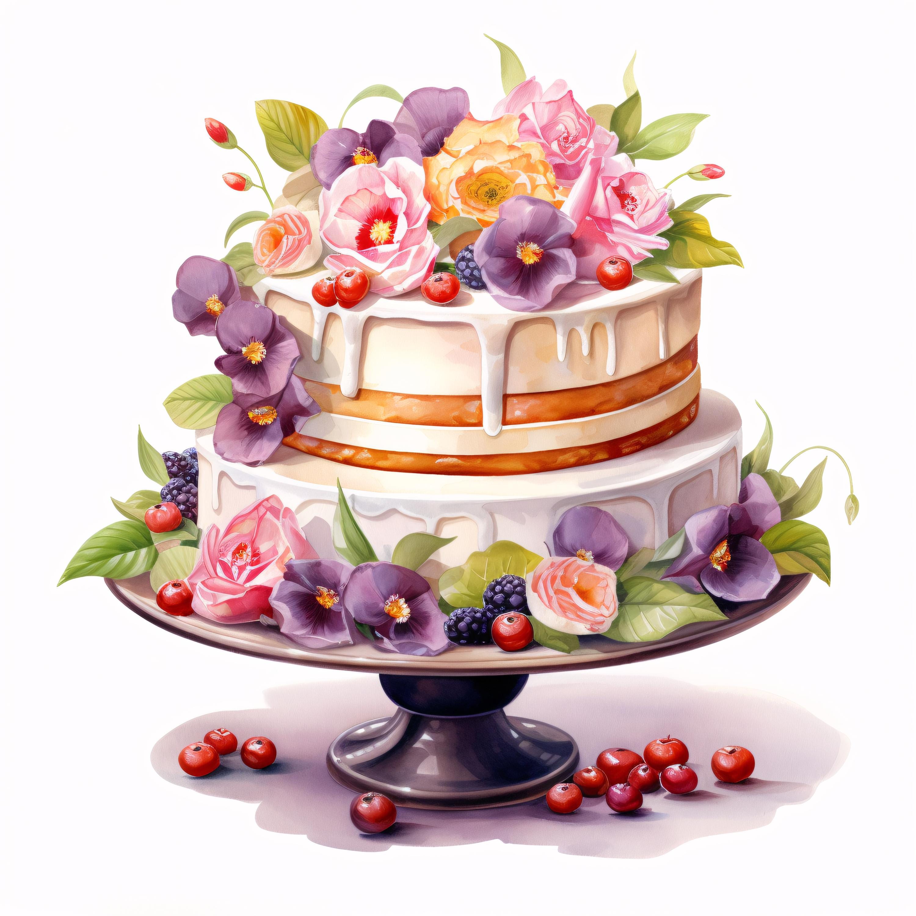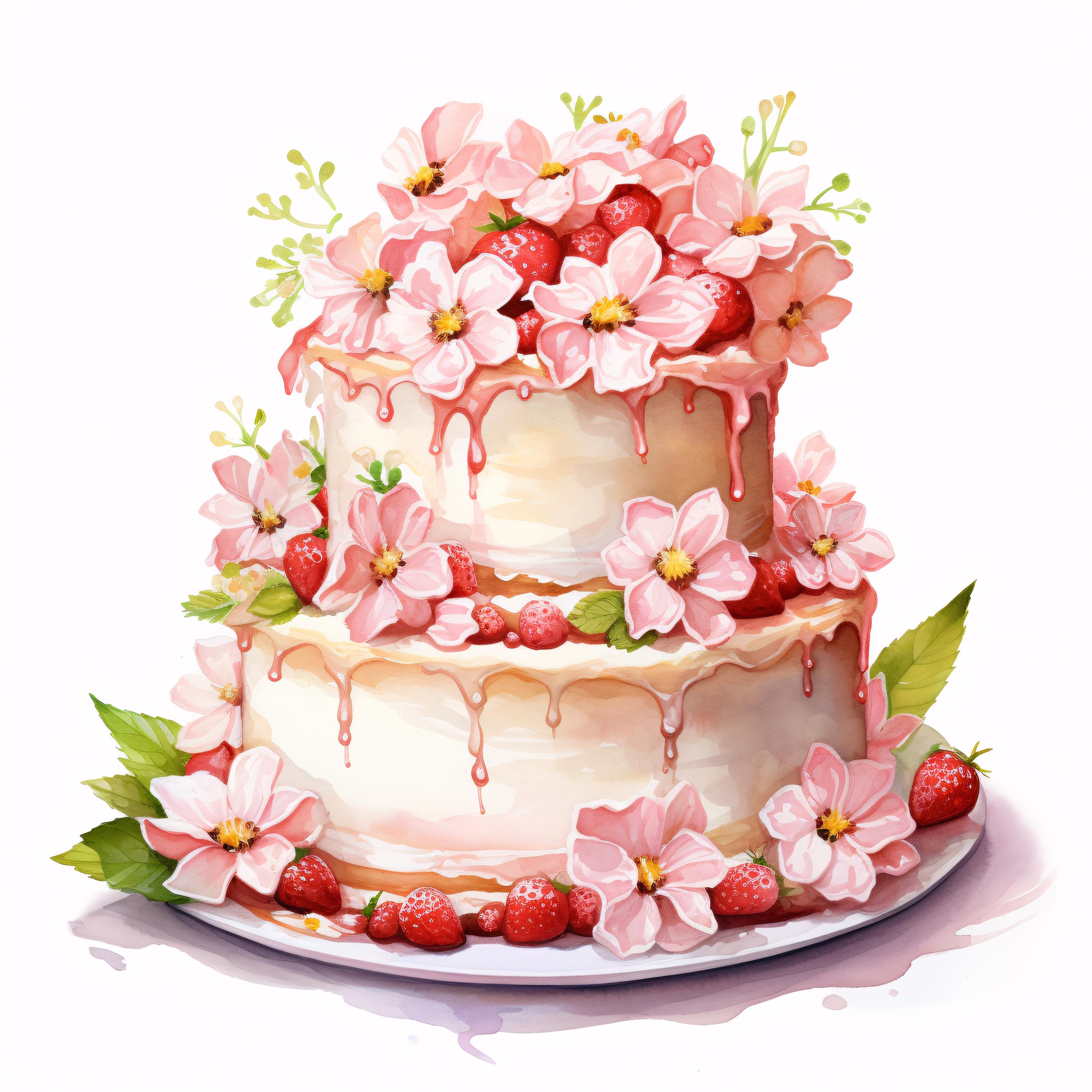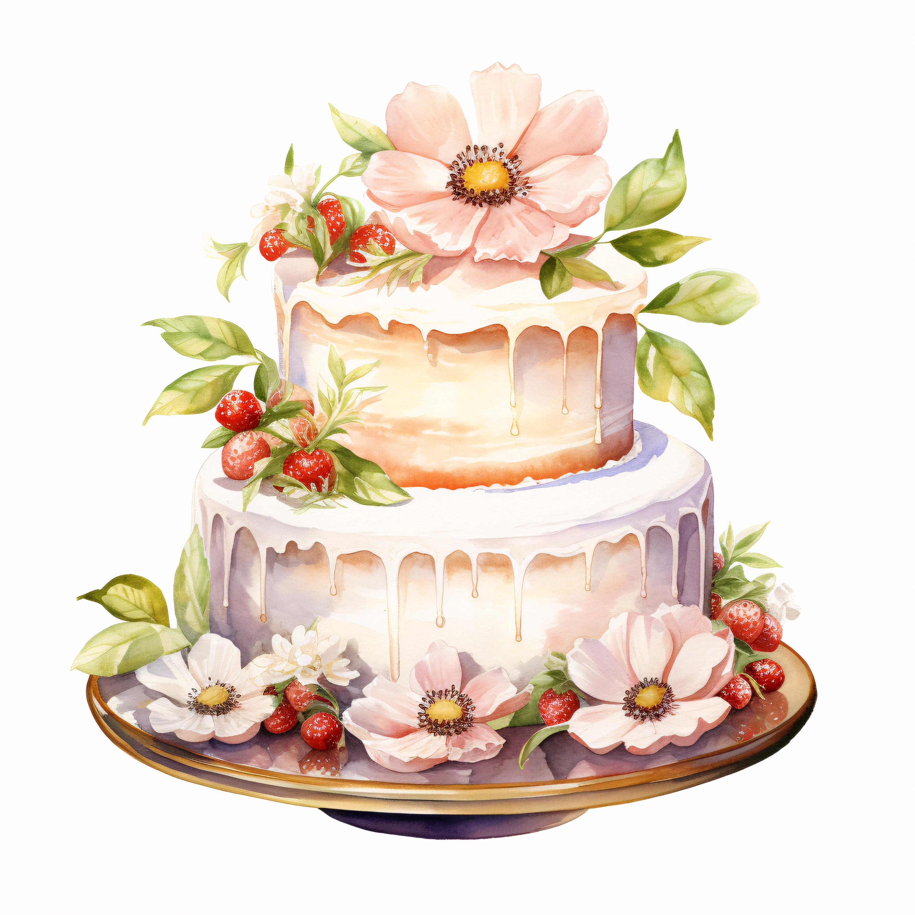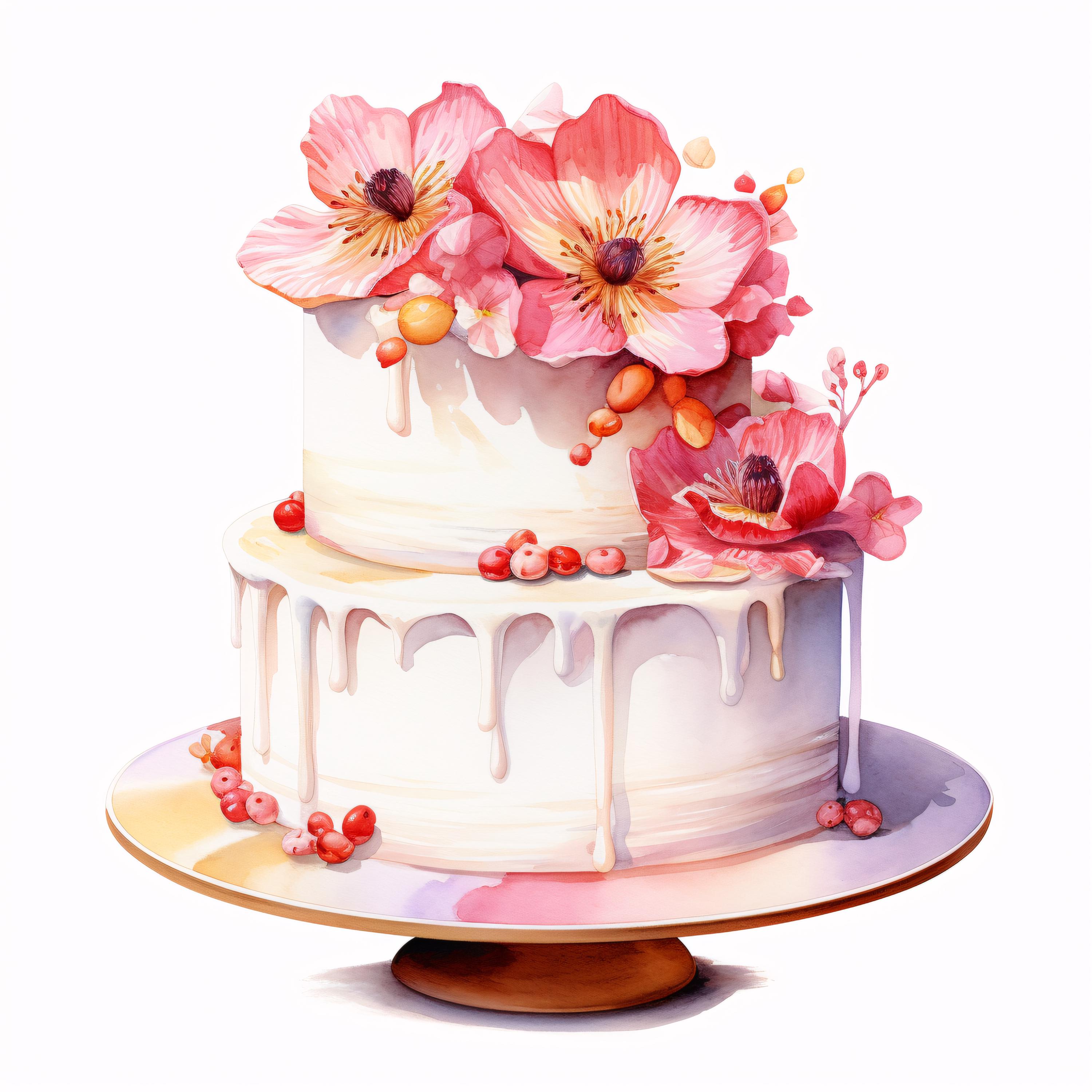 Floral Cake Clipart, Wedding Dessert Images, 10 Watercolor Clip Art, Printable JPGs, Instant Download, Commercial Use, Paper craft