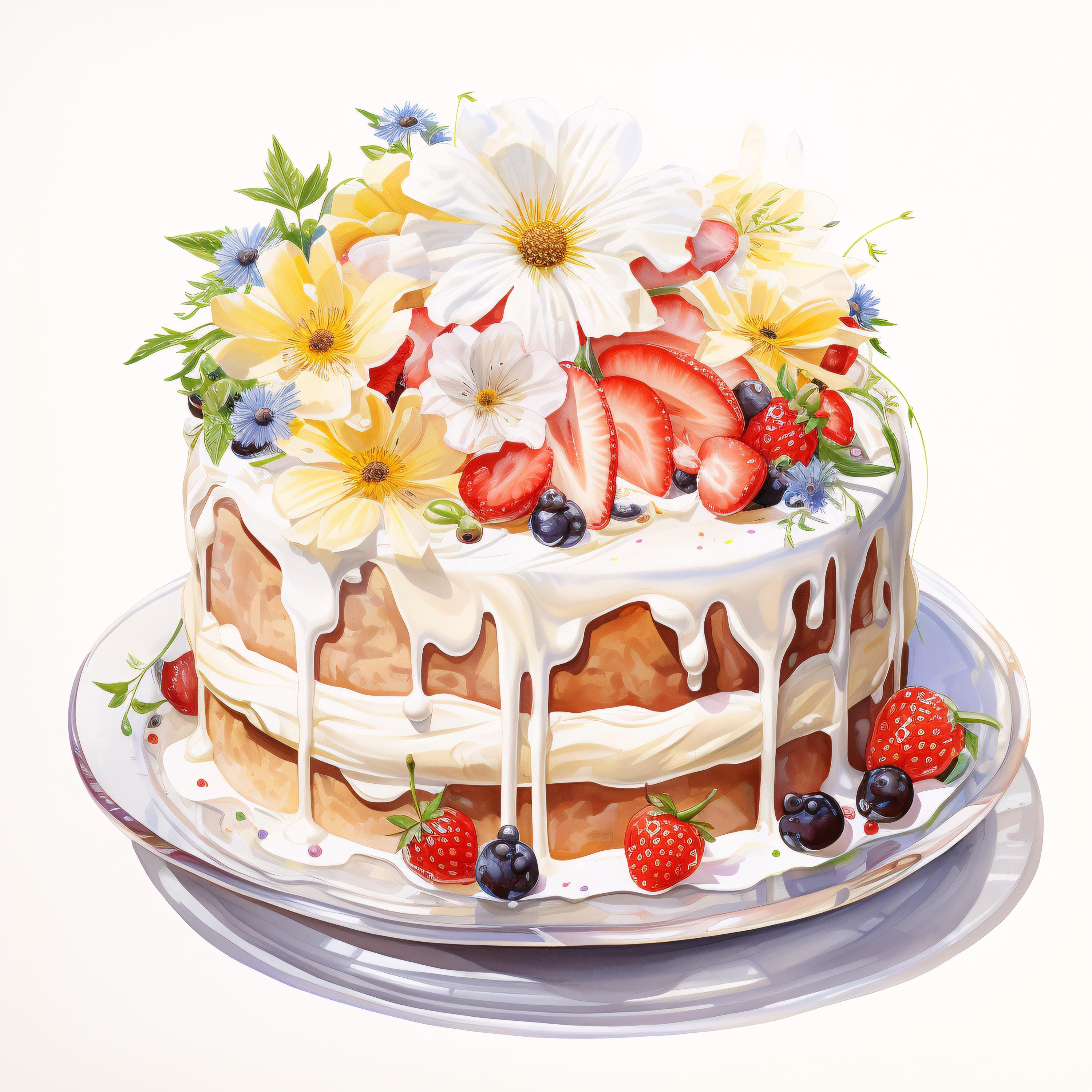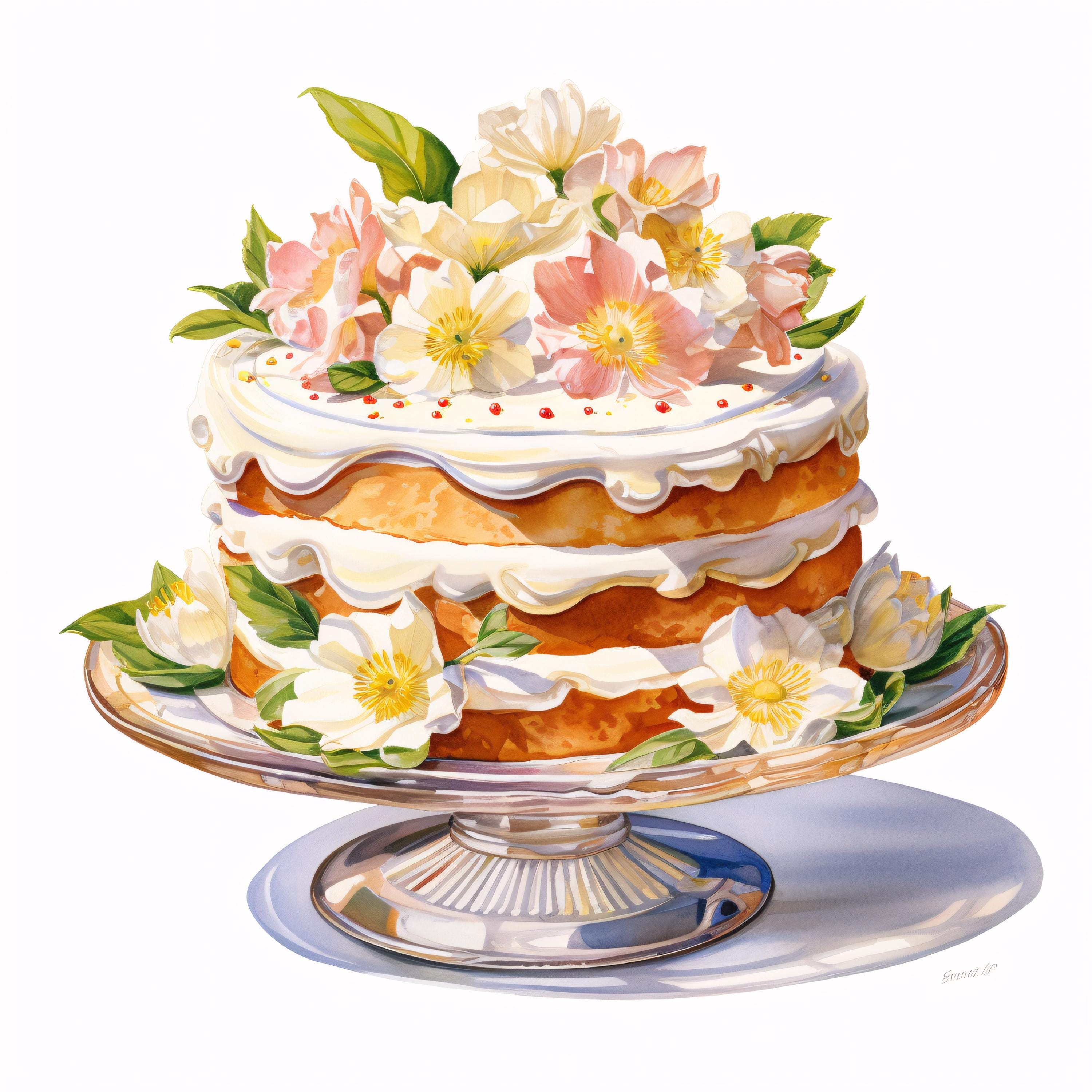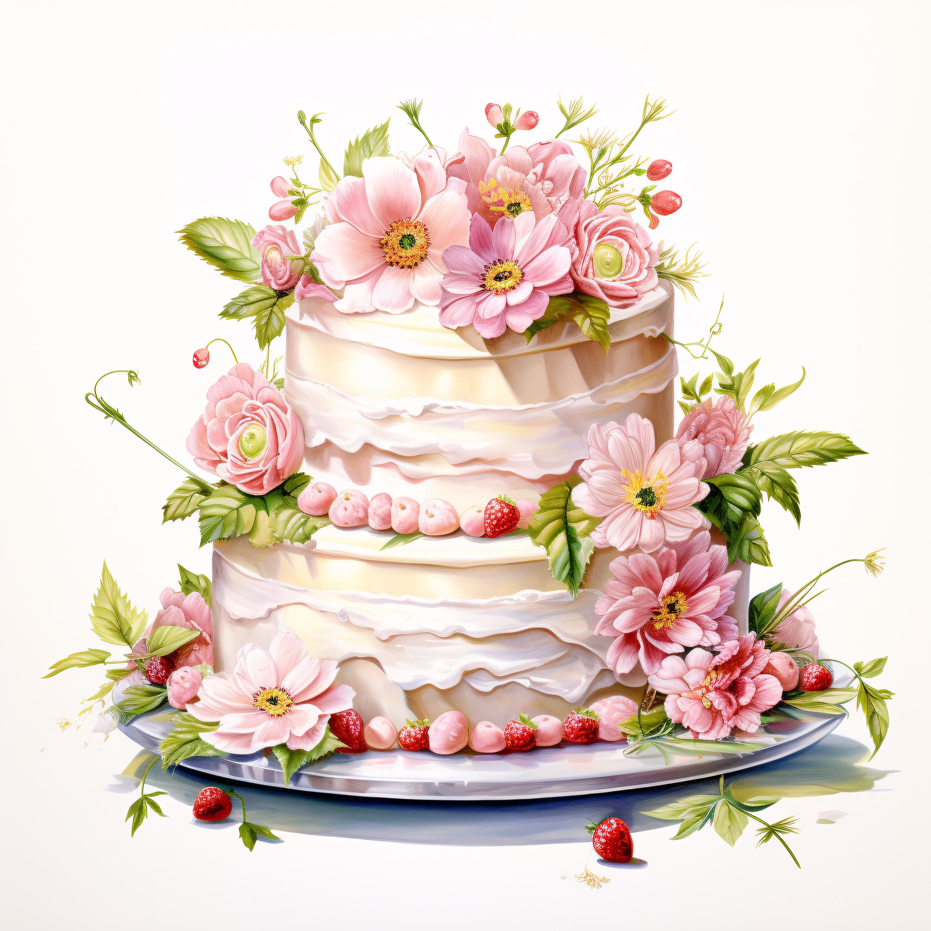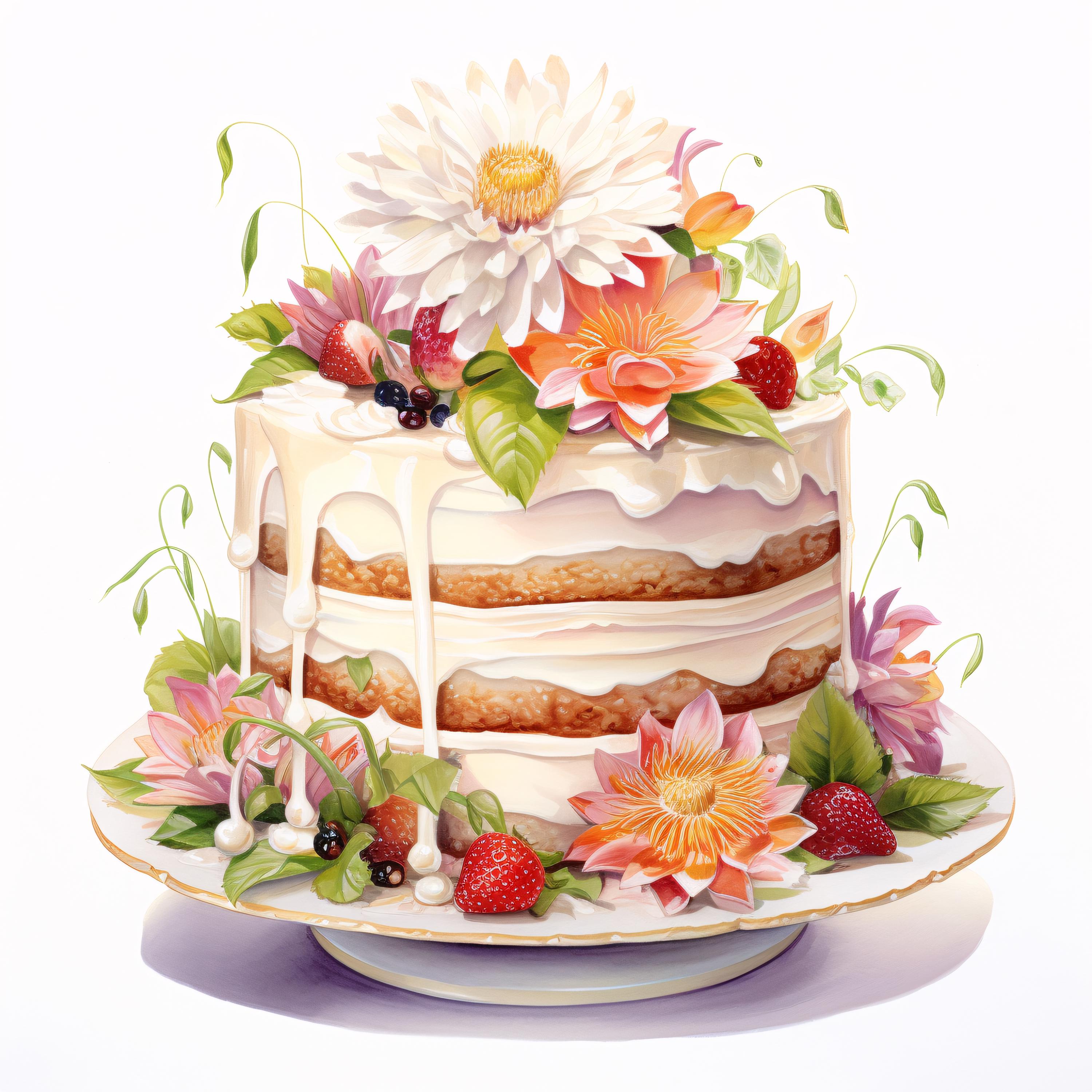 Floral Cake Clipart, Wedding Dessert Images, 10 Watercolor Clip Art, Printable JPGs, Instant Download, Commercial Use, Paper craft