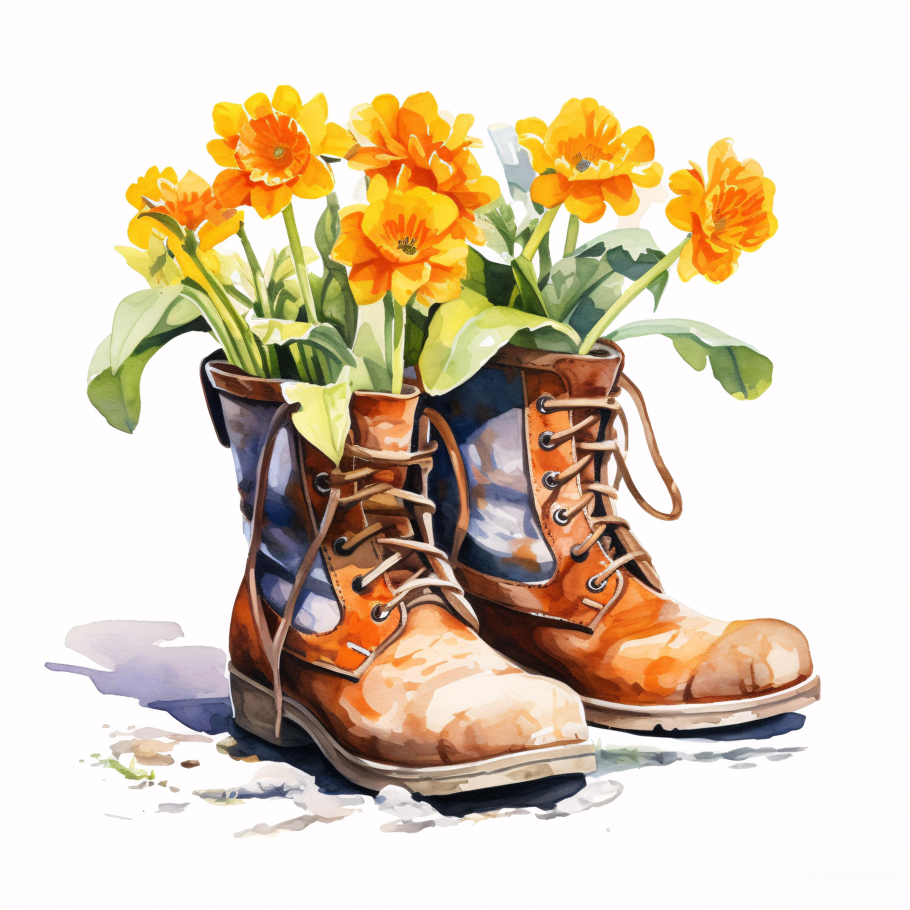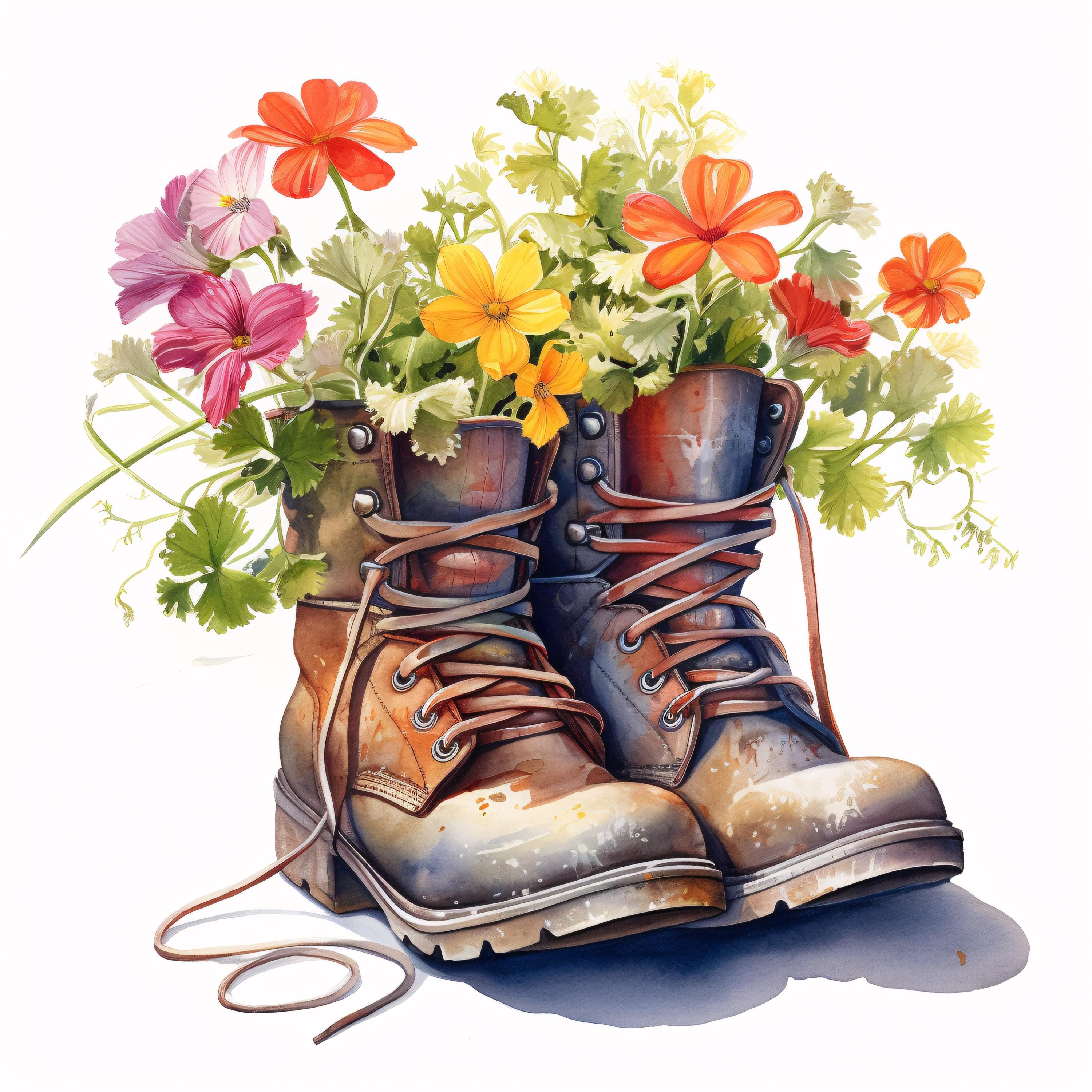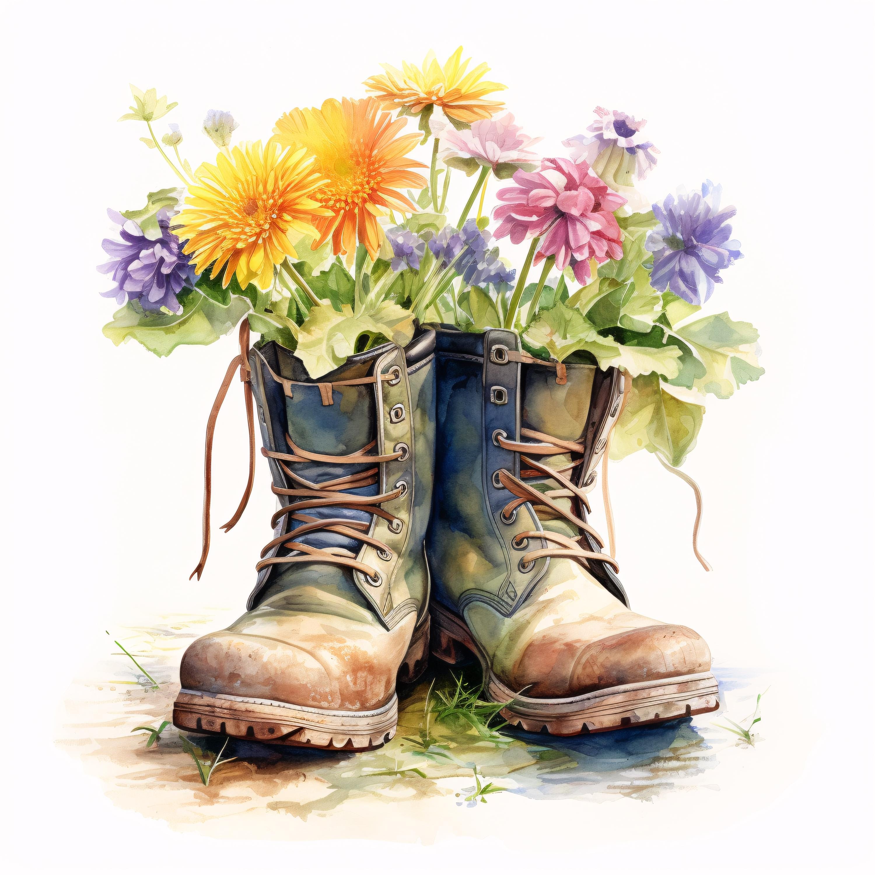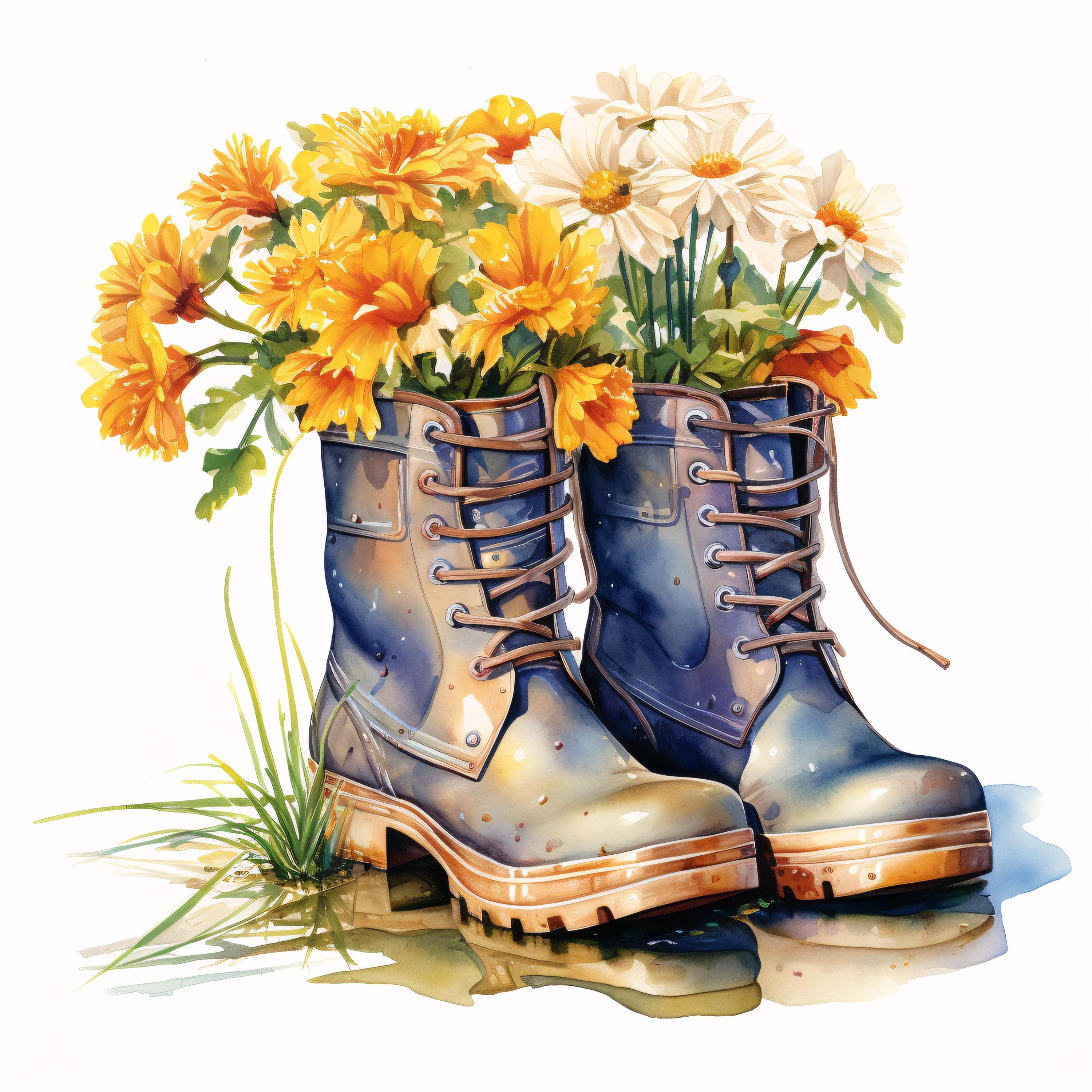 Garden Boots Clipart, Floral Shoe Images, 10 Watercolor Clip Art, Printable JPGs, Instant Download, Commercial Use, Paper craft