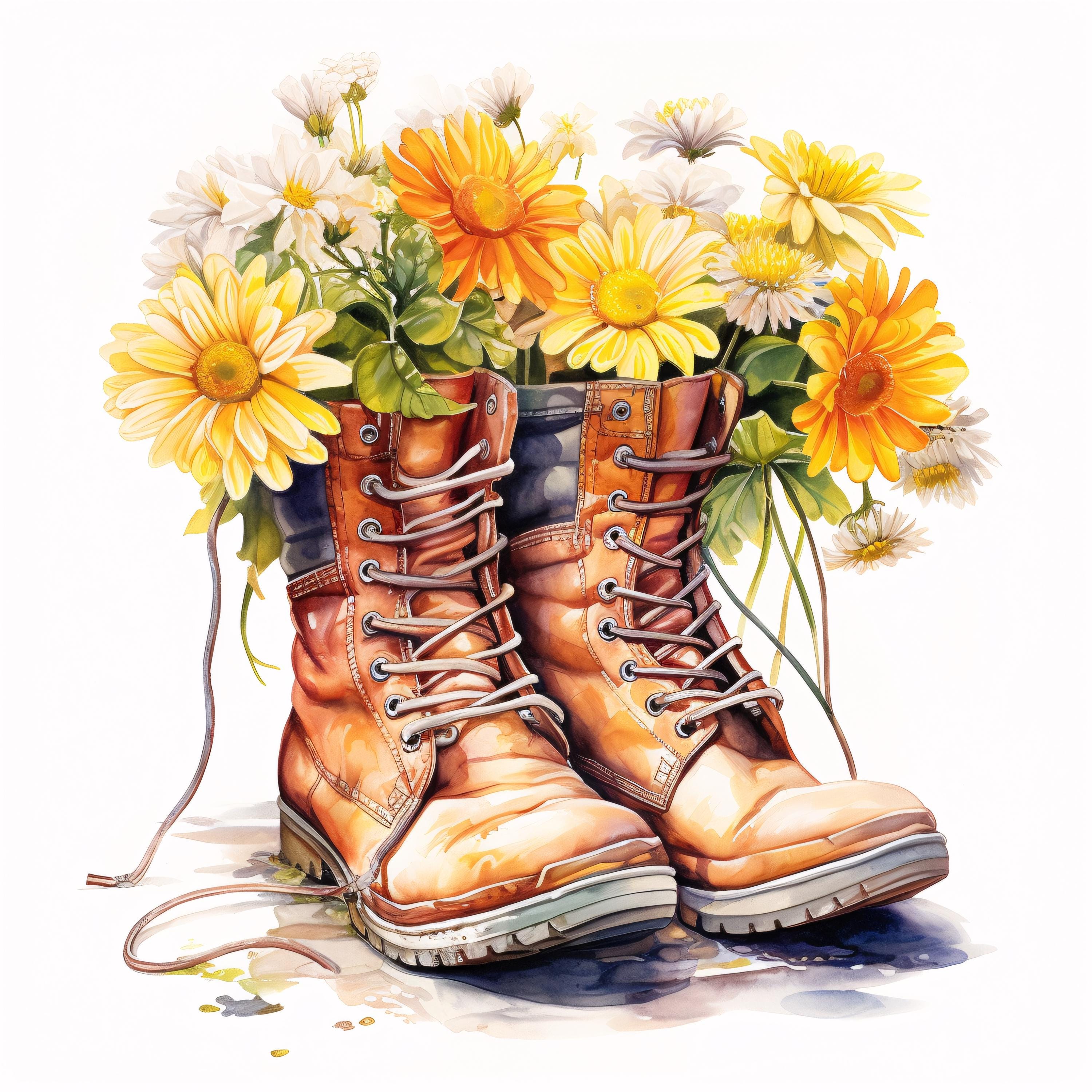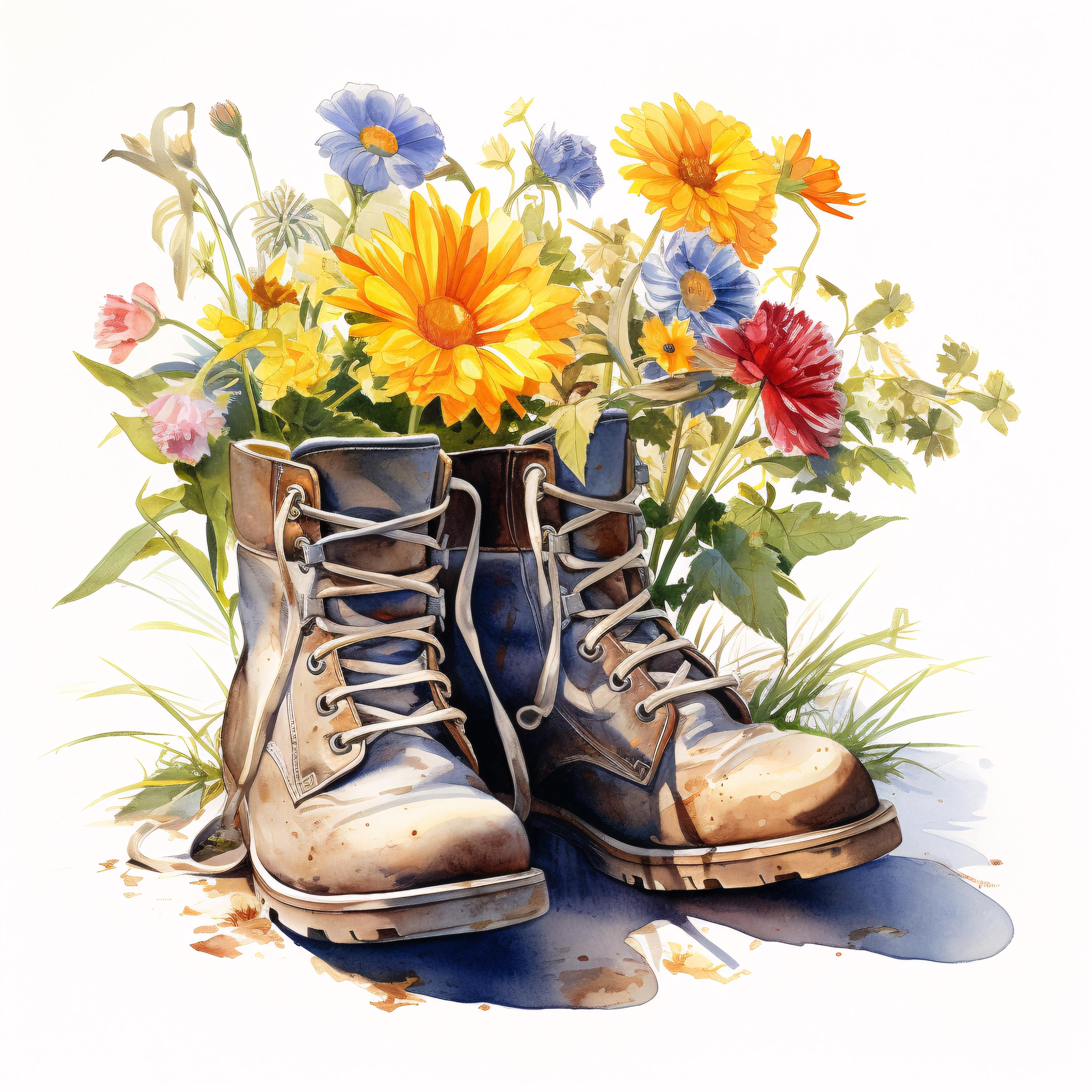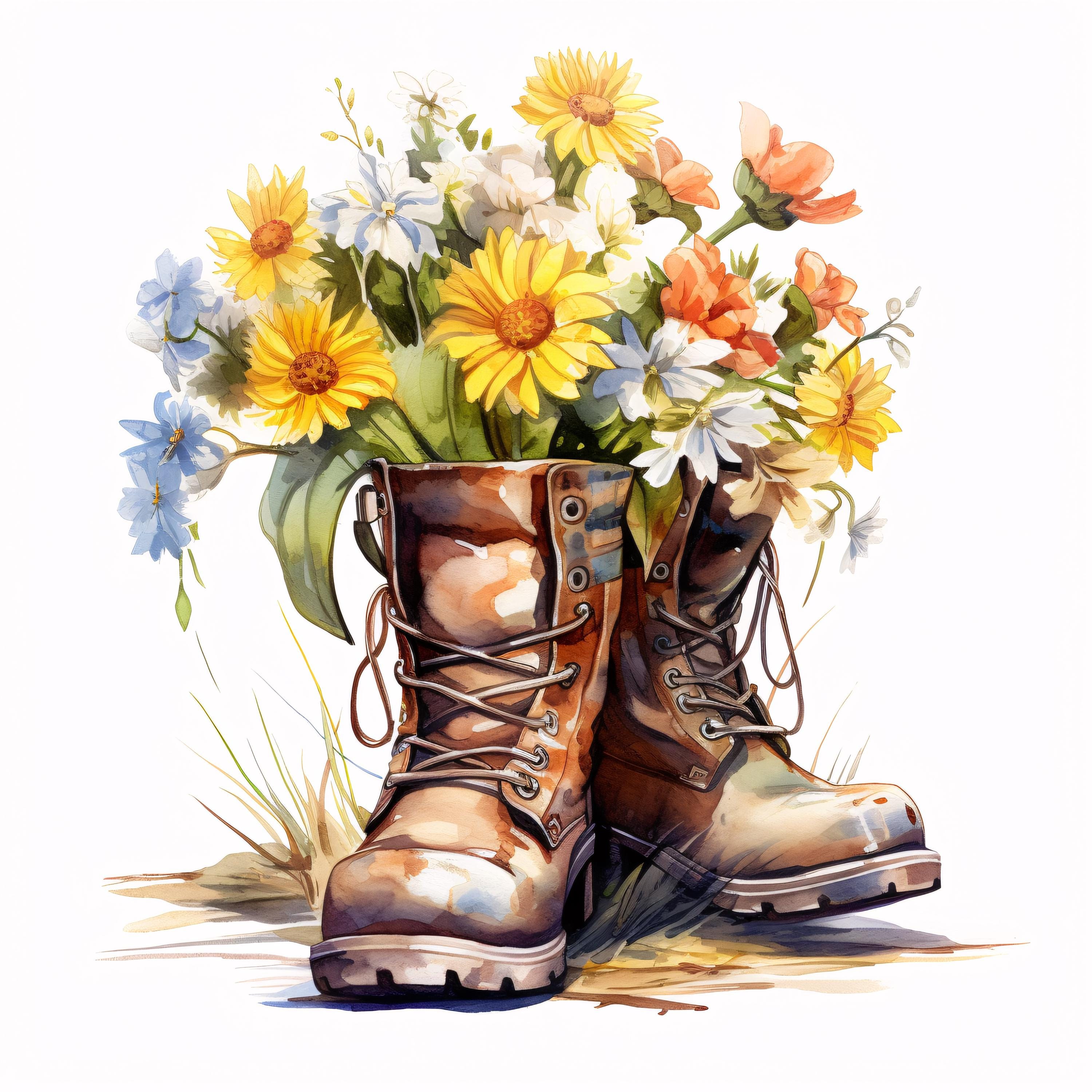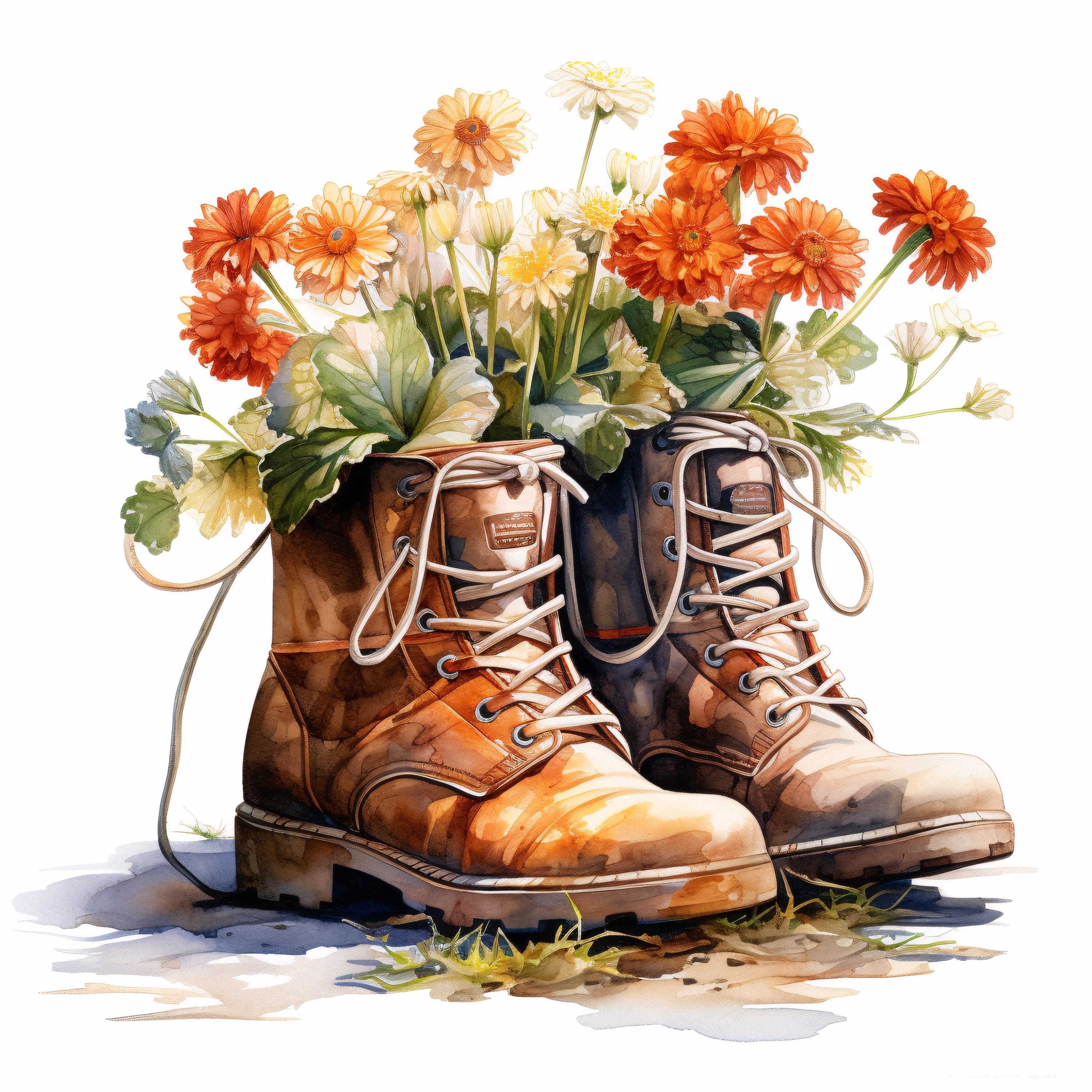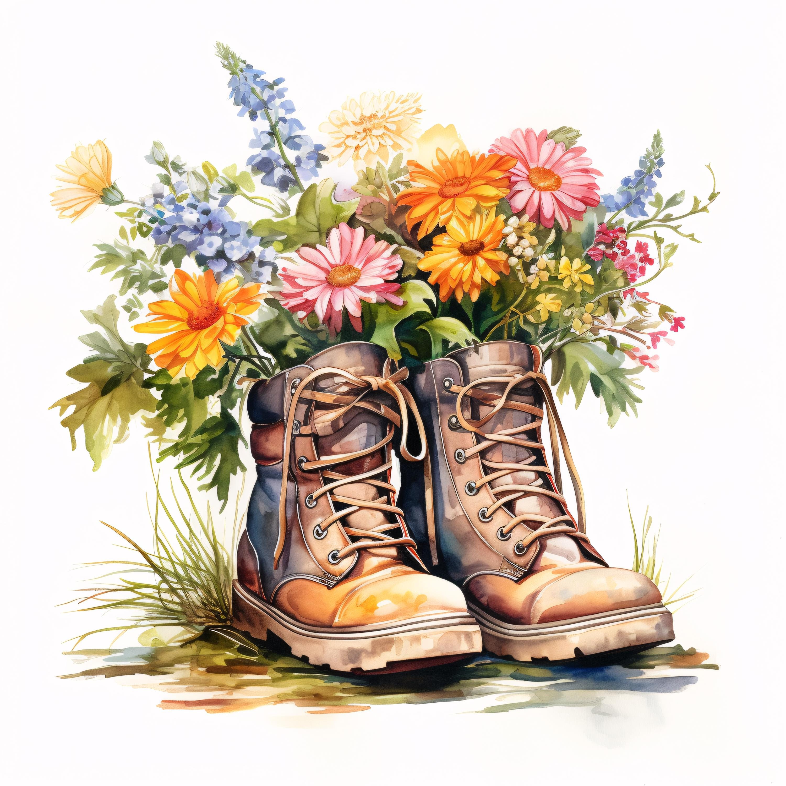 Garden Boots Clipart, Floral Shoe Images, 10 Watercolor Clip Art, Printable JPGs, Instant Download, Commercial Use, Paper craft
