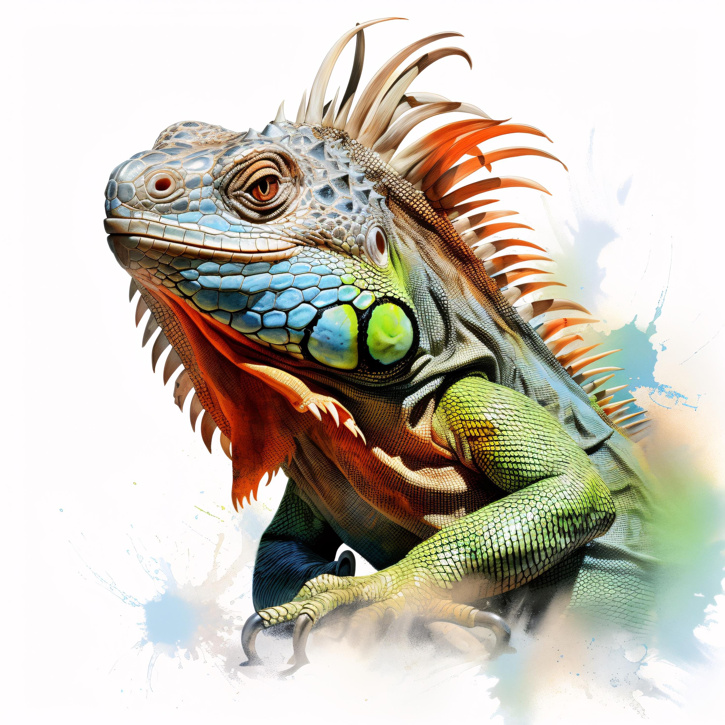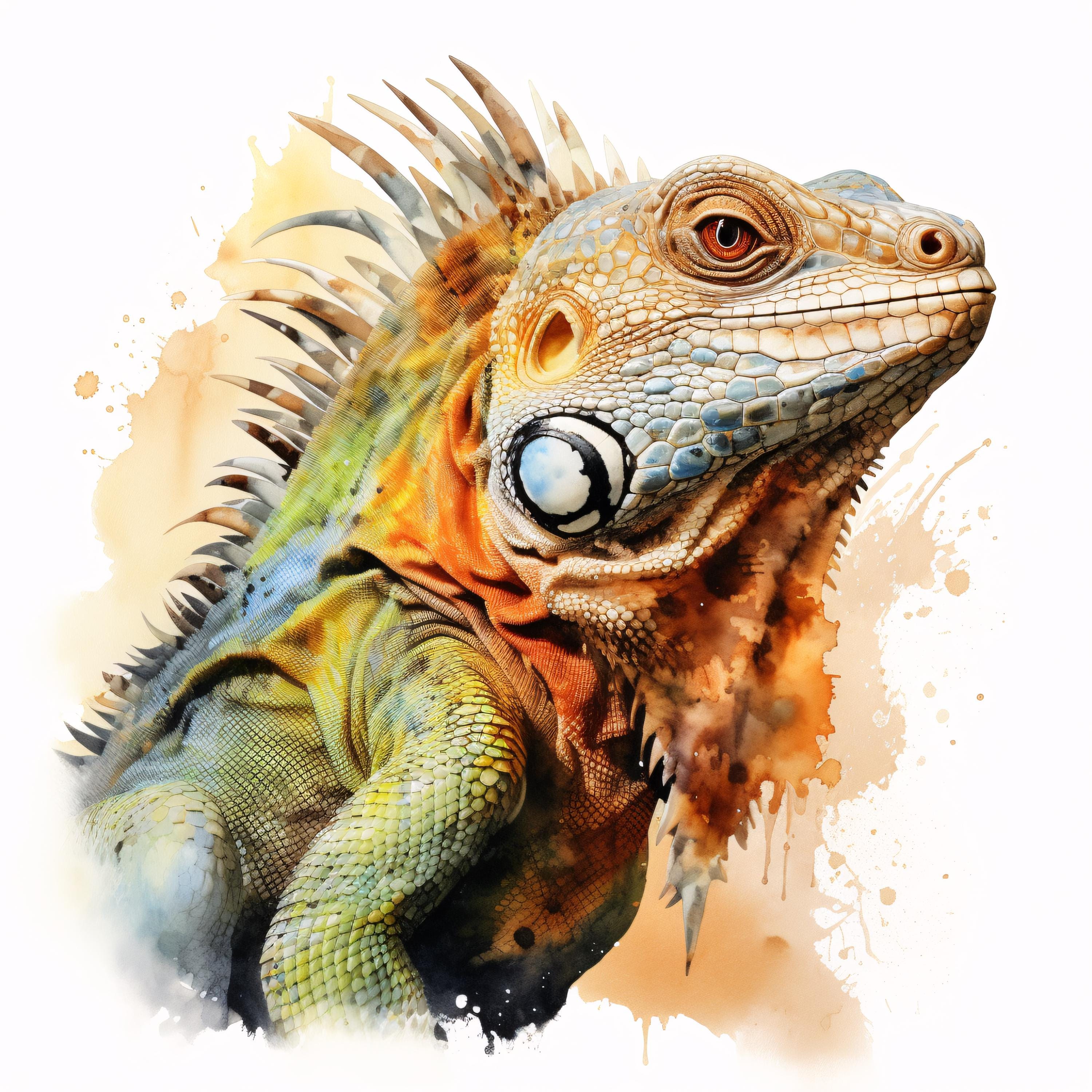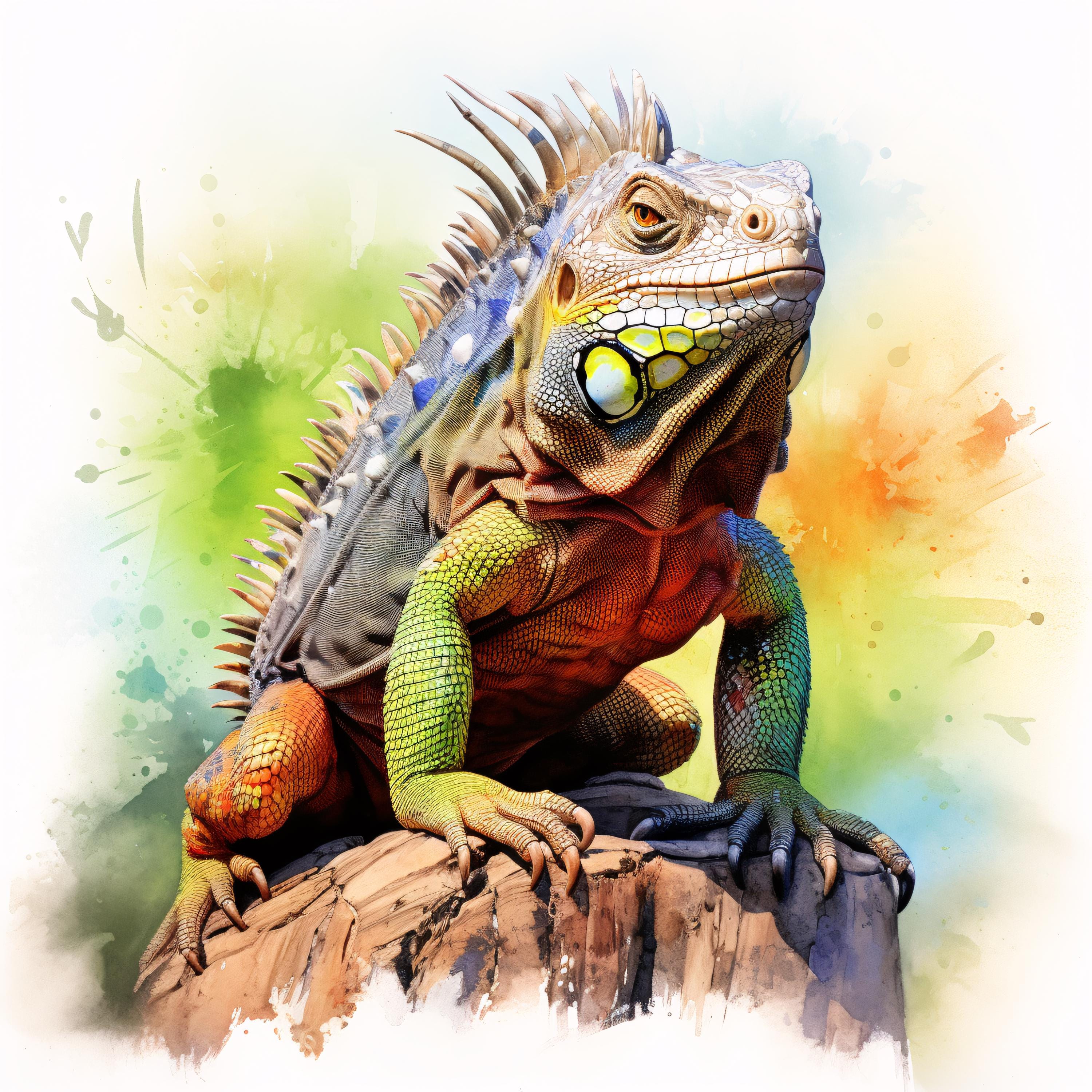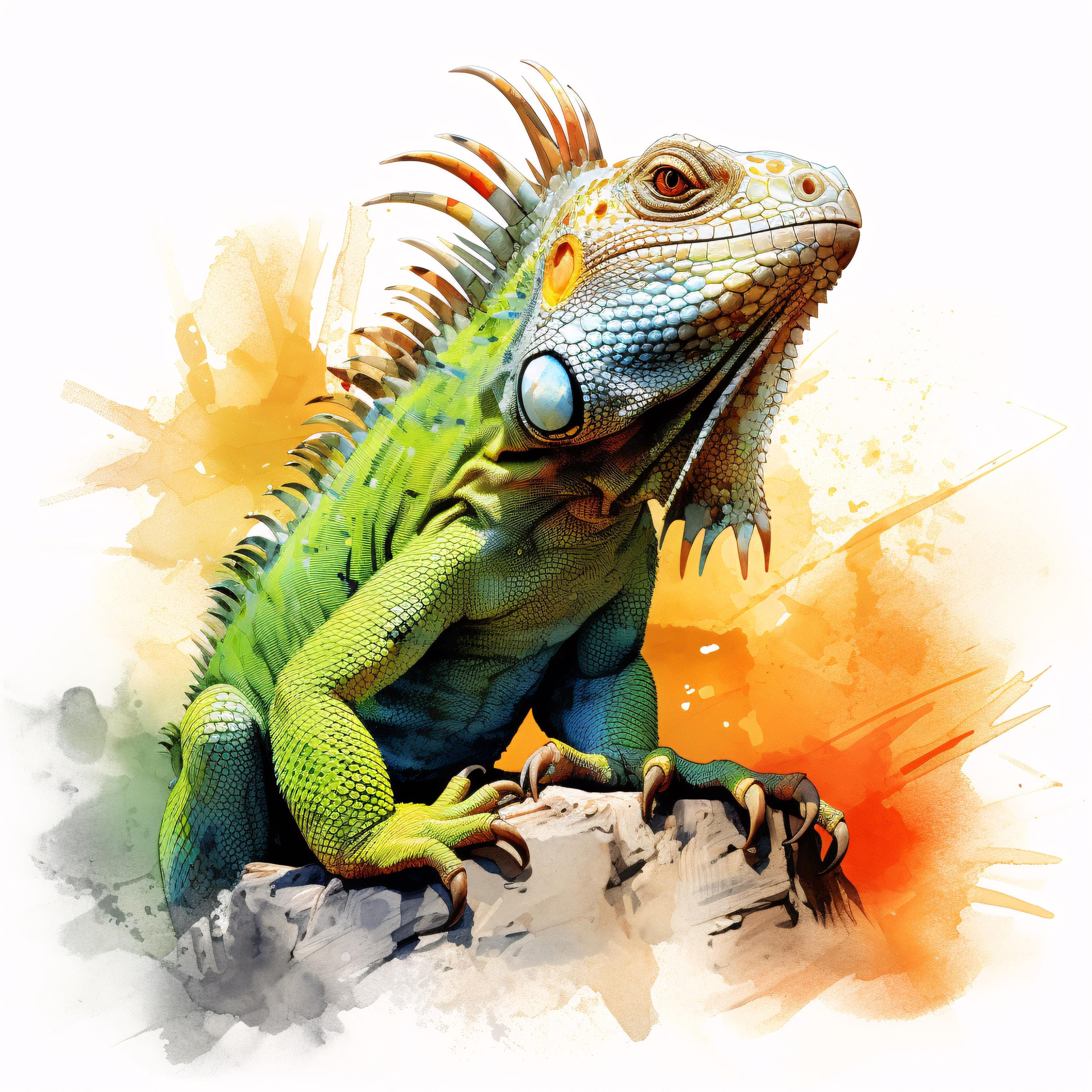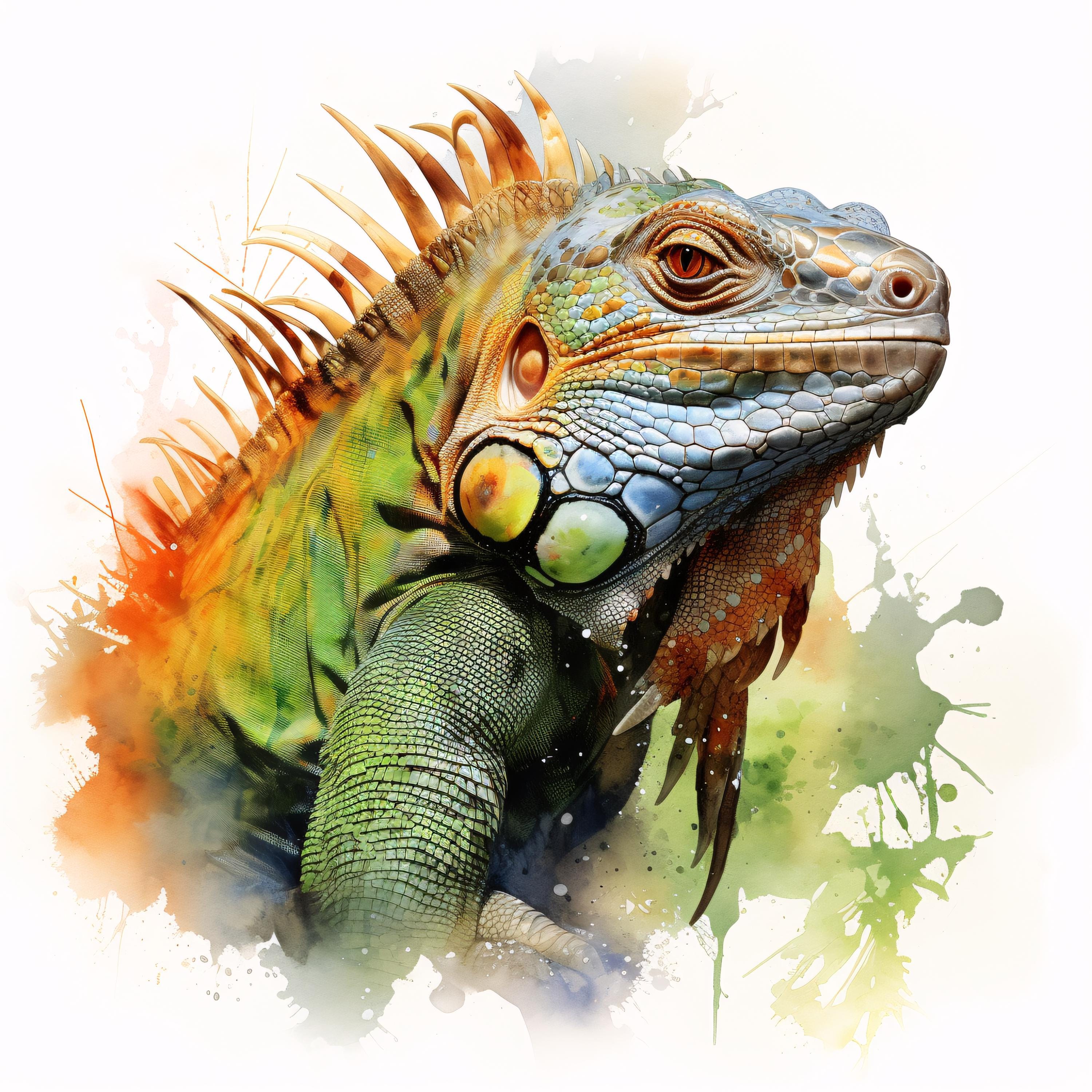 Iguana Clipart, Tropical Reptile Images, 10 Watercolor Clip Art, Printable JPGs, Instant Download, Commercial Use, Paper craft
