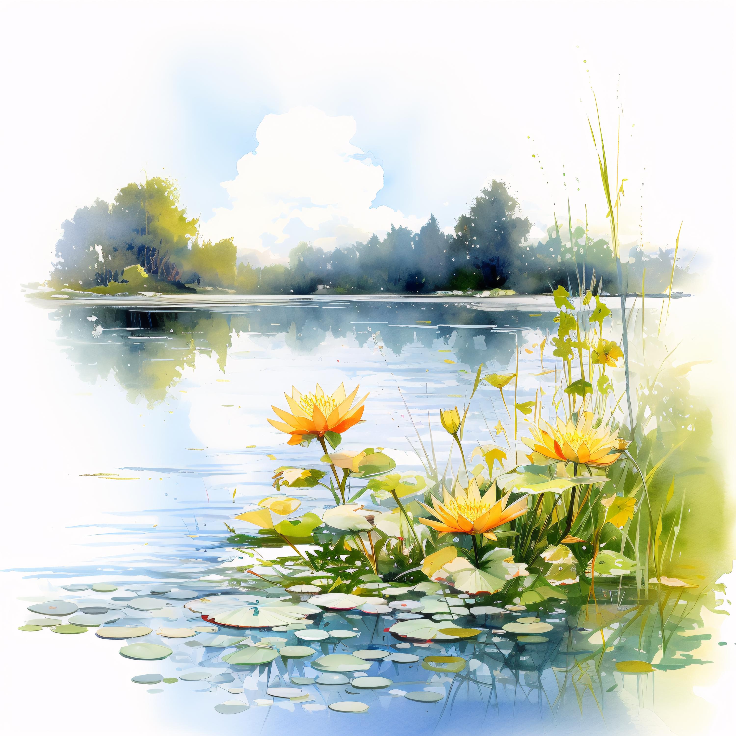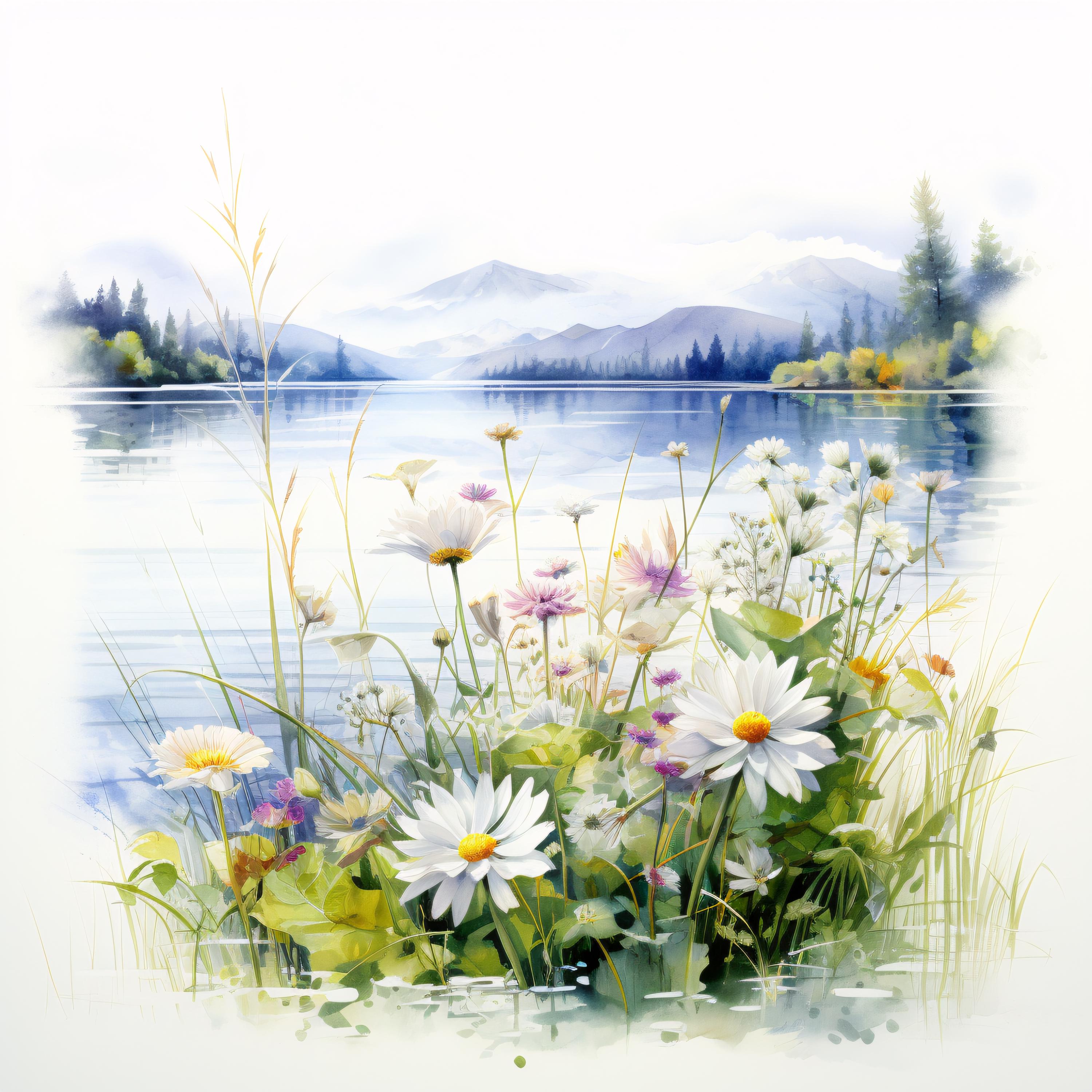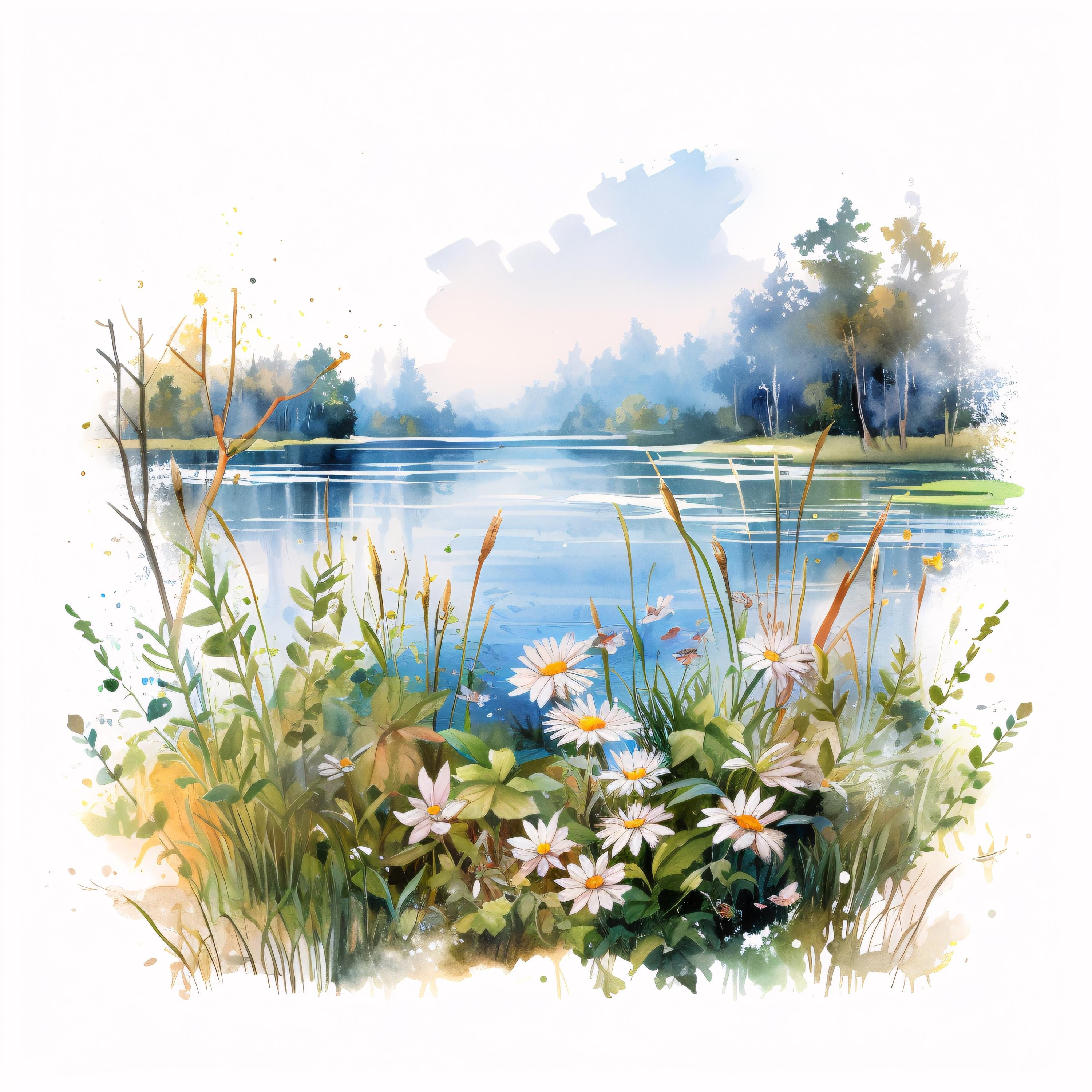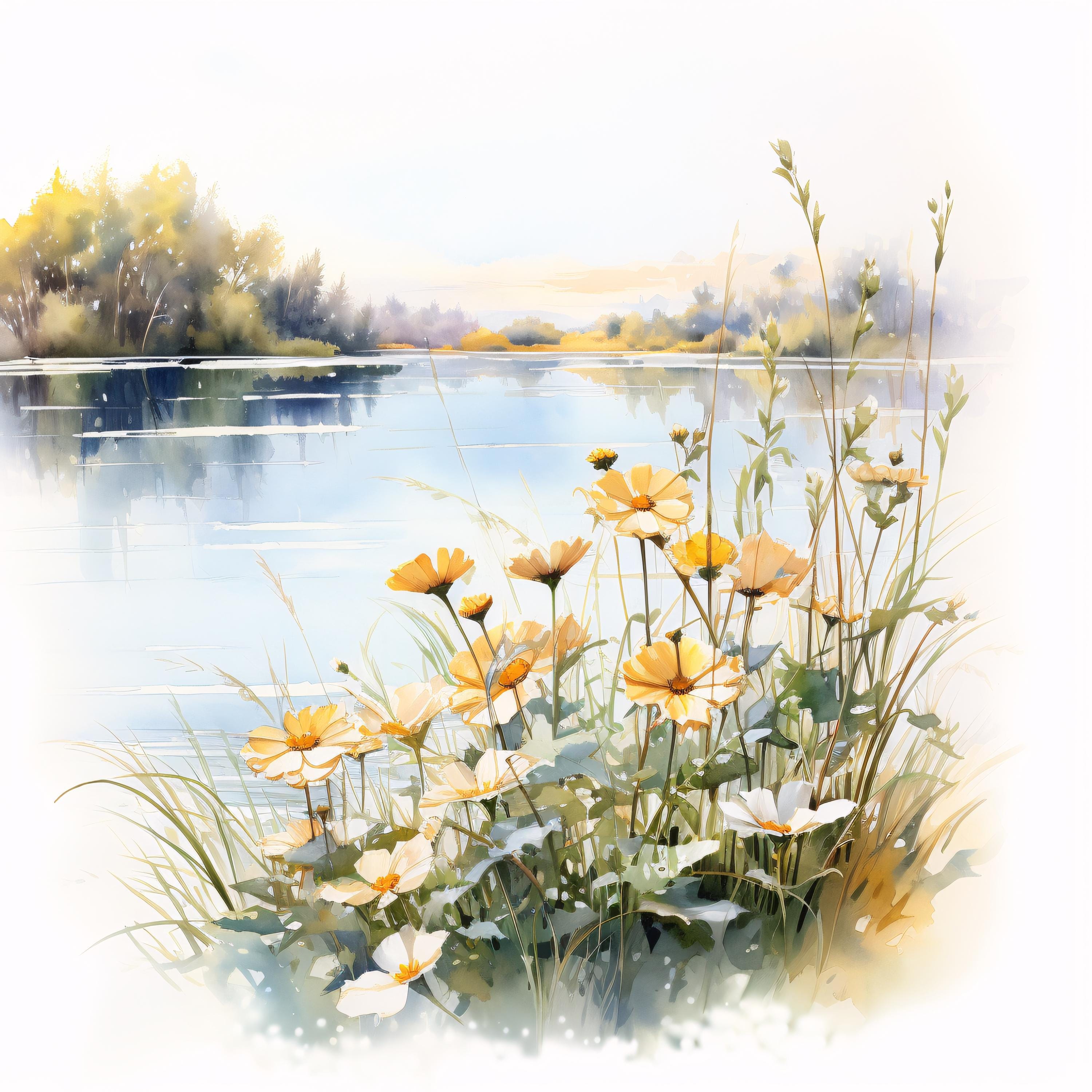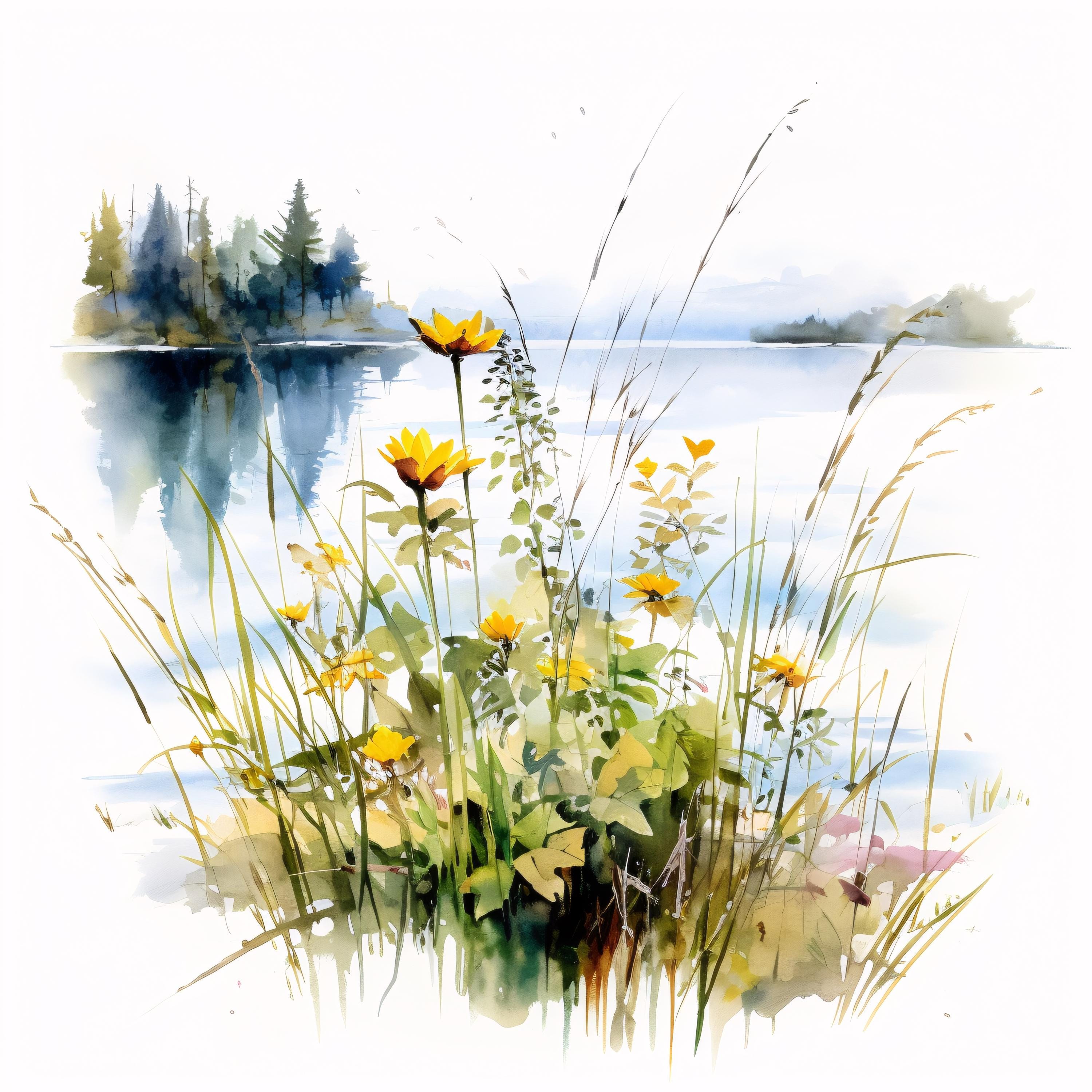 Lake and Wildflowers Clipart, Nature Landscape Images, 10 Watercolor Clip Art, Printable JPGs, Instant Download, Commercial Use, Paper craft