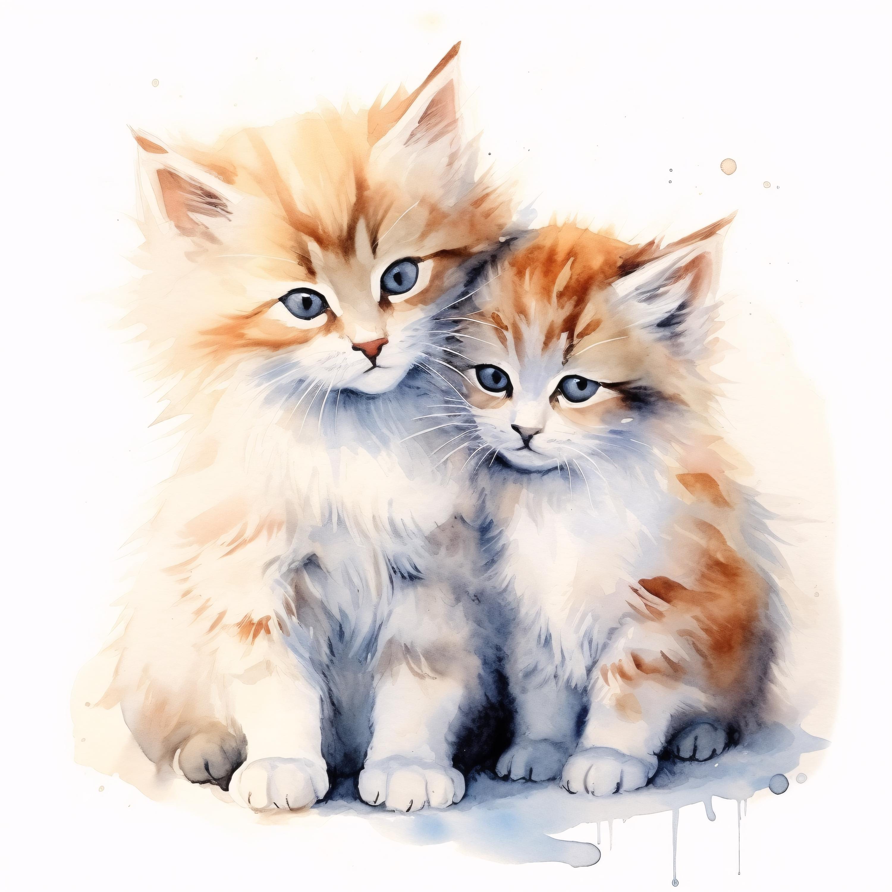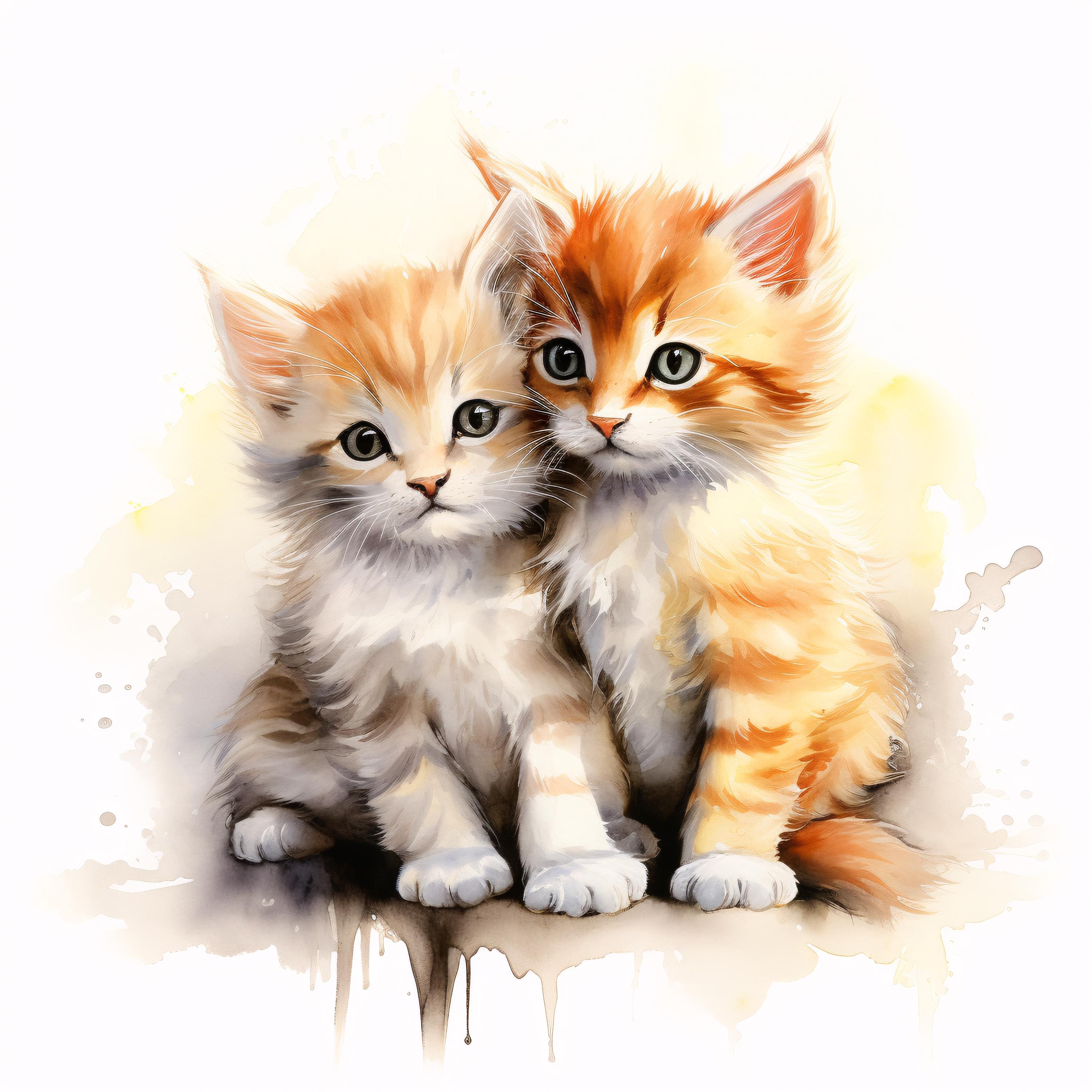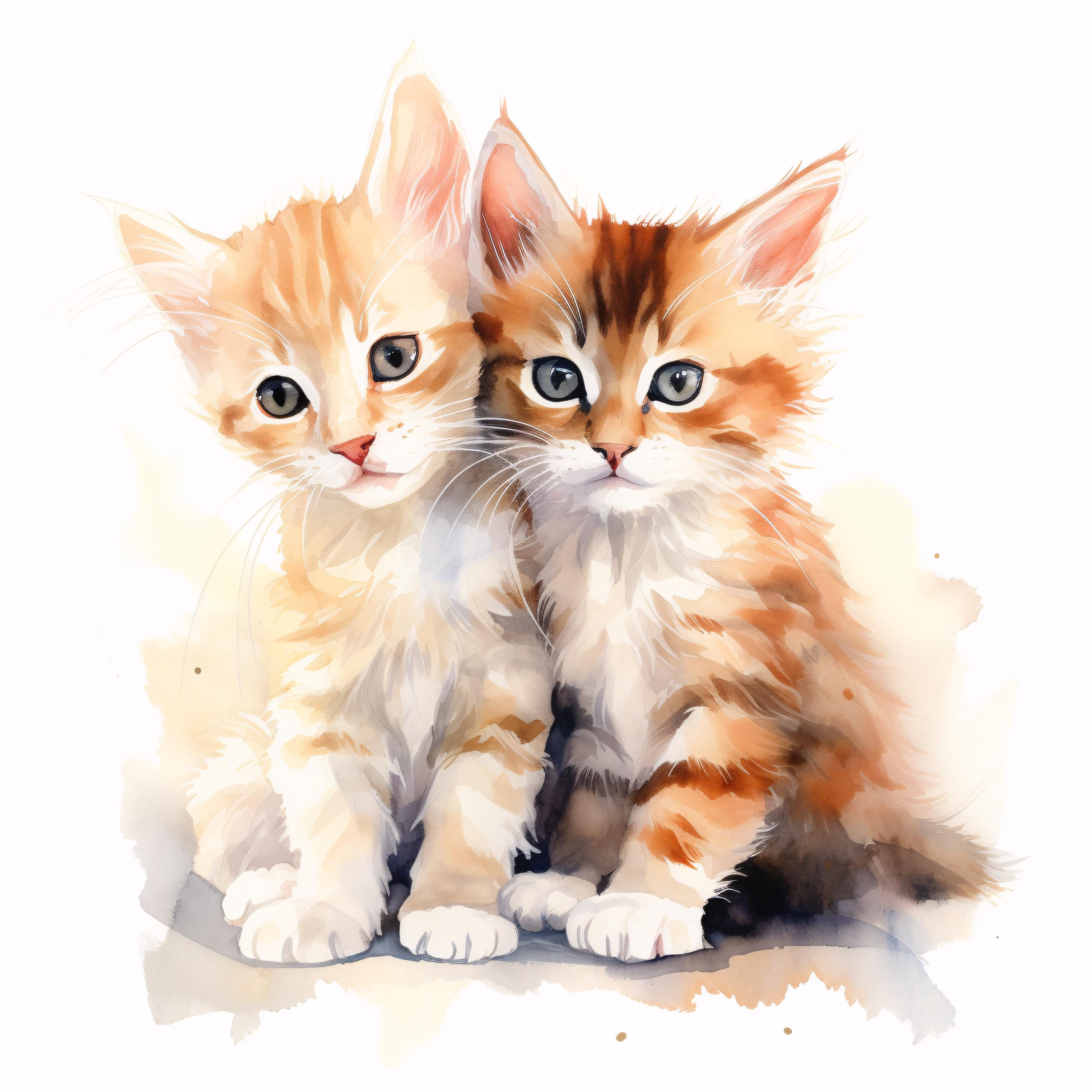 Cute Cats Clipart, Kitten Friends Images, 10 Watercolor Clip Art, Printable JPGs, Instant Download, Commercial Use, Paper craft