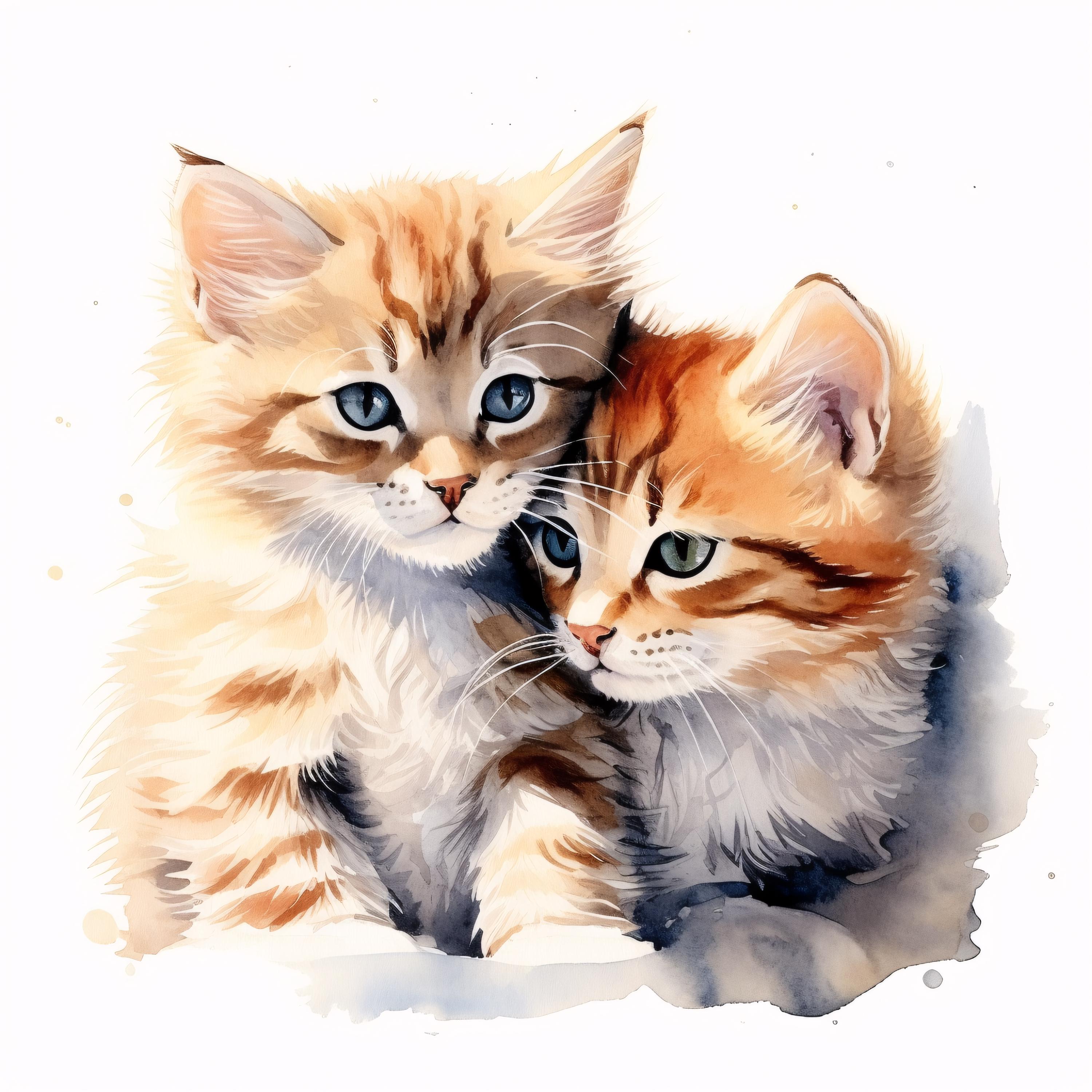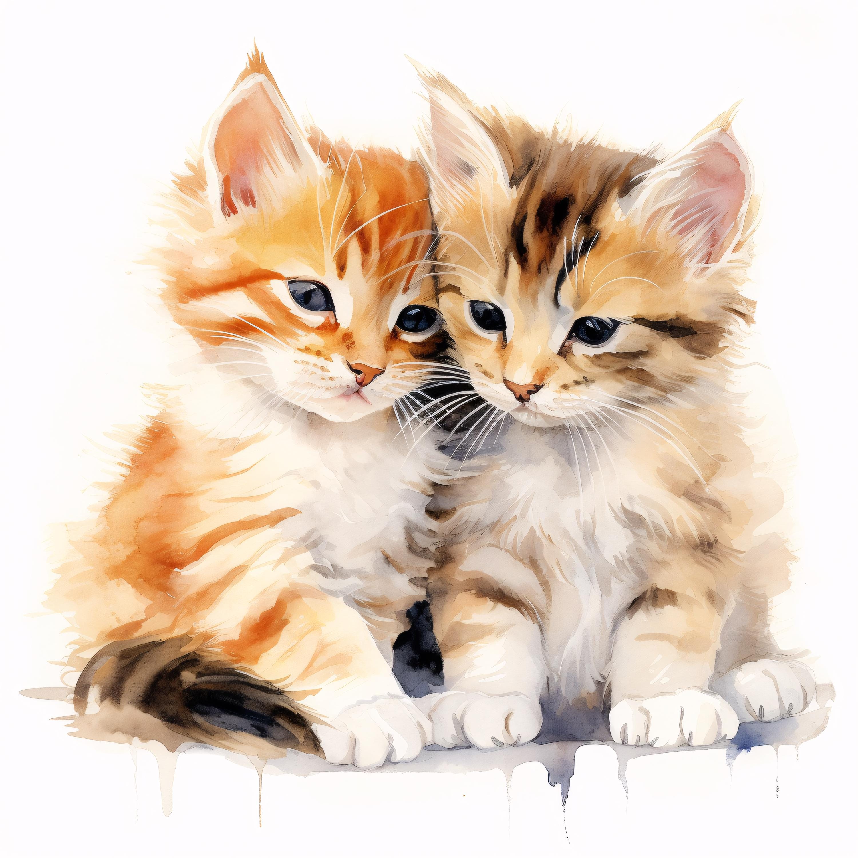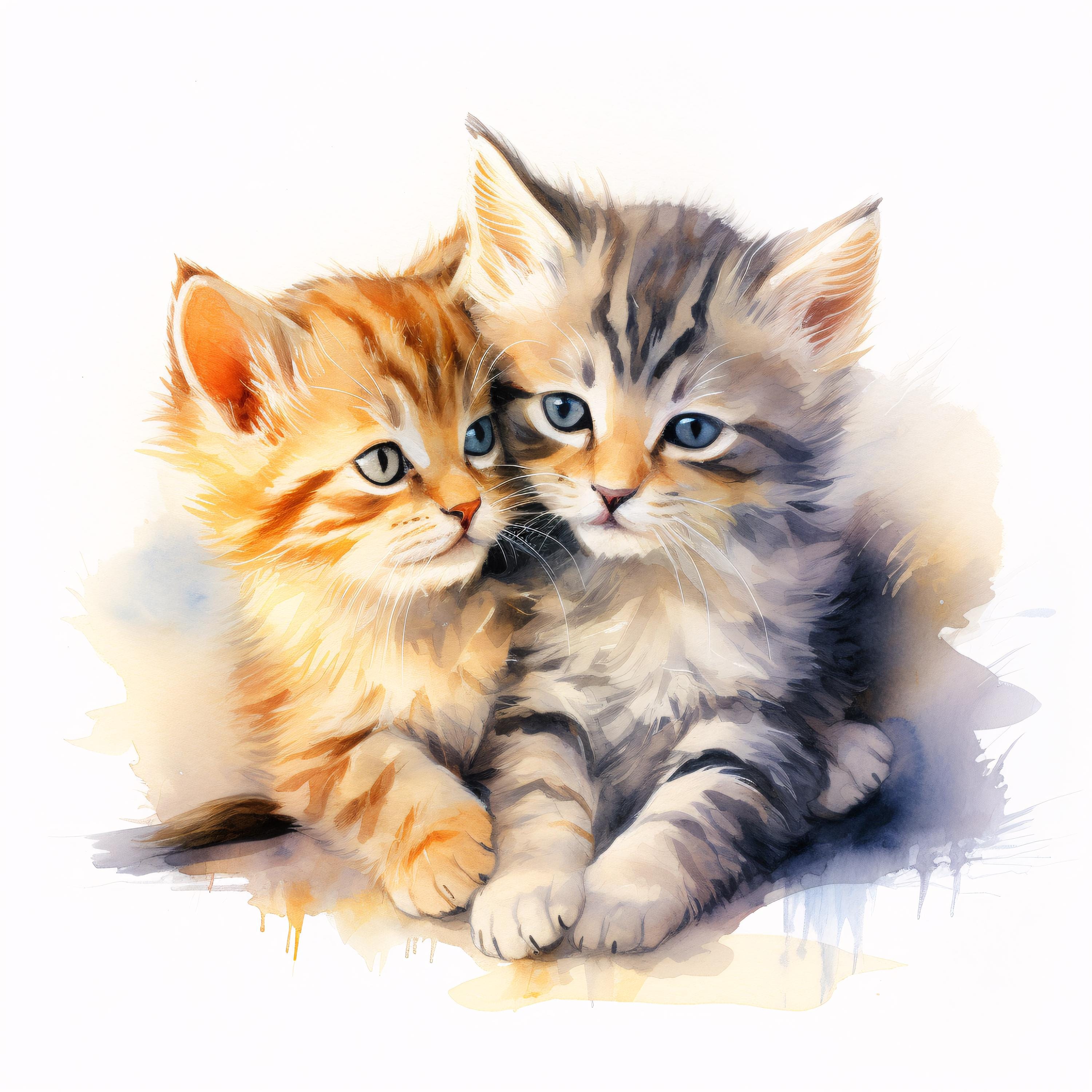 Cute Cats Clipart, Kitten Friends Images, 10 Watercolor Clip Art, Printable JPGs, Instant Download, Commercial Use, Paper craft