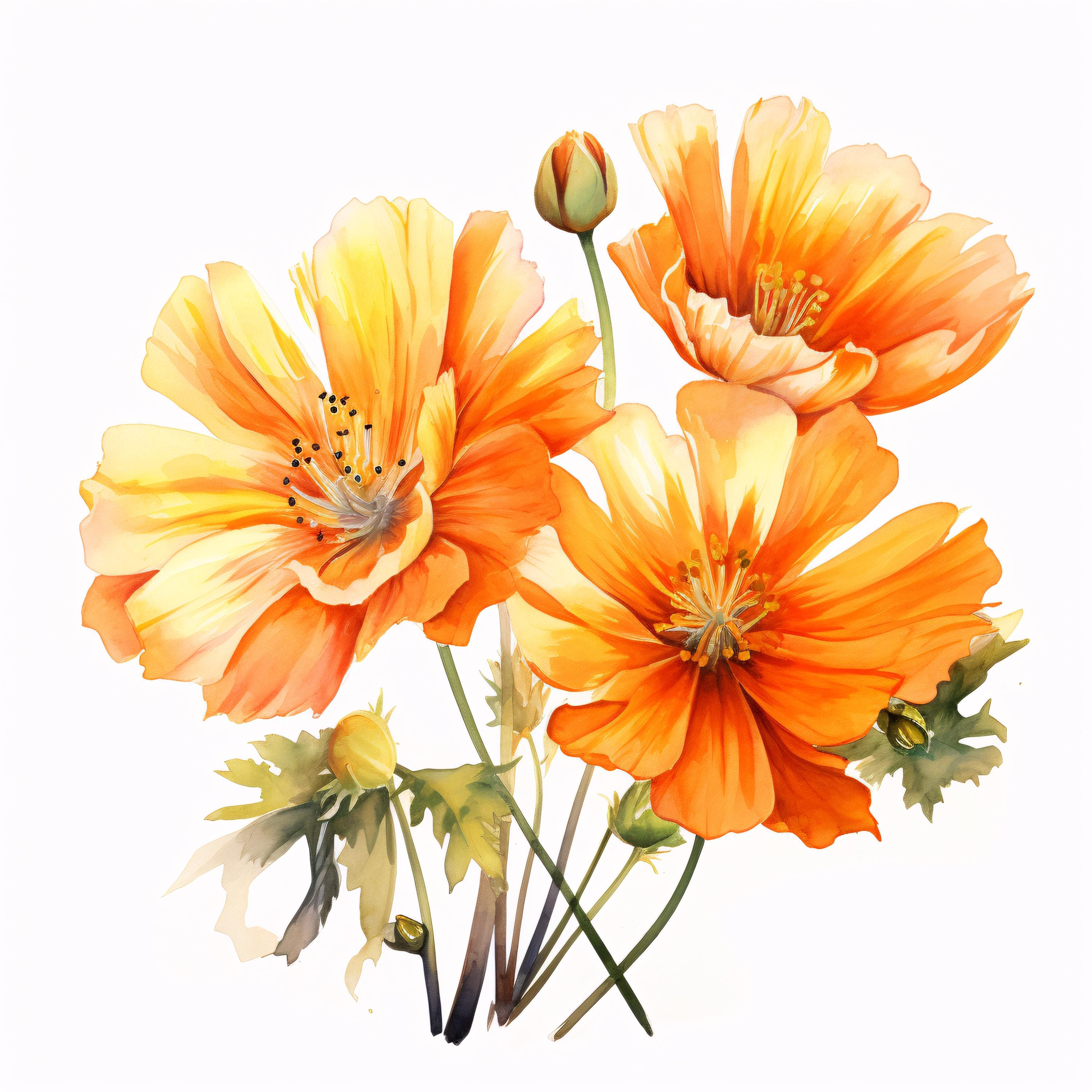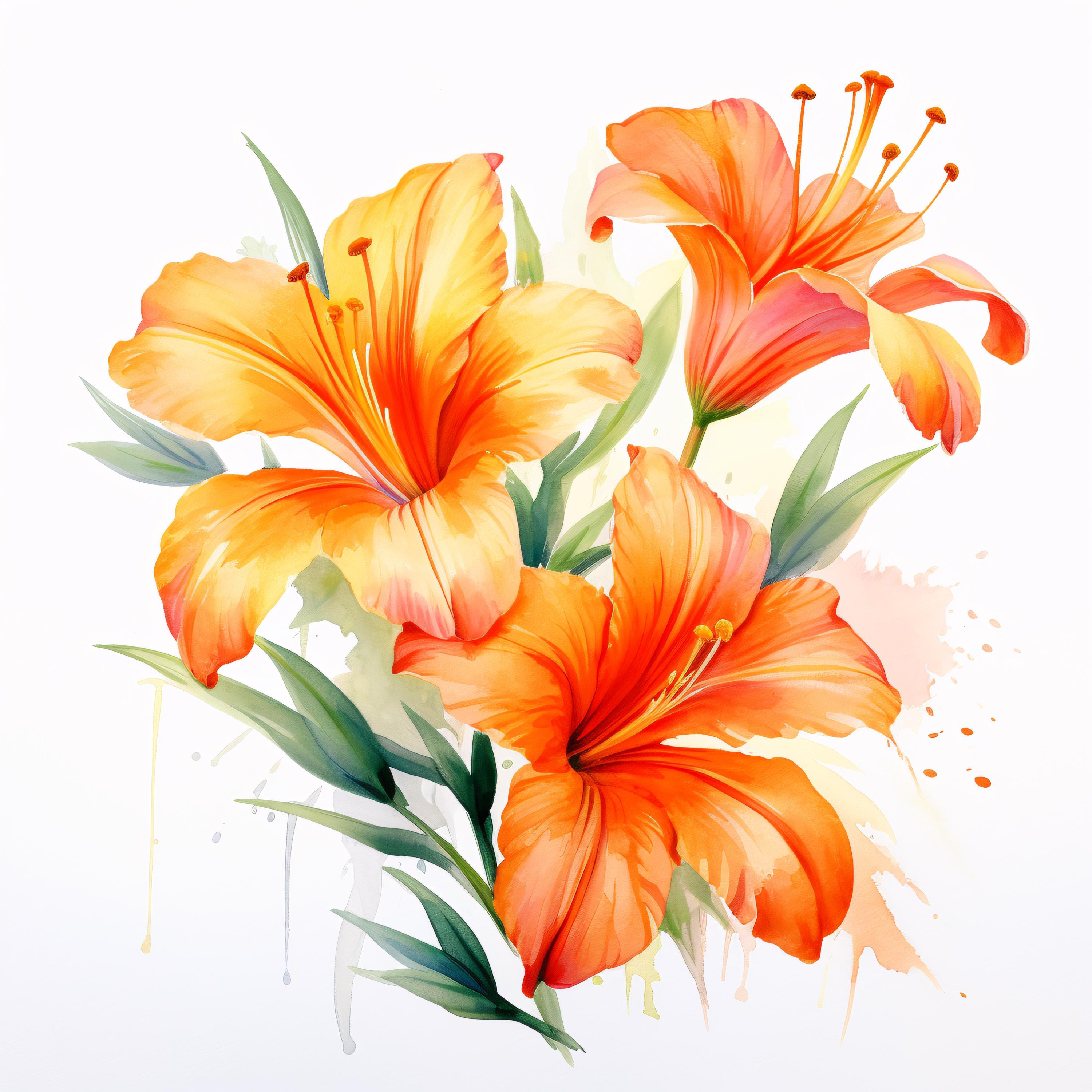 Orange Flower Clipart, Lily Bloom Images, 10 Watercolor Clip Art, Printable JPGs, Instant Download, Commercial Use, Paper craft
