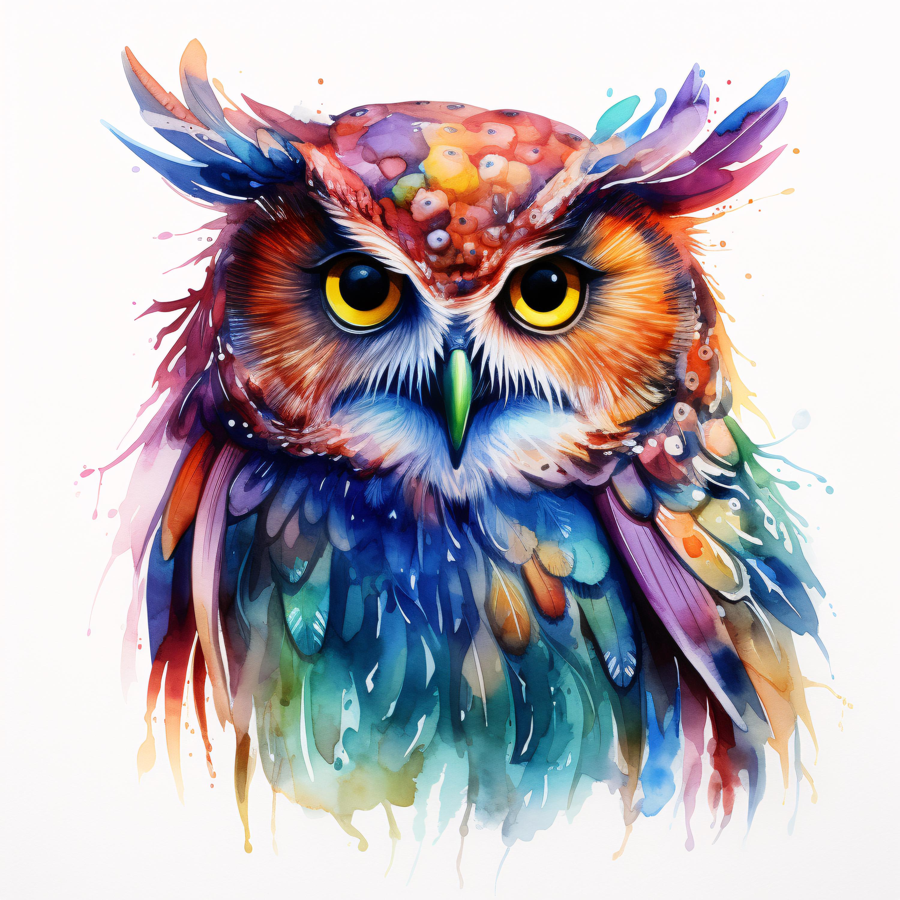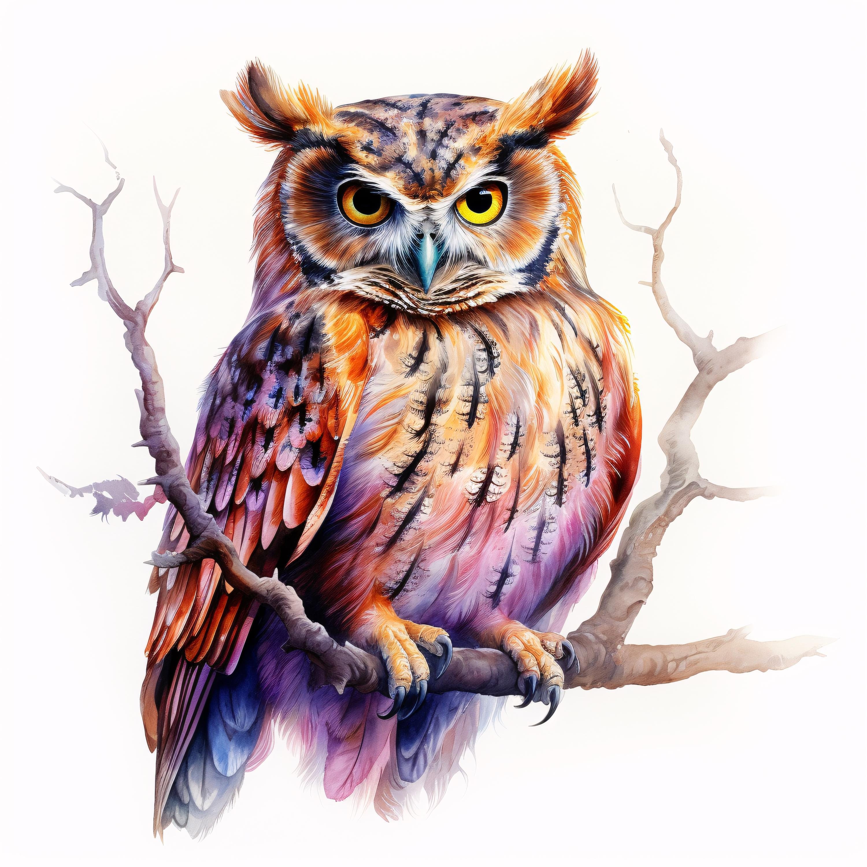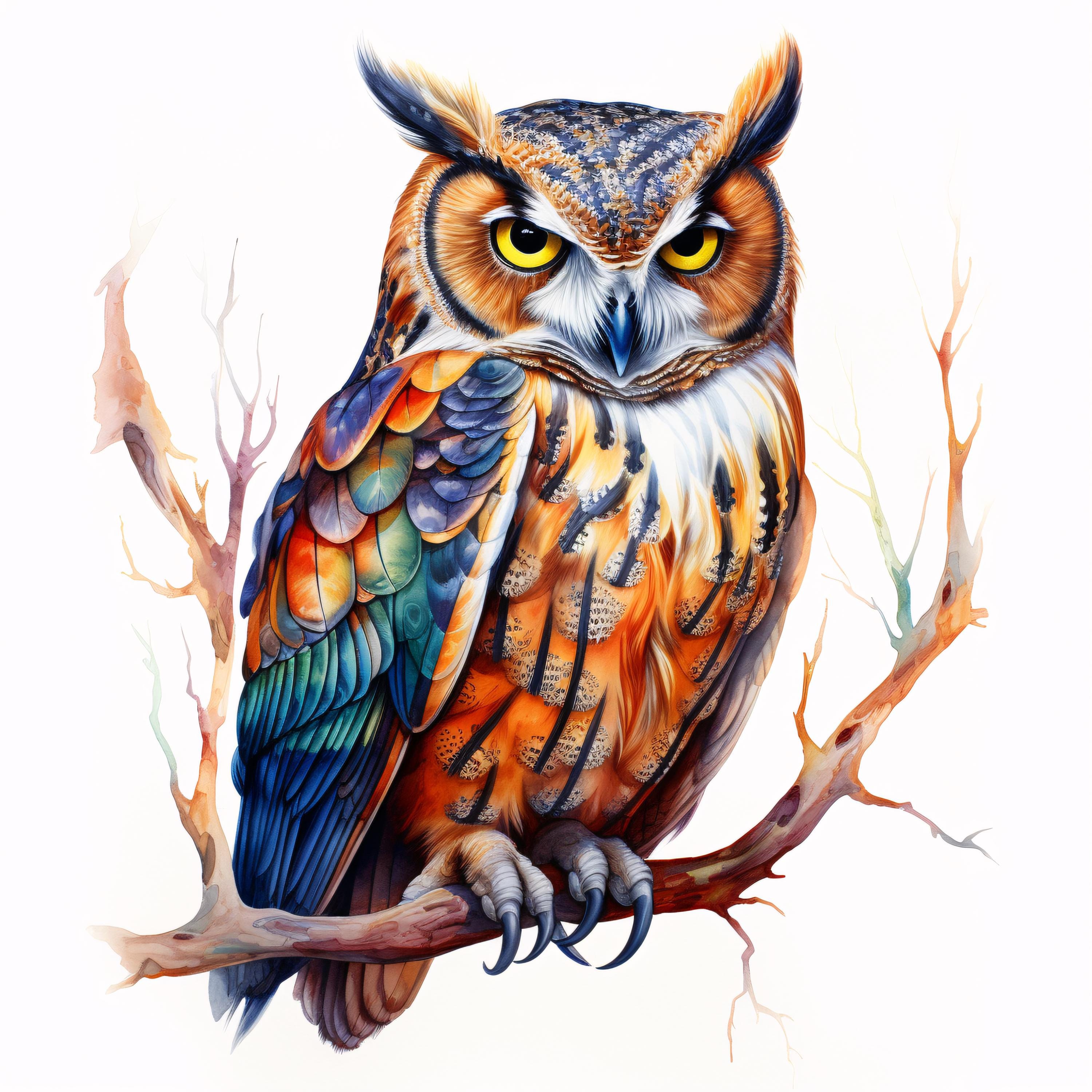 Owl Clipart, Colorful Bird Images, 10 Watercolor Clip Art, Printable JPGs, Instant Download, Commercial Use, Paper craft
