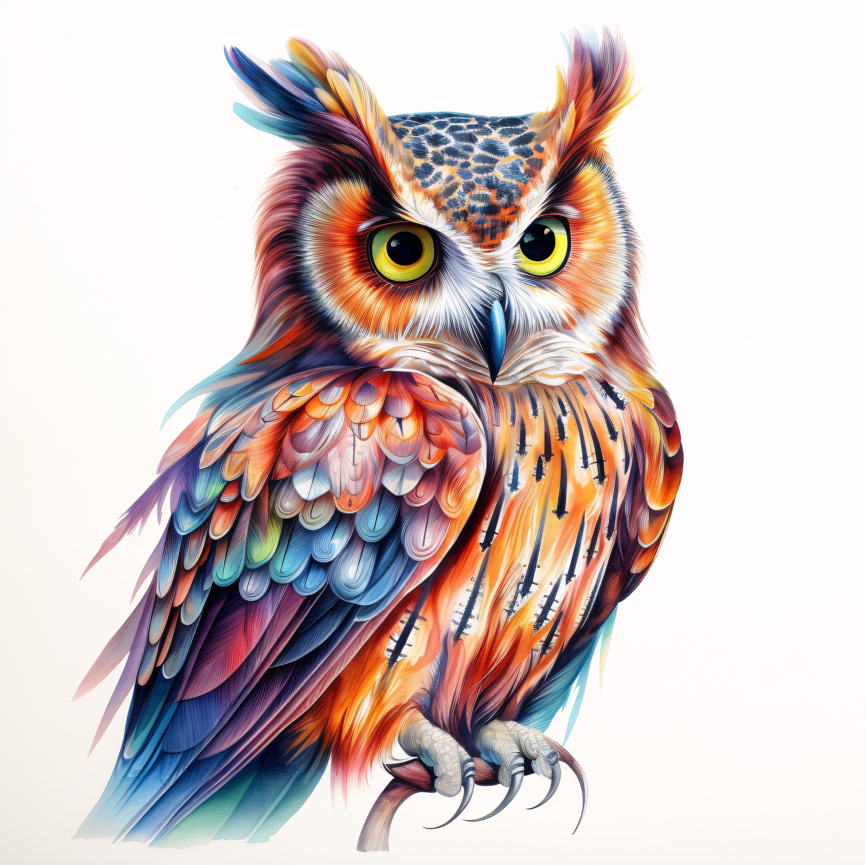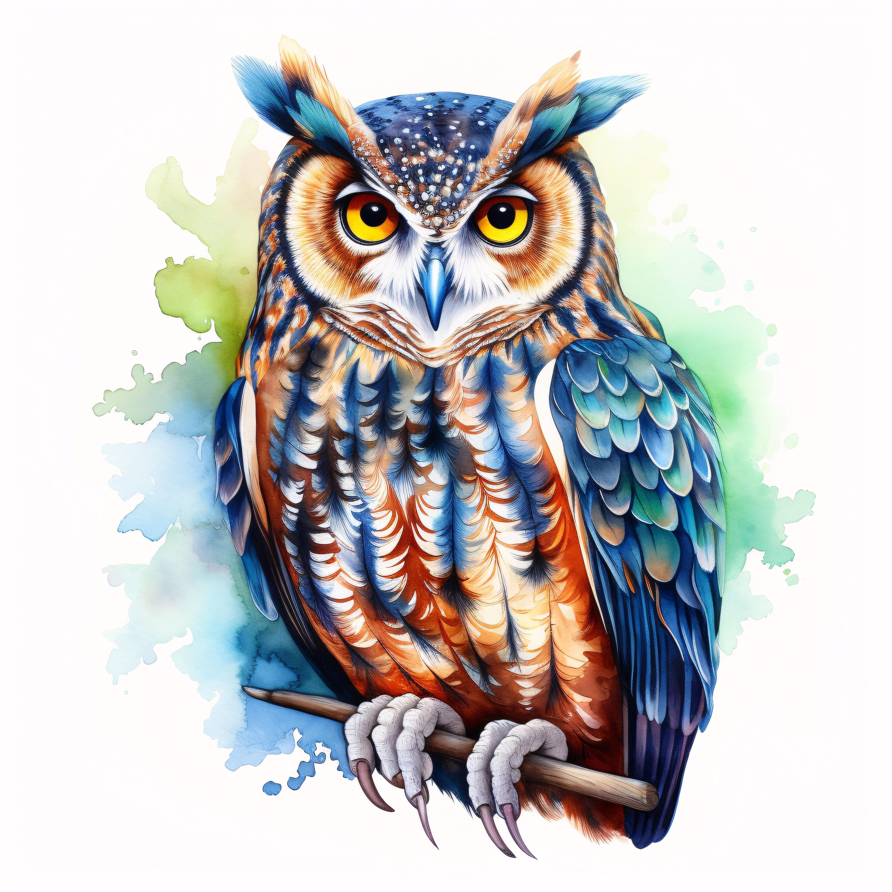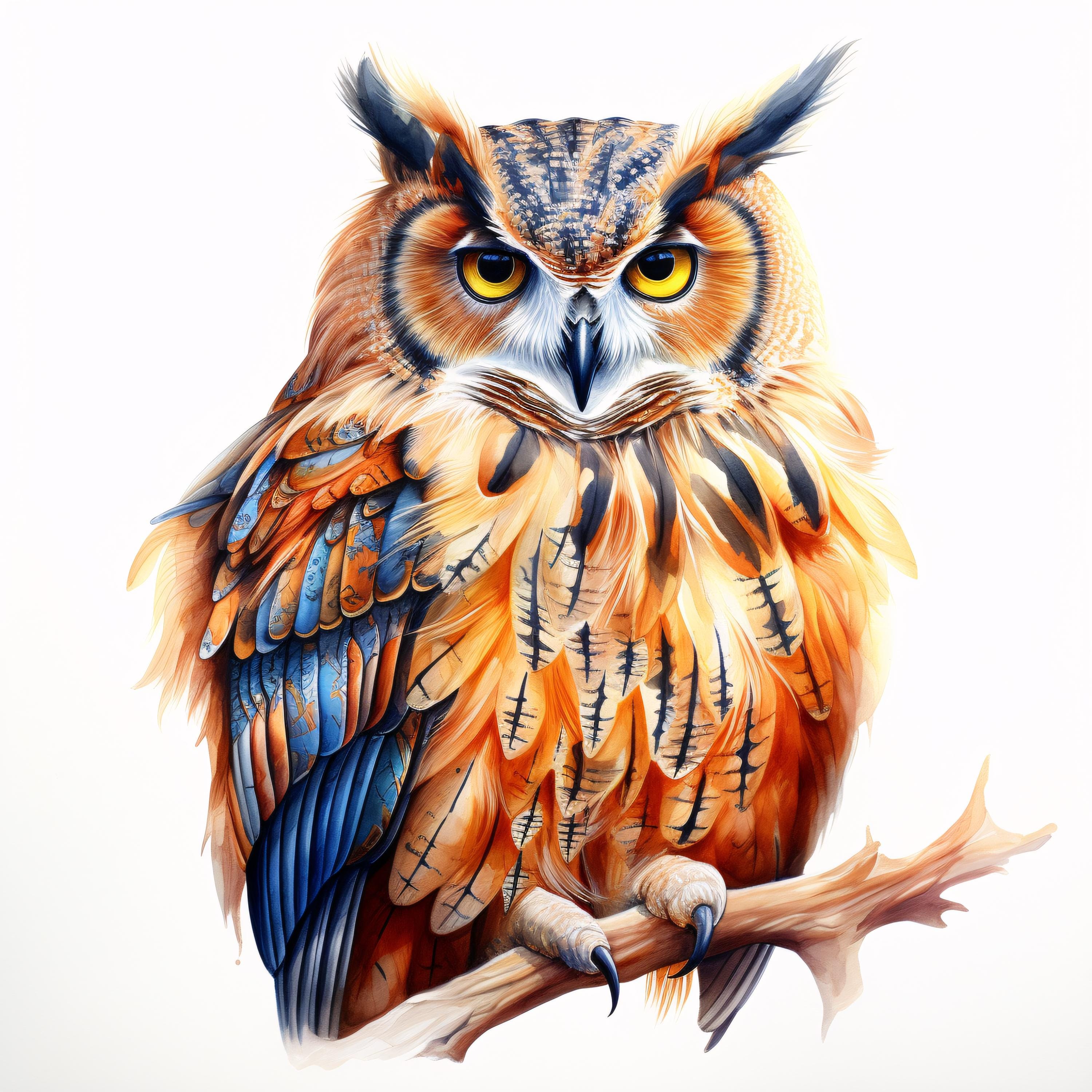 Owl Clipart, Colorful Bird Images, 10 Watercolor Clip Art, Printable JPGs, Instant Download, Commercial Use, Paper craft
