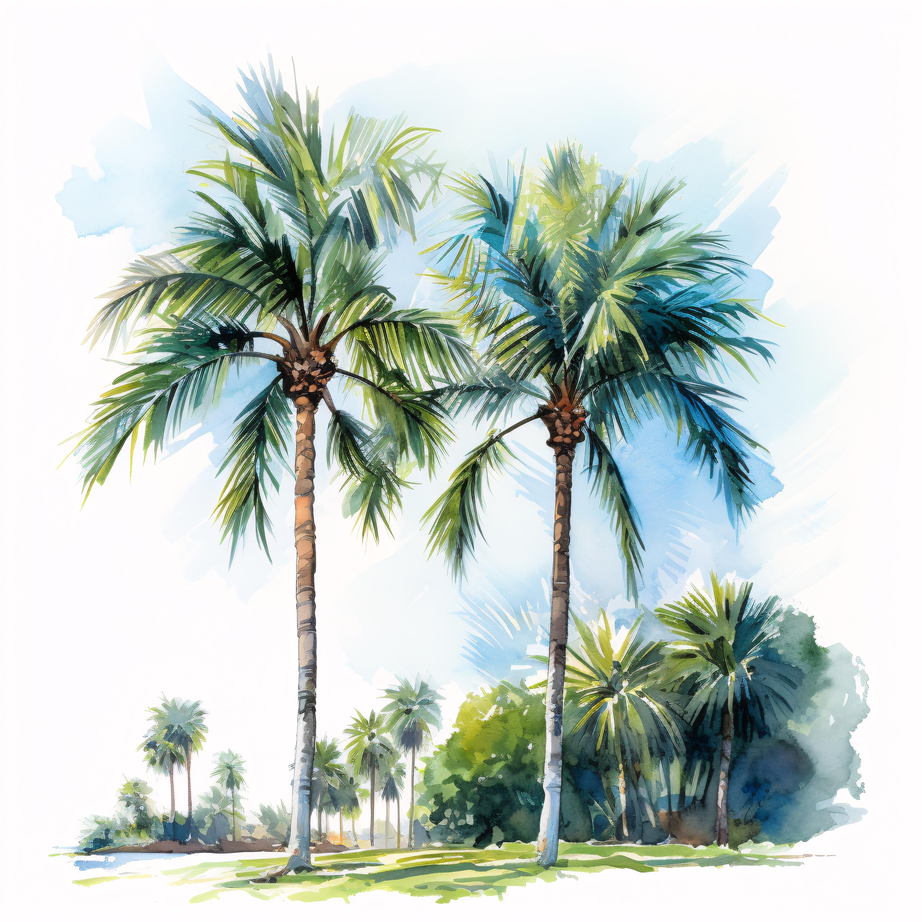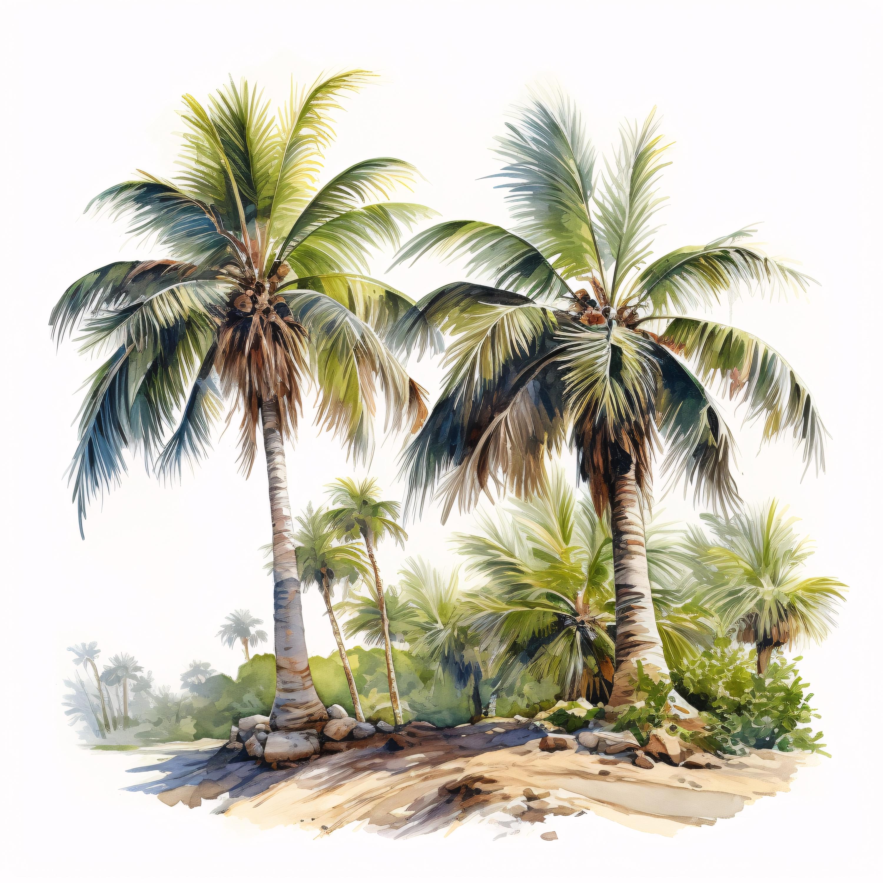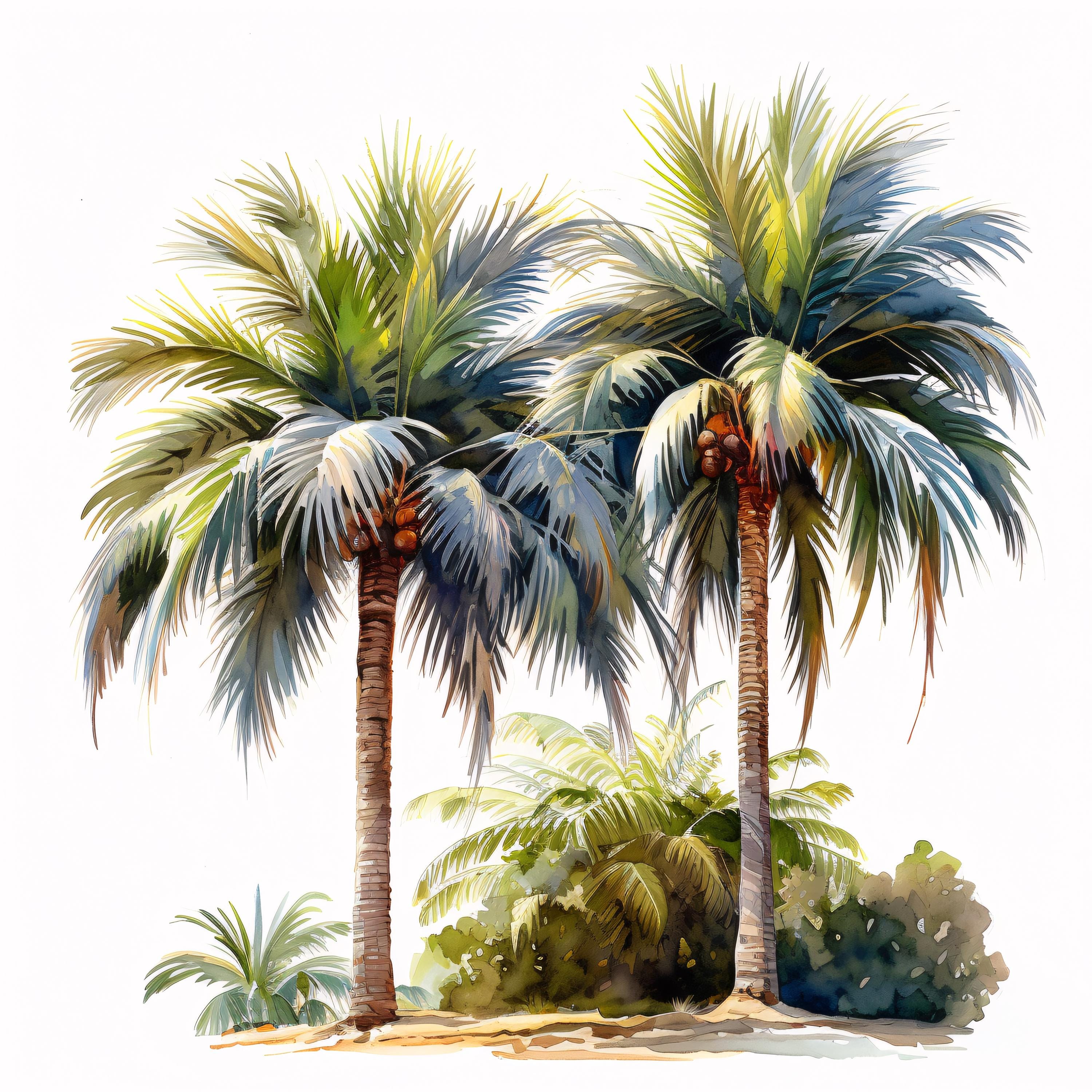 Palm Tree Clipart, Tropical Beach Images, 10 Watercolor Clip Art, Printable JPGs, Instant Download, Commercial Use, Paper craft
