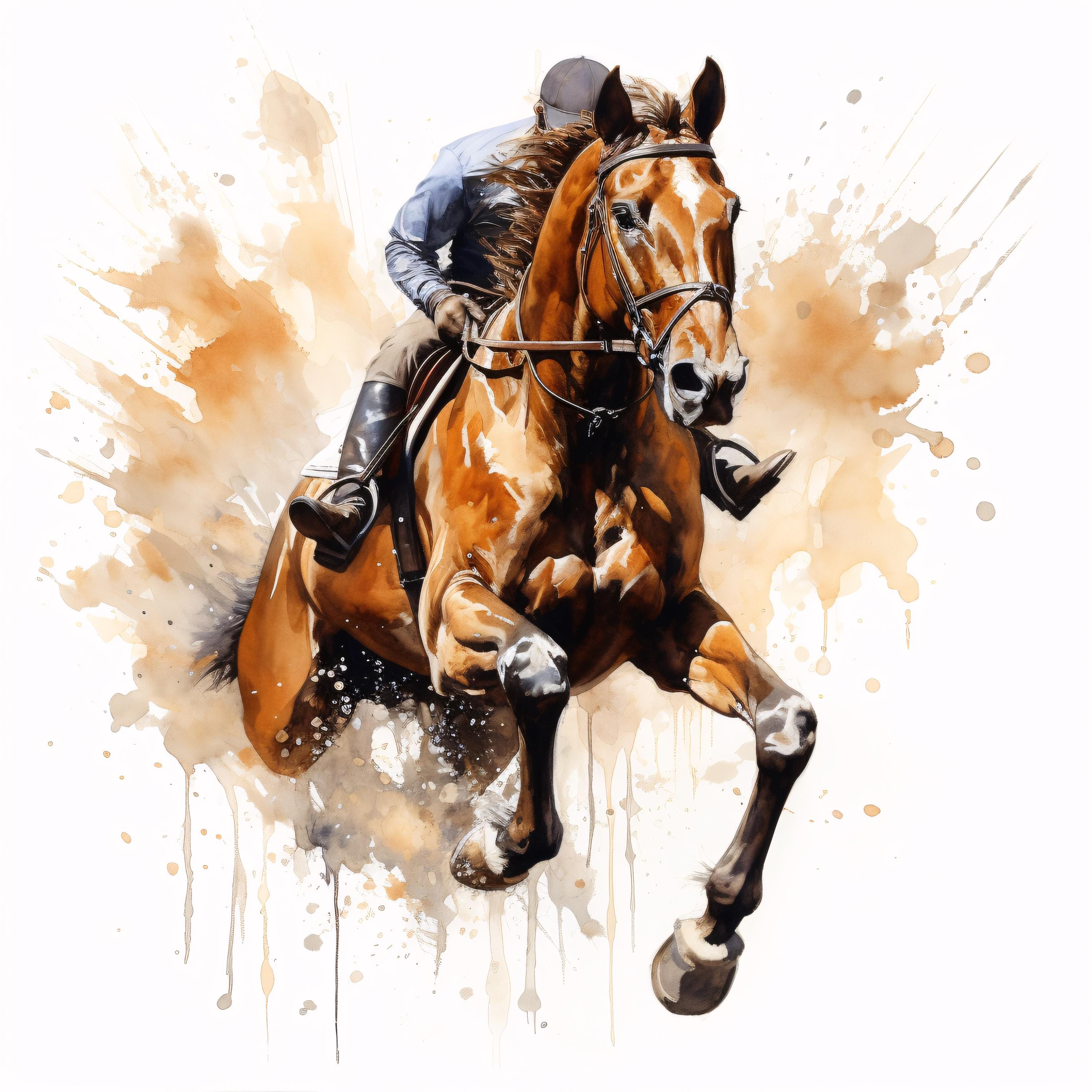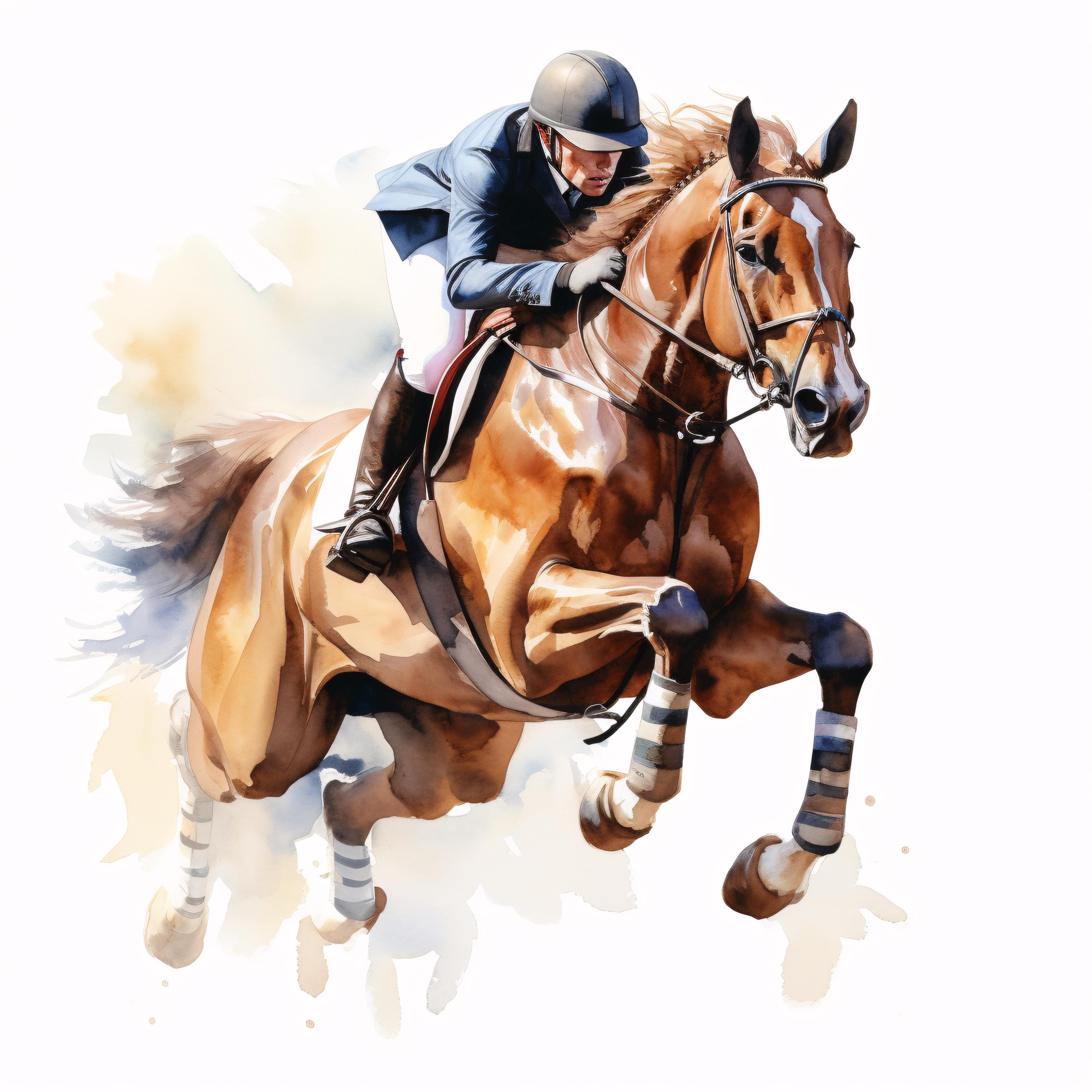 Horse Jumping Clipart, Equestrian Images, 10 Watercolor Clip Art, Printable JPGs, Instant Download, Commercial Use, Paper craft