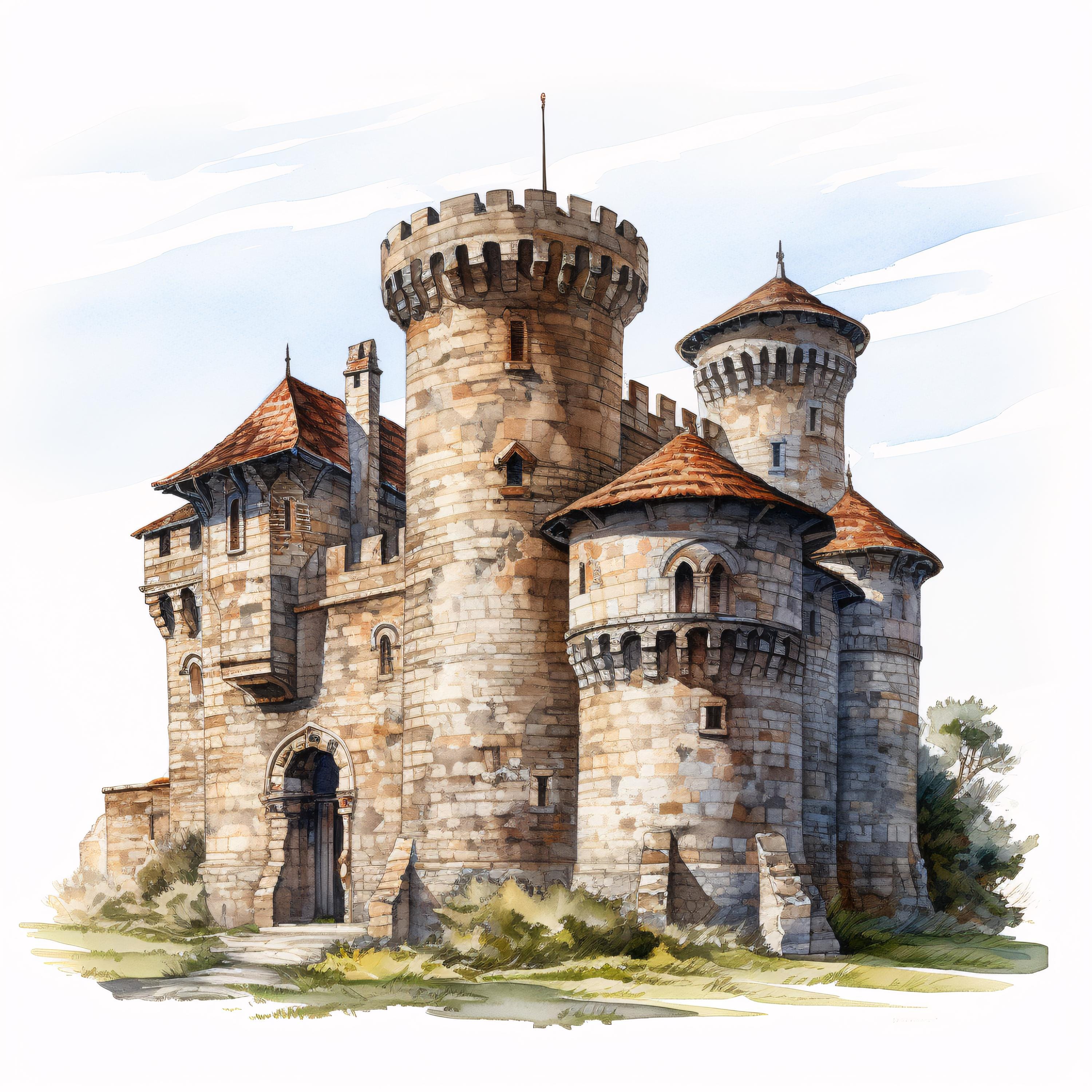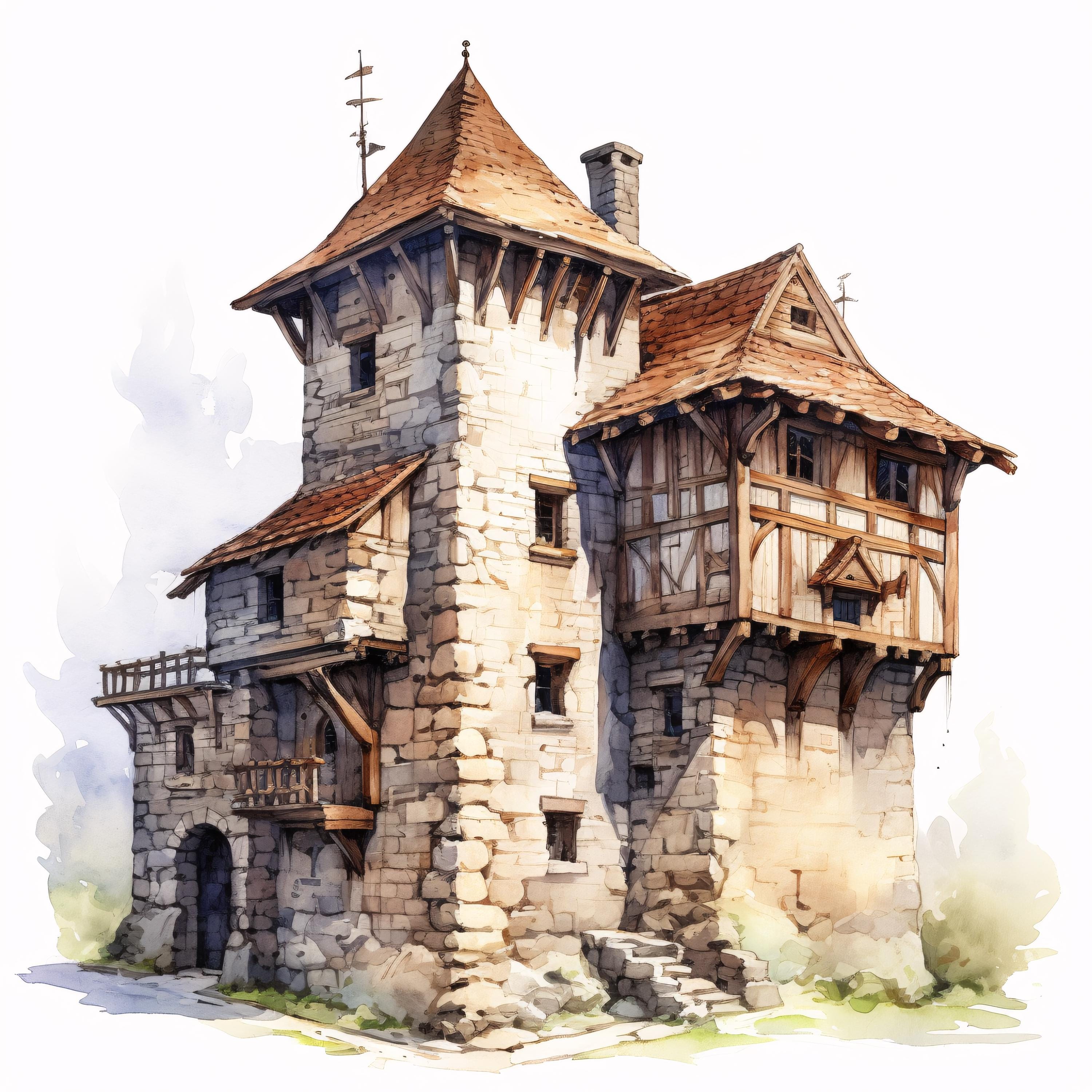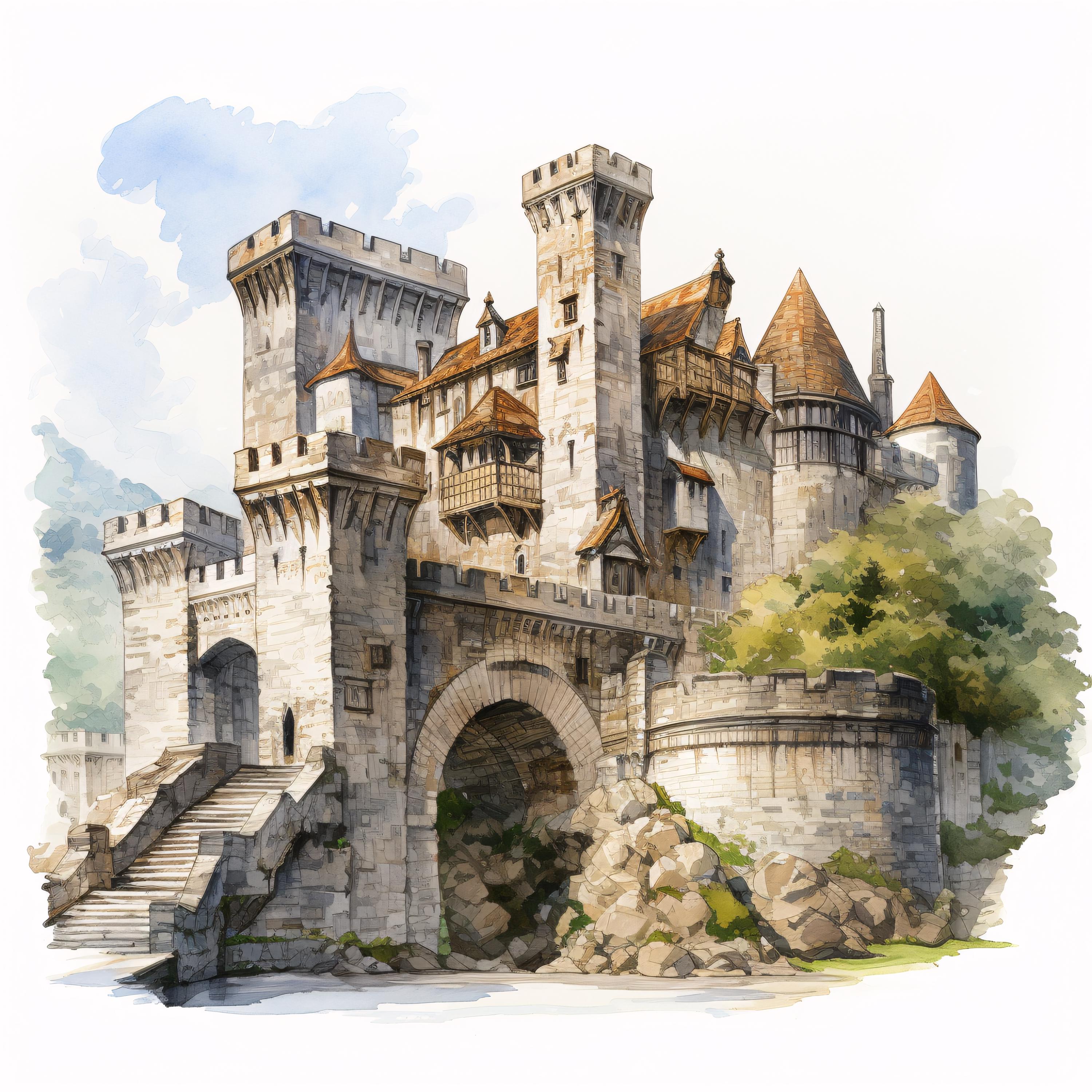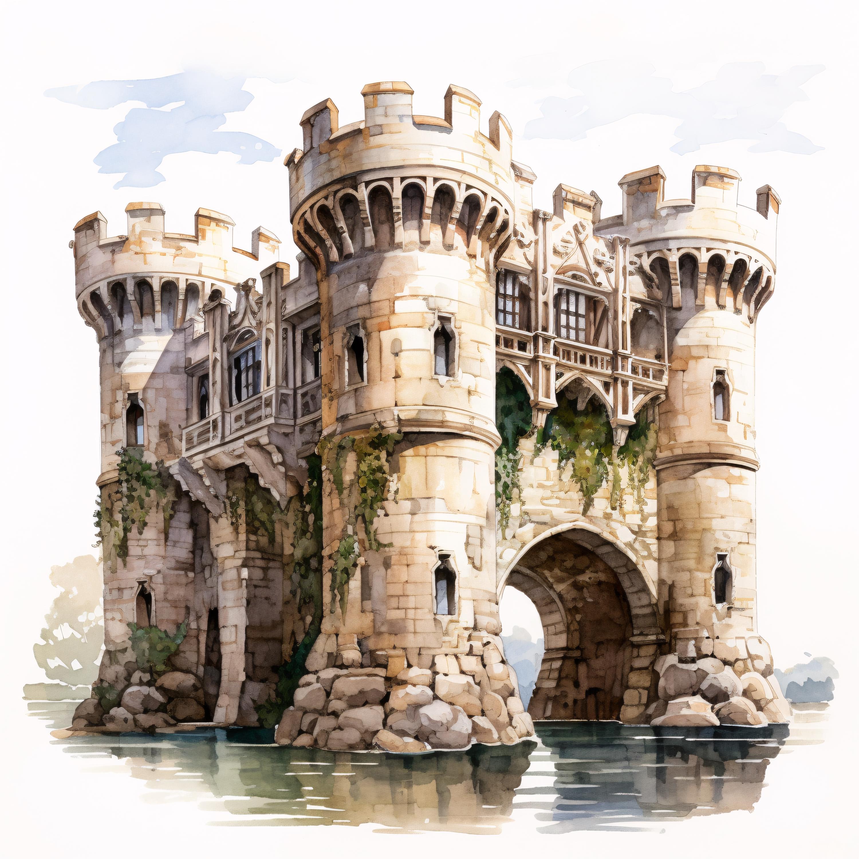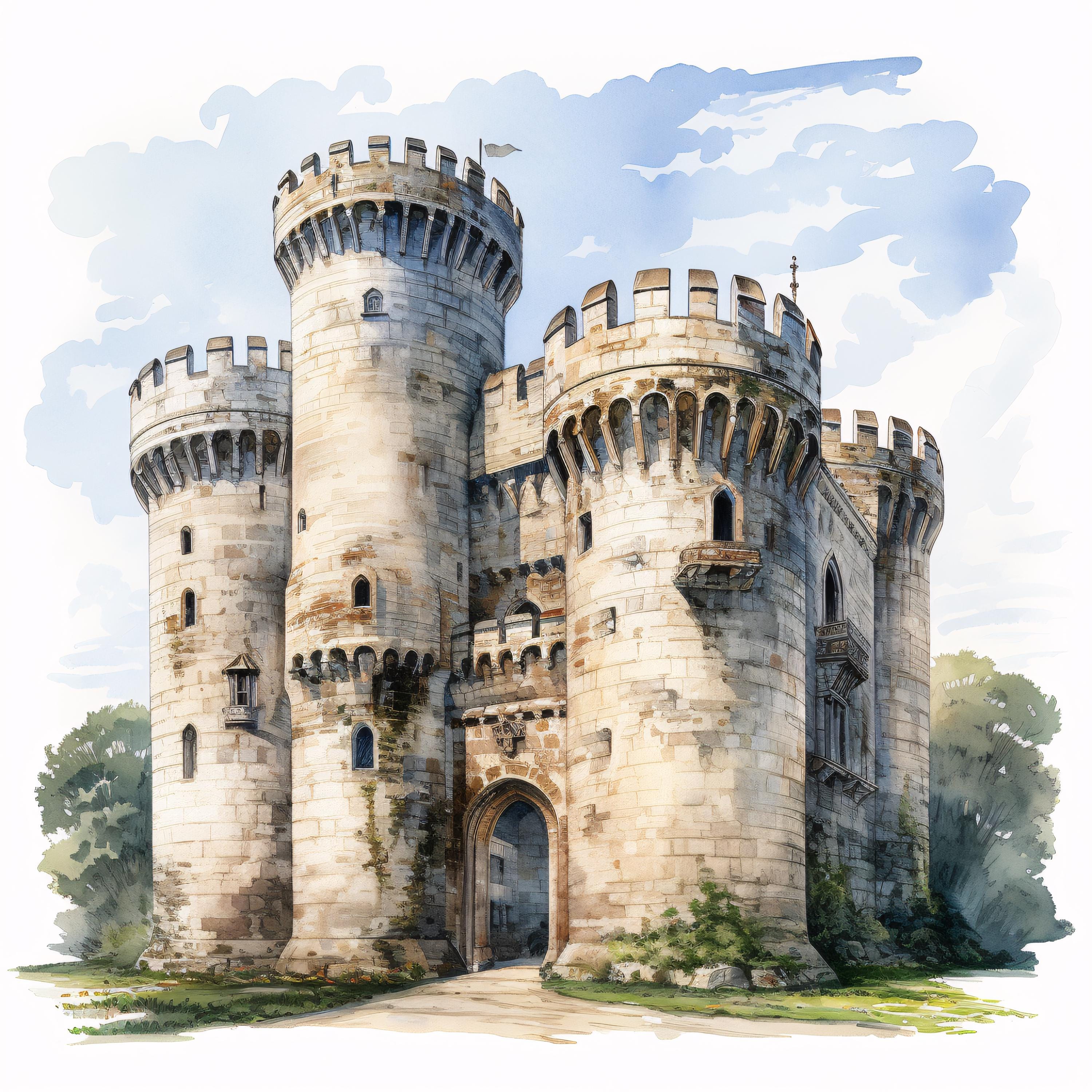 Medieval Castle Clipart, Fantasy Fortress Images, 10 Watercolor Clip Art, Printable JPGs, Instant Download, Commercial Use, Paper craft