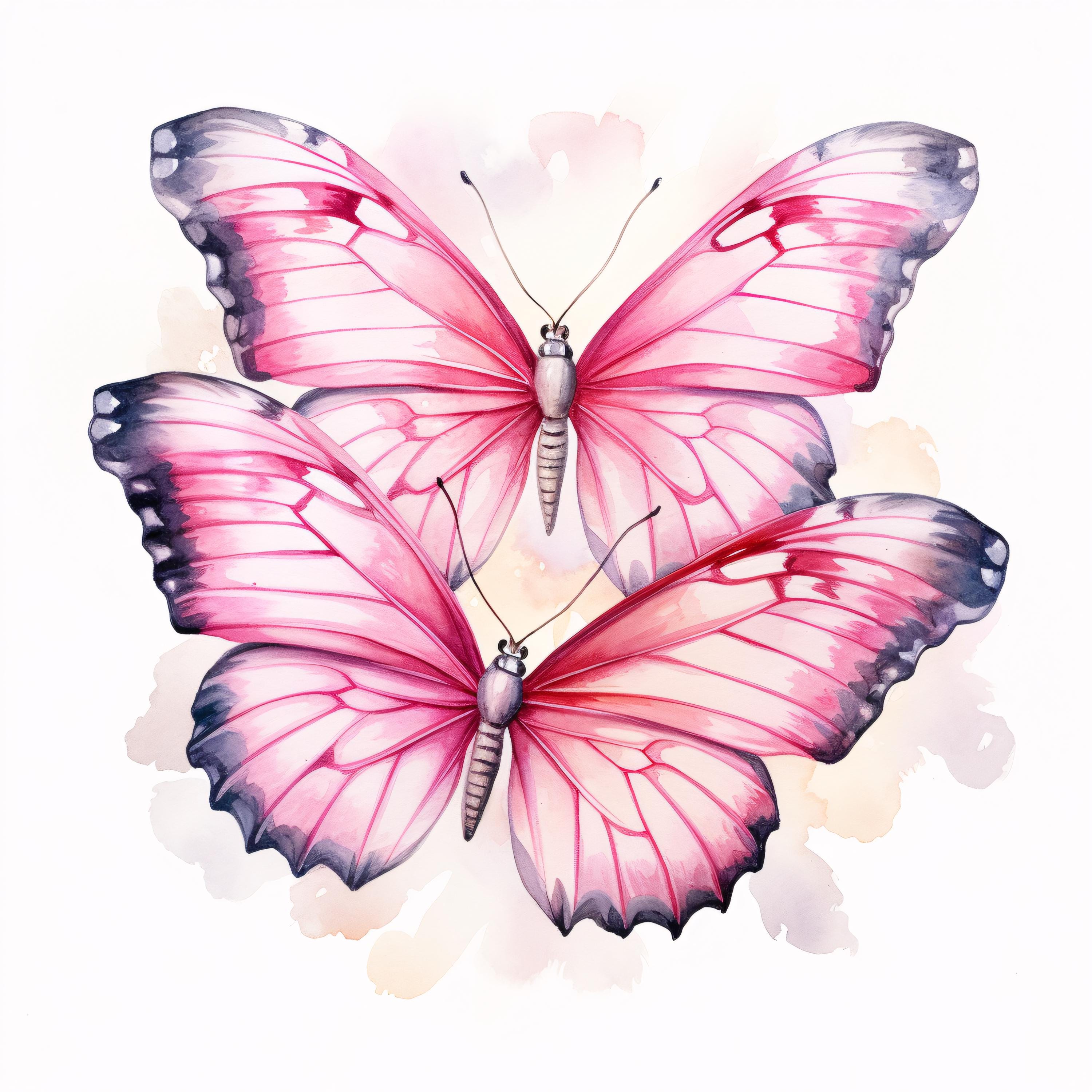 Pink Butterfly Clipart, Elegant Wings Images, 10 Watercolor Clip Art, Printable JPGs, Instant Download, Commercial Use, Paper craft