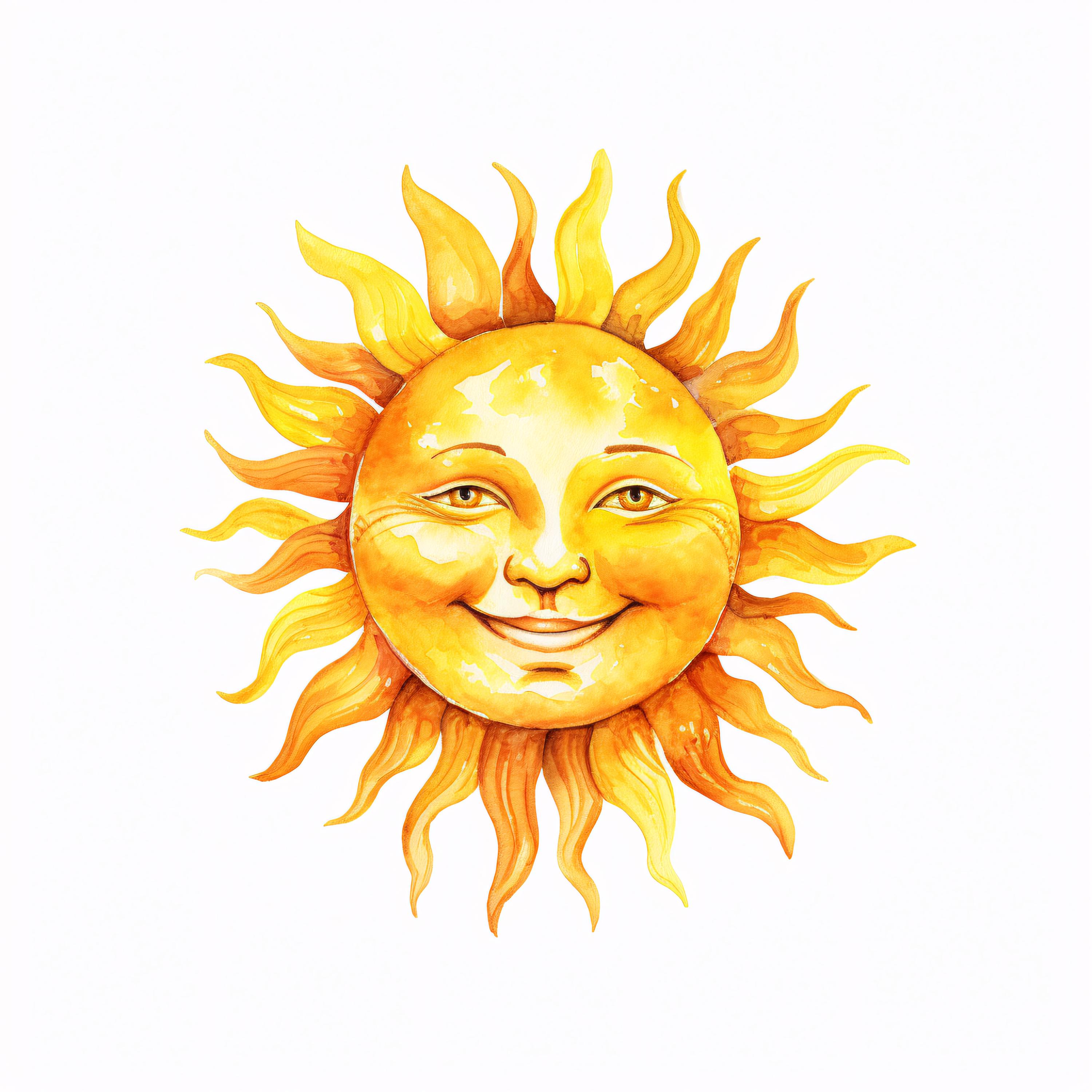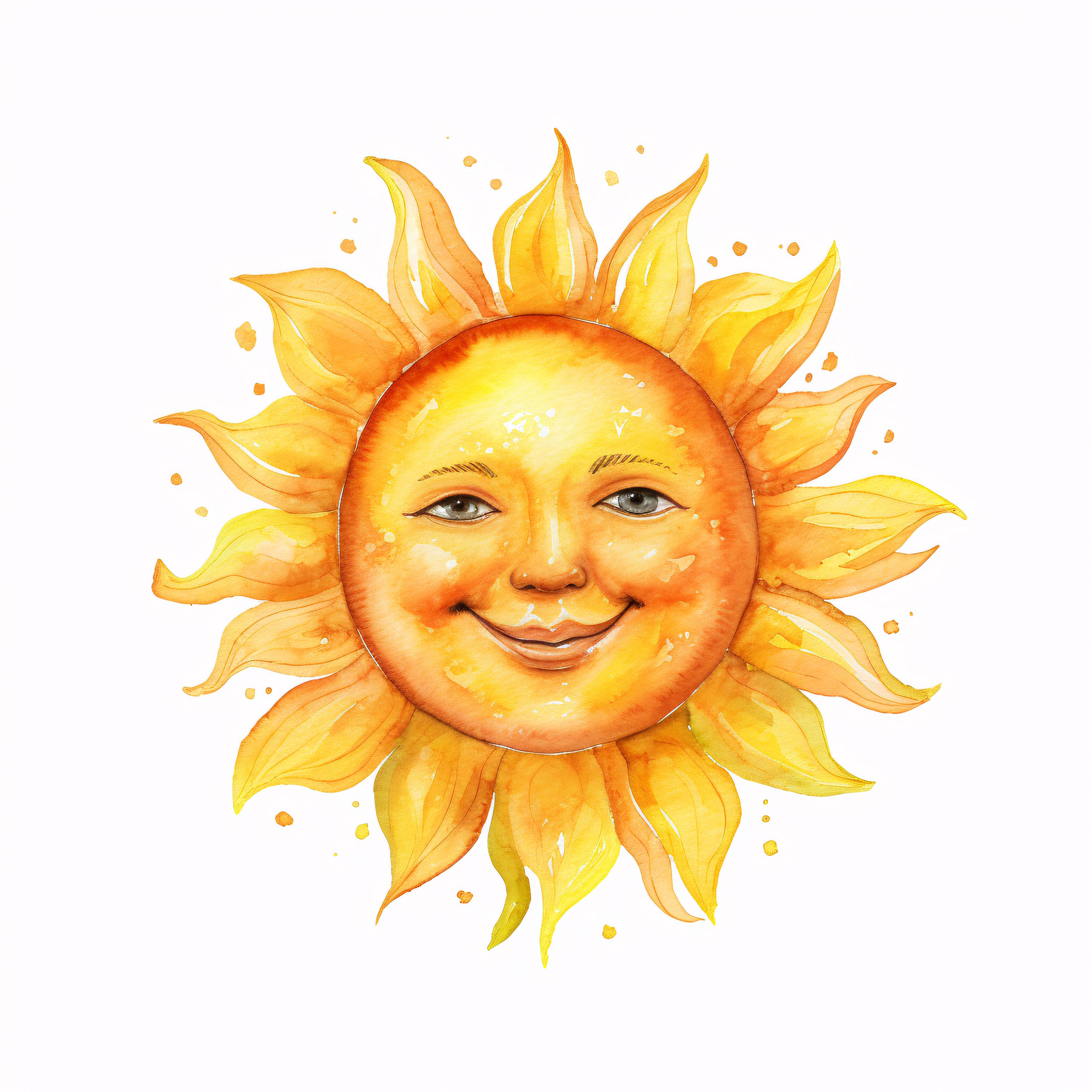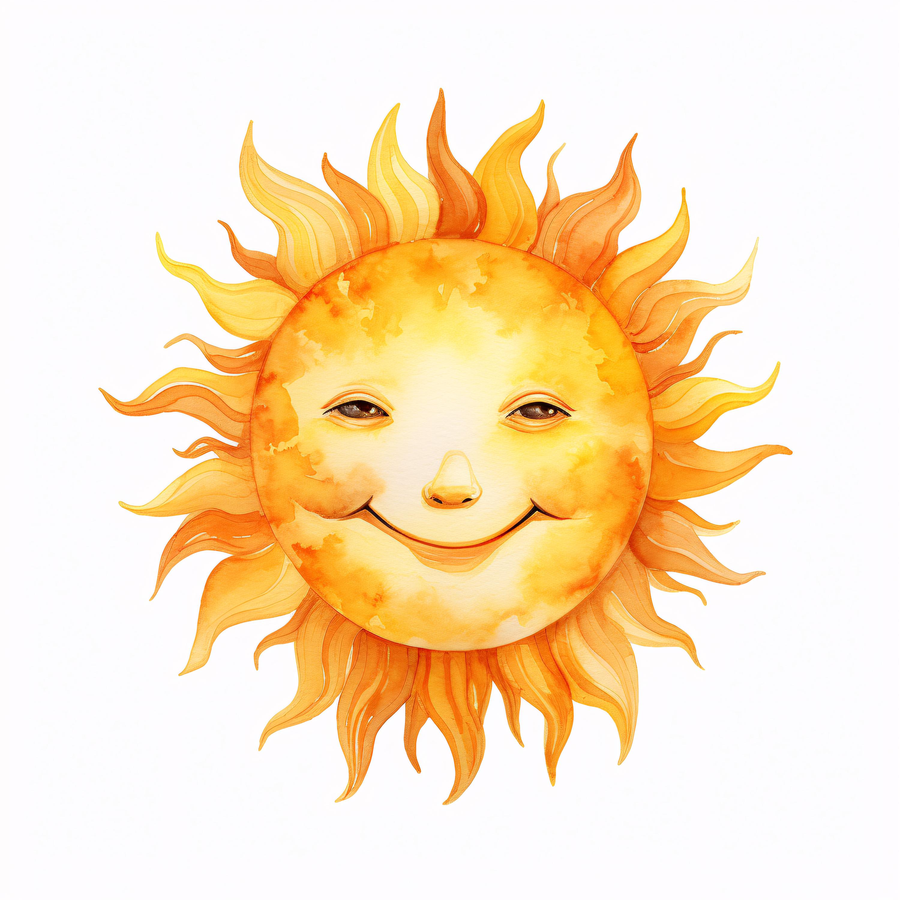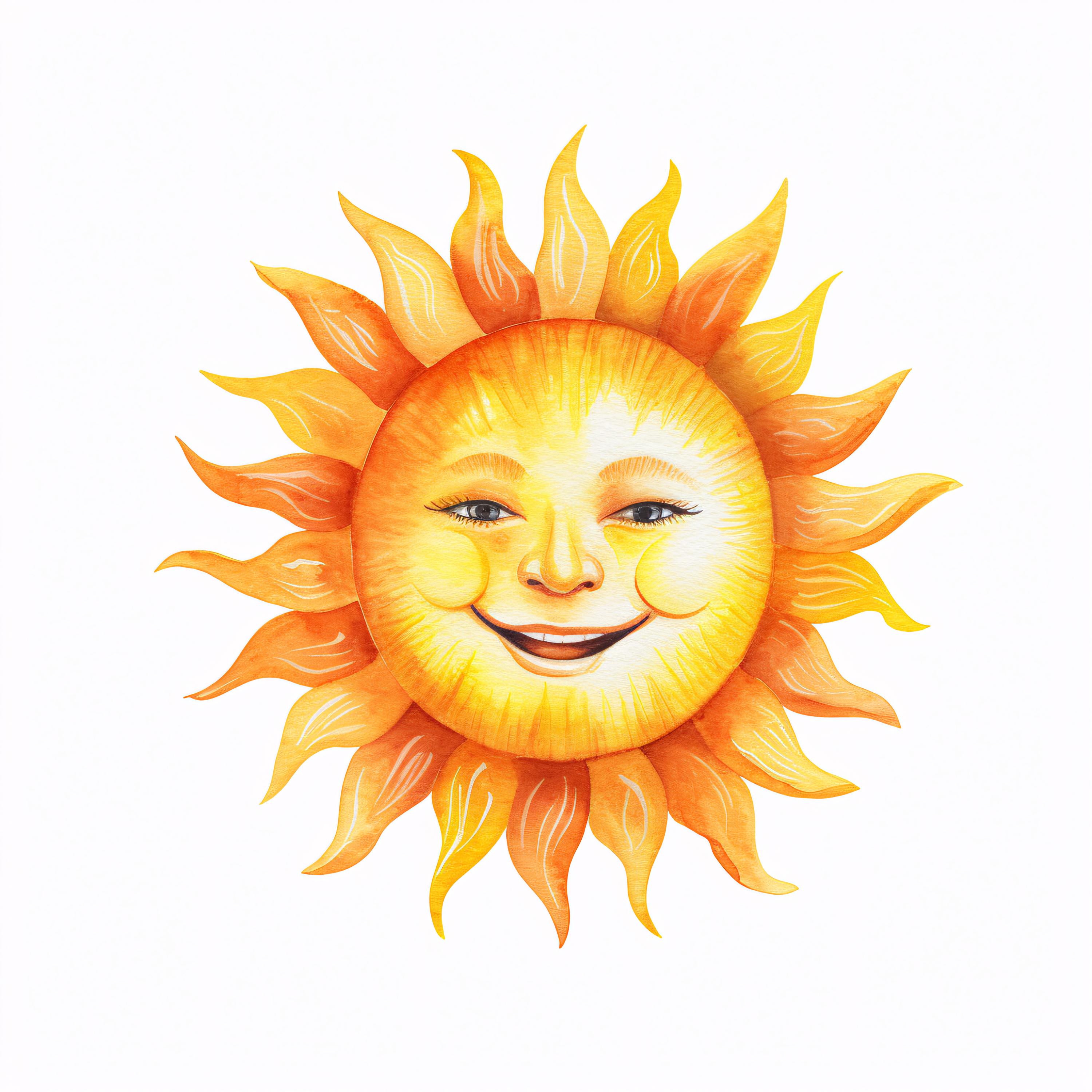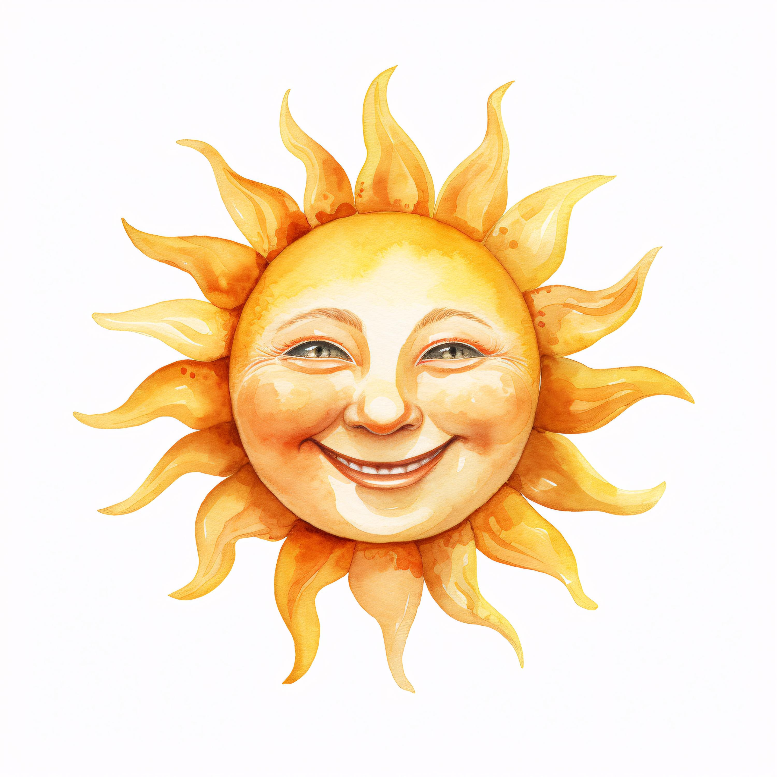 Smiling Sun Clipart, Happy Sunshine Images, 10 Watercolor Clip Art, Printable JPGs, Instant Download, Commercial Use, Paper craft