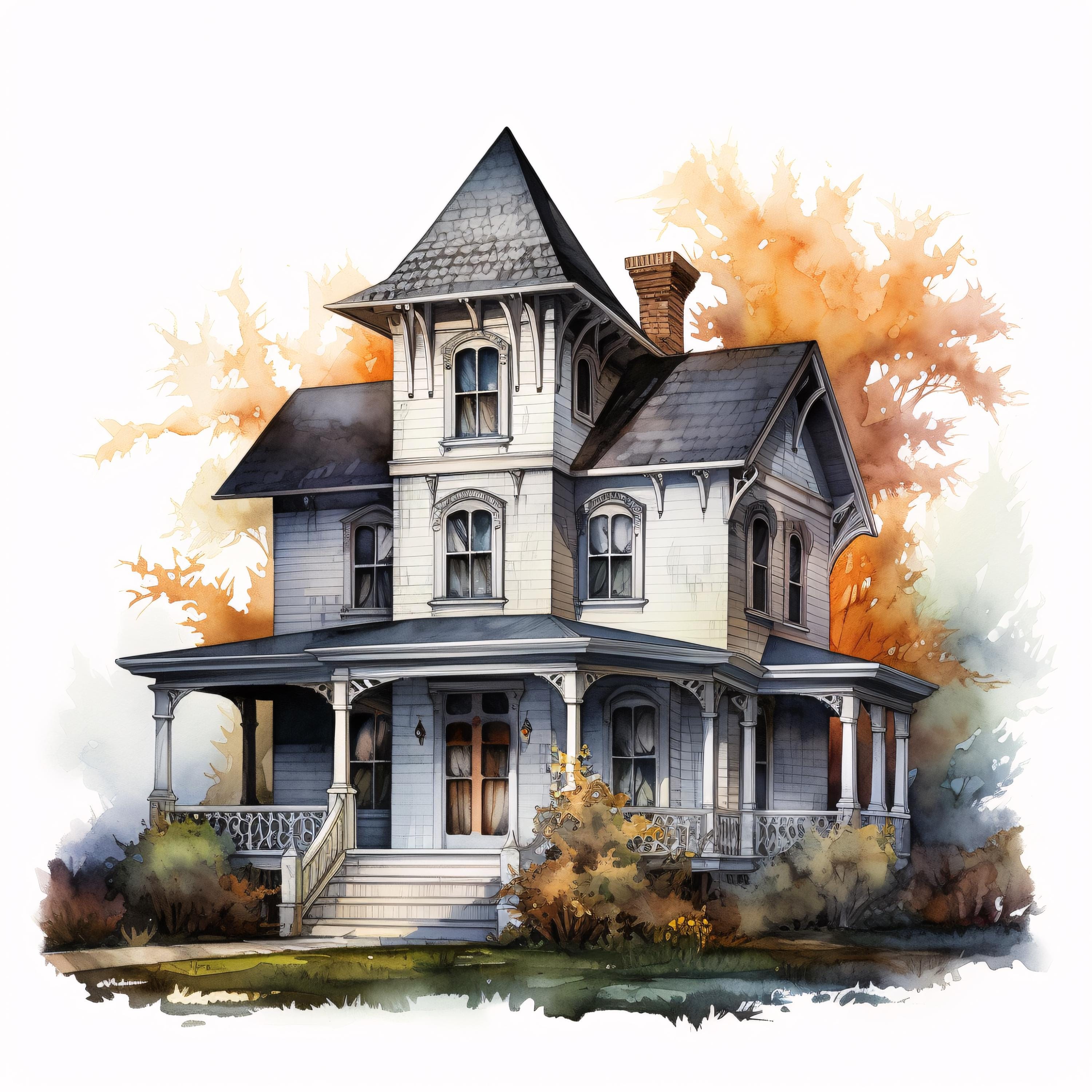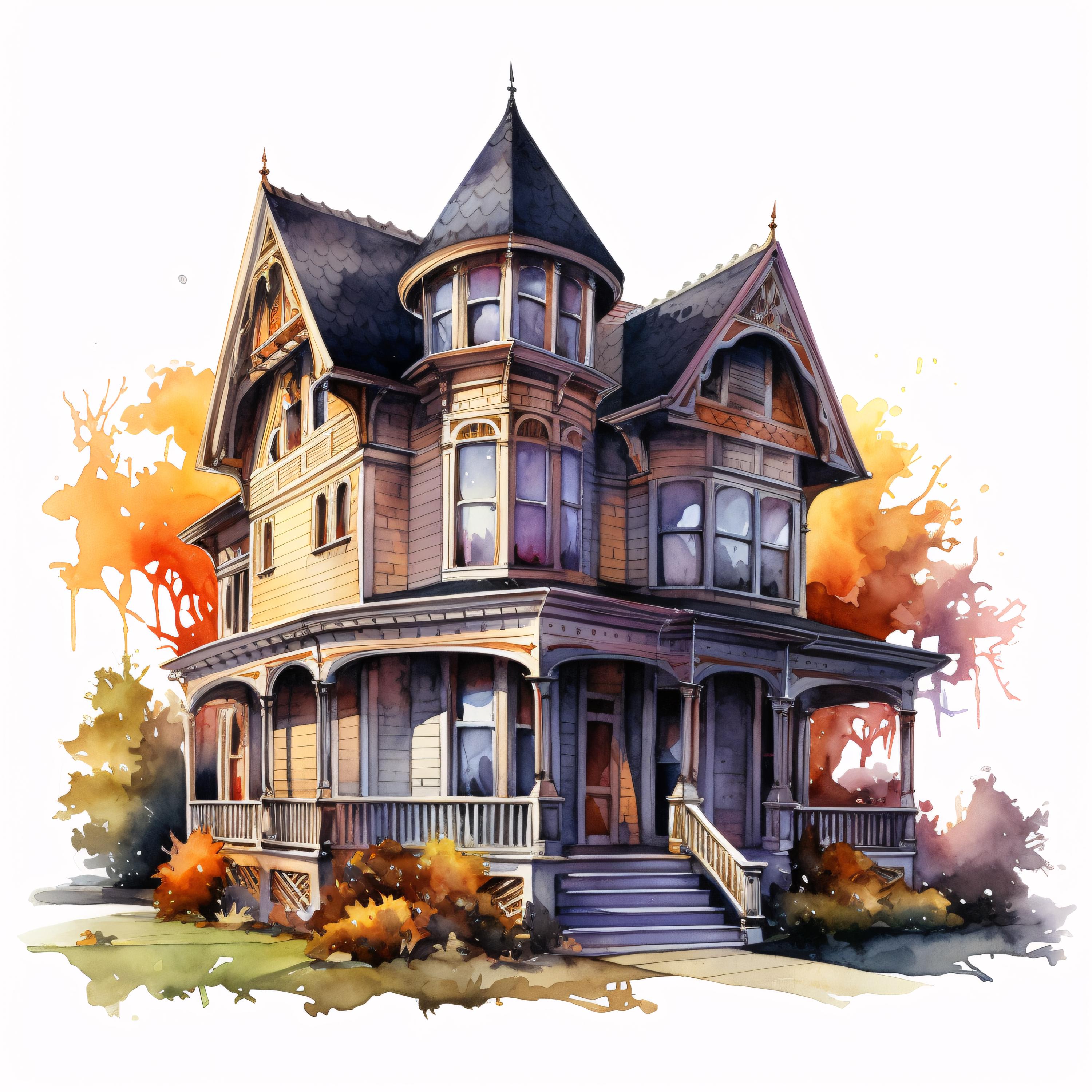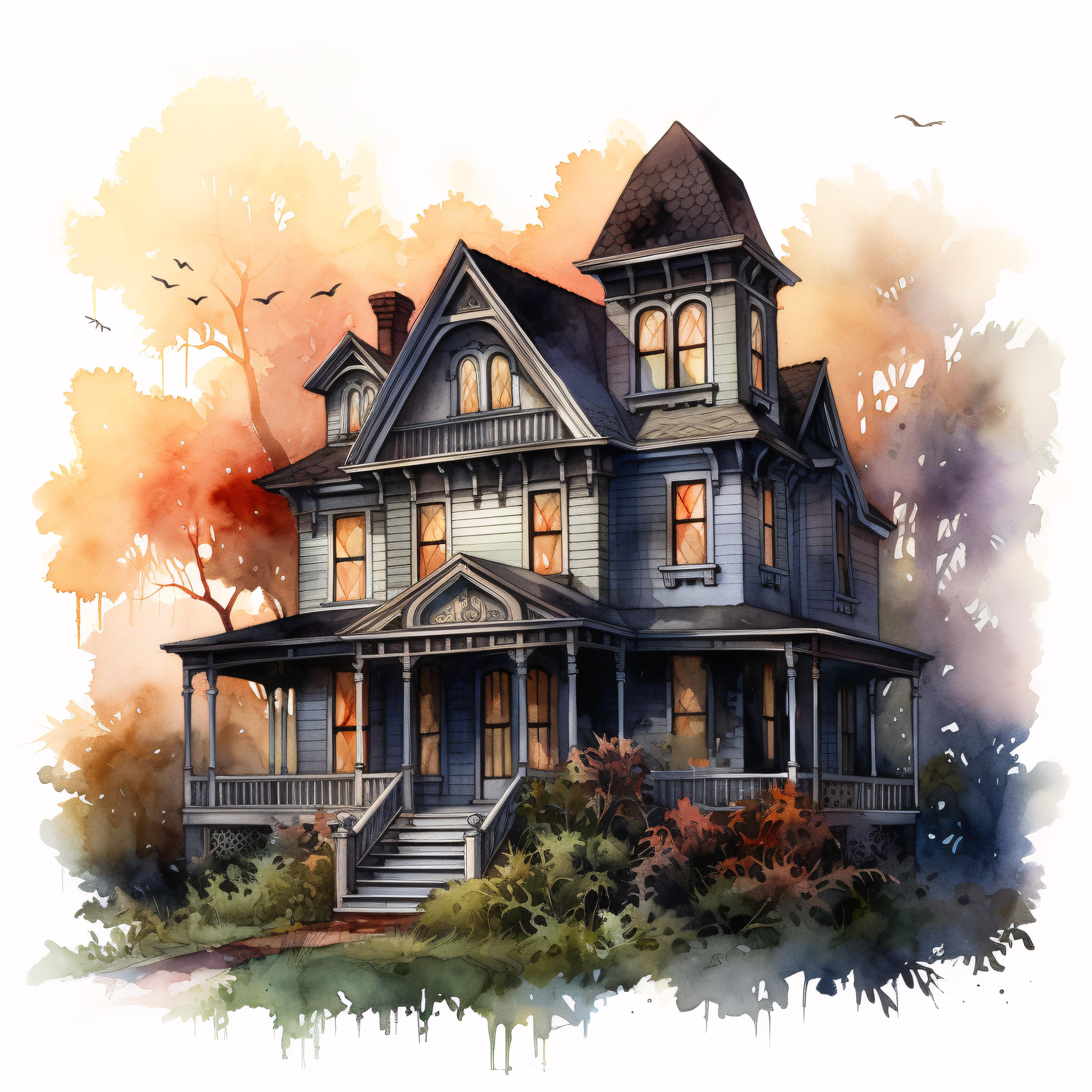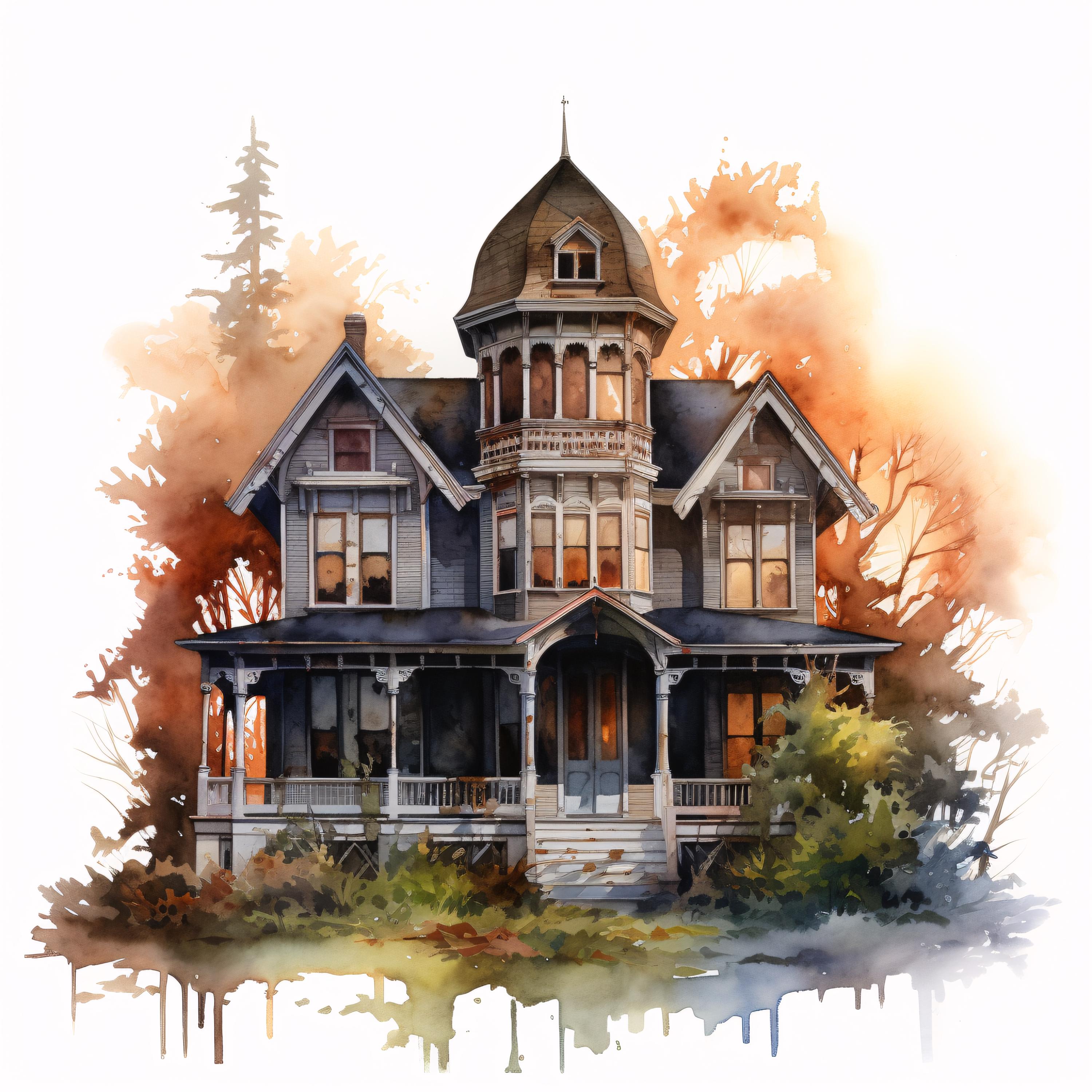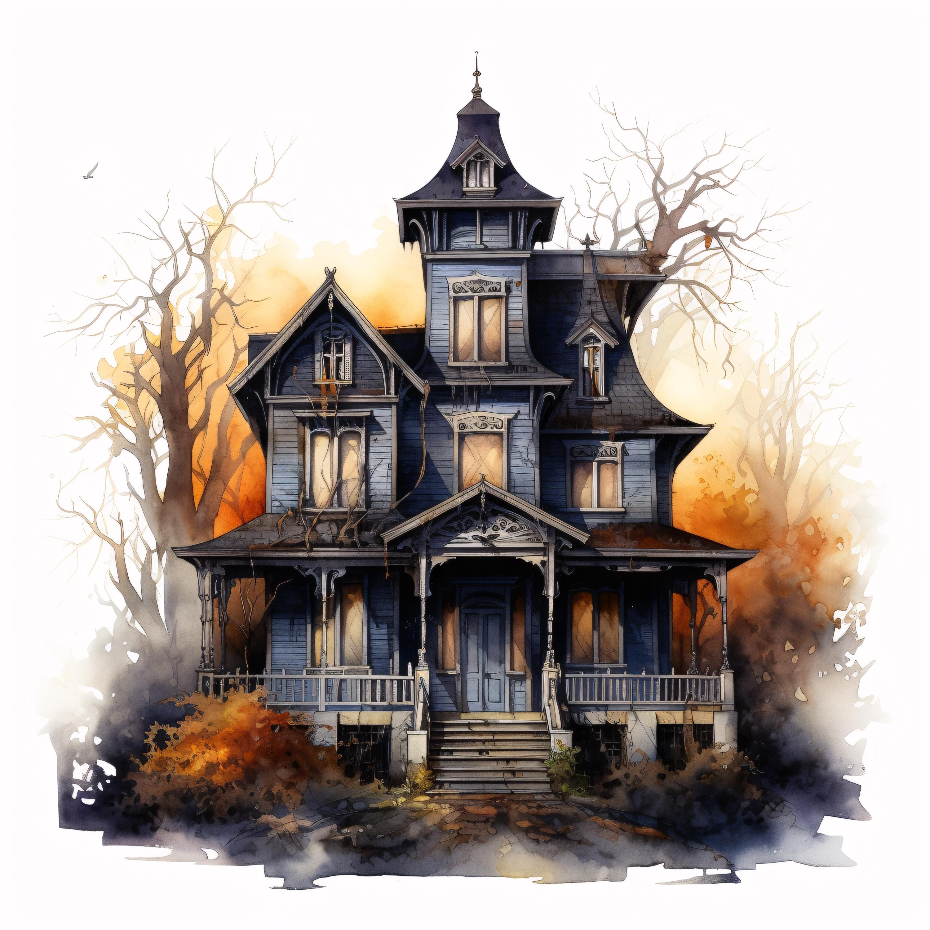 Spooky House Clipart, Haunted Mansion Images, 10 Watercolor Clip Art, Printable JPGs, Instant Download, Commercial Use, Paper craft