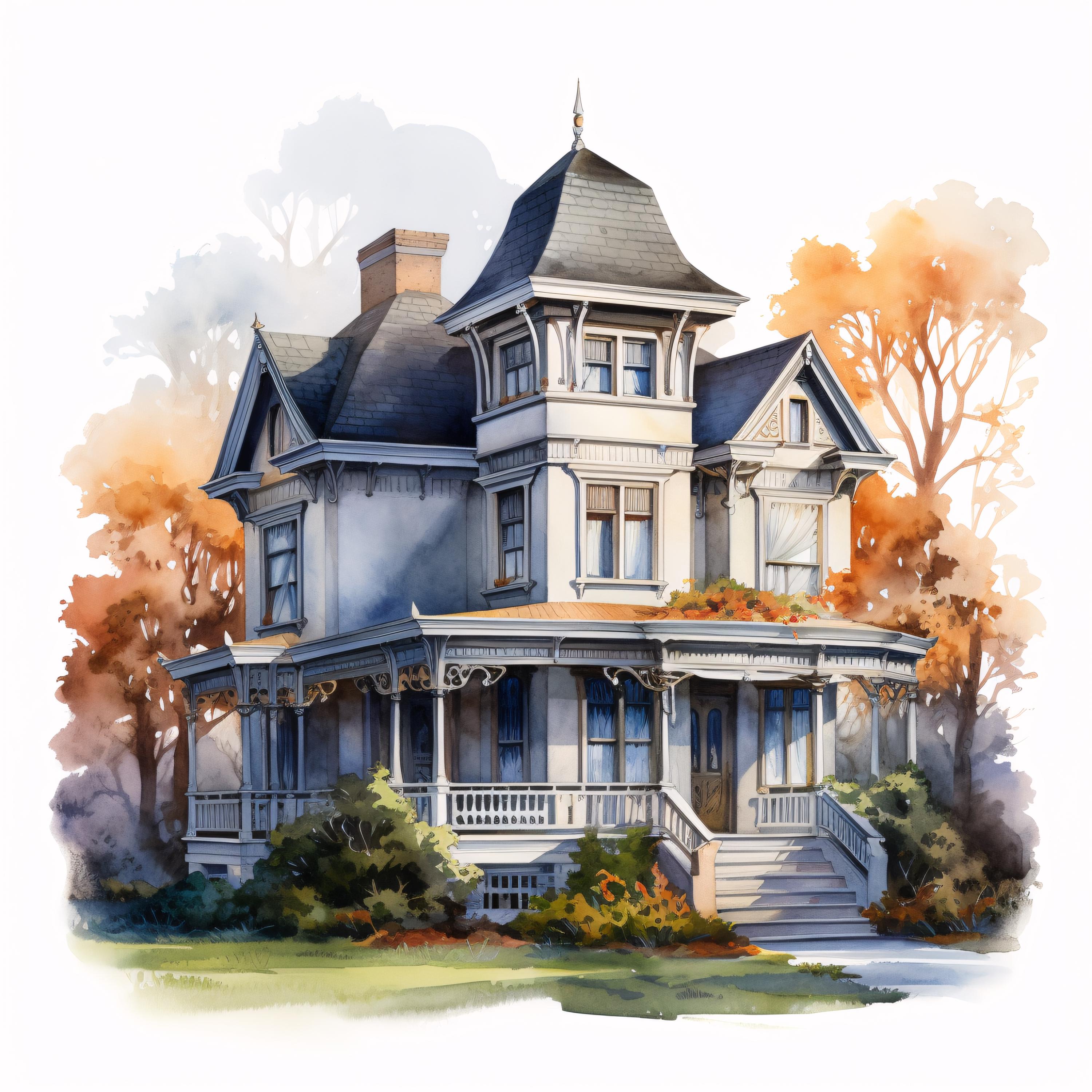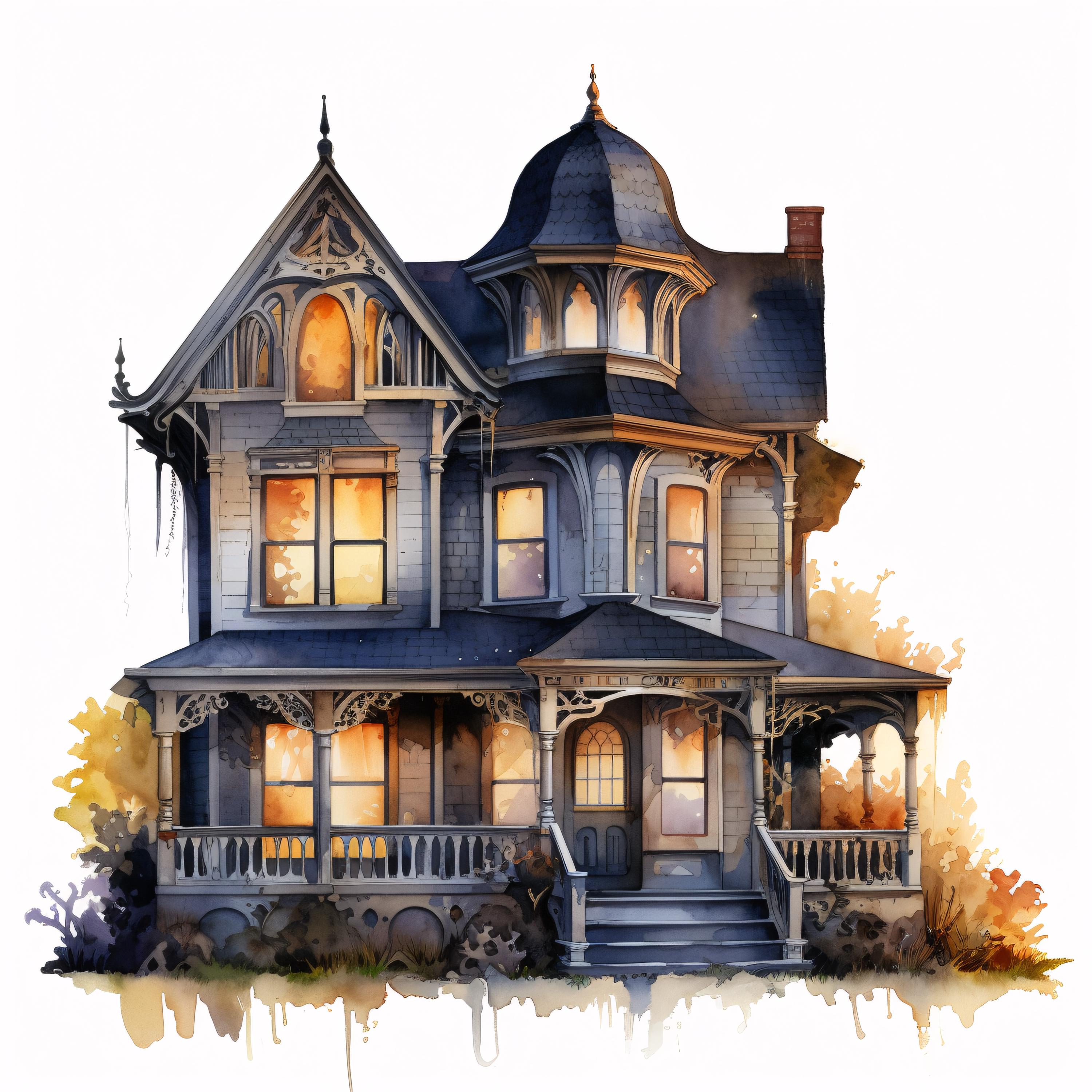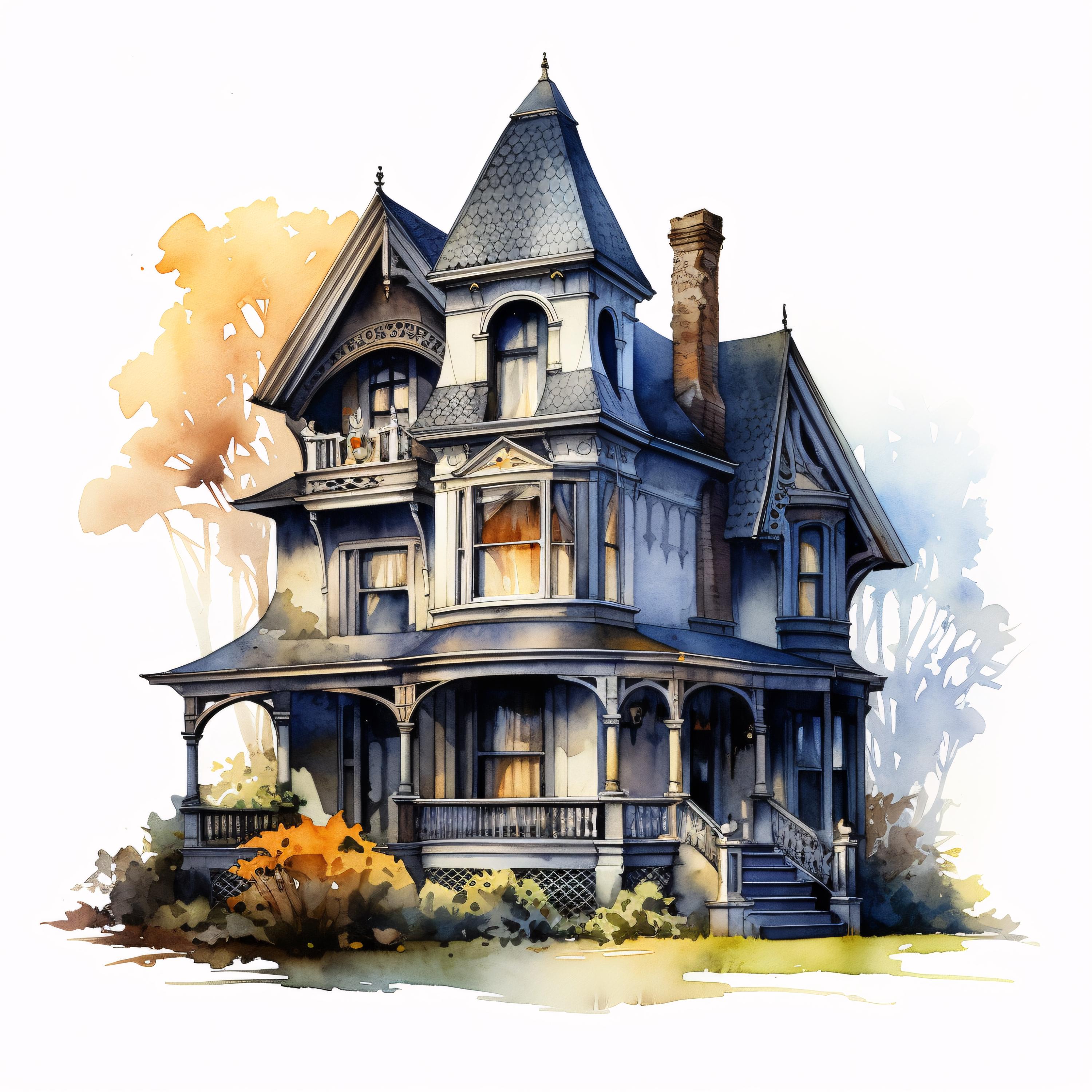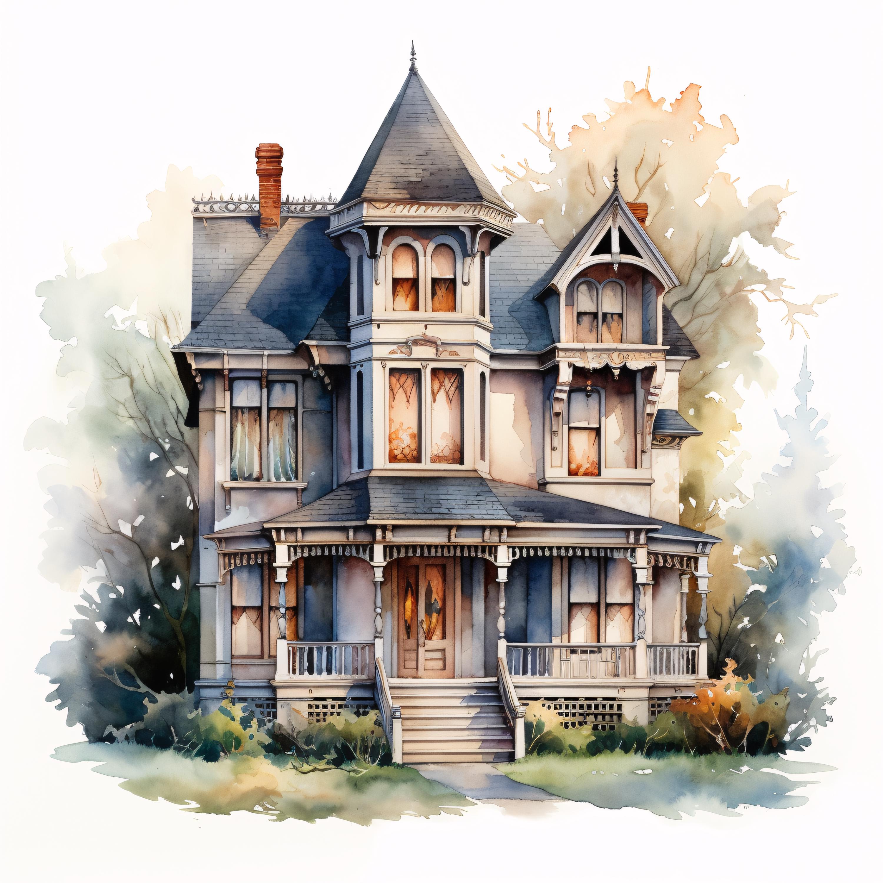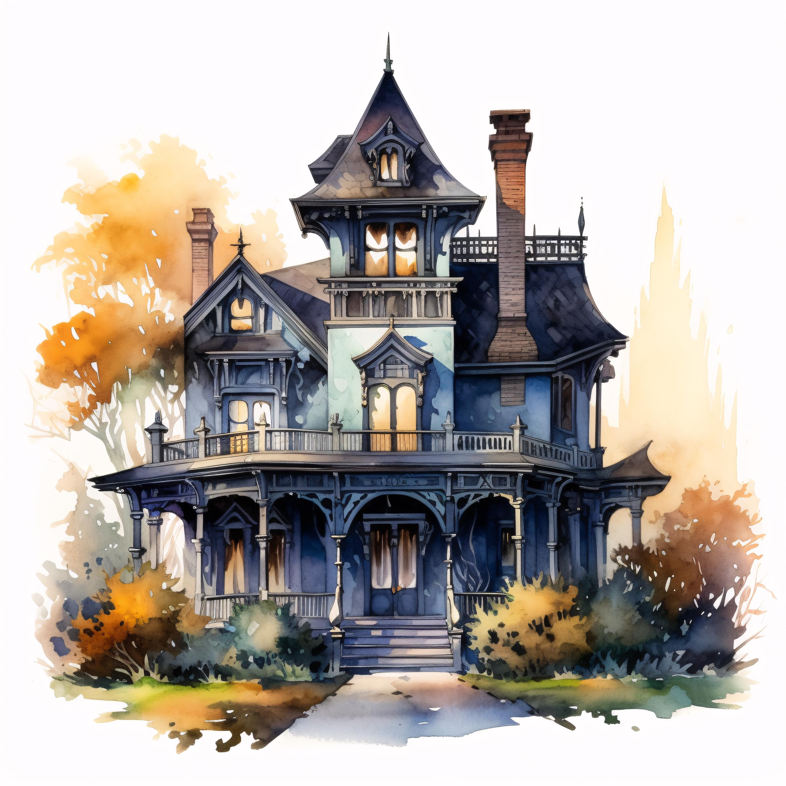 Spooky House Clipart, Haunted Mansion Images, 10 Watercolor Clip Art, Printable JPGs, Instant Download, Commercial Use, Paper craft