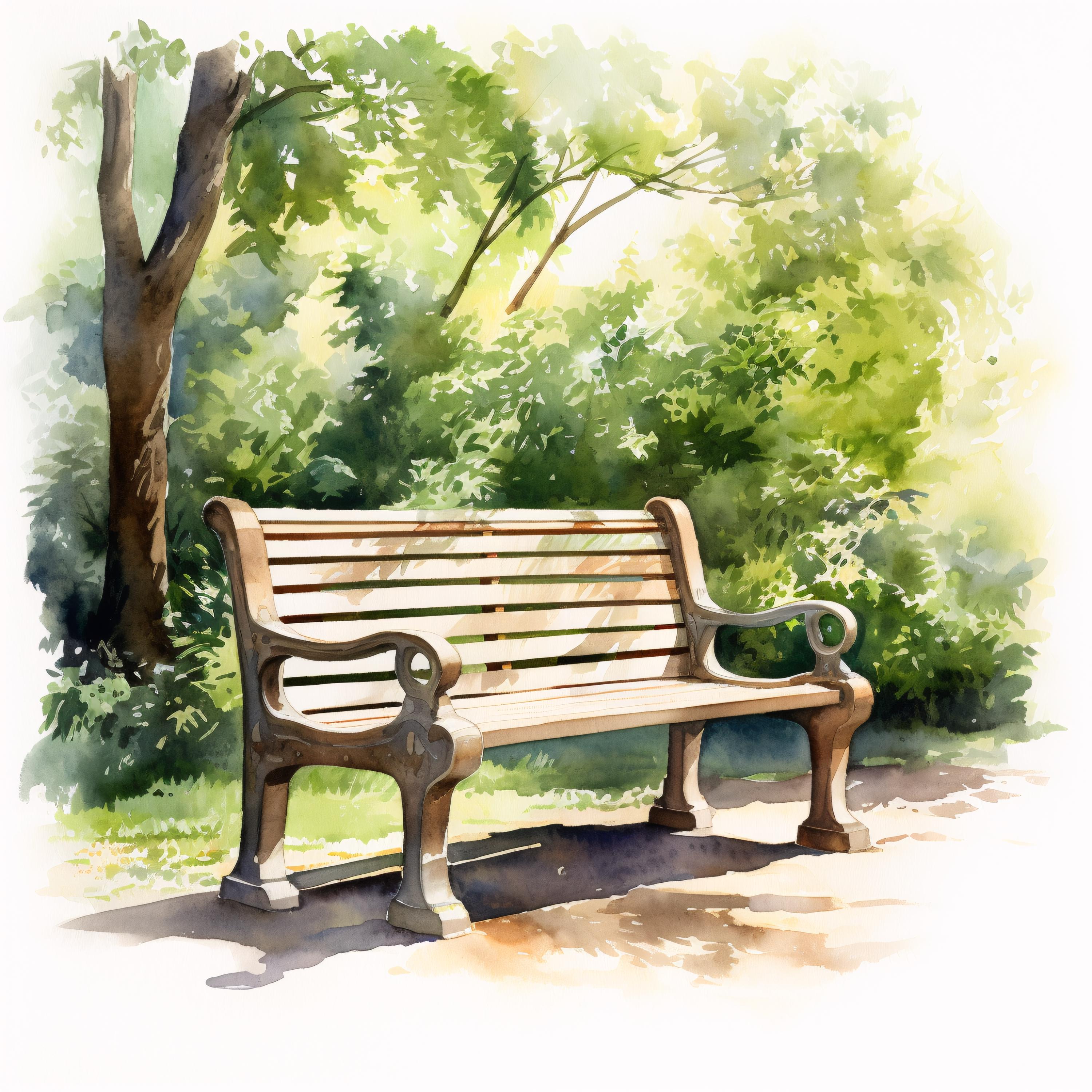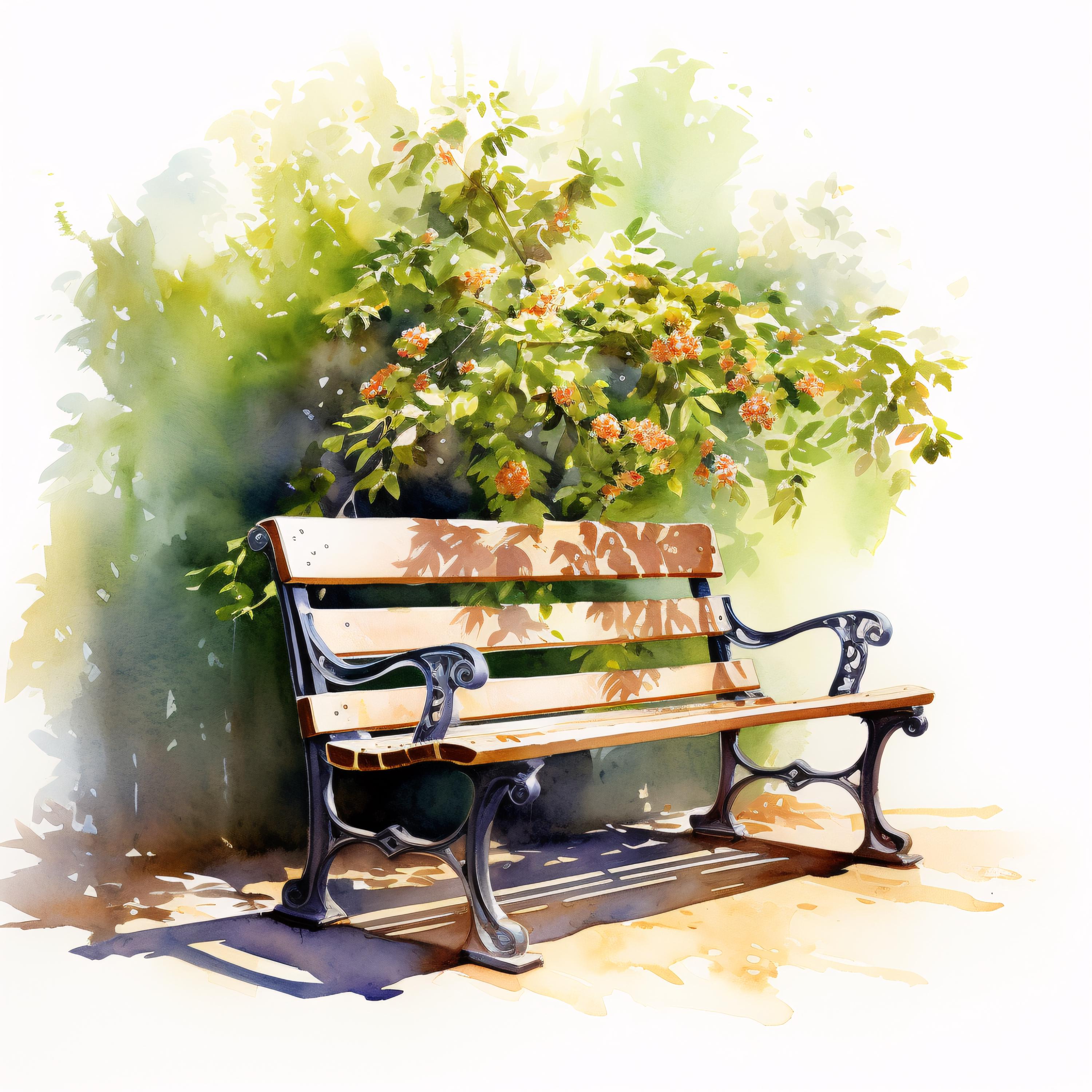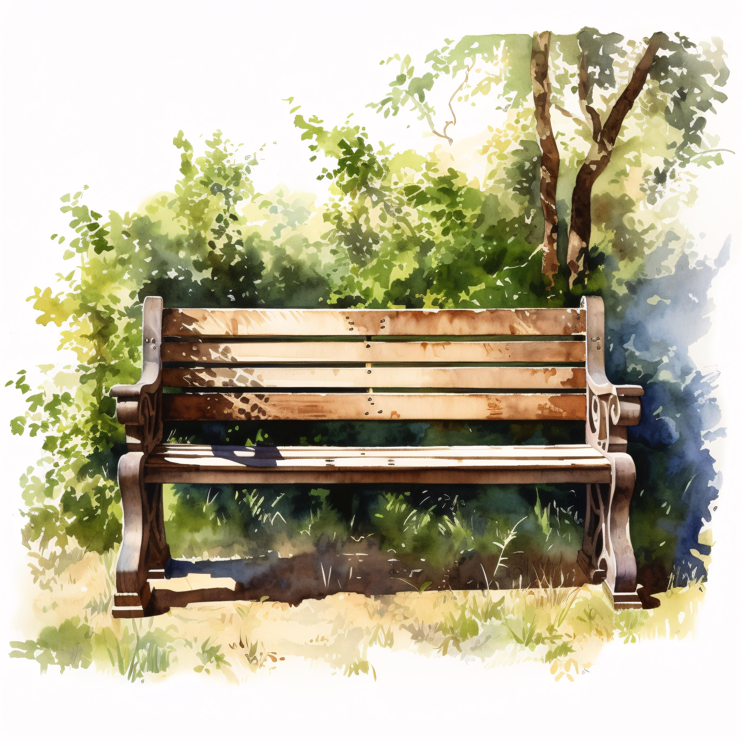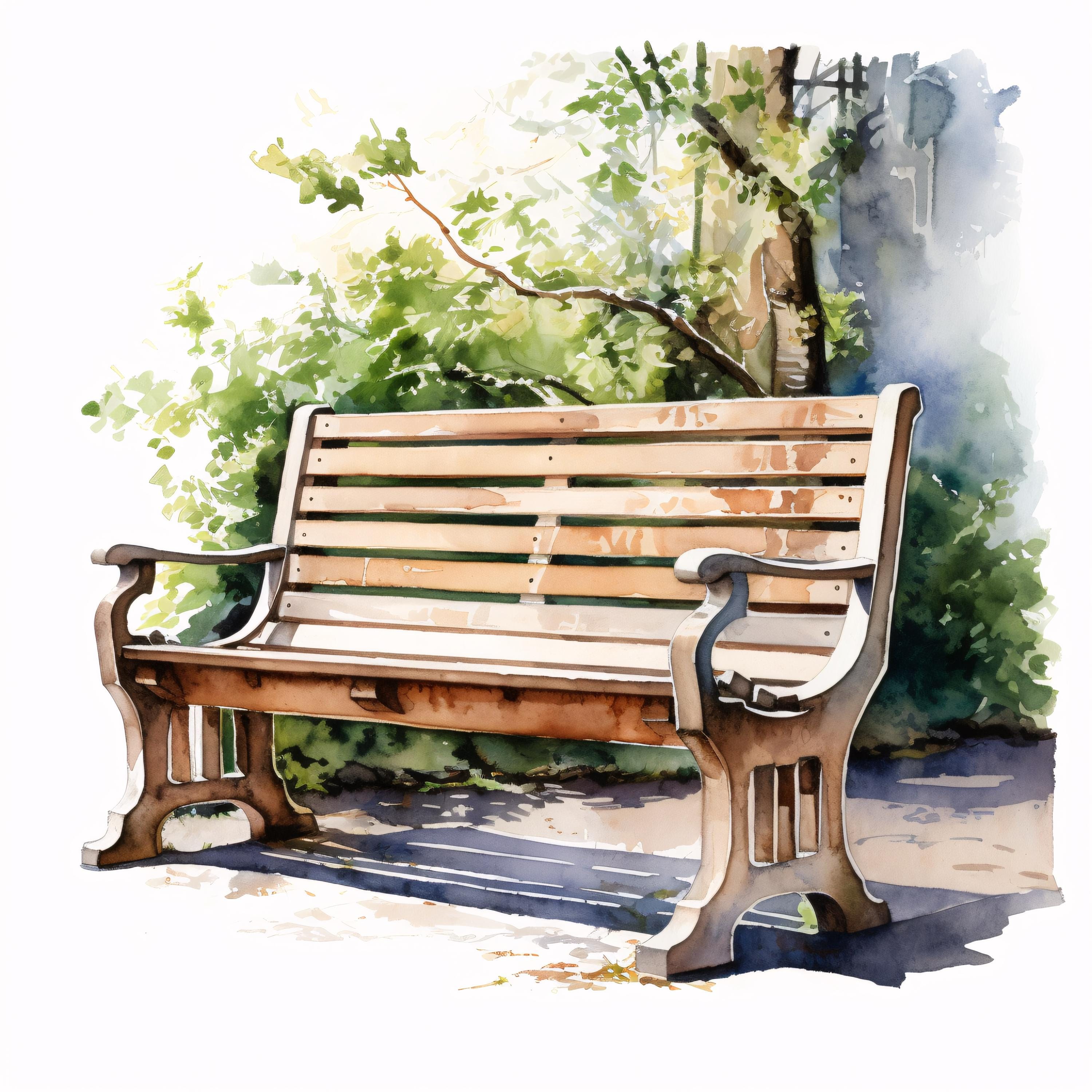 Park Bench Clipart, Summer Garden Images, 10 Watercolor Clip Art, Printable JPGs, Instant Download, Commercial Use, Paper craft
