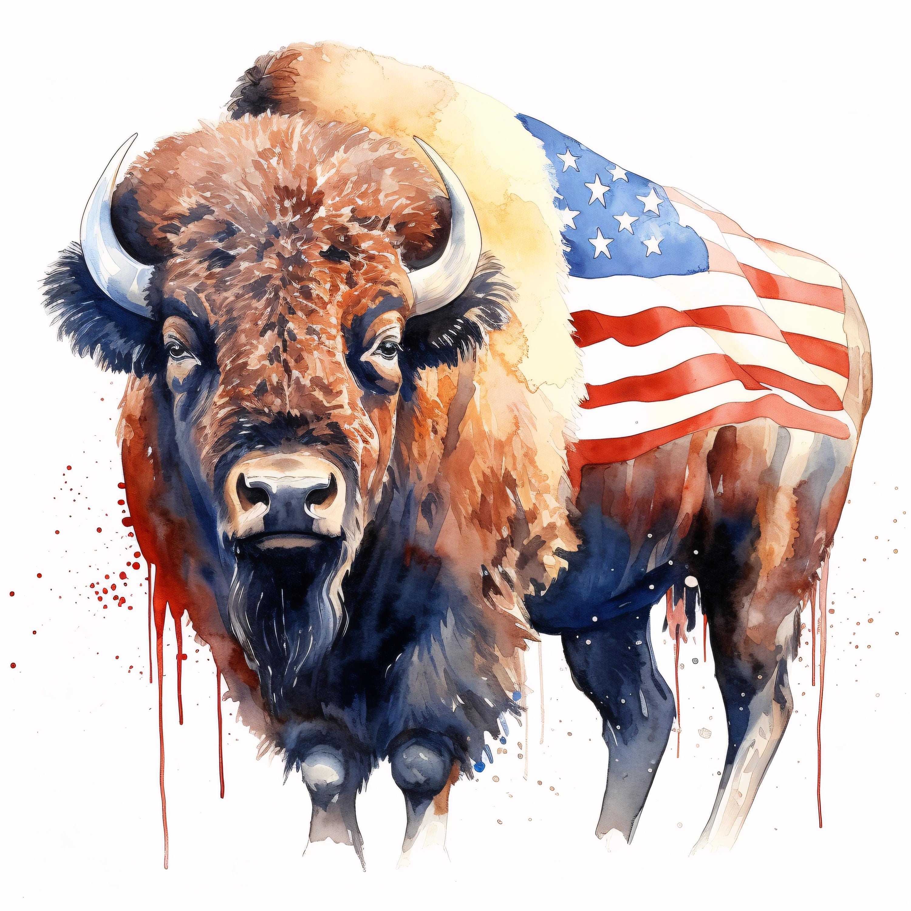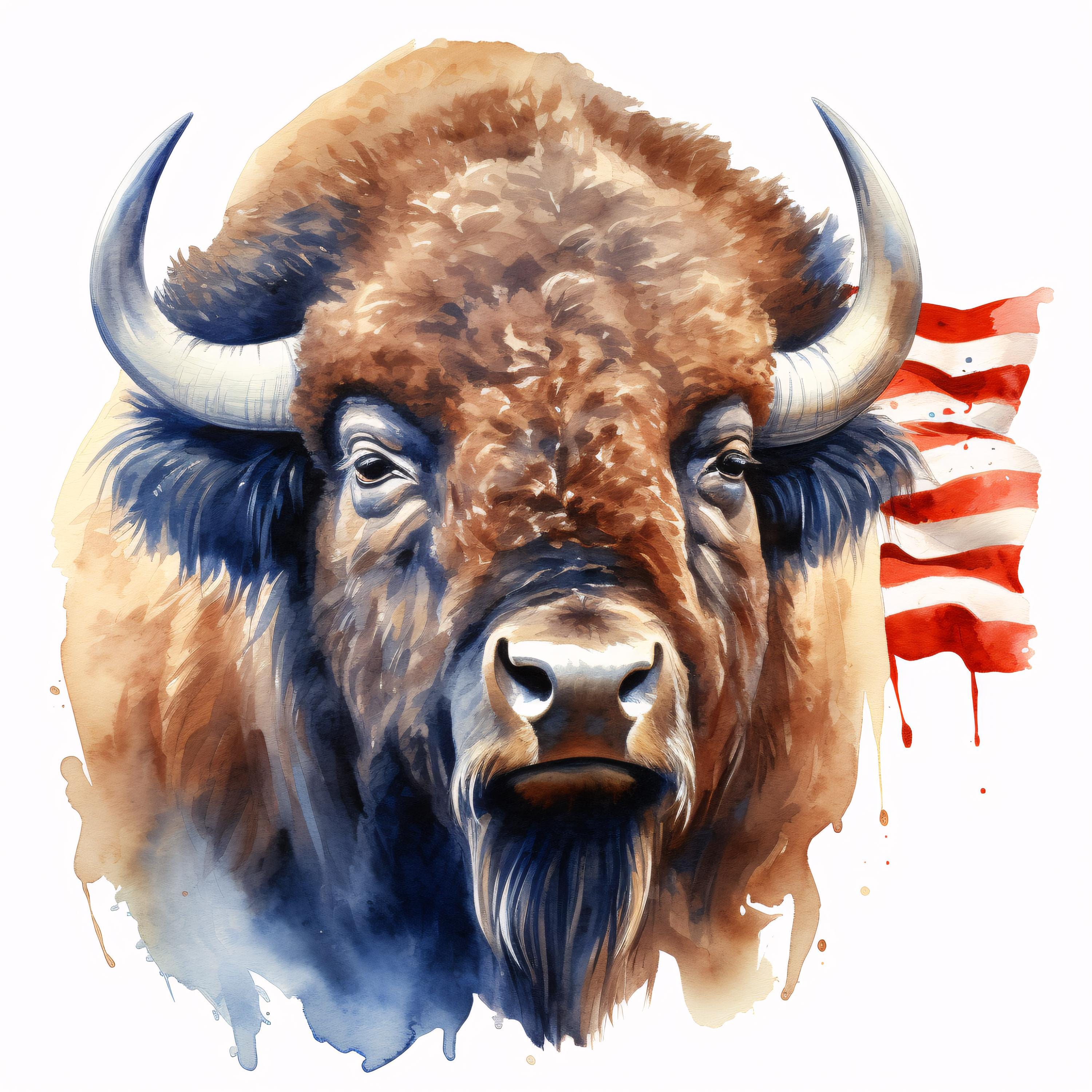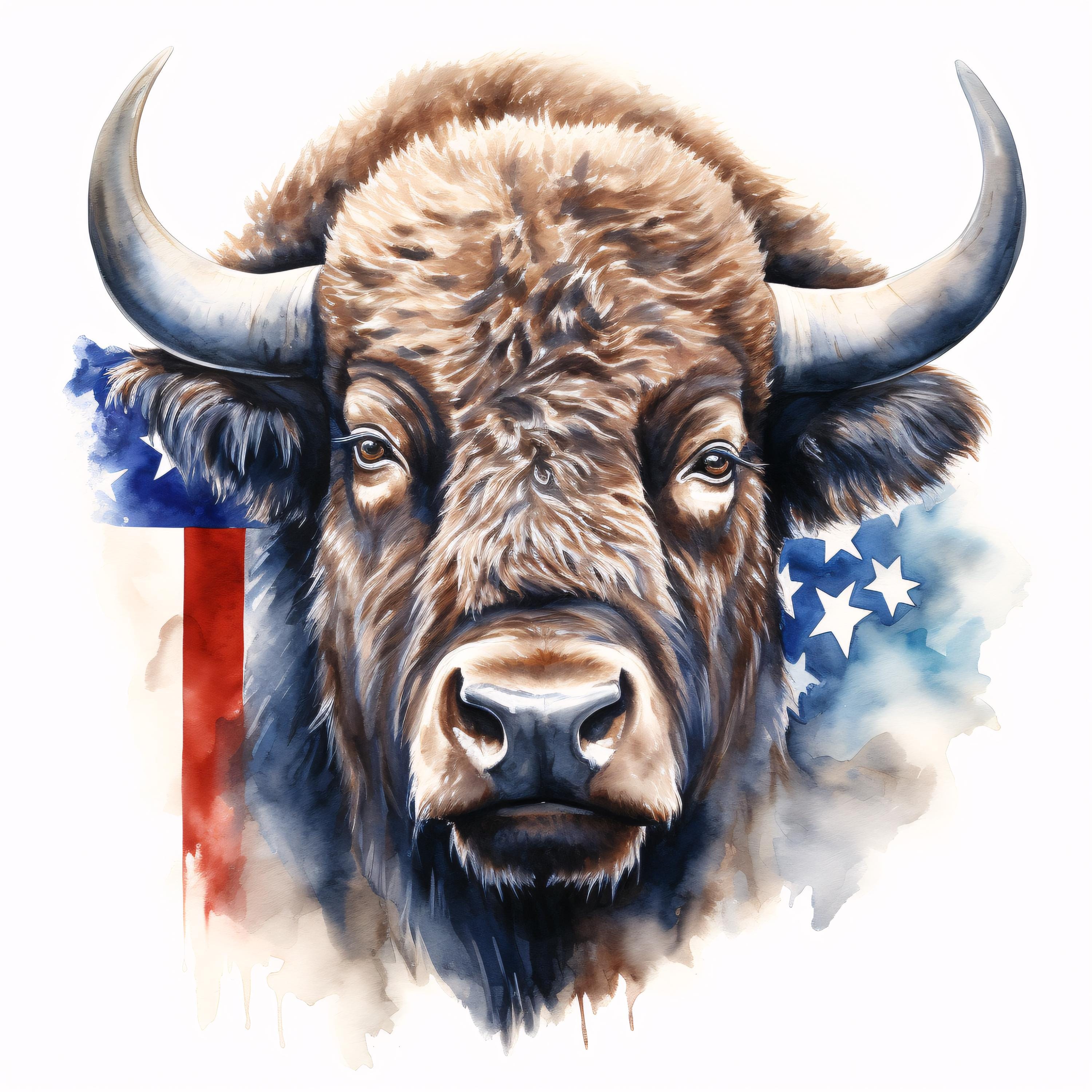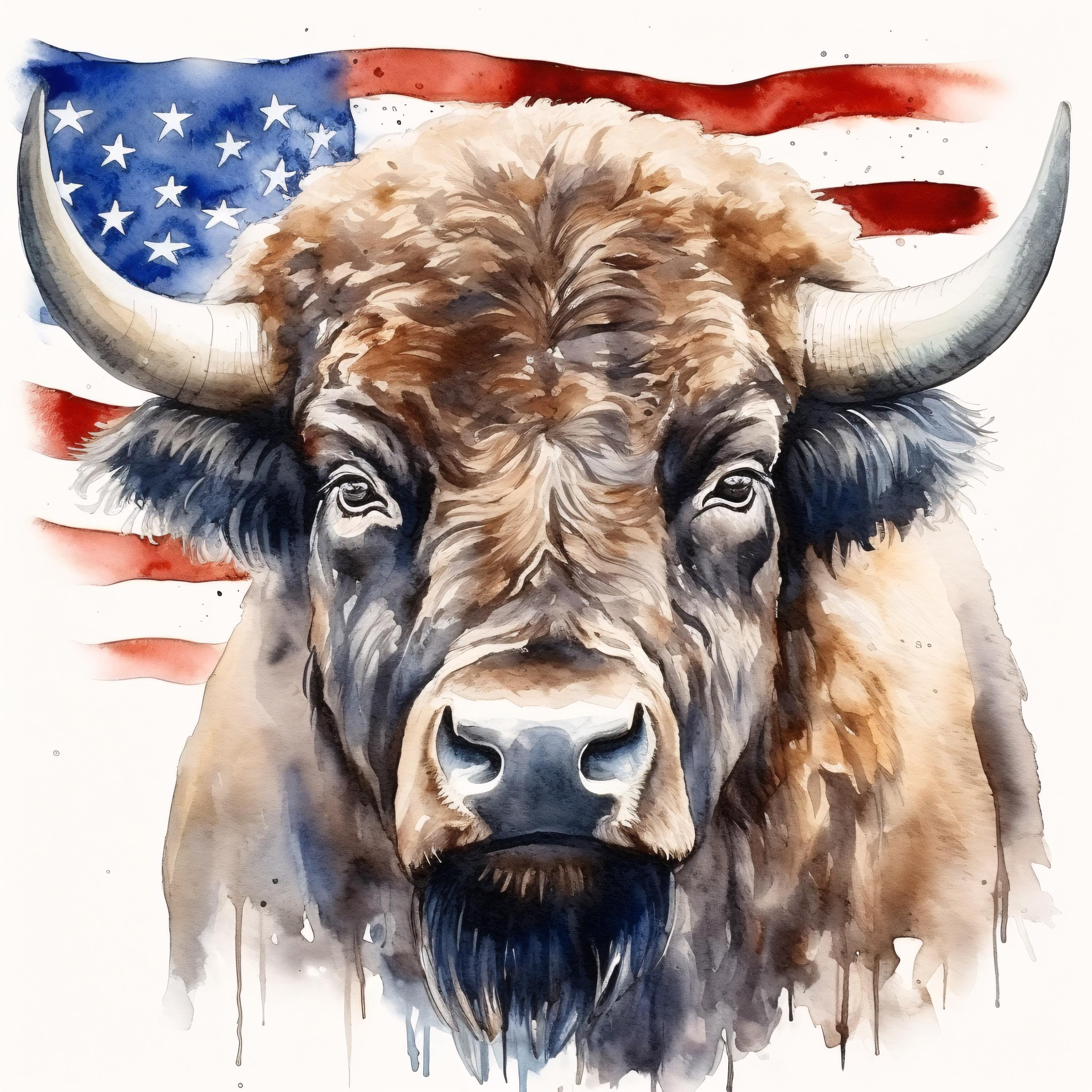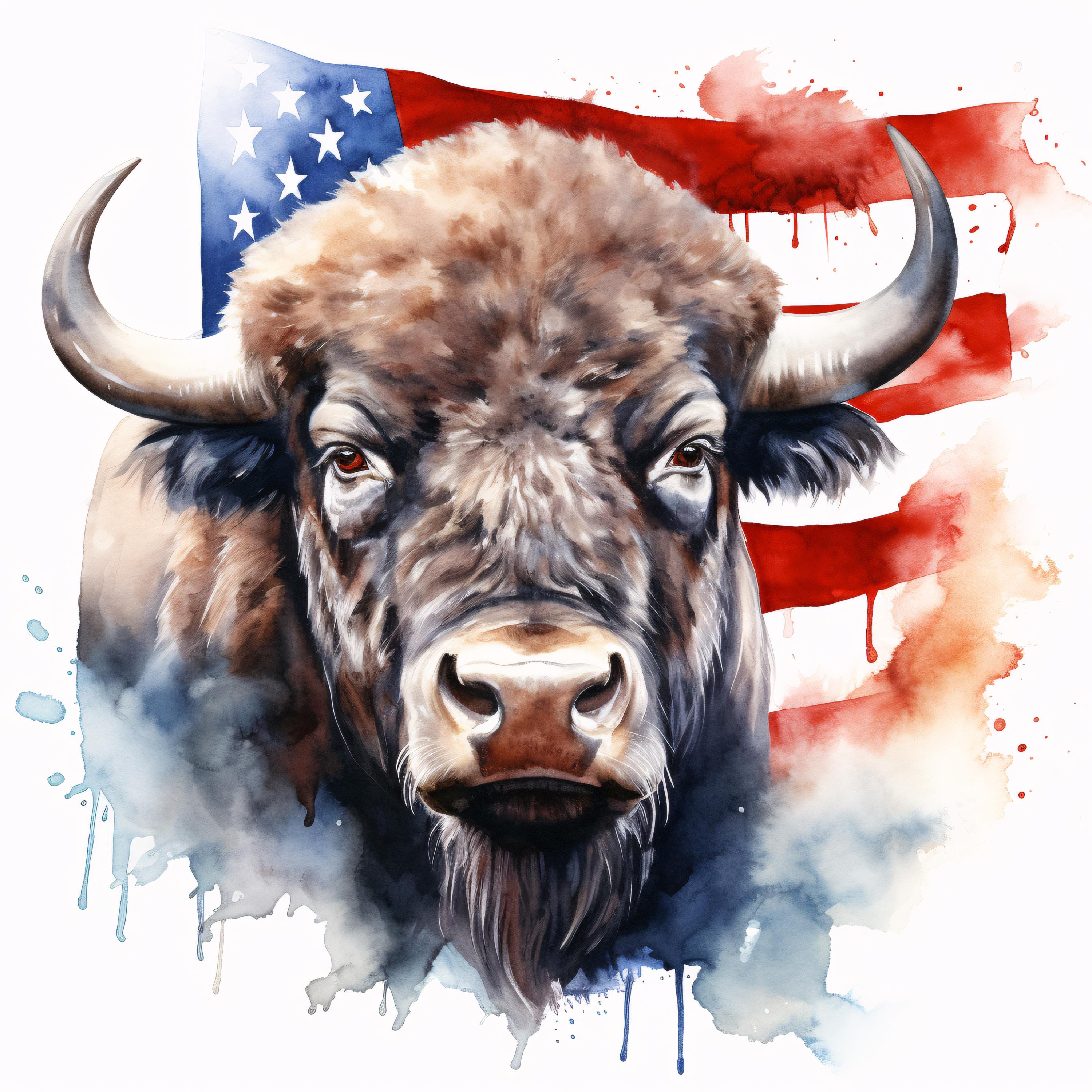 American Buffalo Clipart, USA Flag Images, 10 Watercolor Clip Art, Printable JPGs, Instant Download, Commercial Use, Paper craft