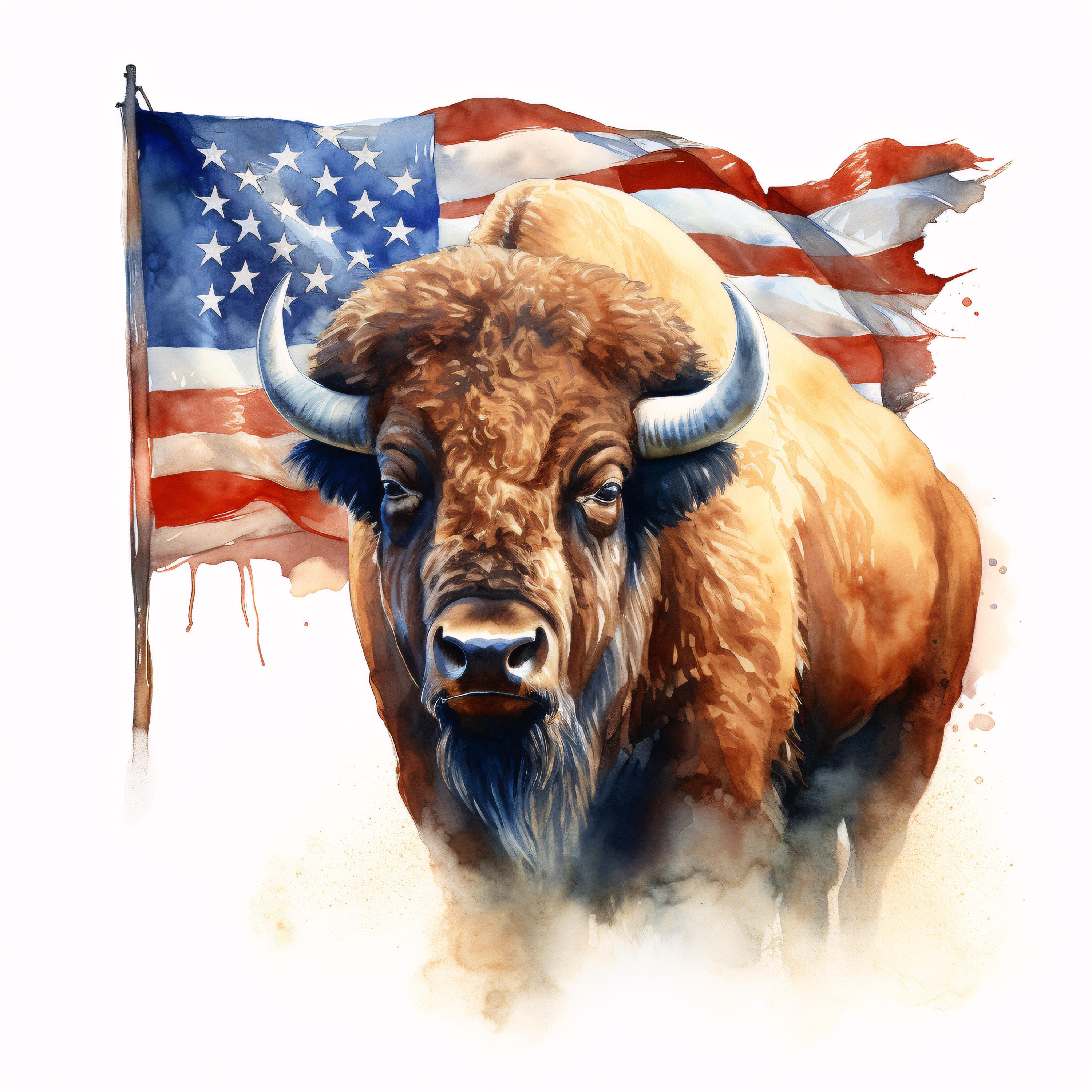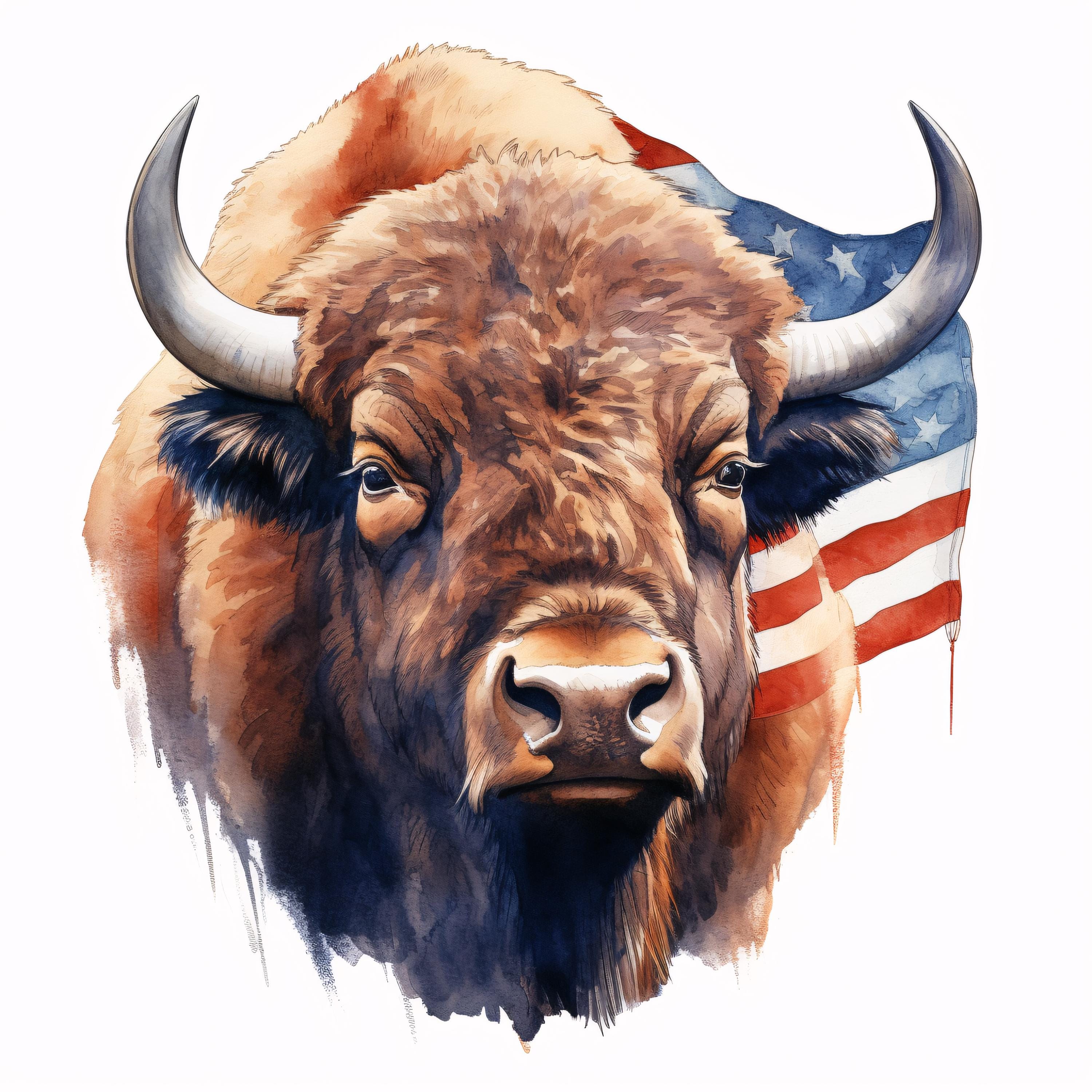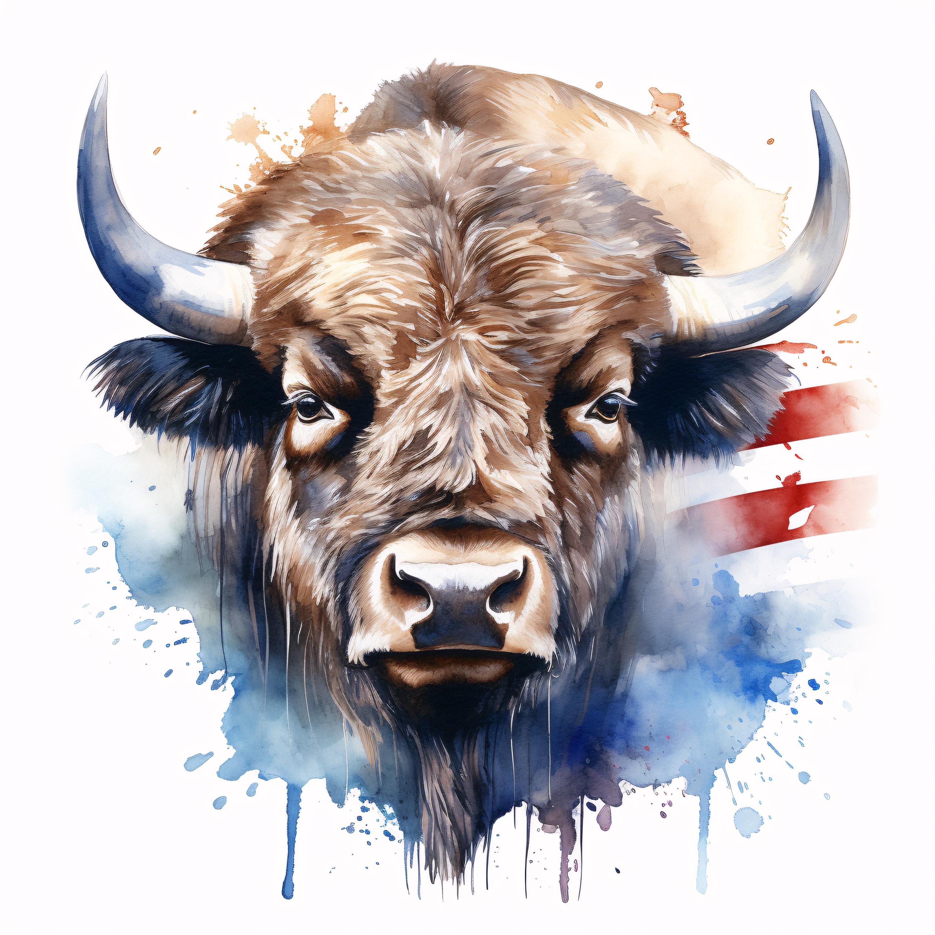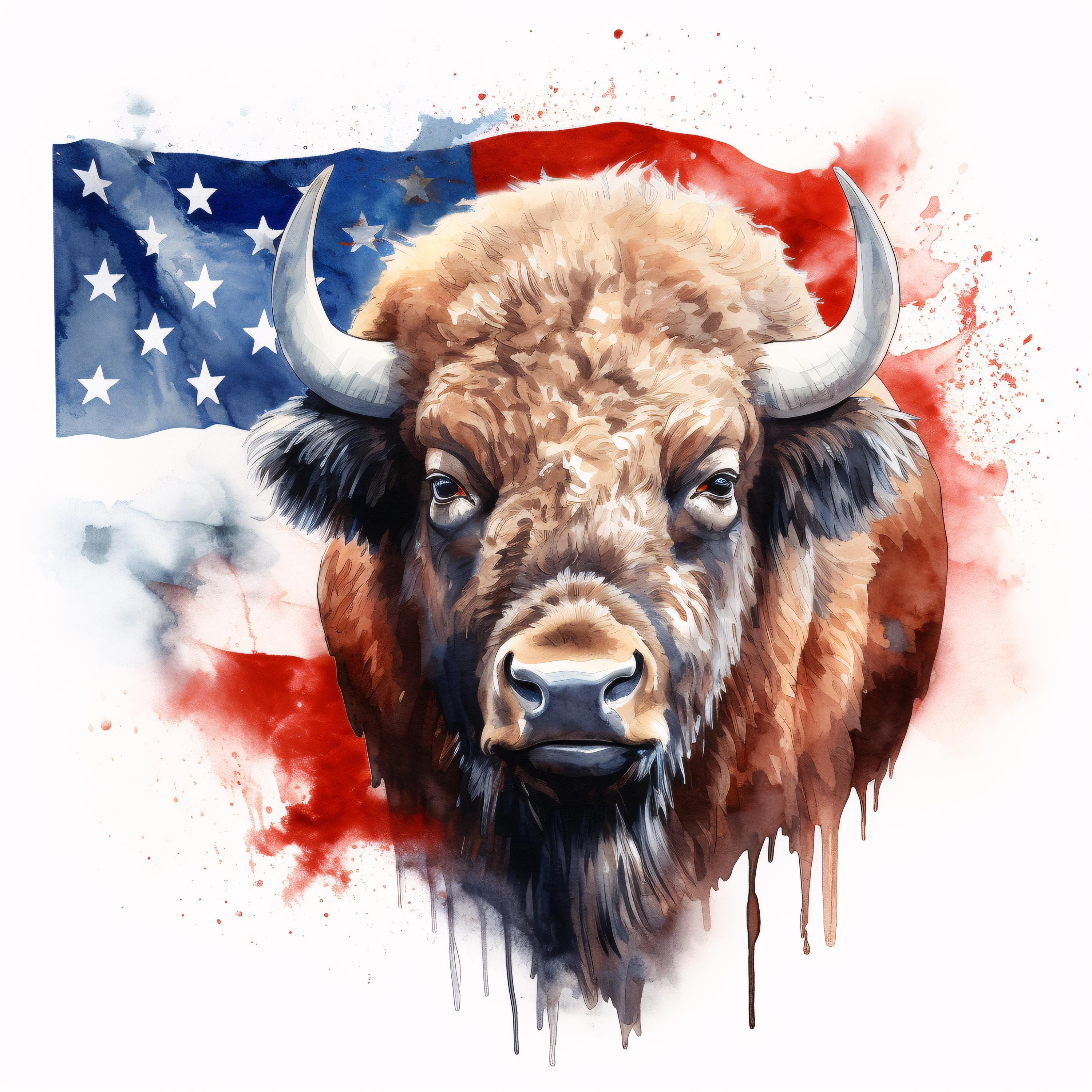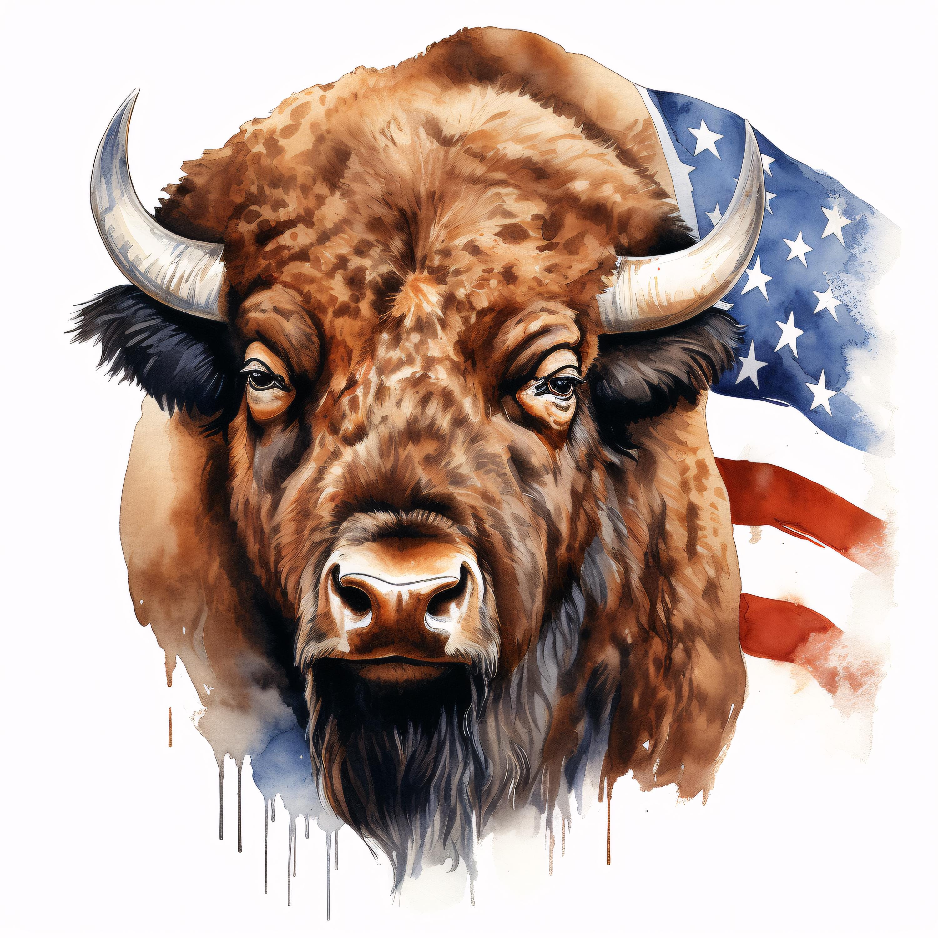 American Buffalo Clipart, USA Flag Images, 10 Watercolor Clip Art, Printable JPGs, Instant Download, Commercial Use, Paper craft