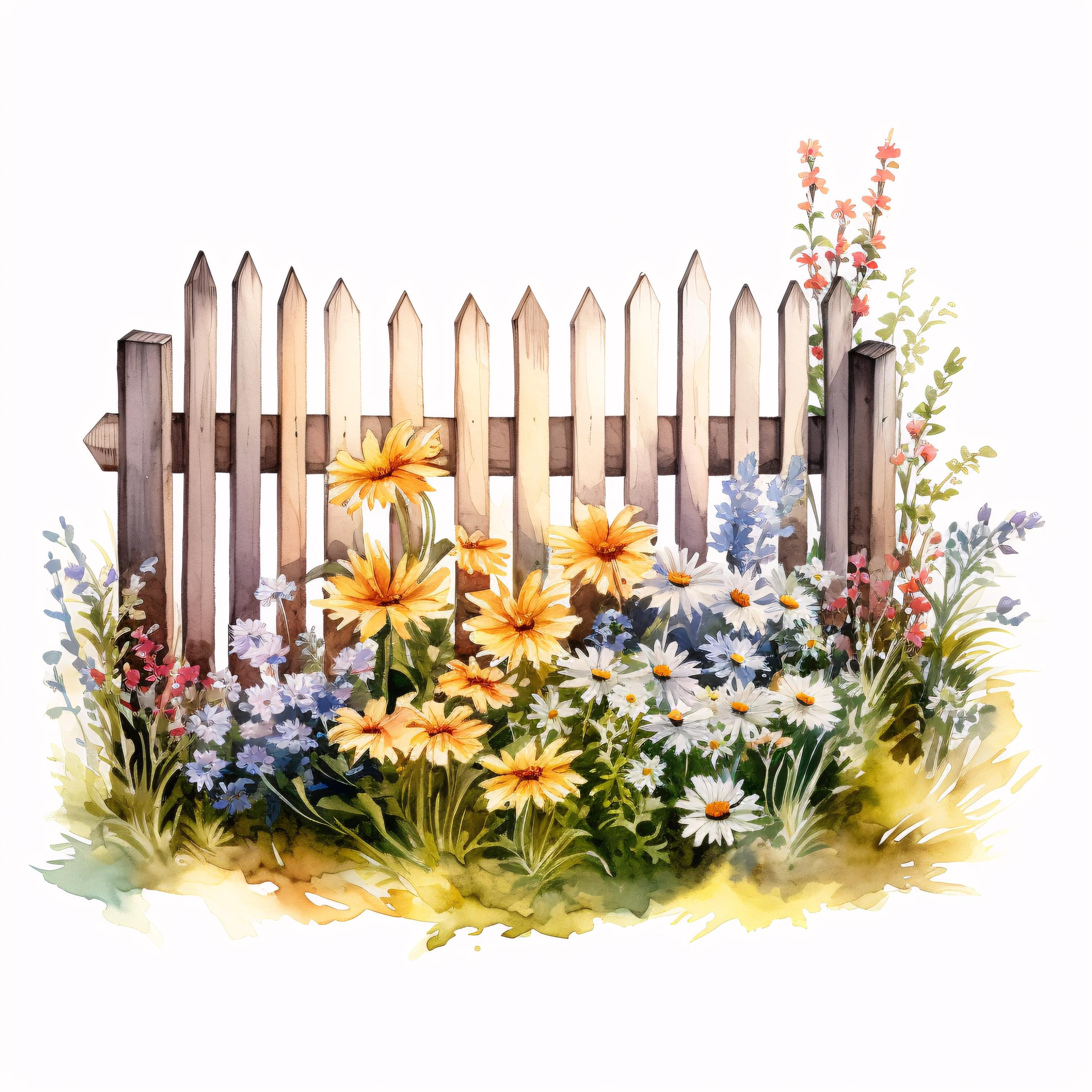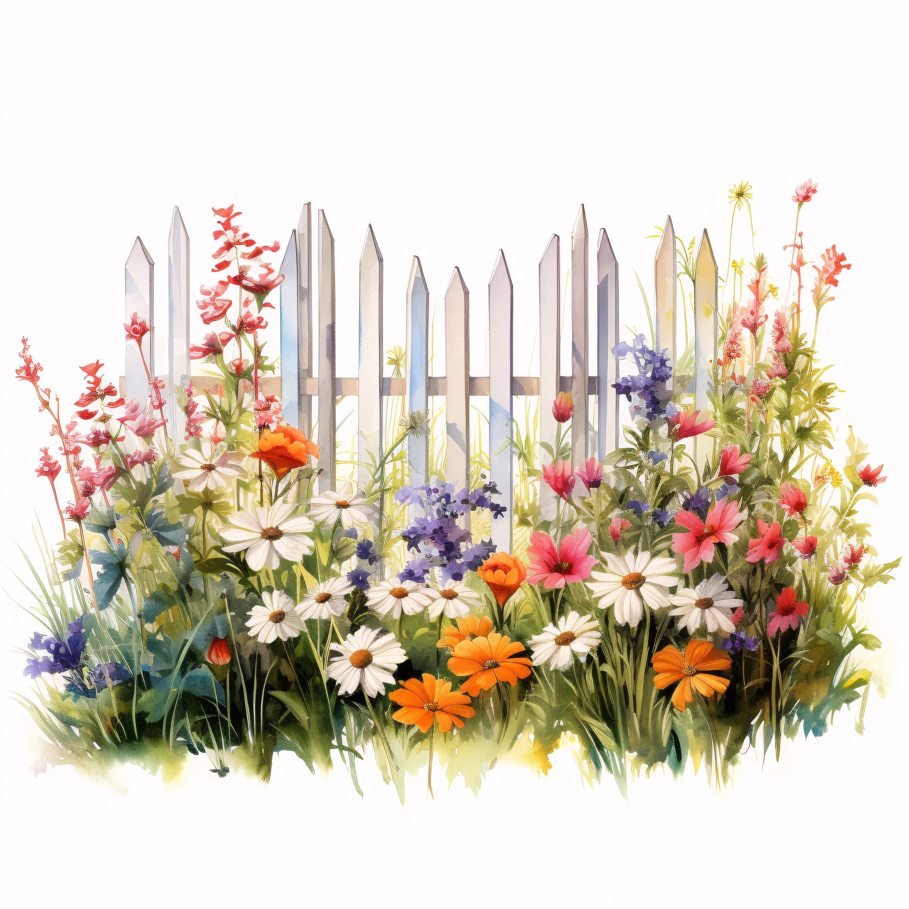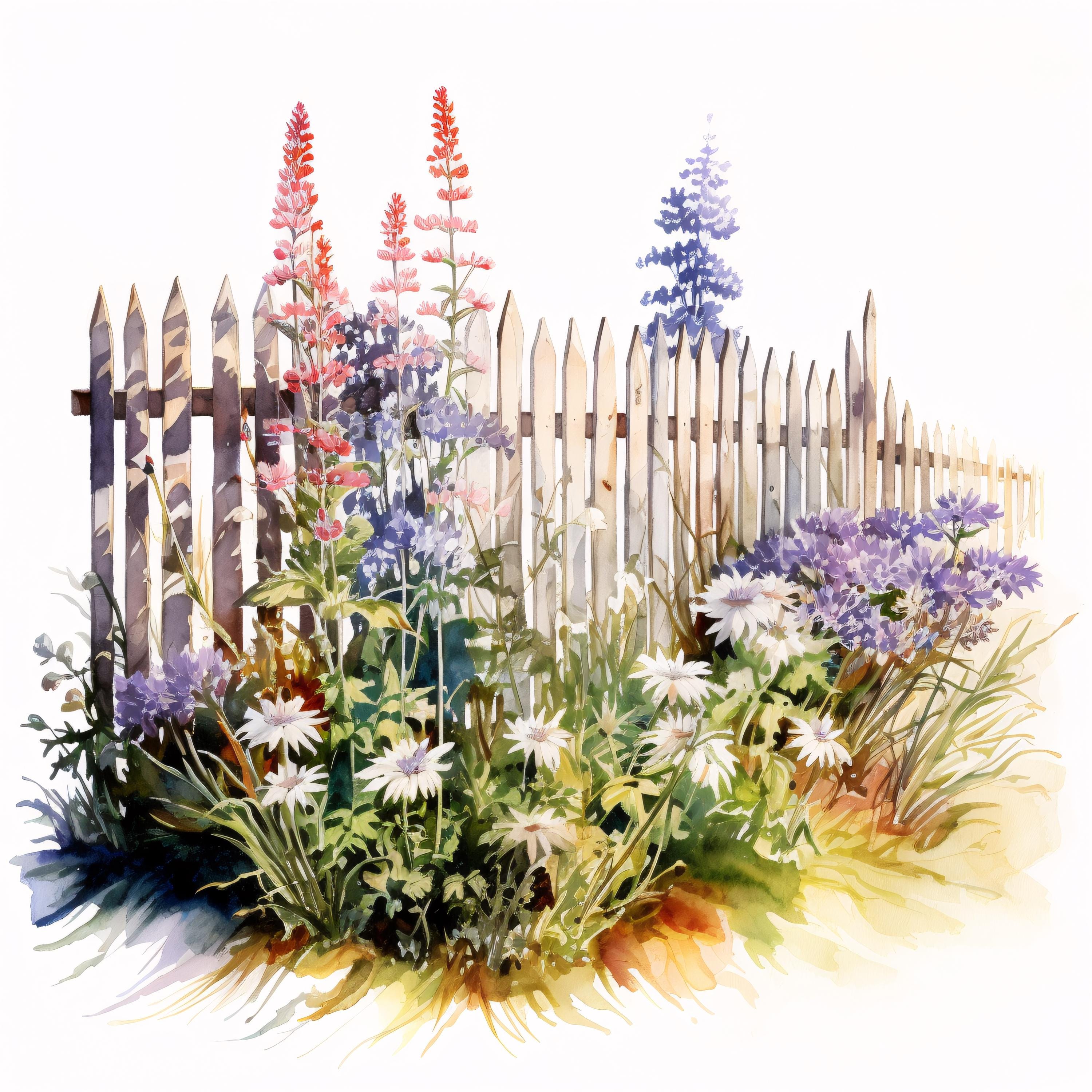 Garden Fence Clipart, Floral Border Images, 10 Watercolor Clip Art, Printable JPGs, Instant Download, Commercial Use, Paper craft