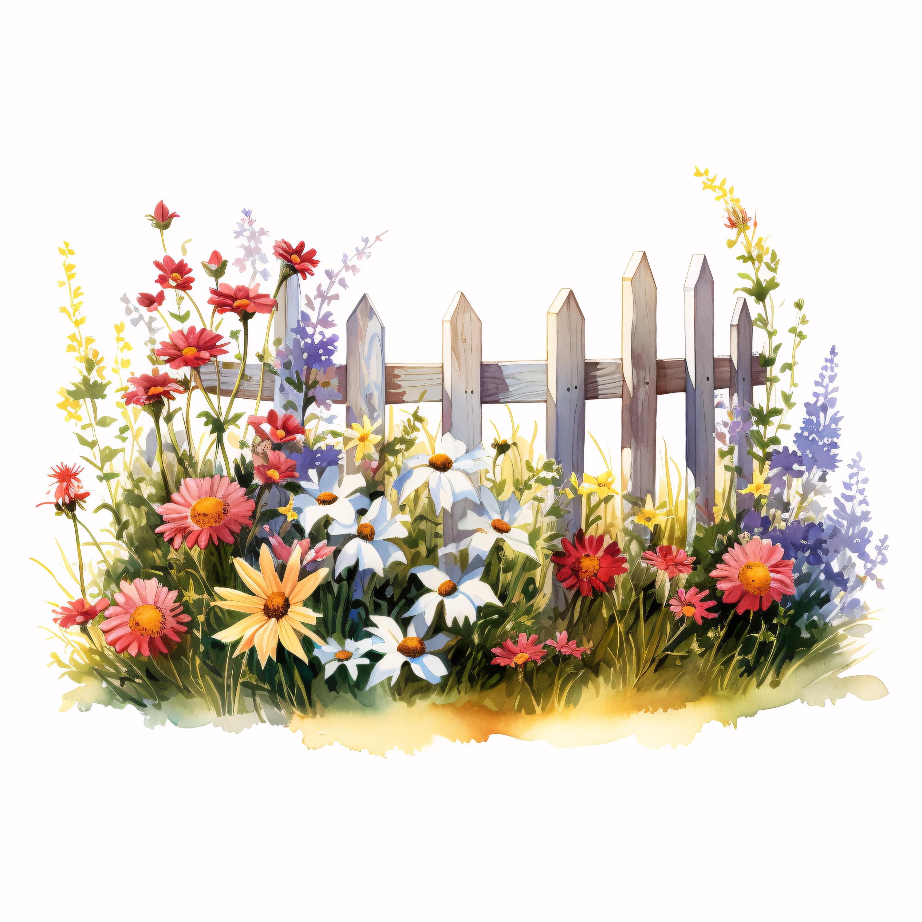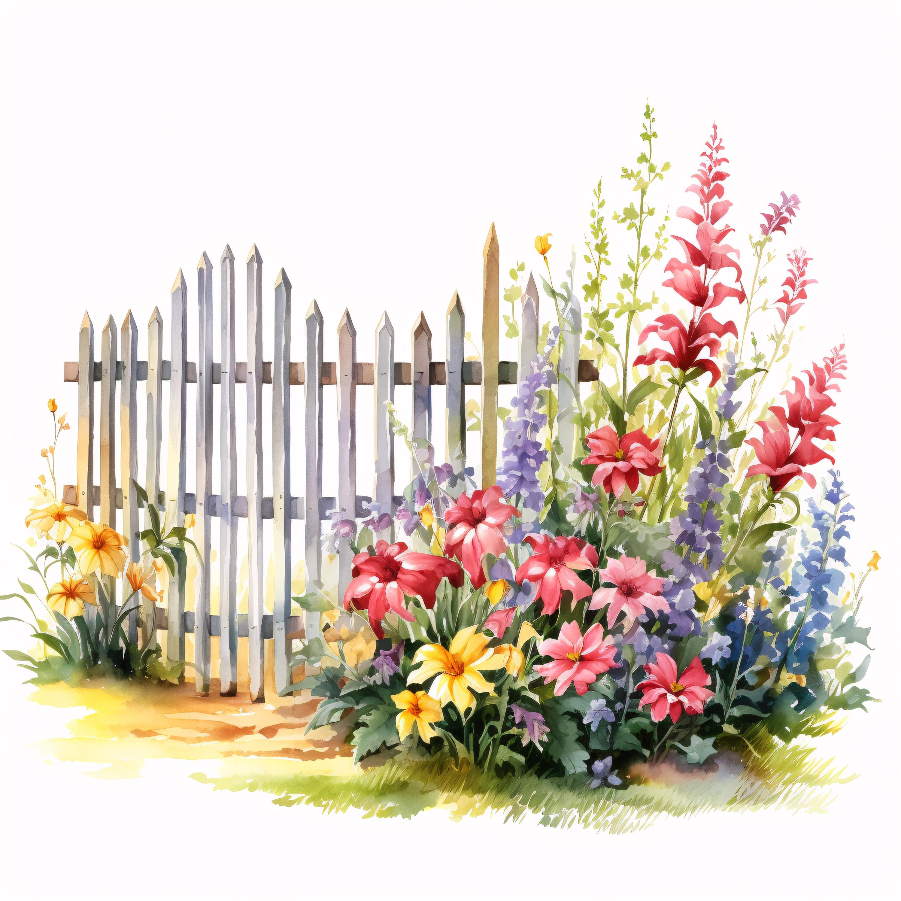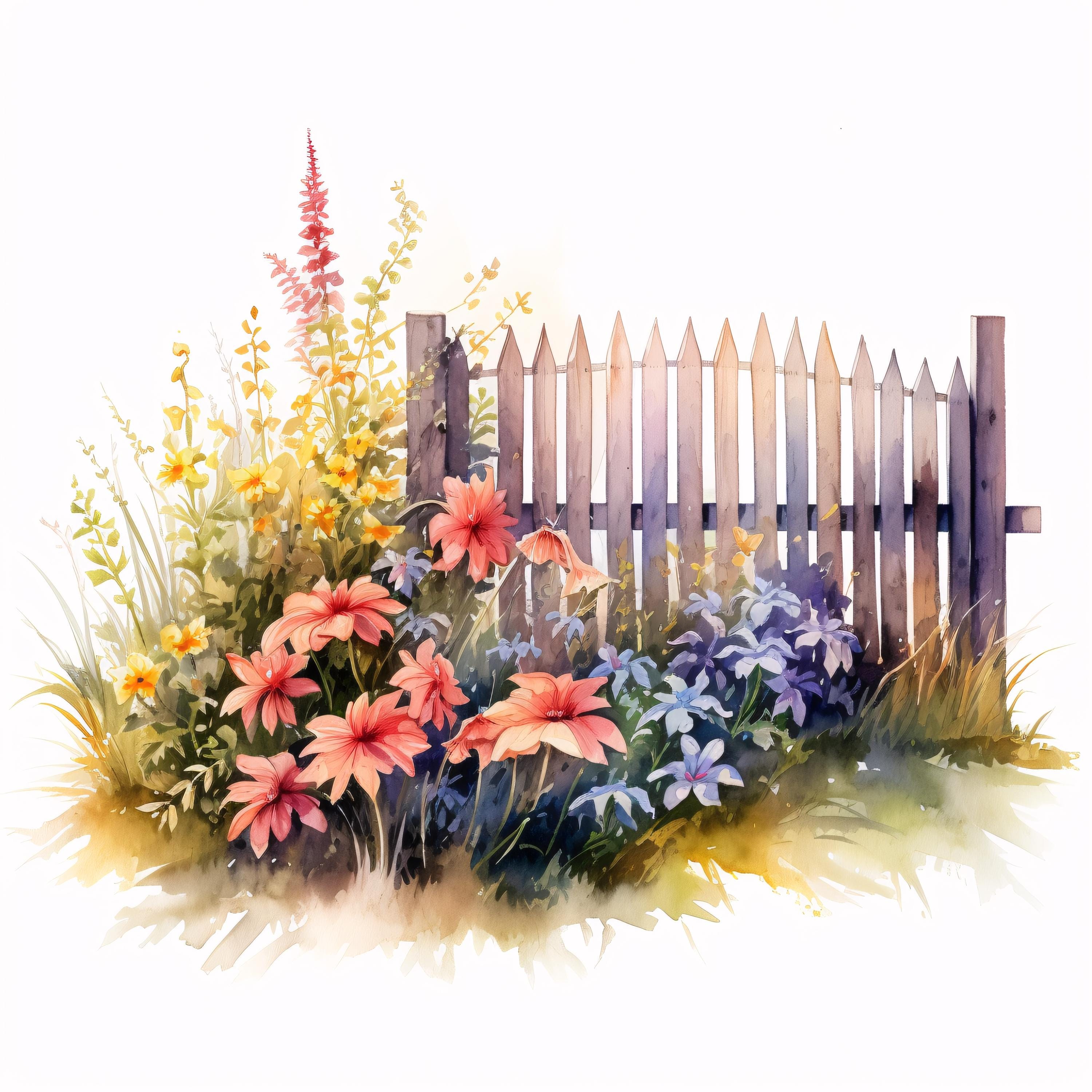 Garden Fence Clipart, Floral Border Images, 10 Watercolor Clip Art, Printable JPGs, Instant Download, Commercial Use, Paper craft