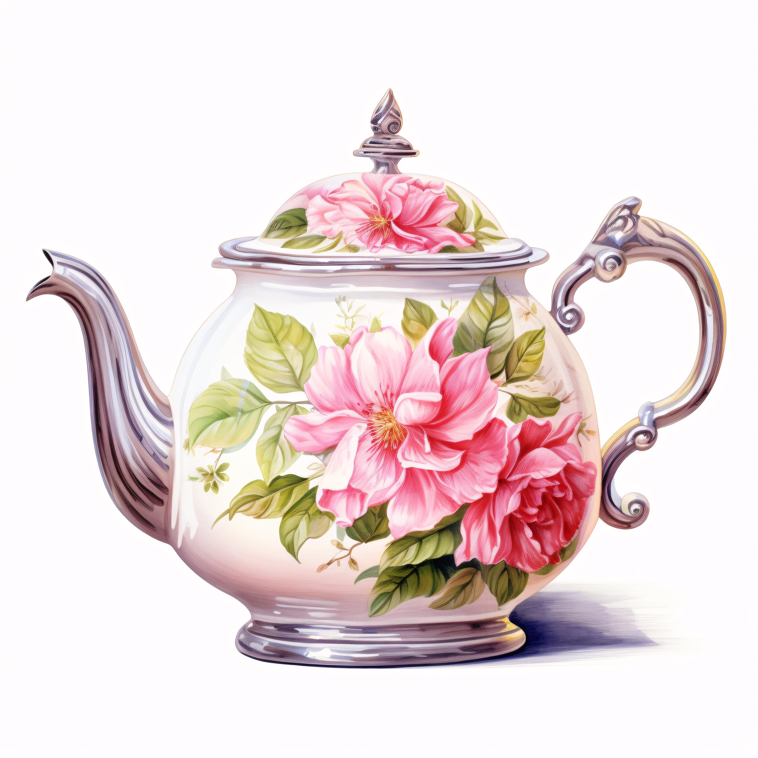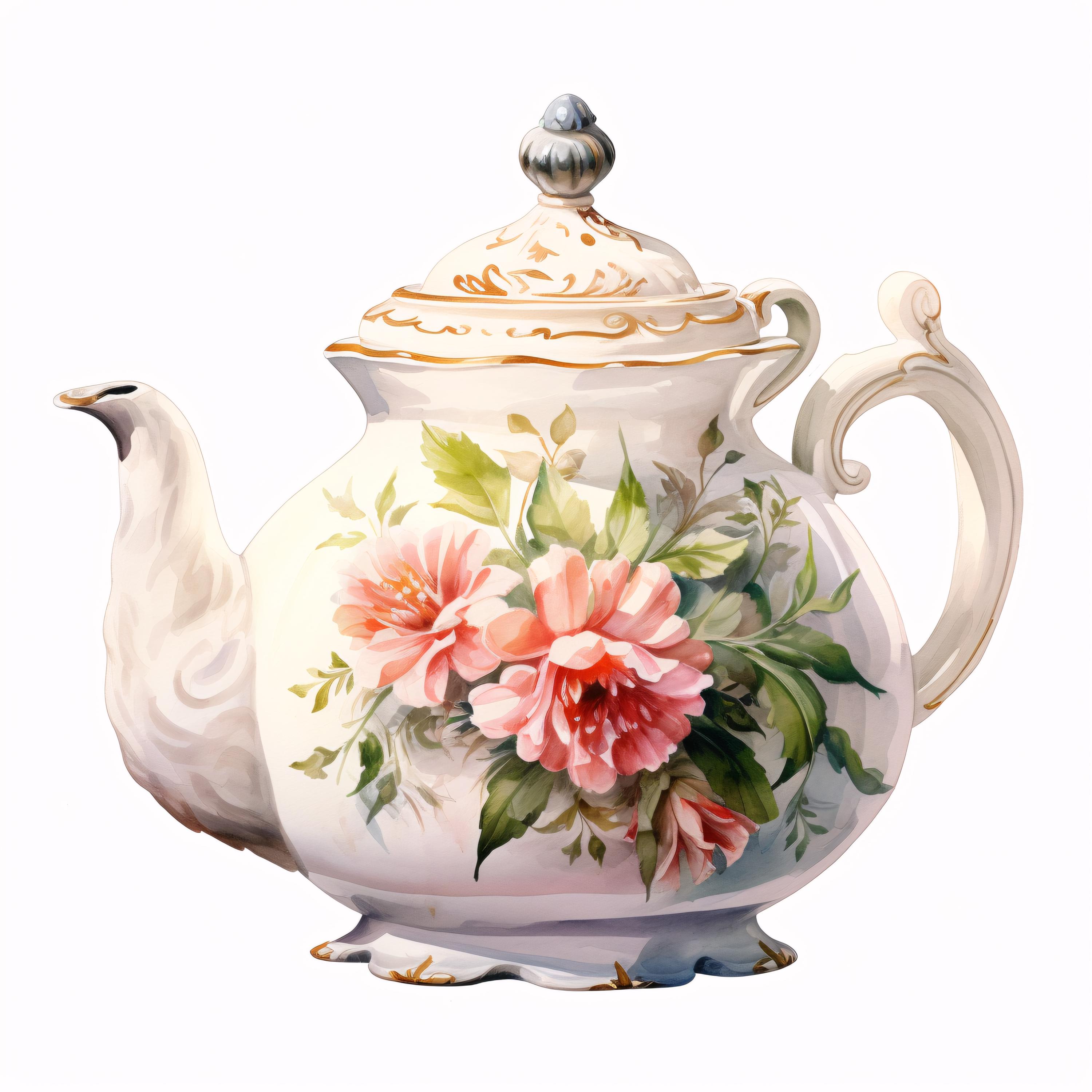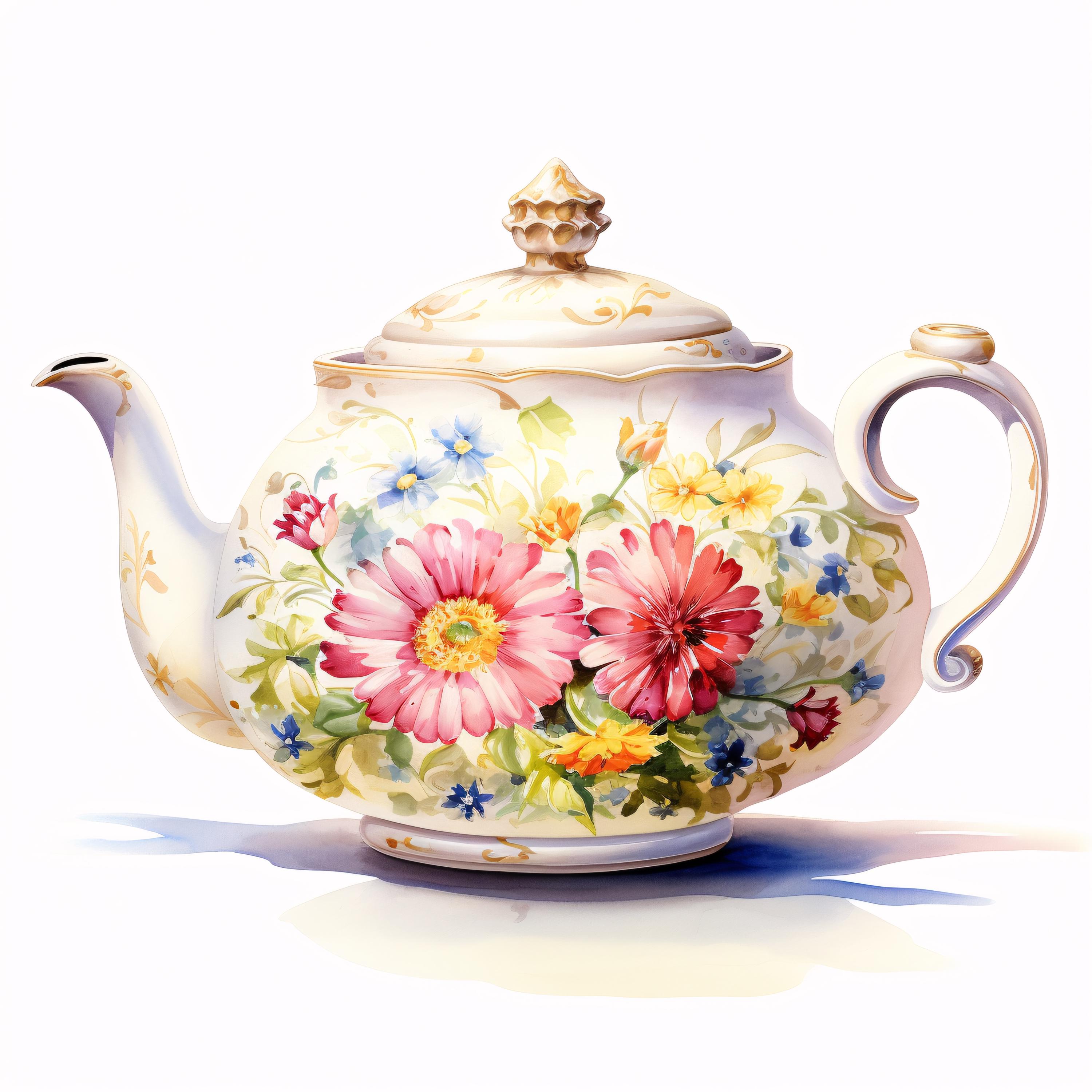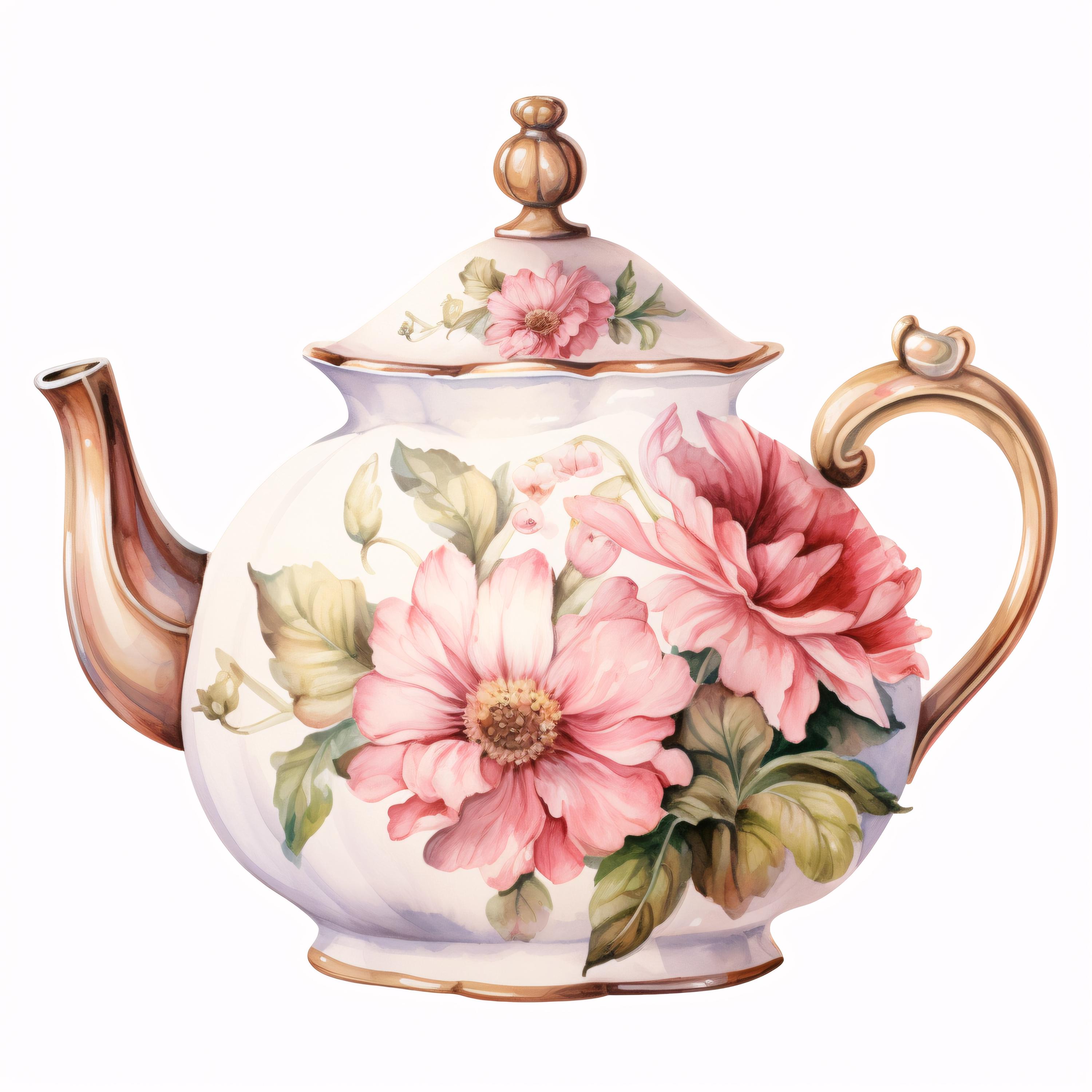 Floral Teapot Clipart, Vintage Tea Set Images, 10 Watercolor Clip Art, Printable JPGs, Instant Download, Commercial Use, Paper craft