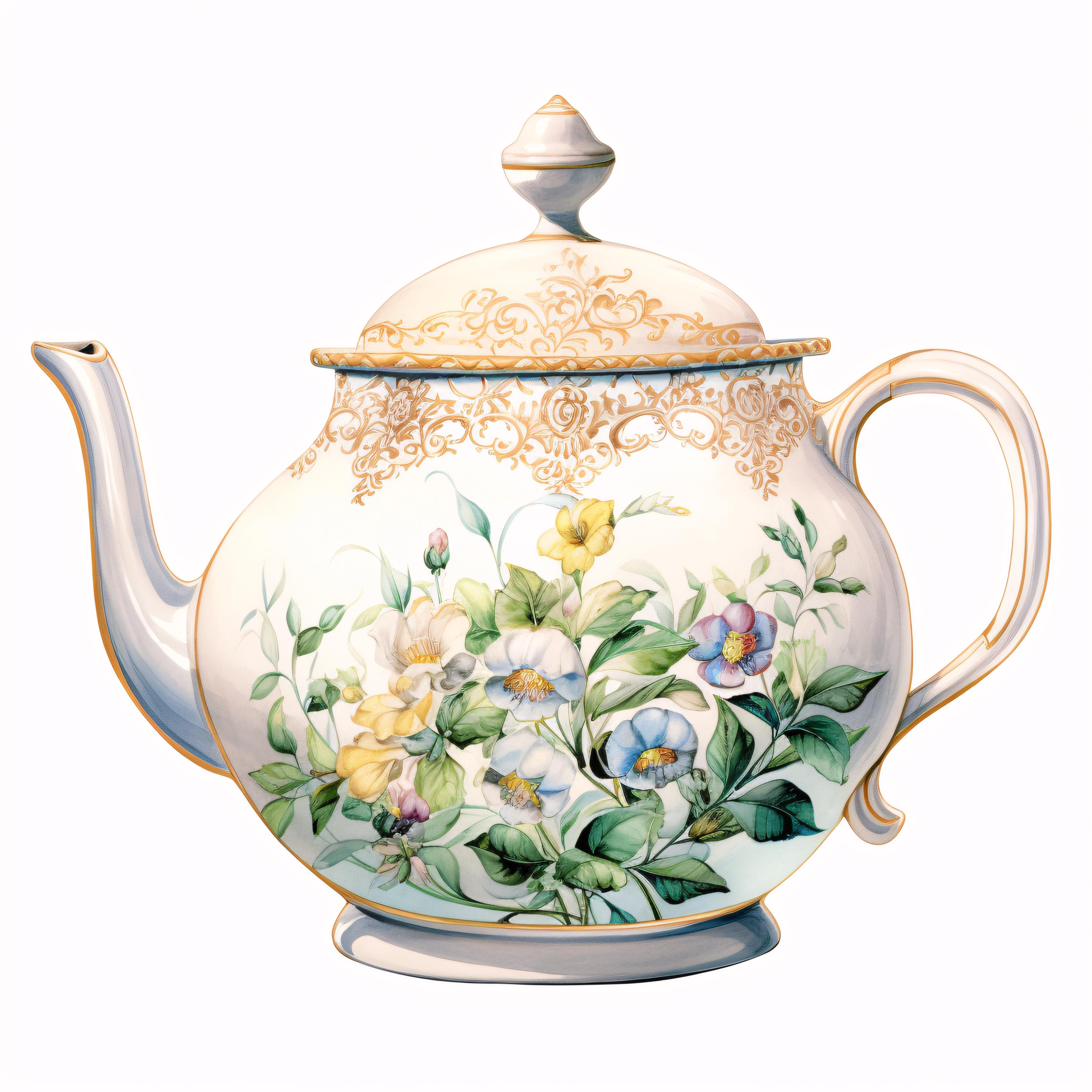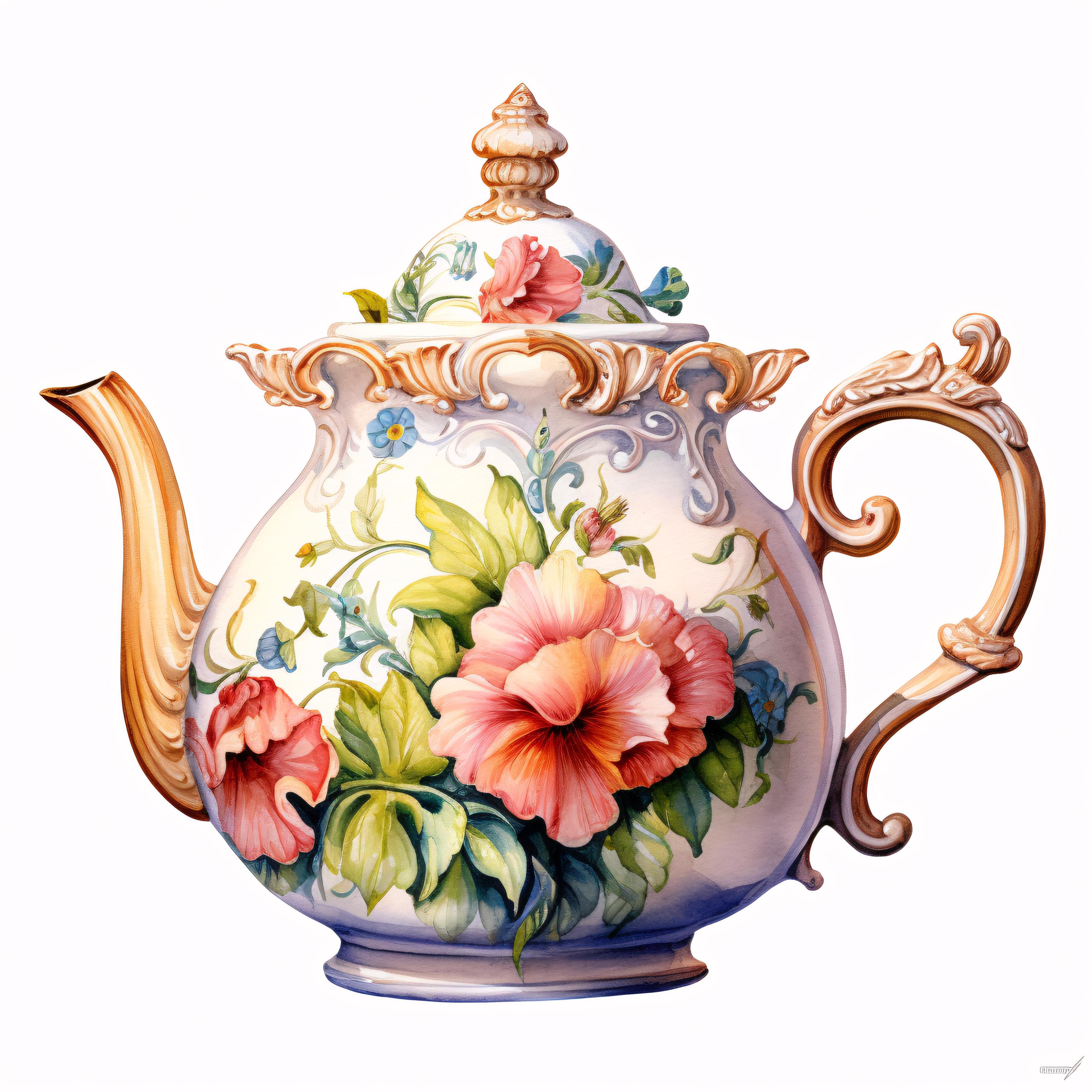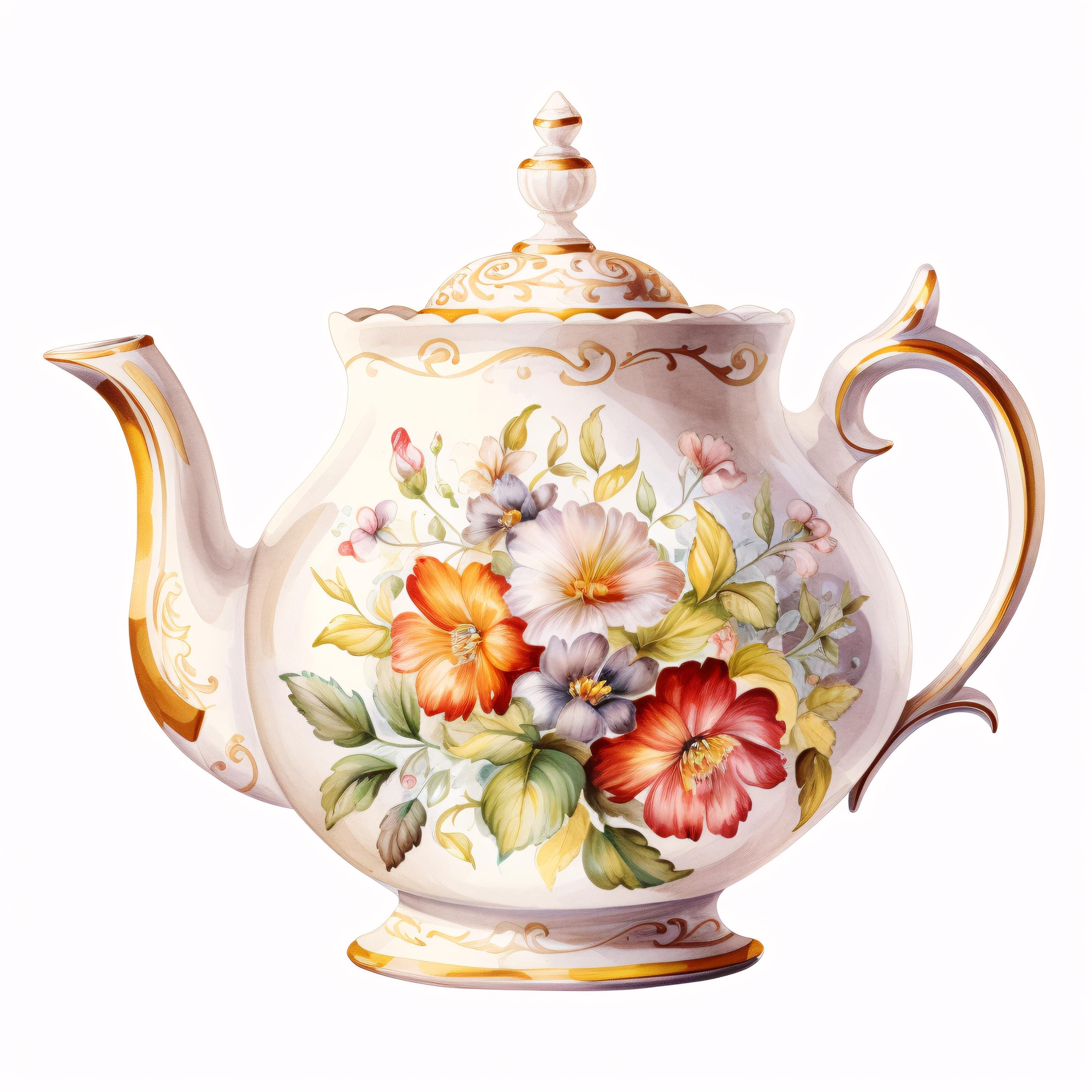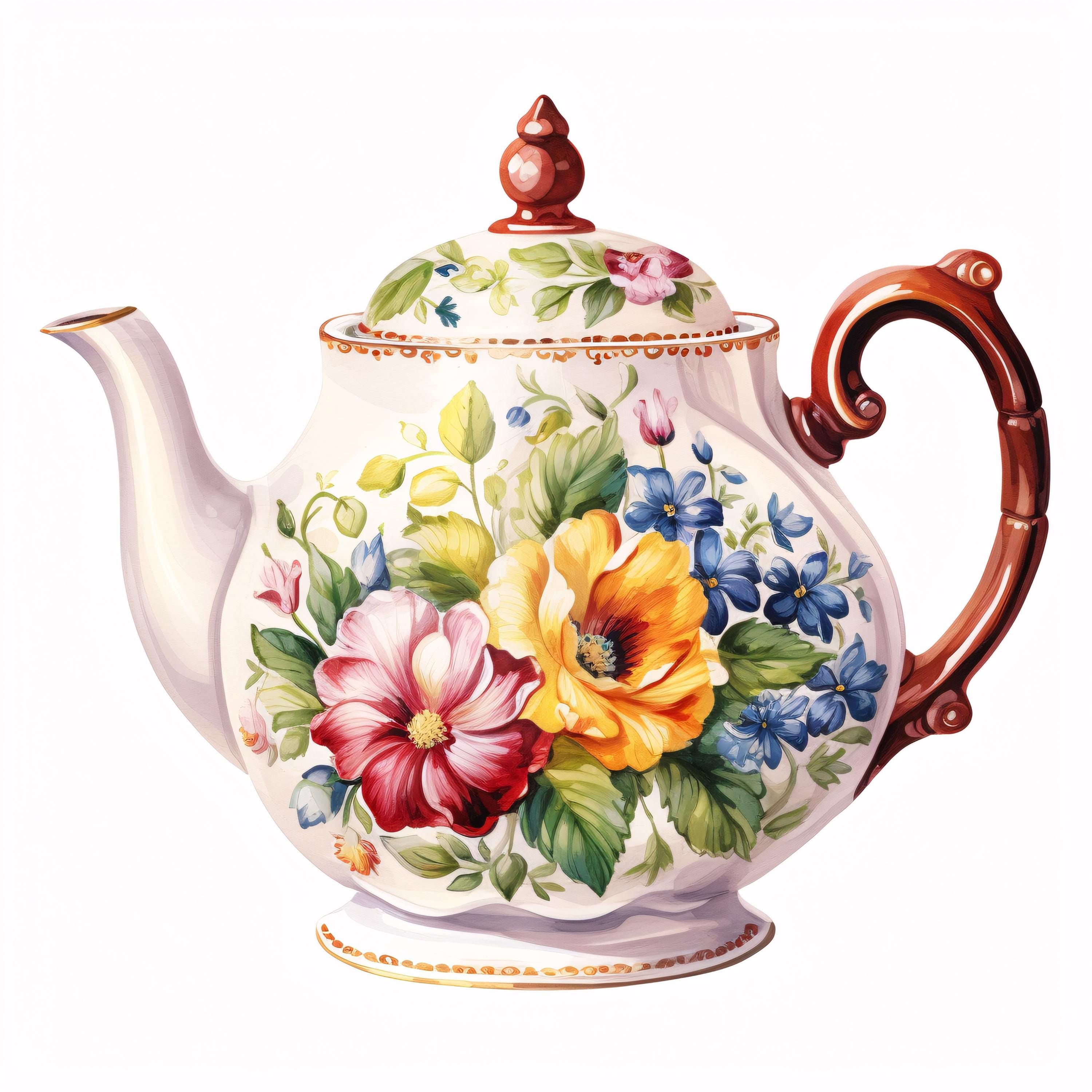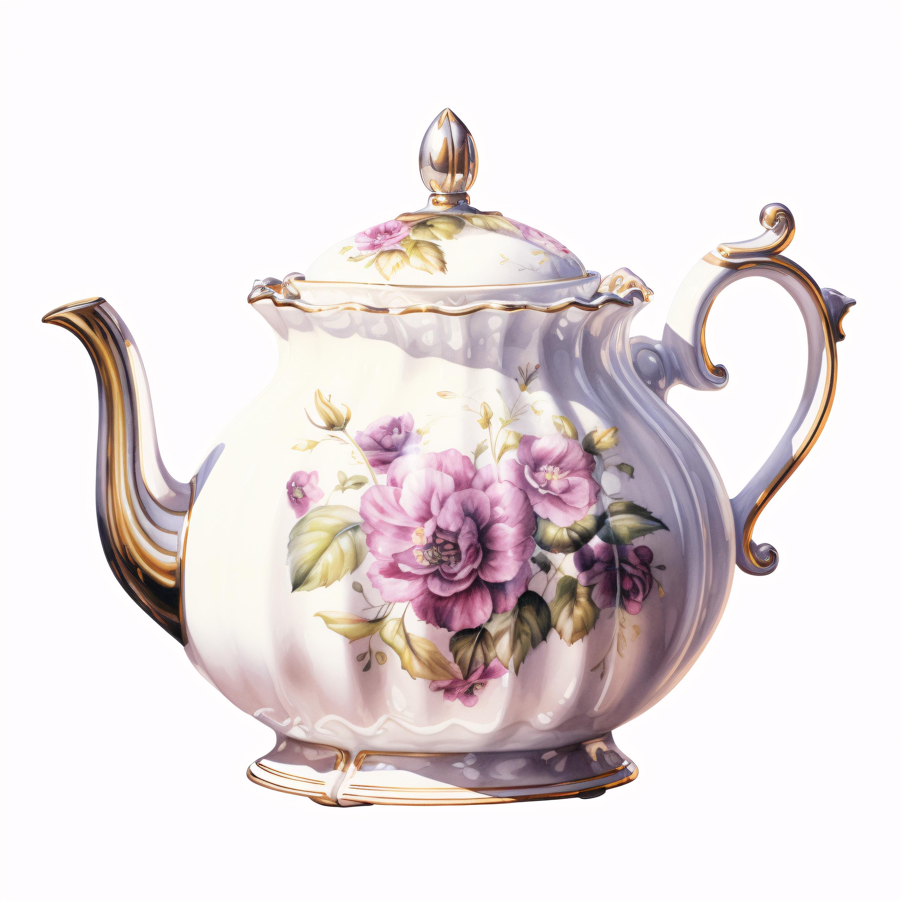Floral Teapot Clipart, Vintage Tea Set Images, 10 Watercolor Clip Art, Printable JPGs, Instant Download, Commercial Use, Paper craft