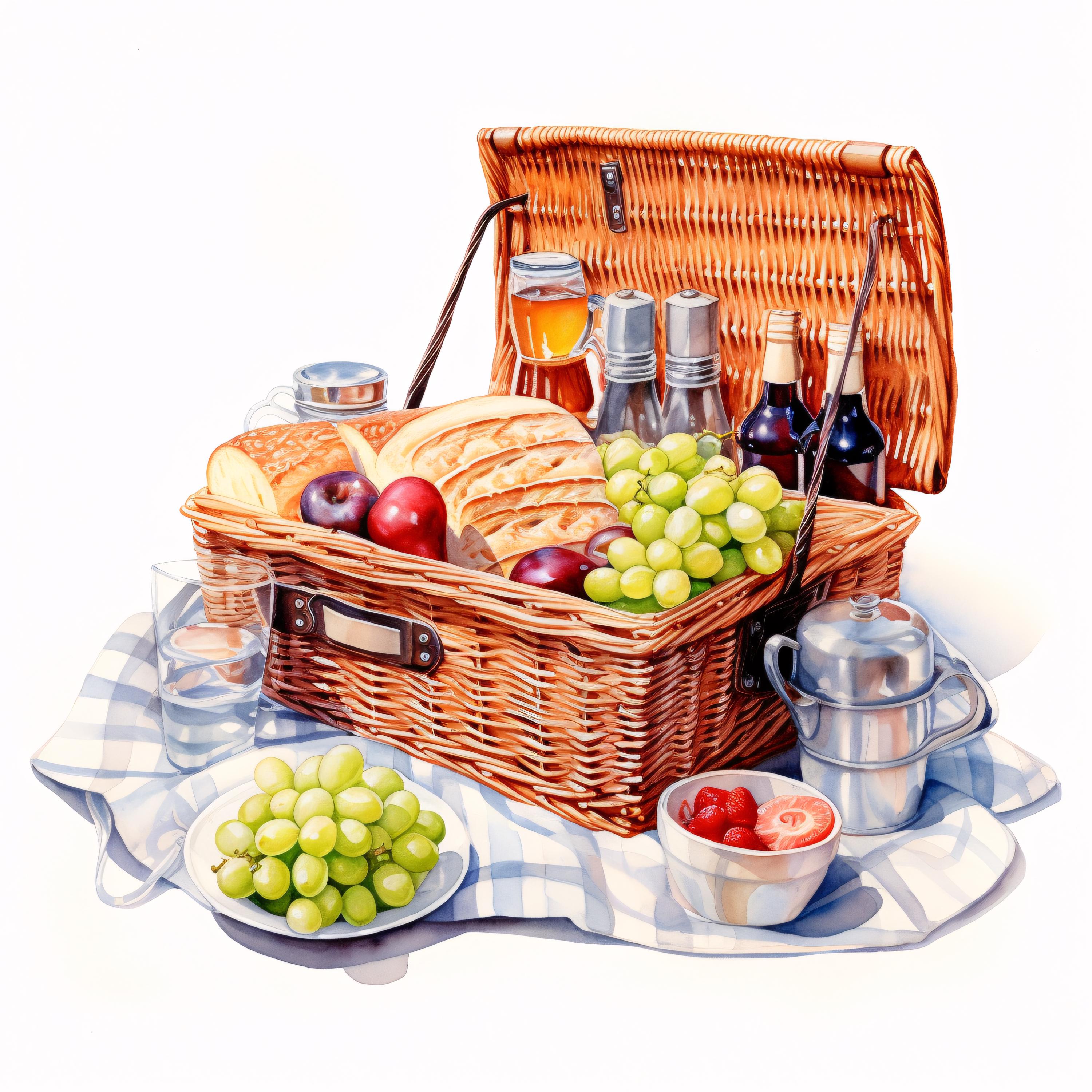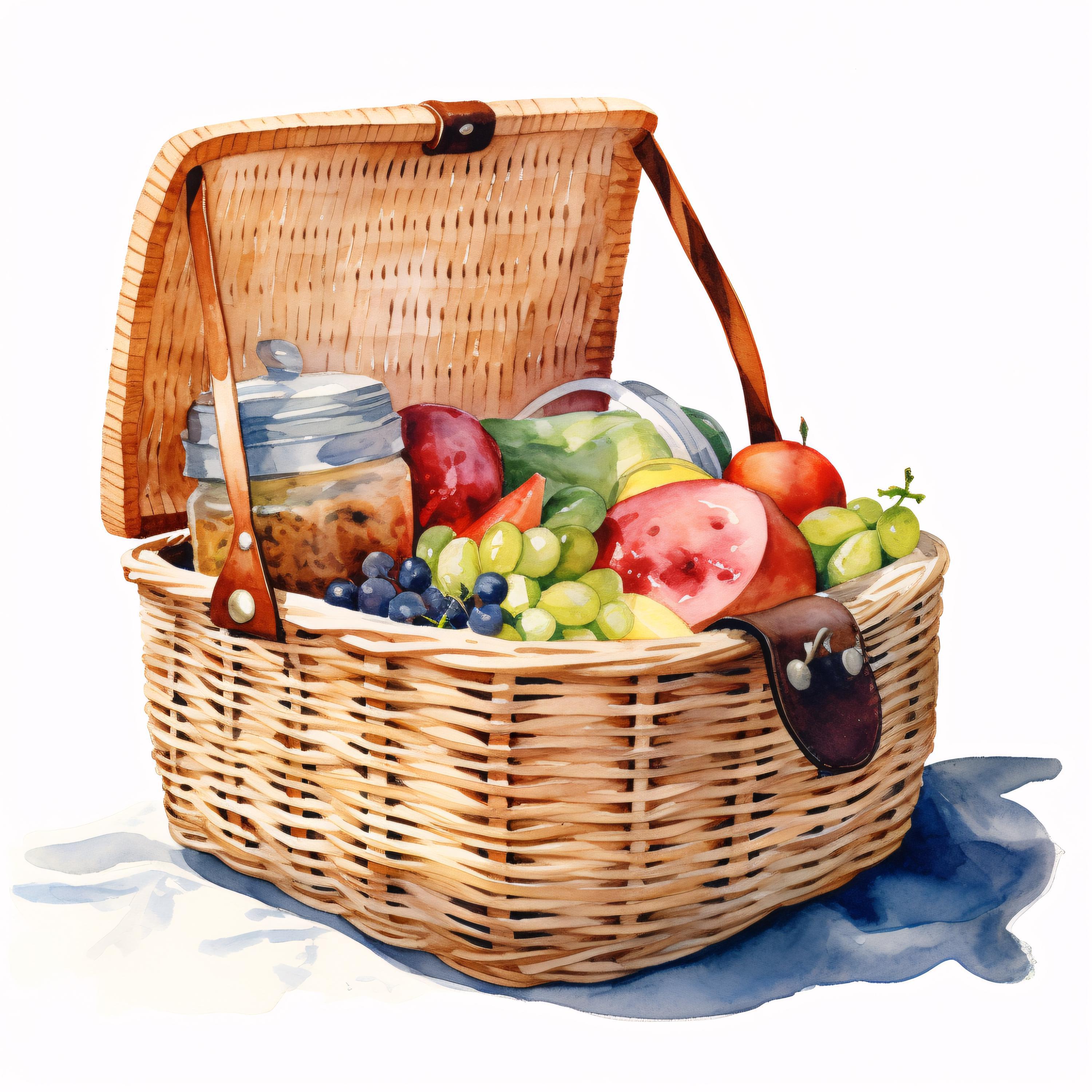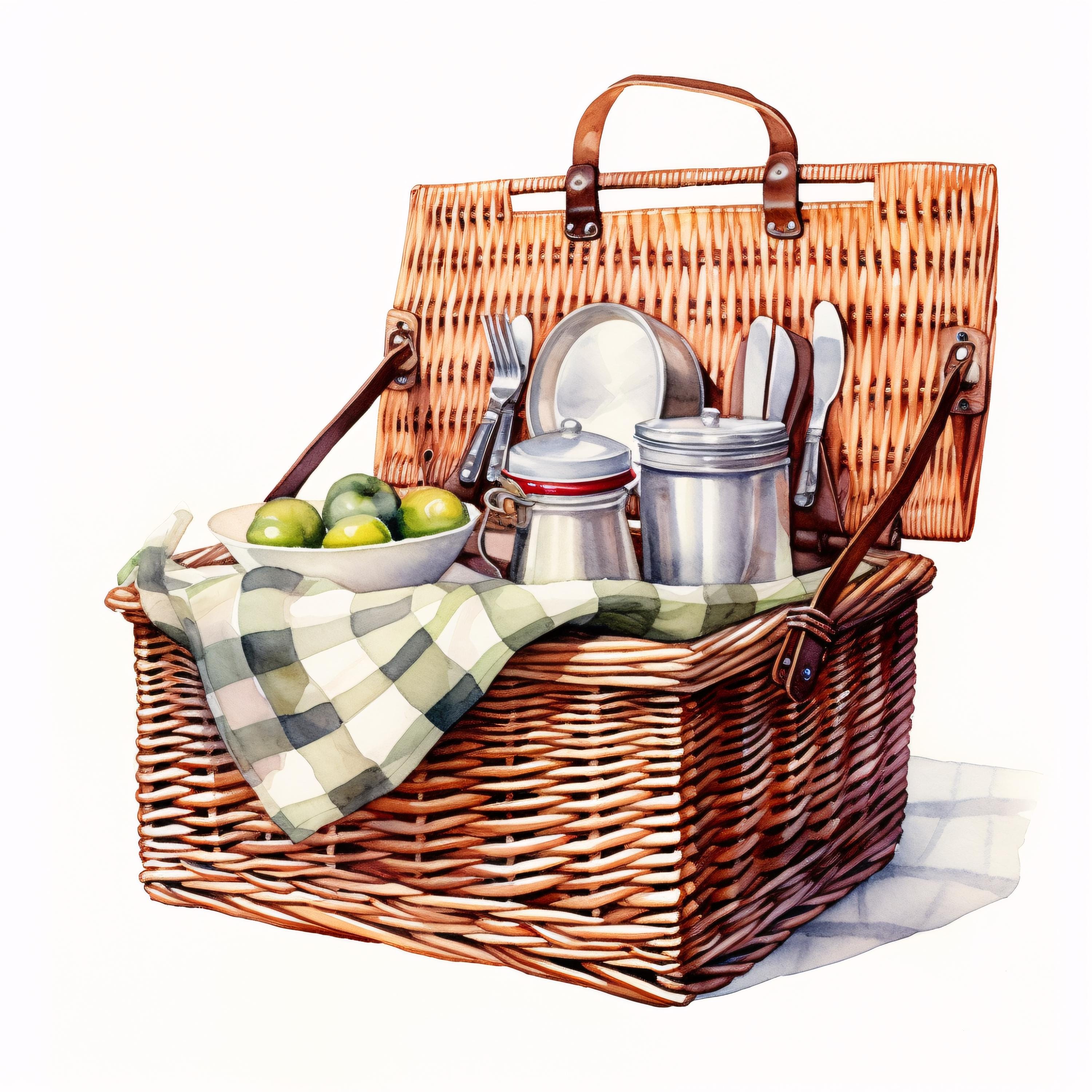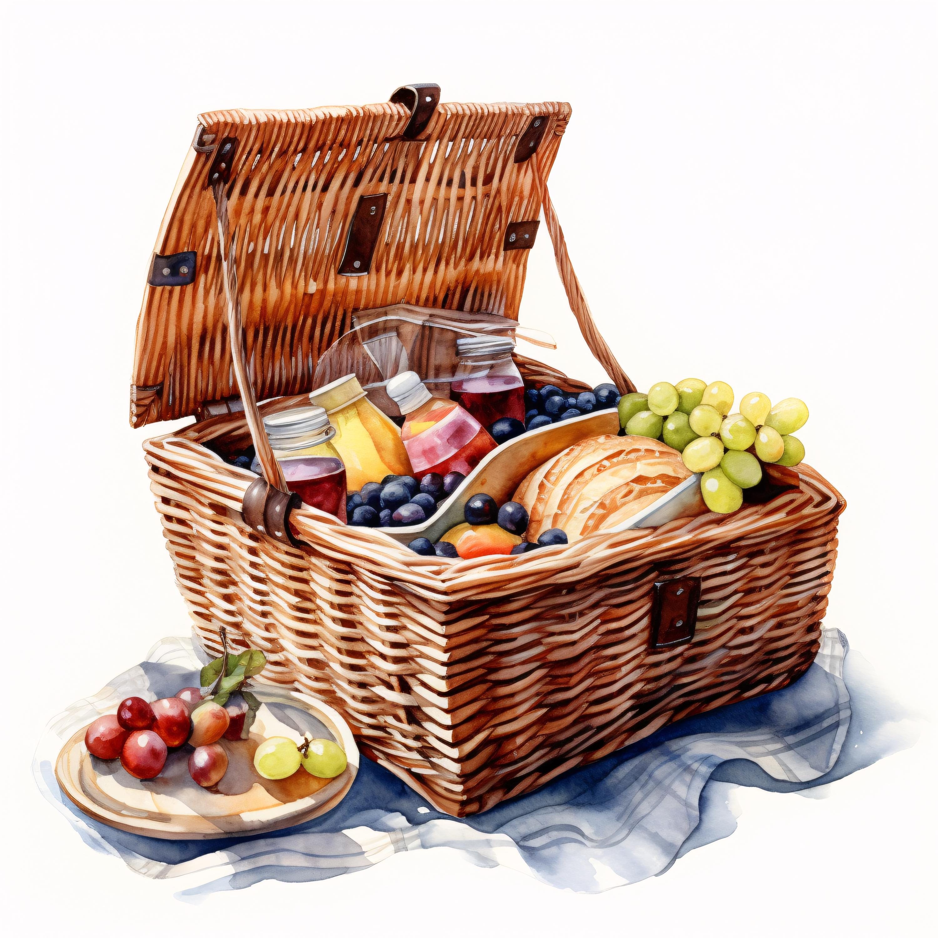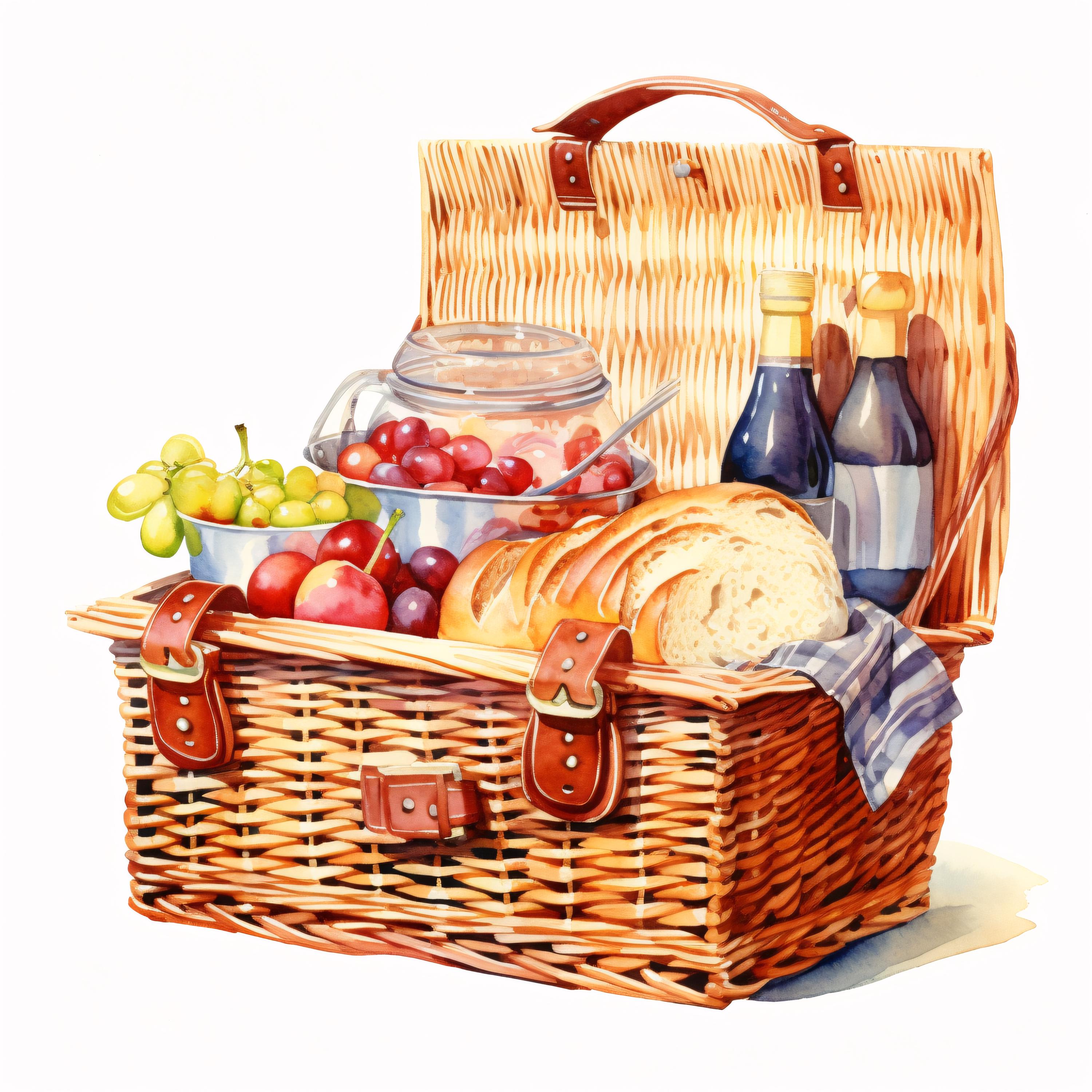 Picnic Basket Clipart, Summer Picnic Images, 10 Watercolor Clip Art, Printable JPGs, Instant Download, Commercial Use, Paper craft