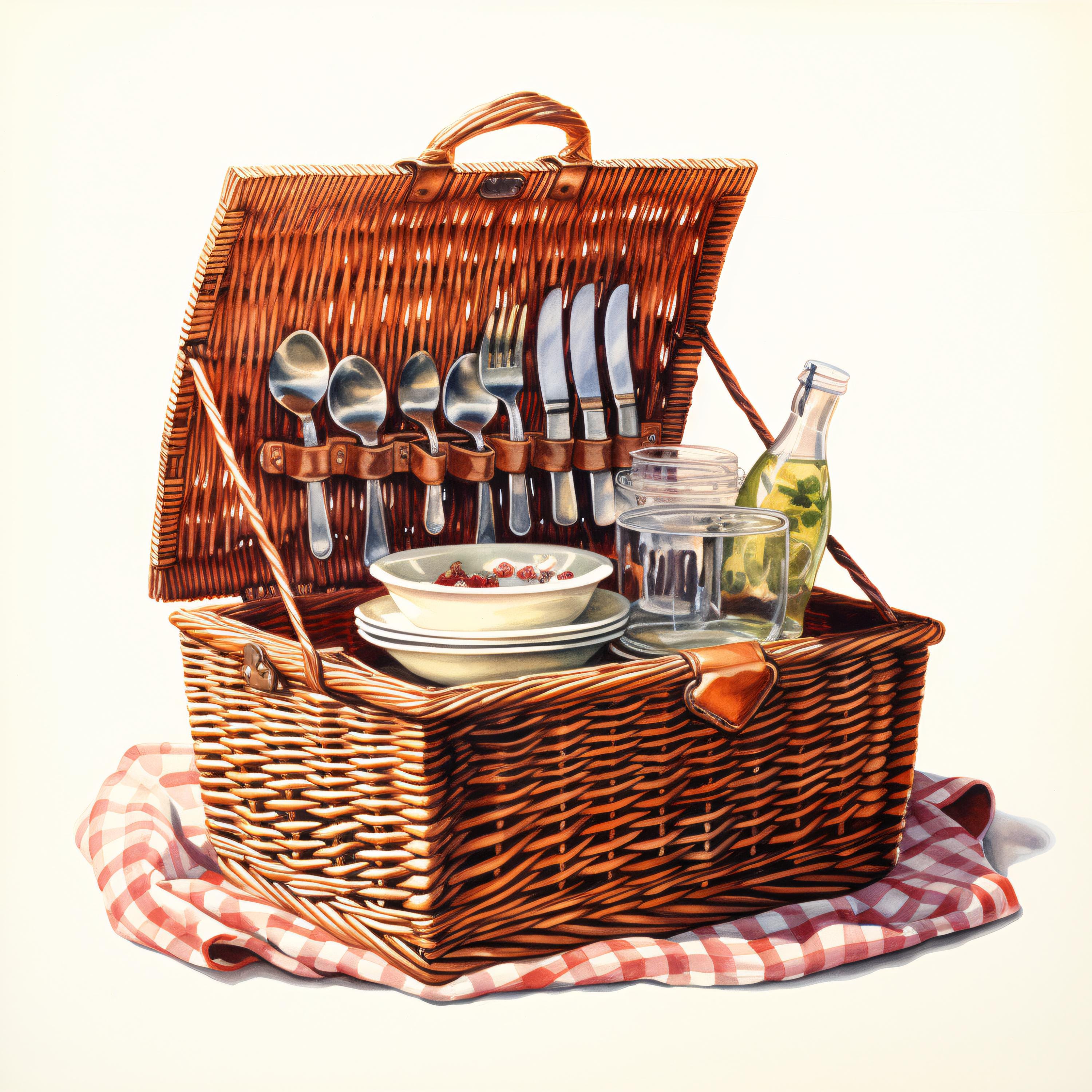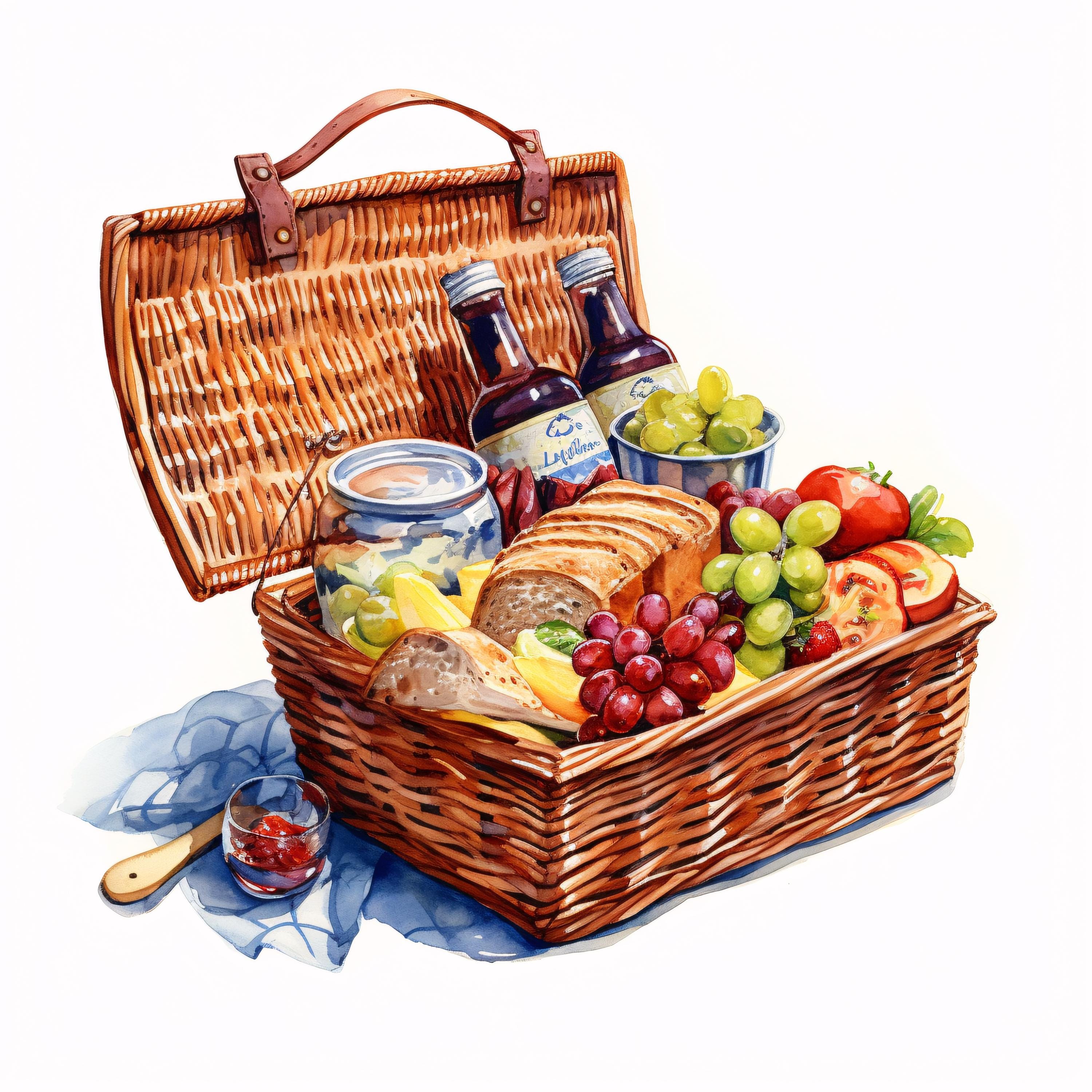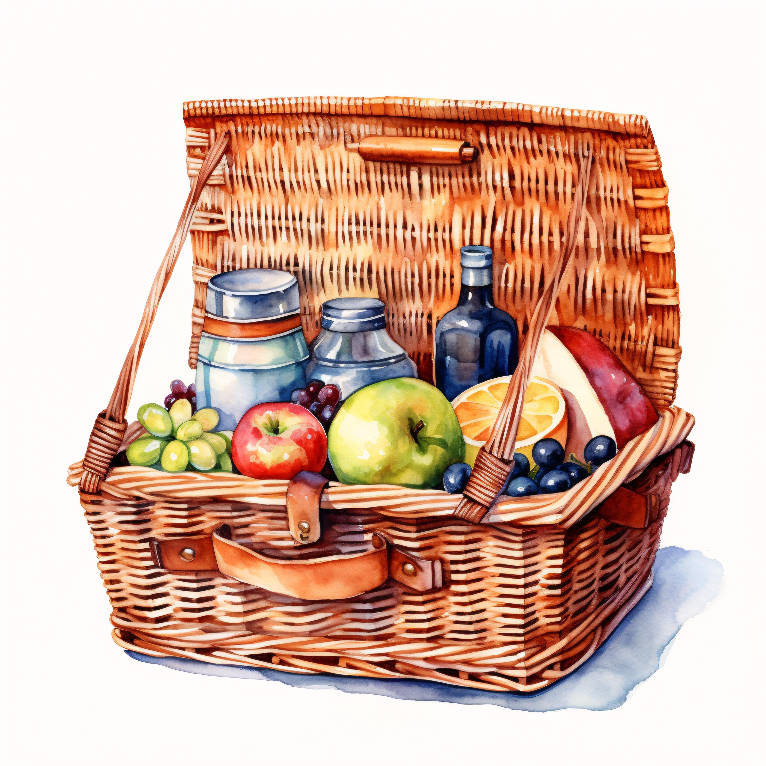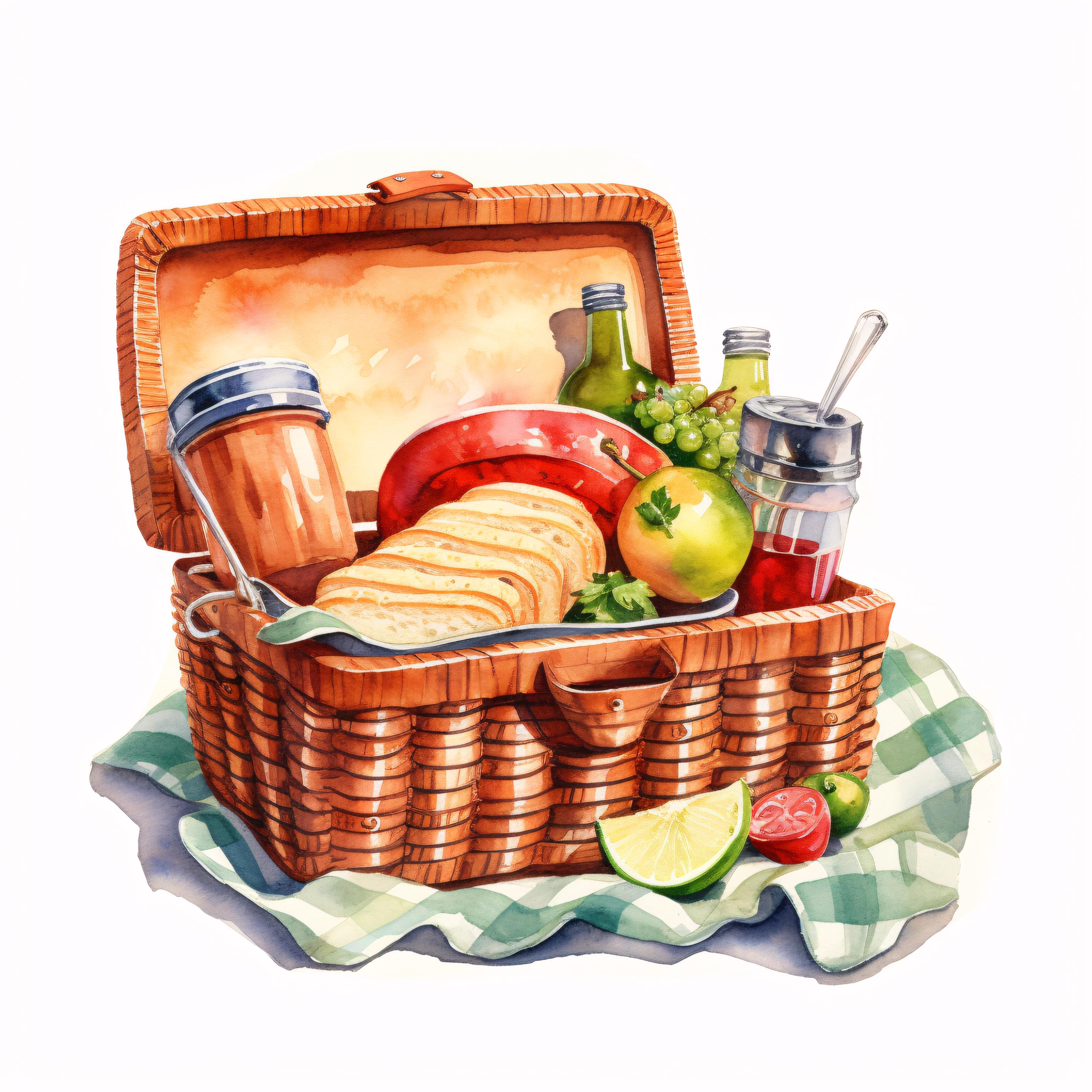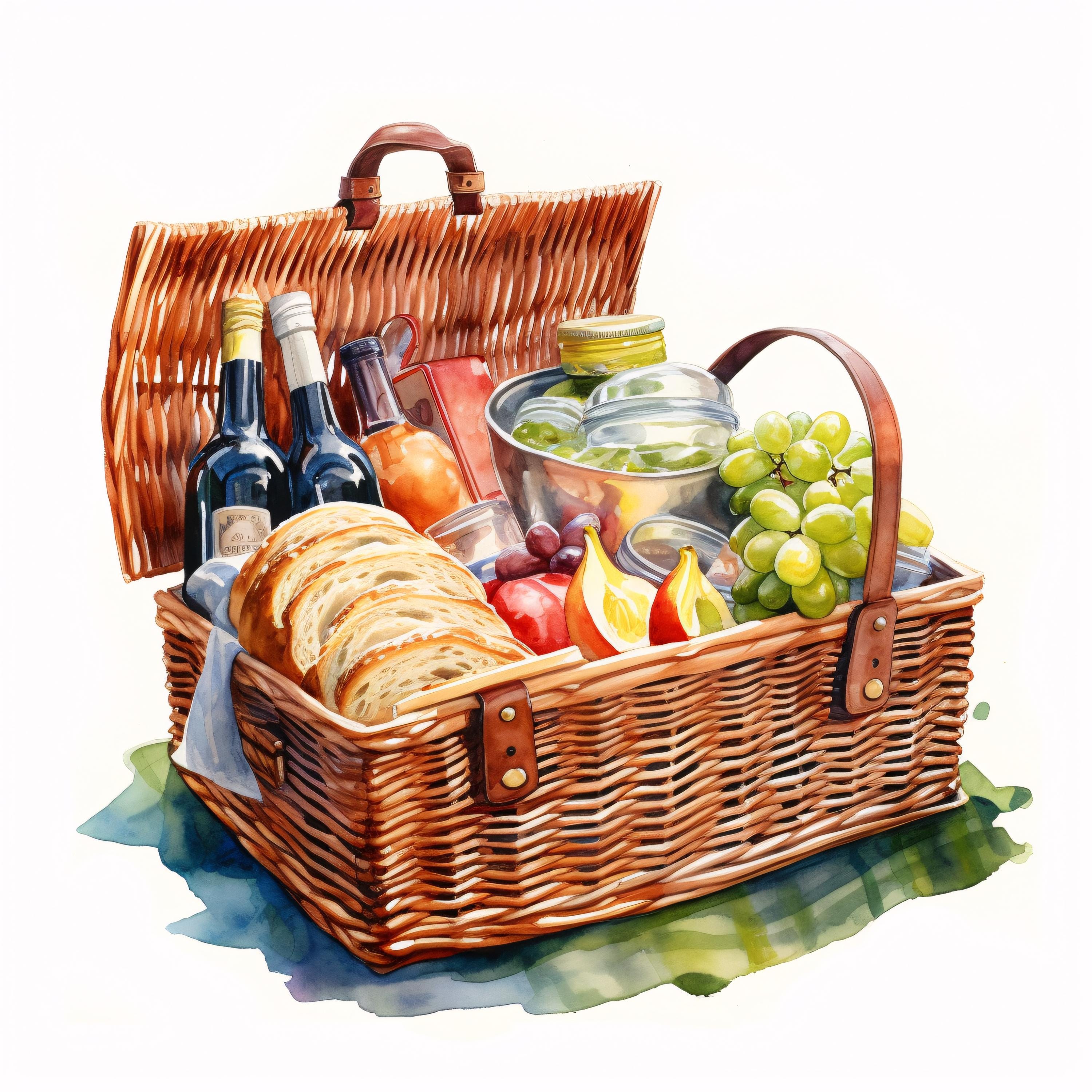 Picnic Basket Clipart, Summer Picnic Images, 10 Watercolor Clip Art, Printable JPGs, Instant Download, Commercial Use, Paper craft