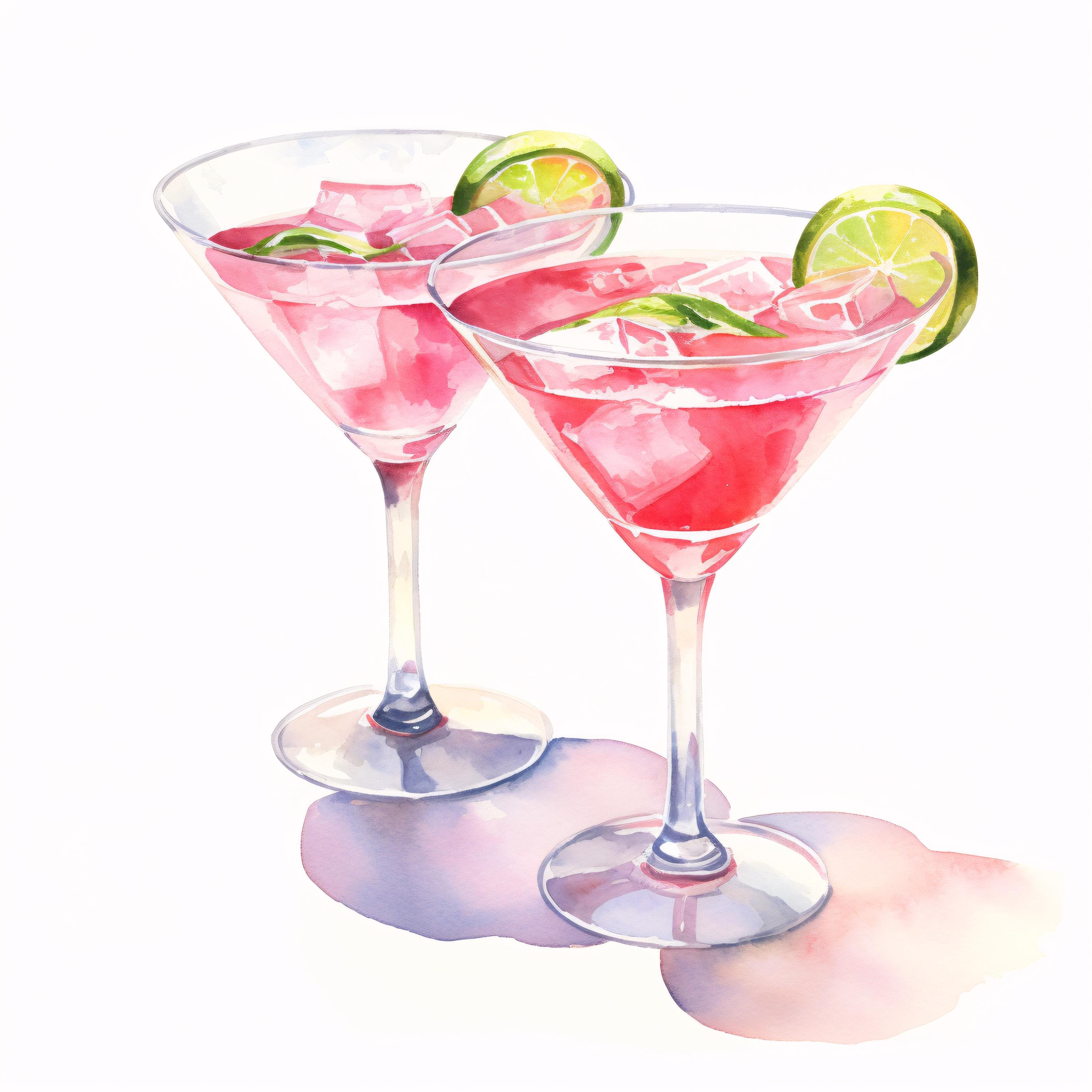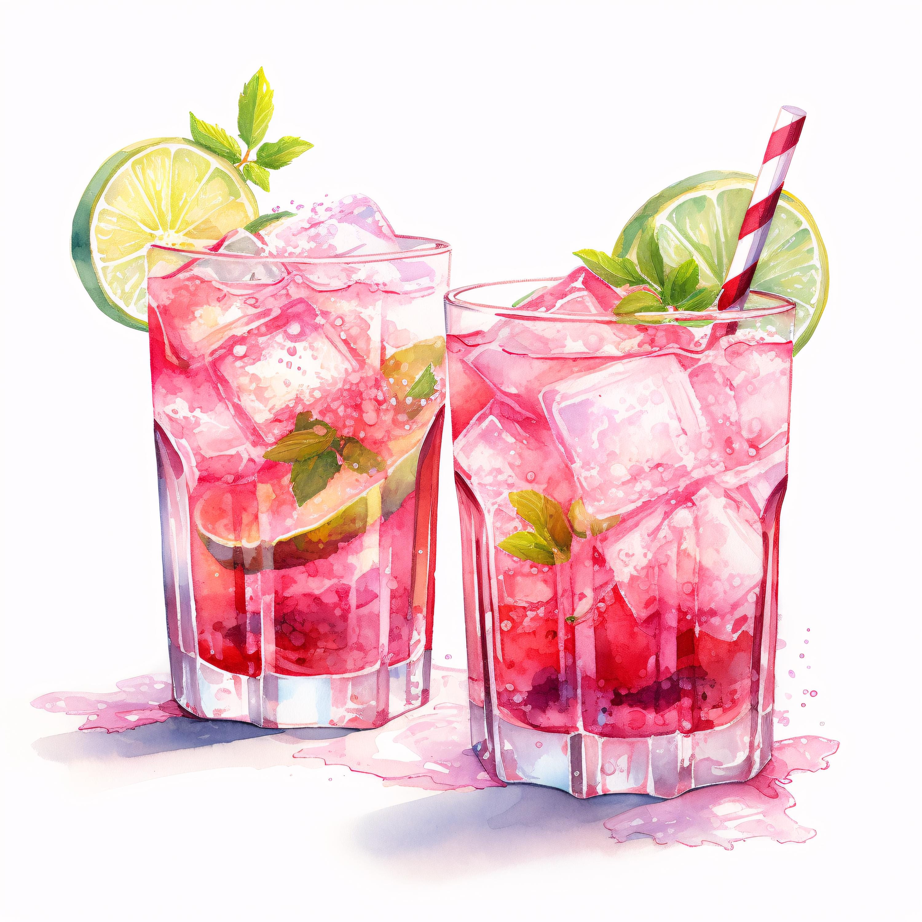 Cocktail Glasses Clipart, Summer Drink Images, 10 Watercolor Clip Art, Printable JPGs, Instant Download, Commercial Use, Paper craft