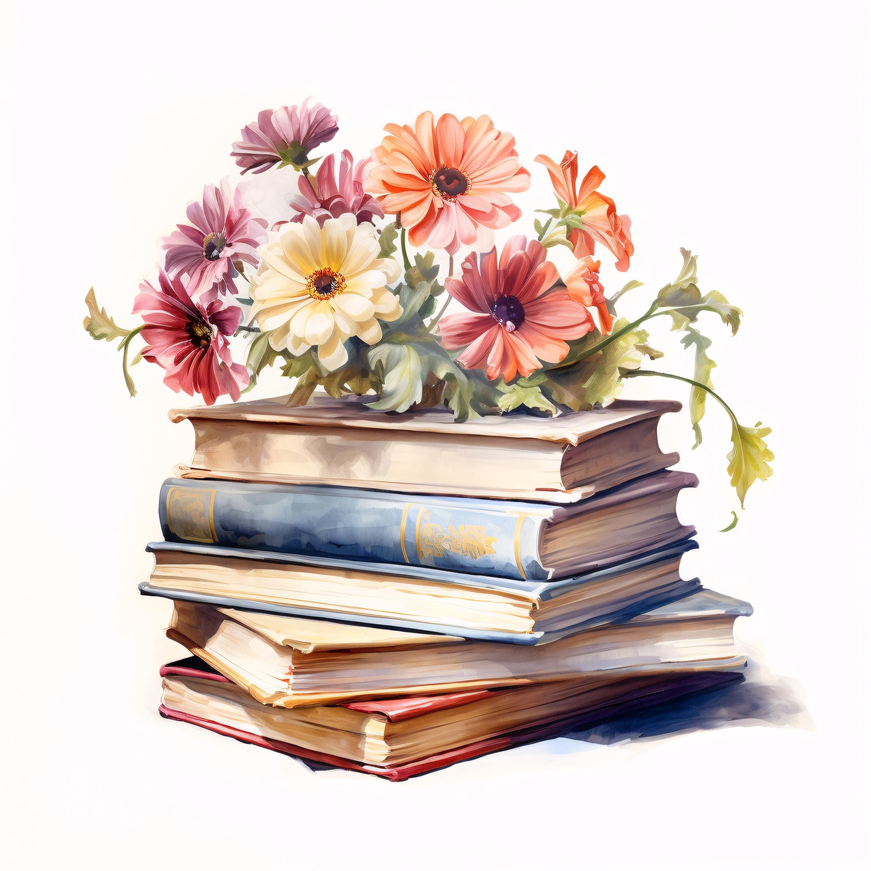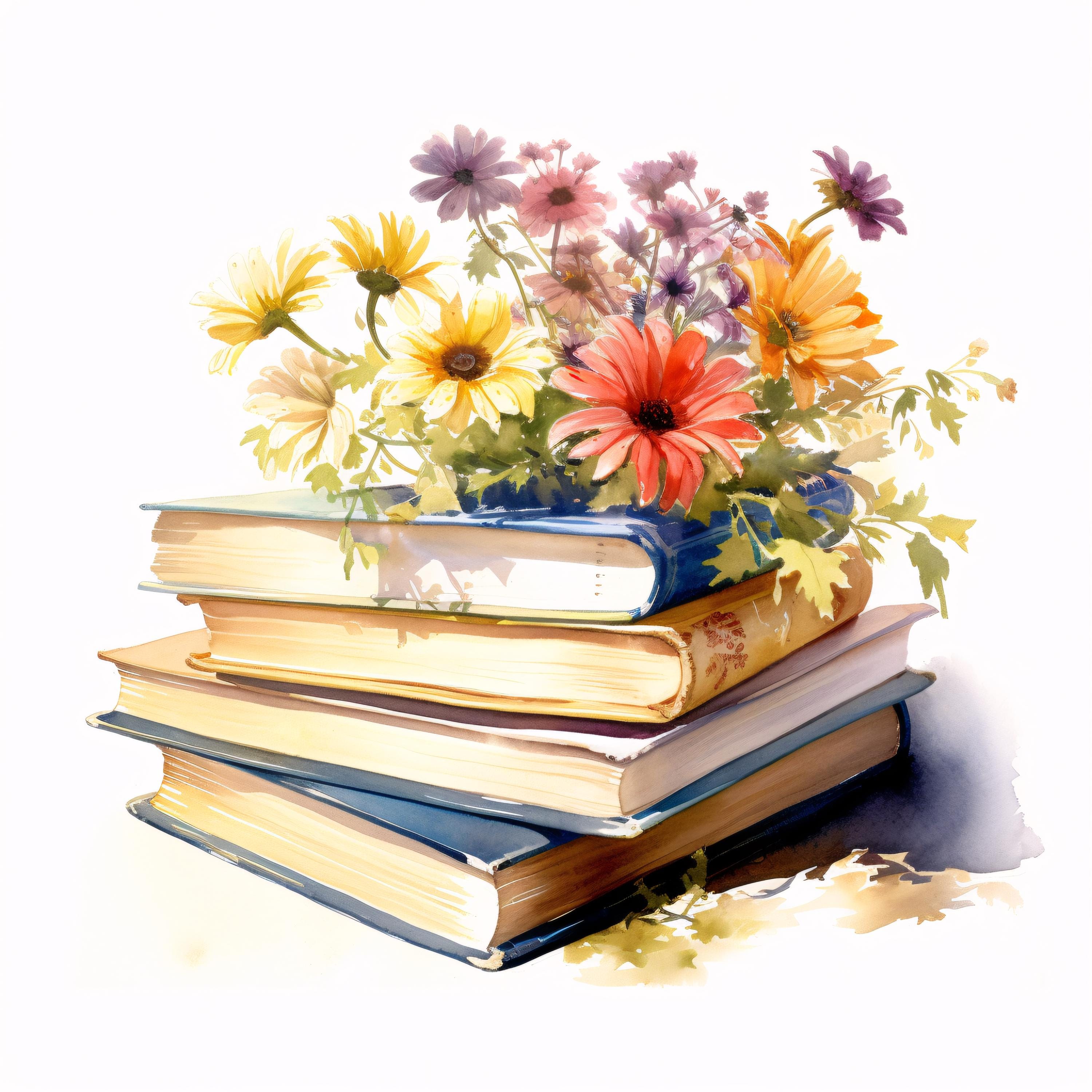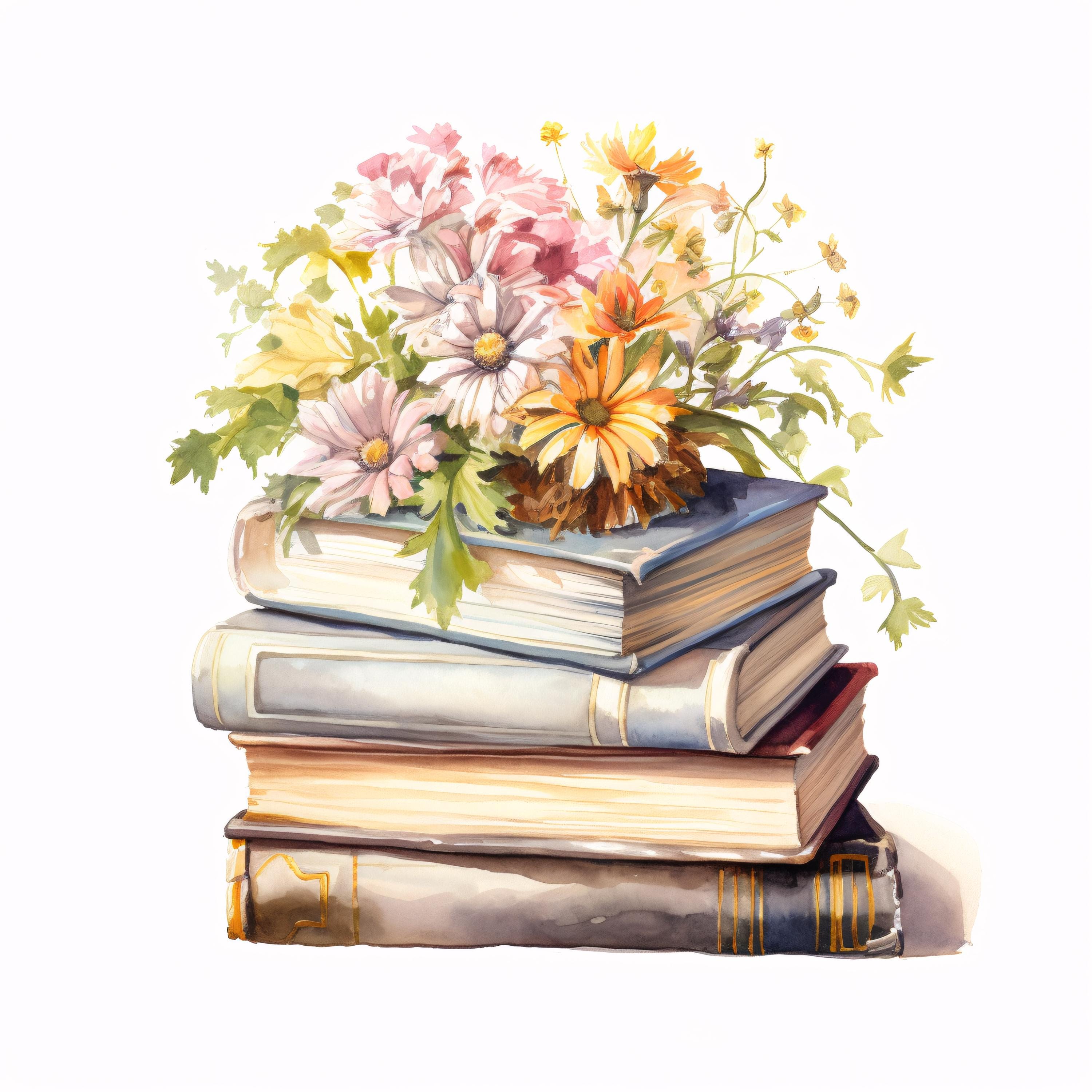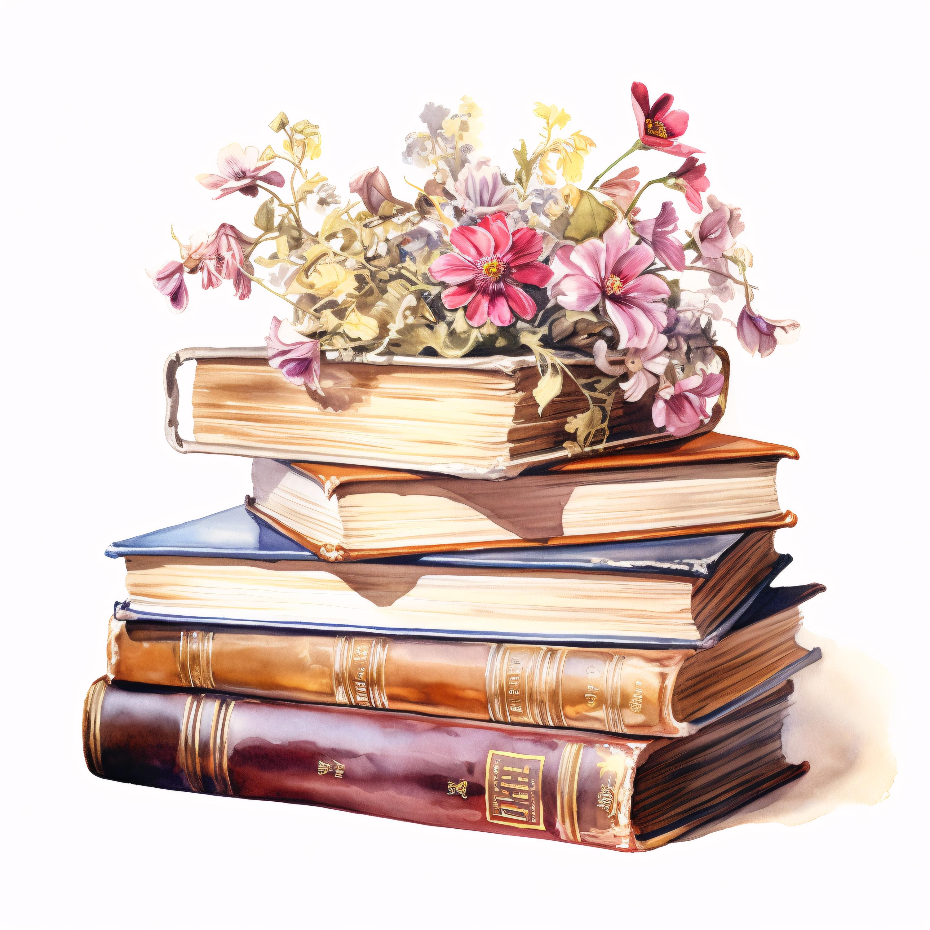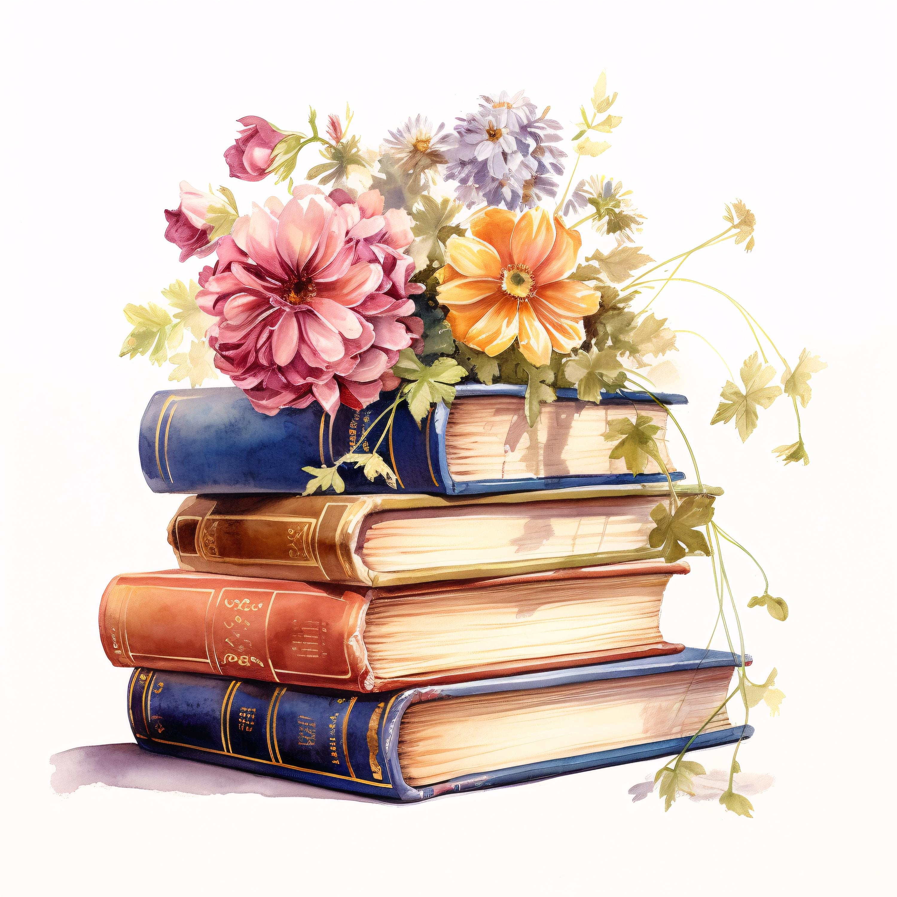 Floral Books Clipart, Vintage Reading Images, 10 Watercolor Clip Art, Printable JPGs, Instant Download, Commercial Use, Paper craft