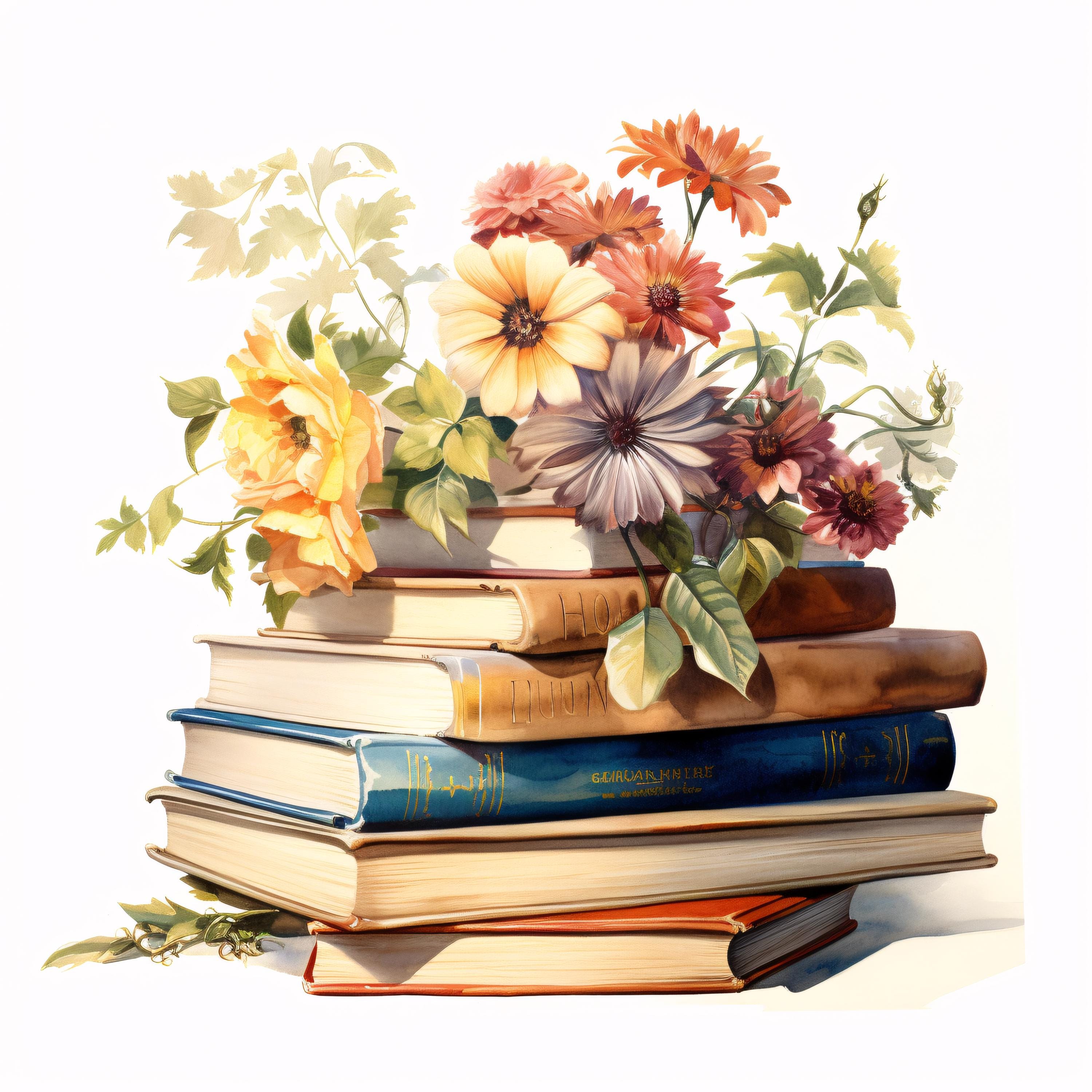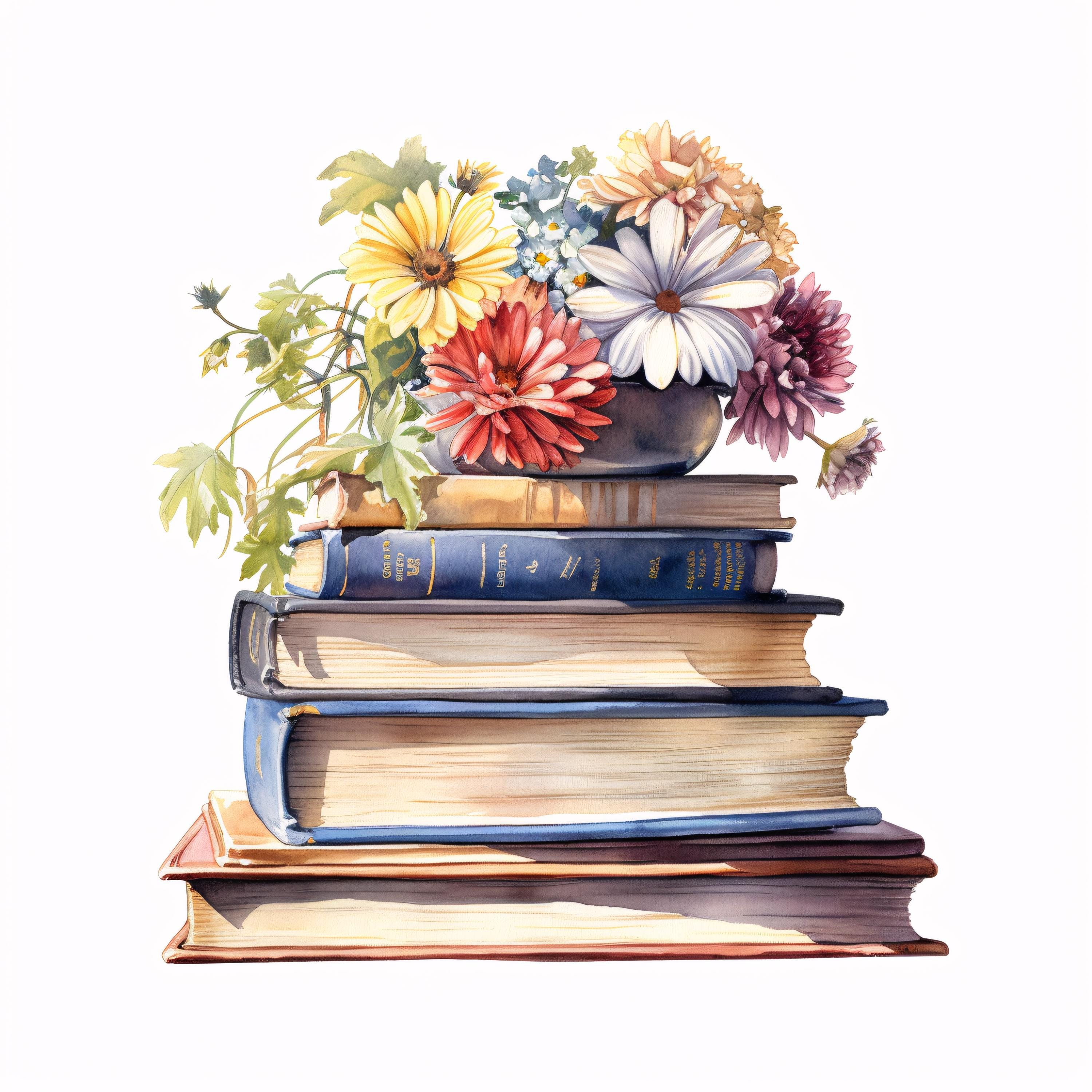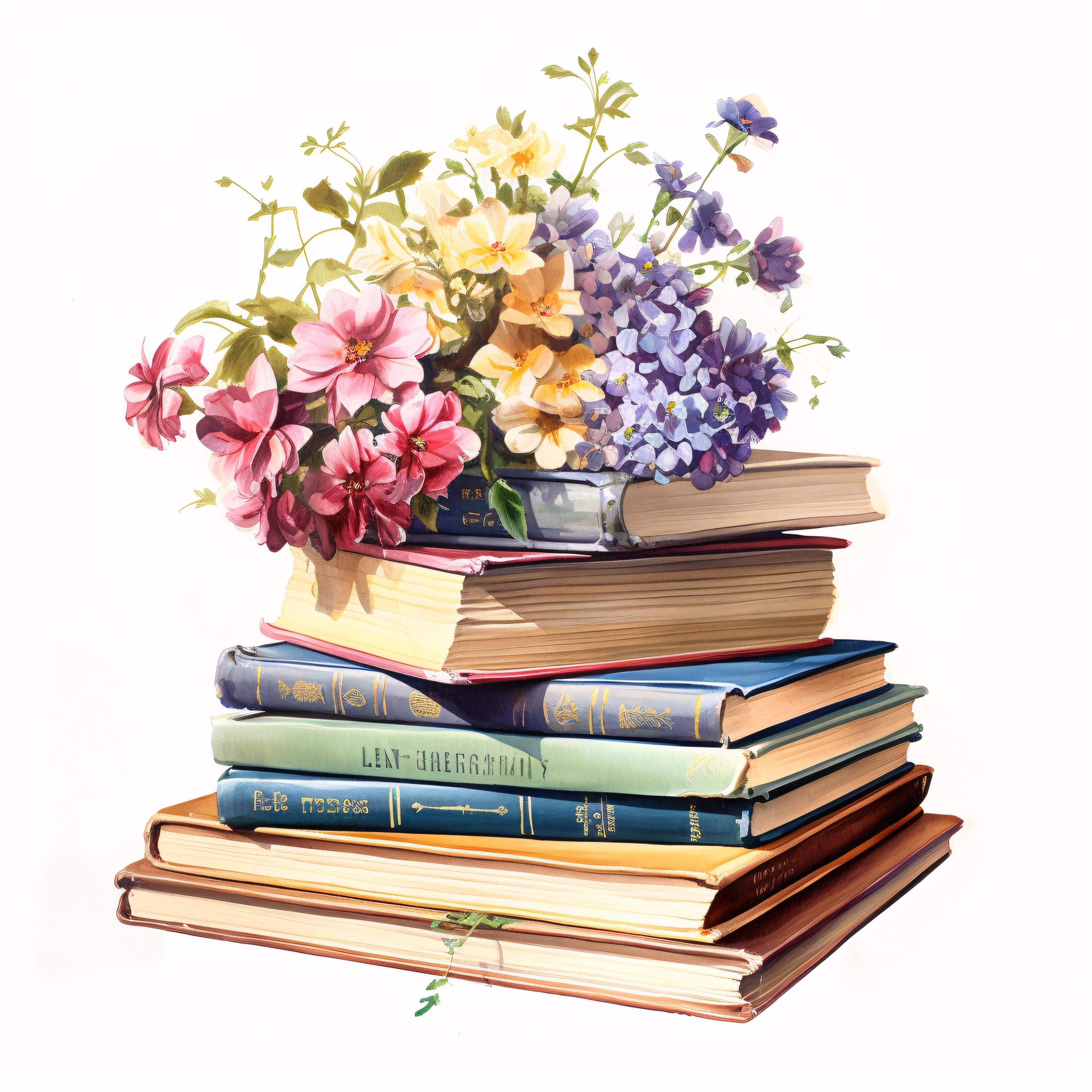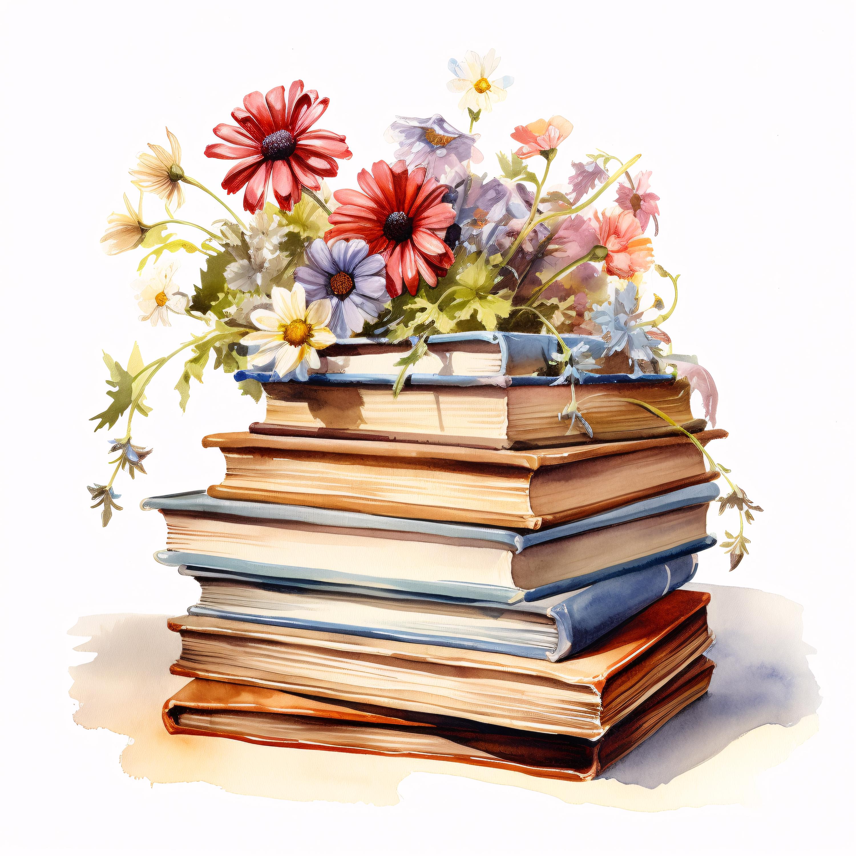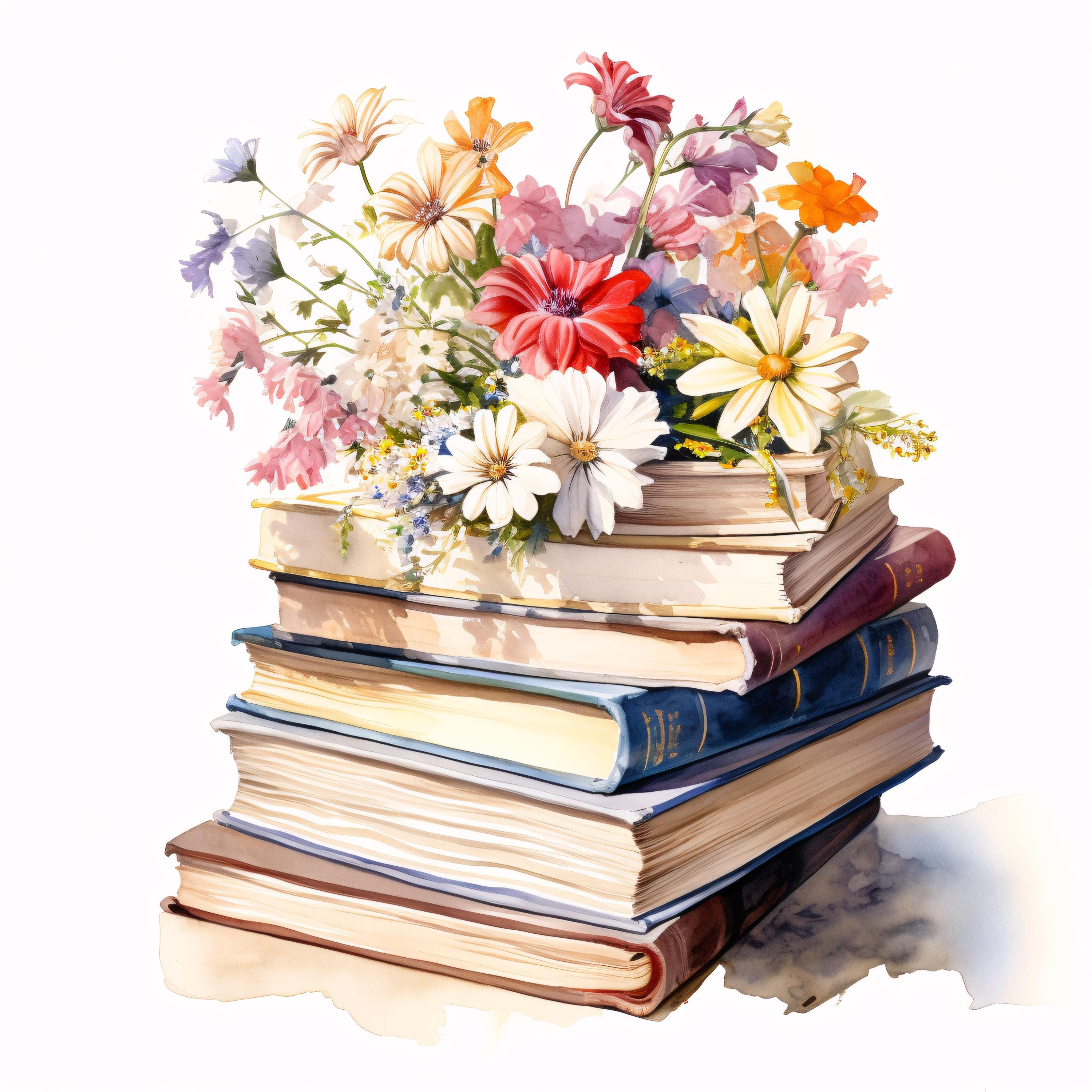 Floral Books Clipart, Vintage Reading Images, 10 Watercolor Clip Art, Printable JPGs, Instant Download, Commercial Use, Paper craft