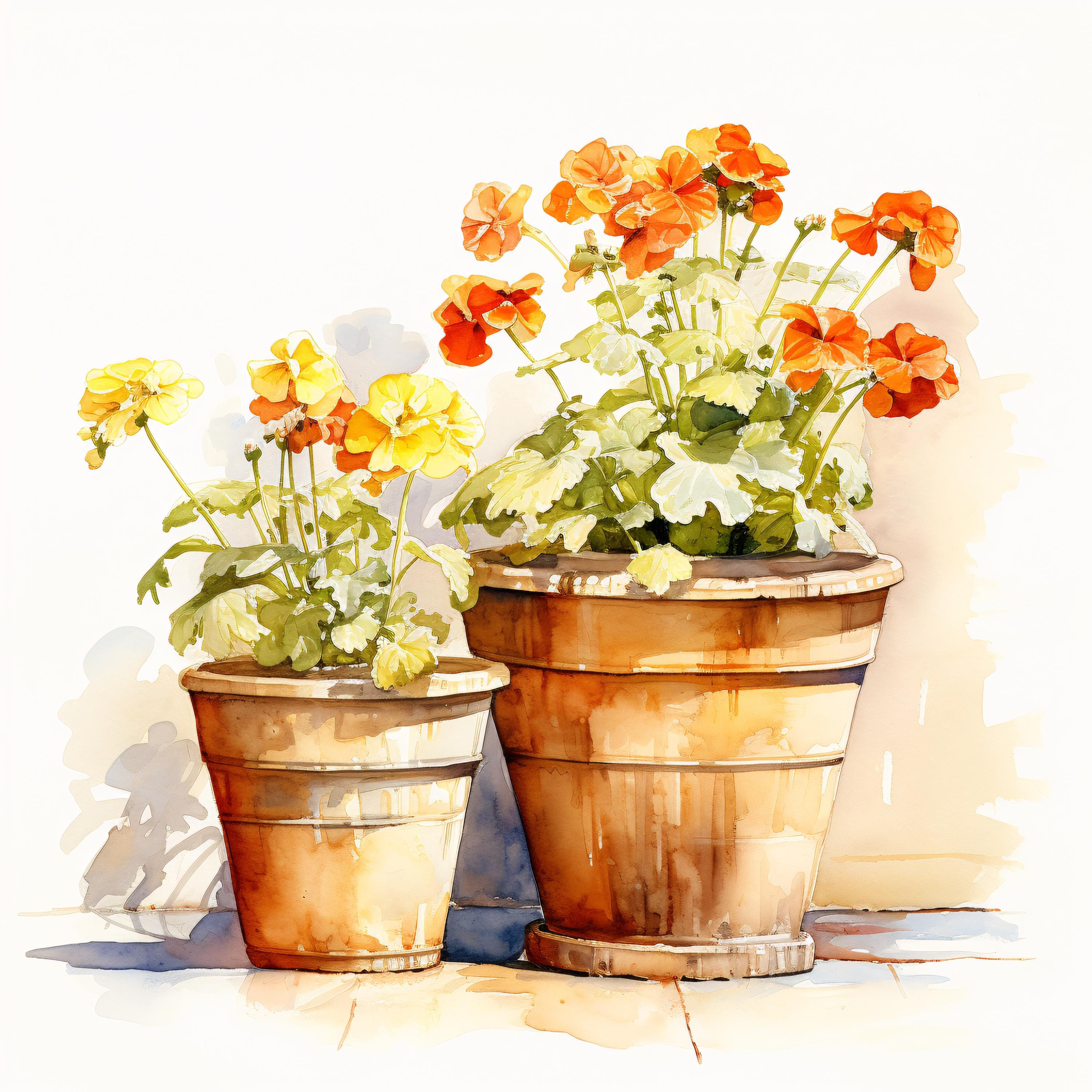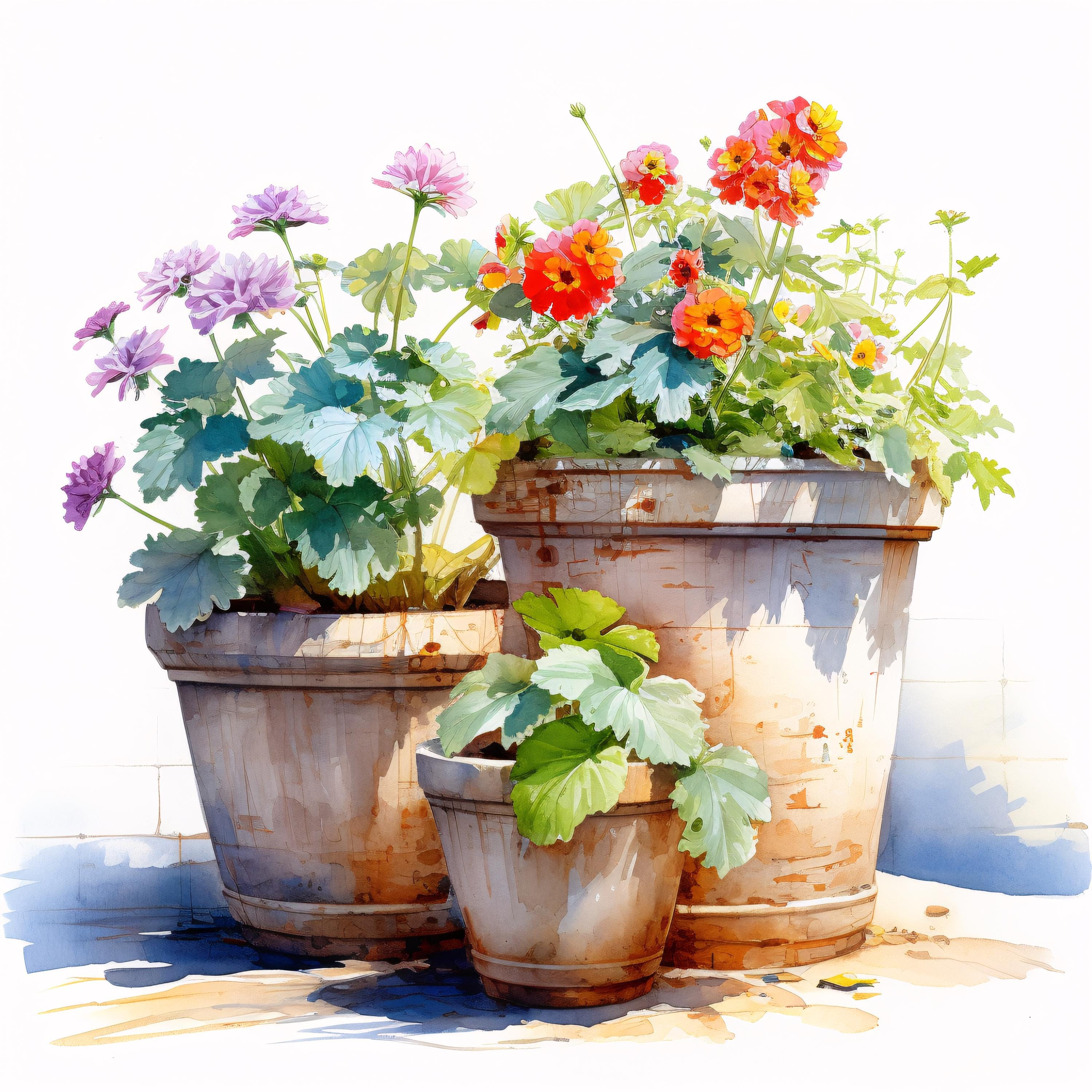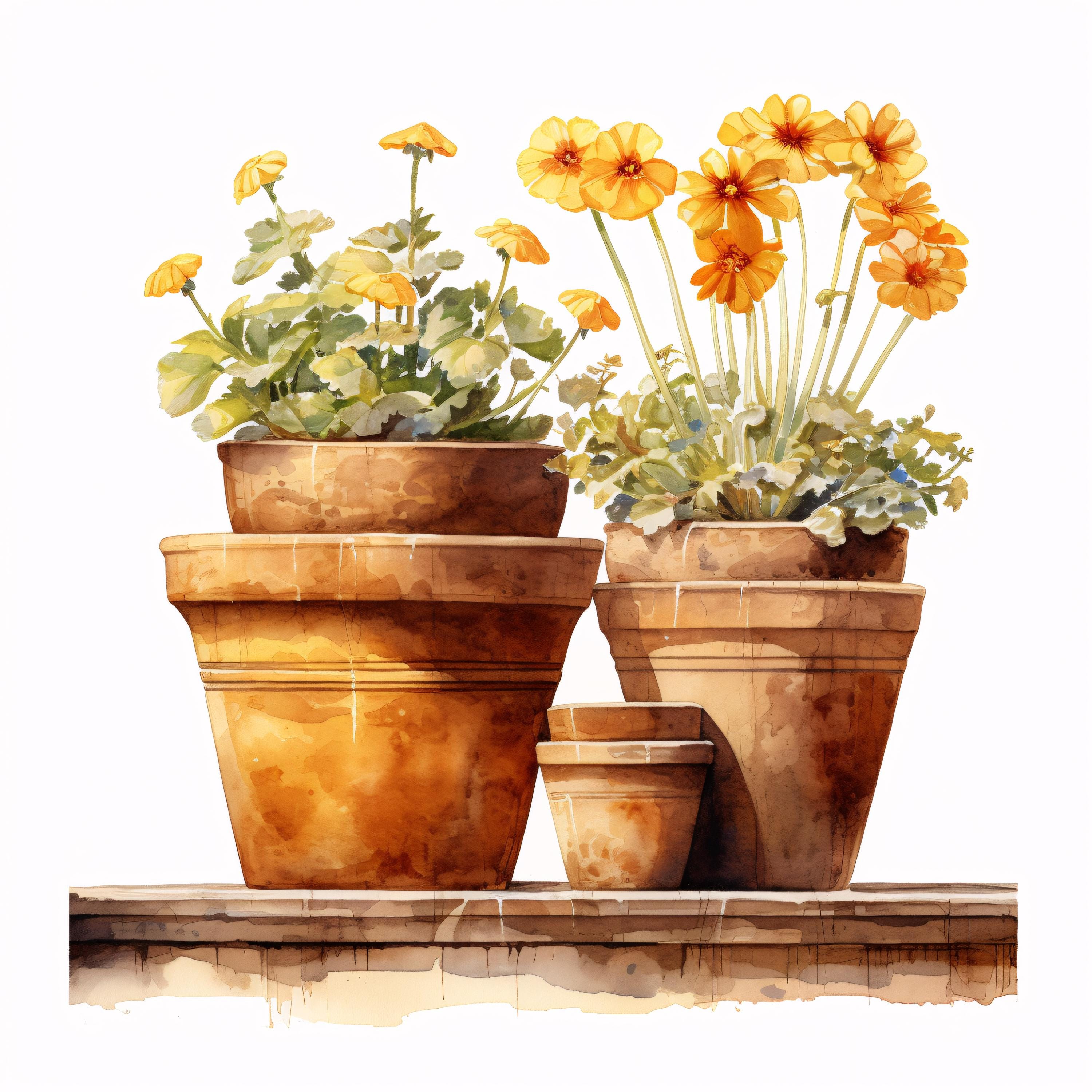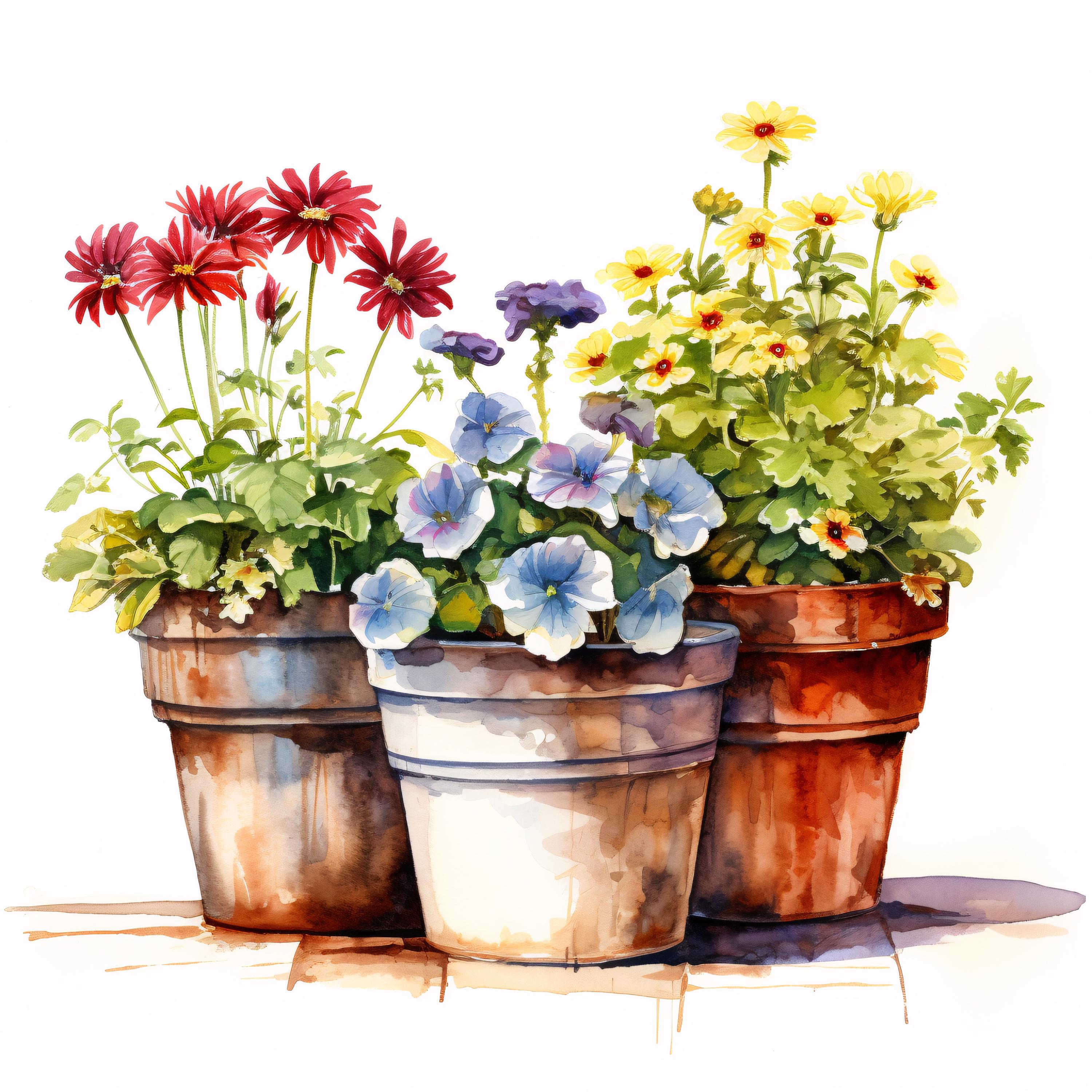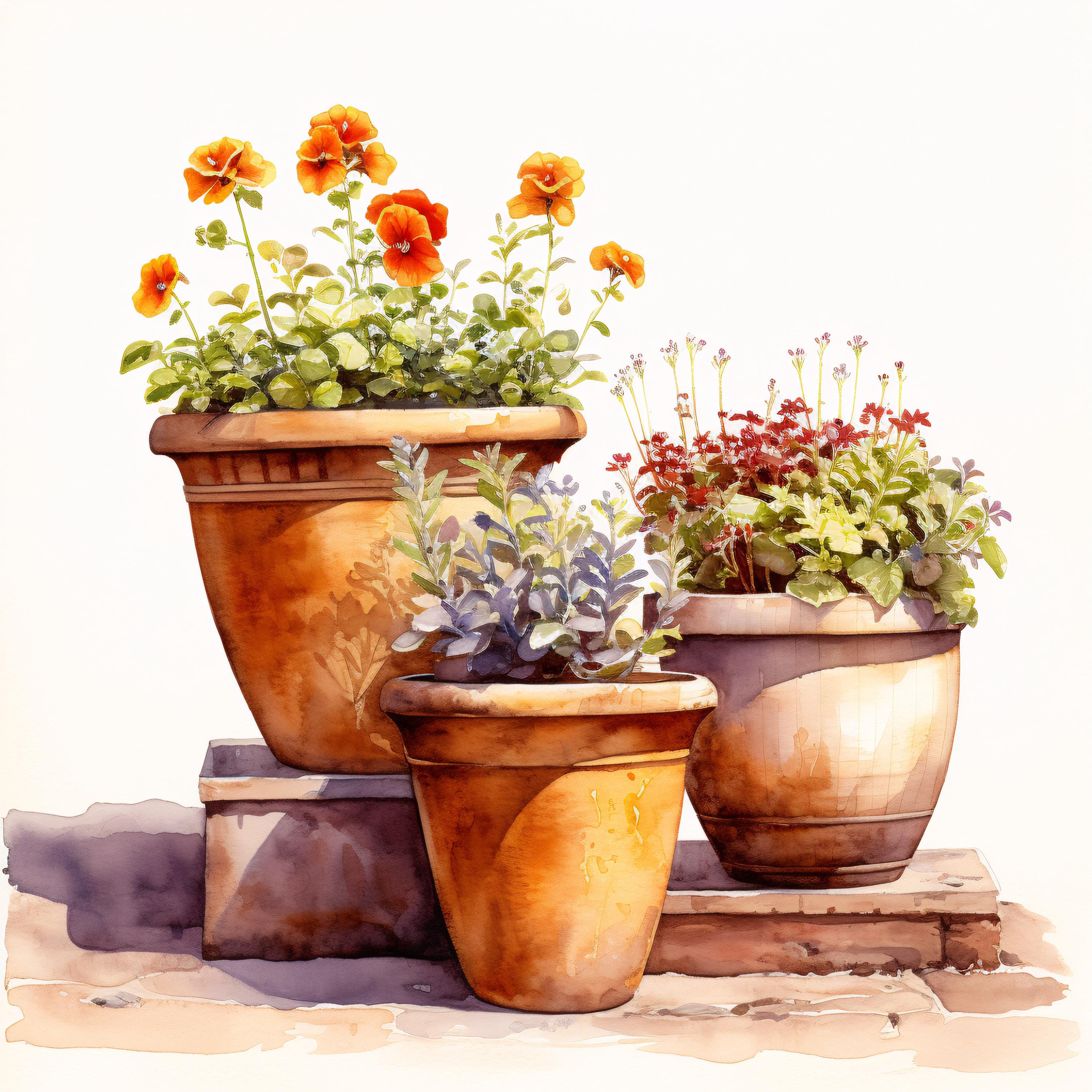 Flower Pot Clipart, Rustic Garden Pots Images, 10 Watercolor Clip Art, Printable JPGs, Instant Download, Commercial Use, Paper craft