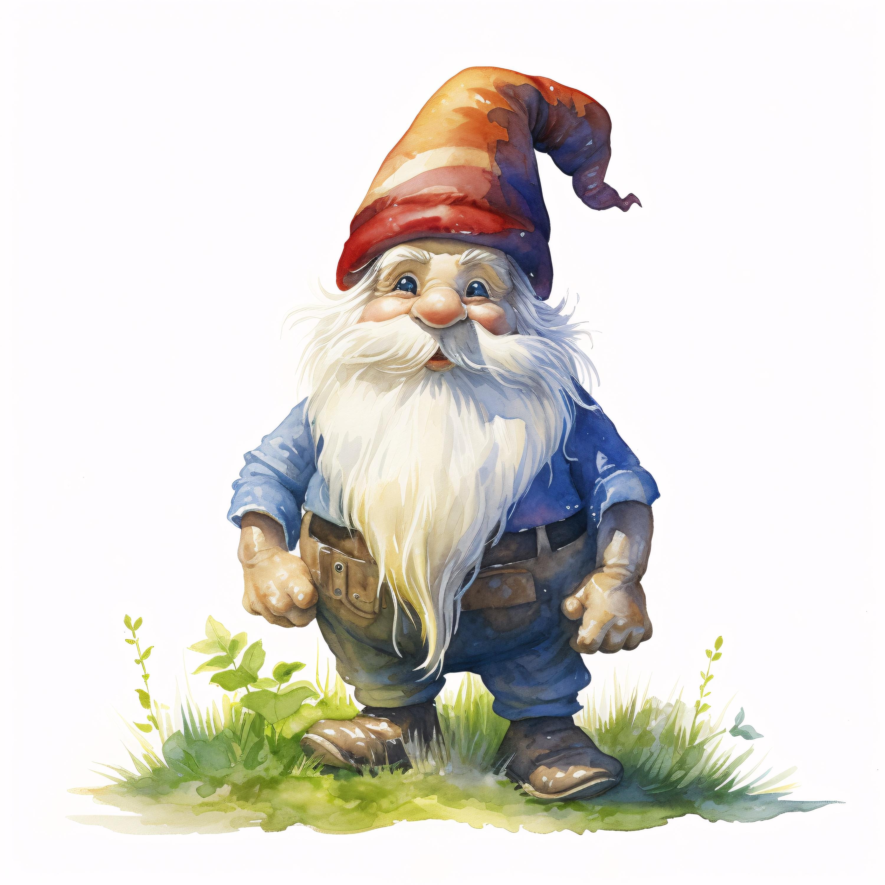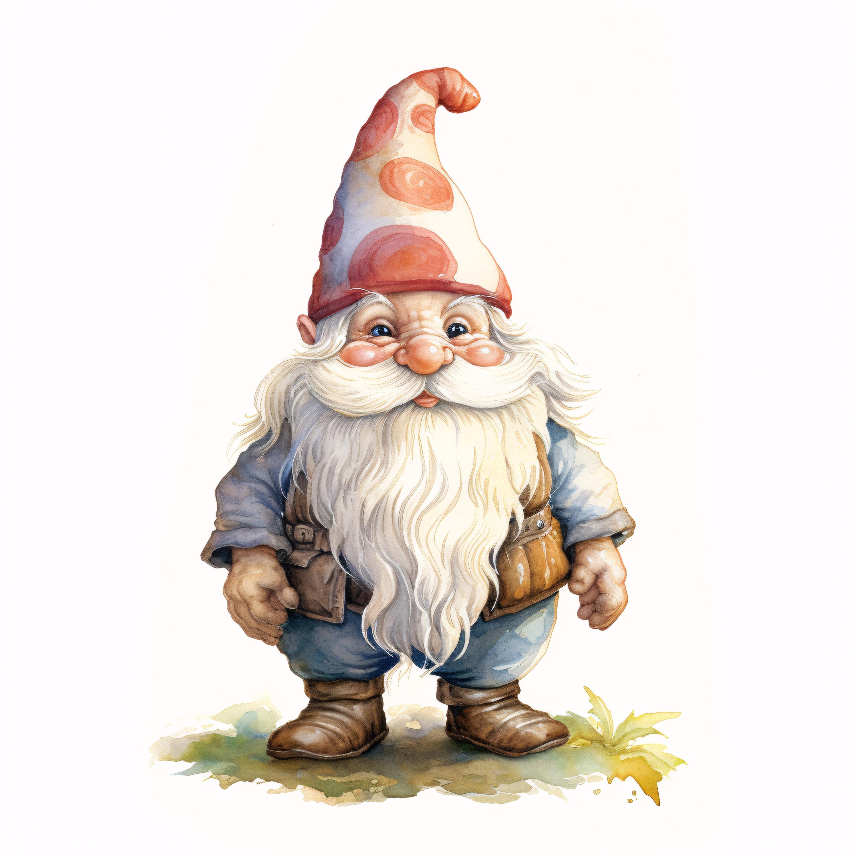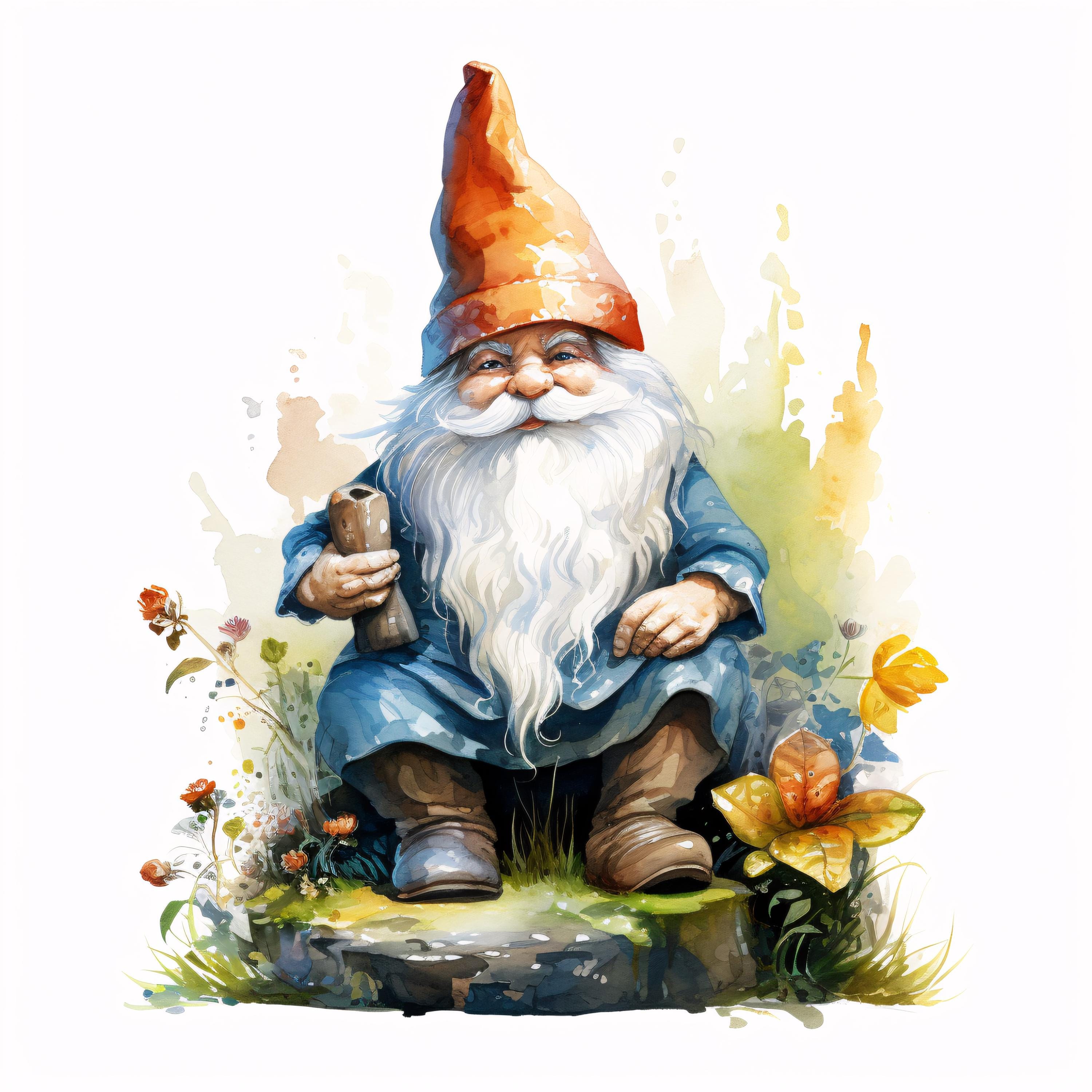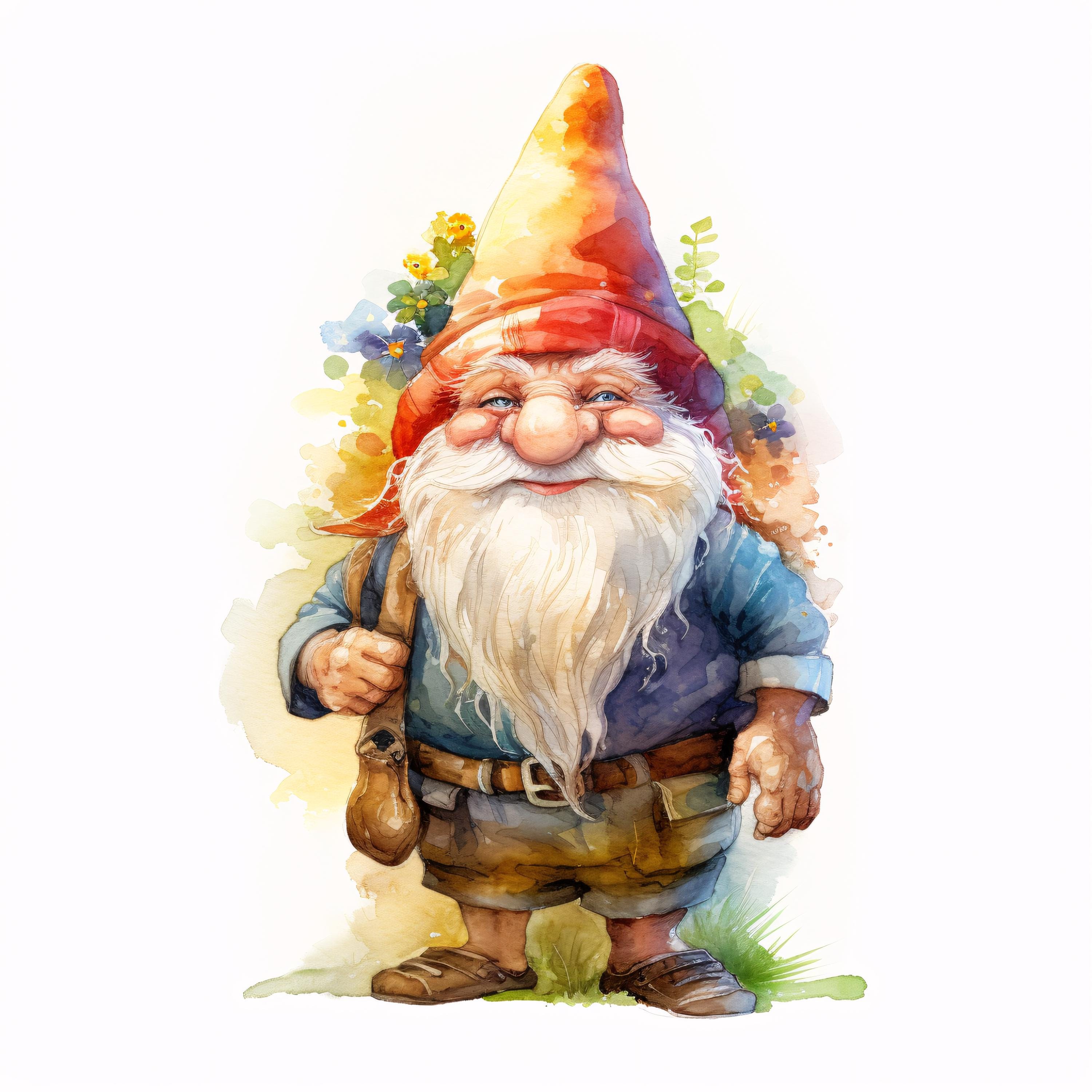 Garden Gnome Clipart, Whimsical Character Images, 10 Watercolor Clip Art, Printable JPGs, Instant Download, Commercial Use, Paper craft