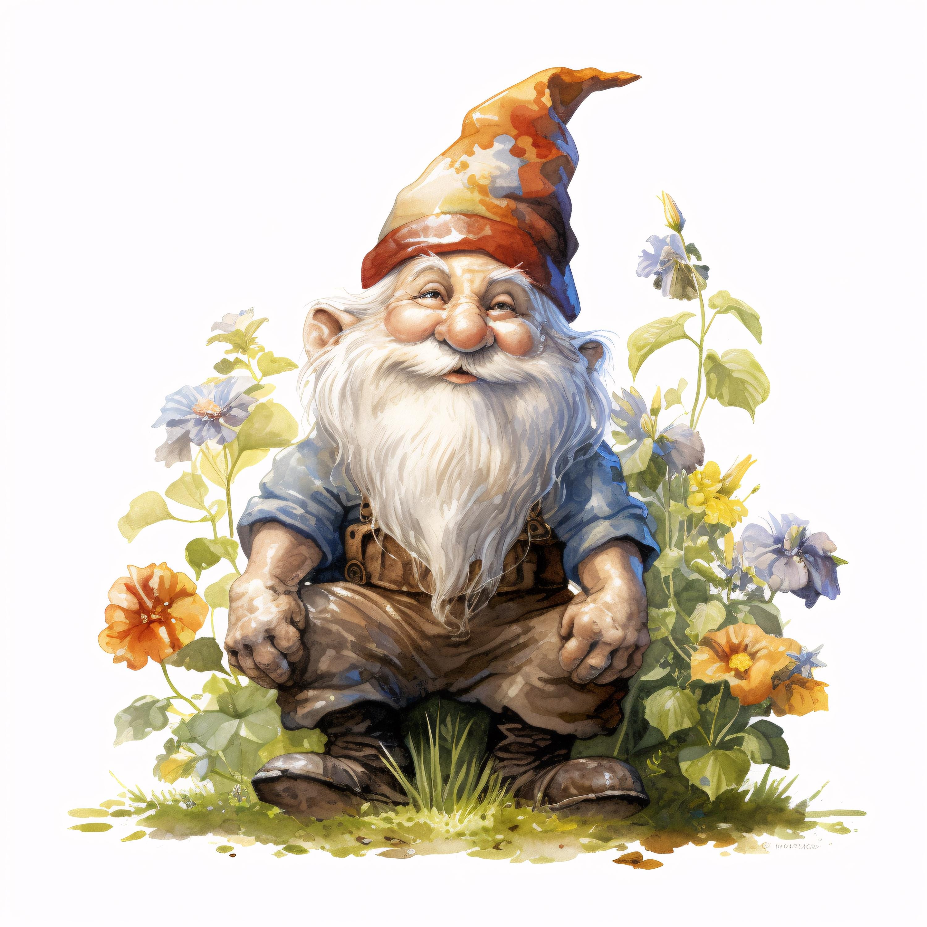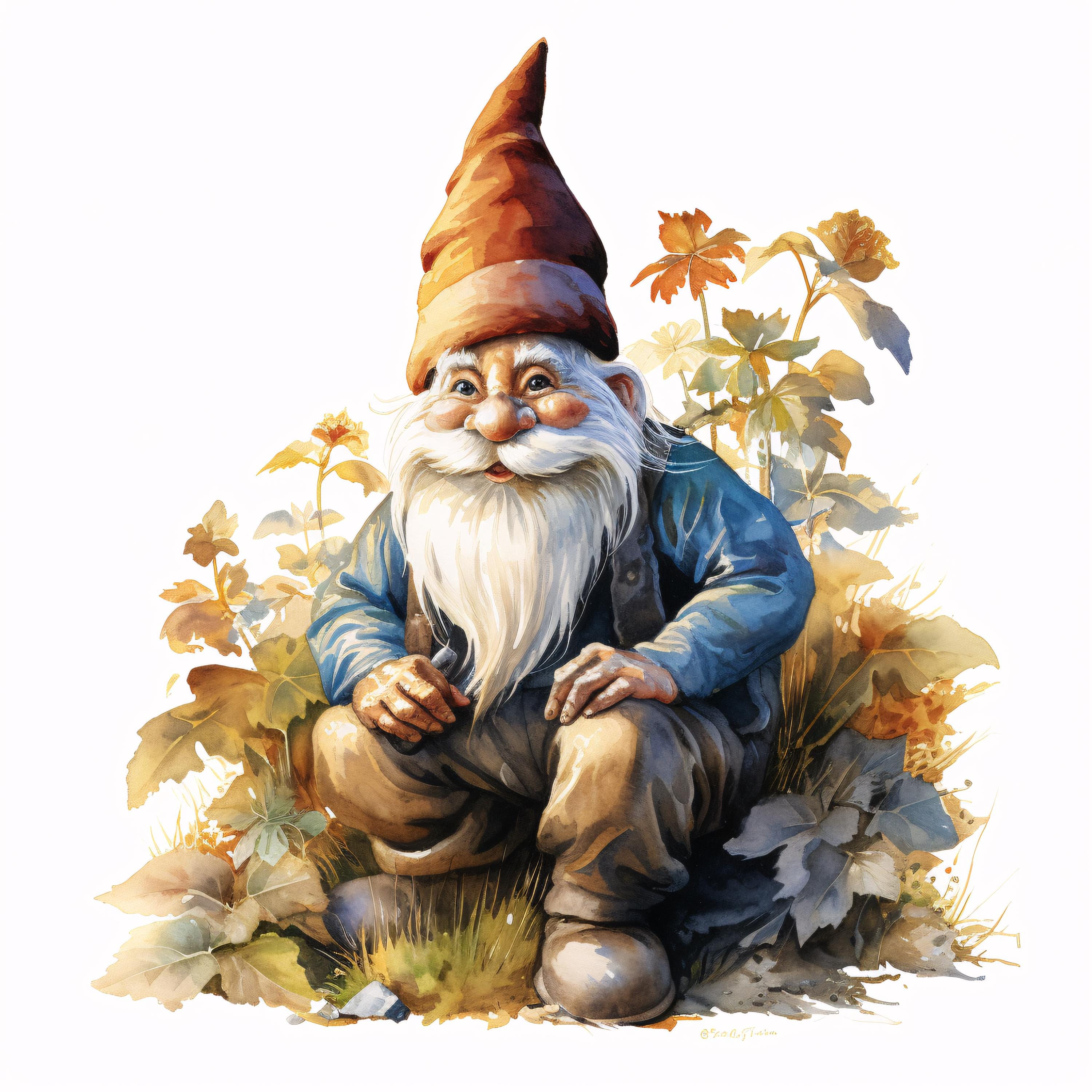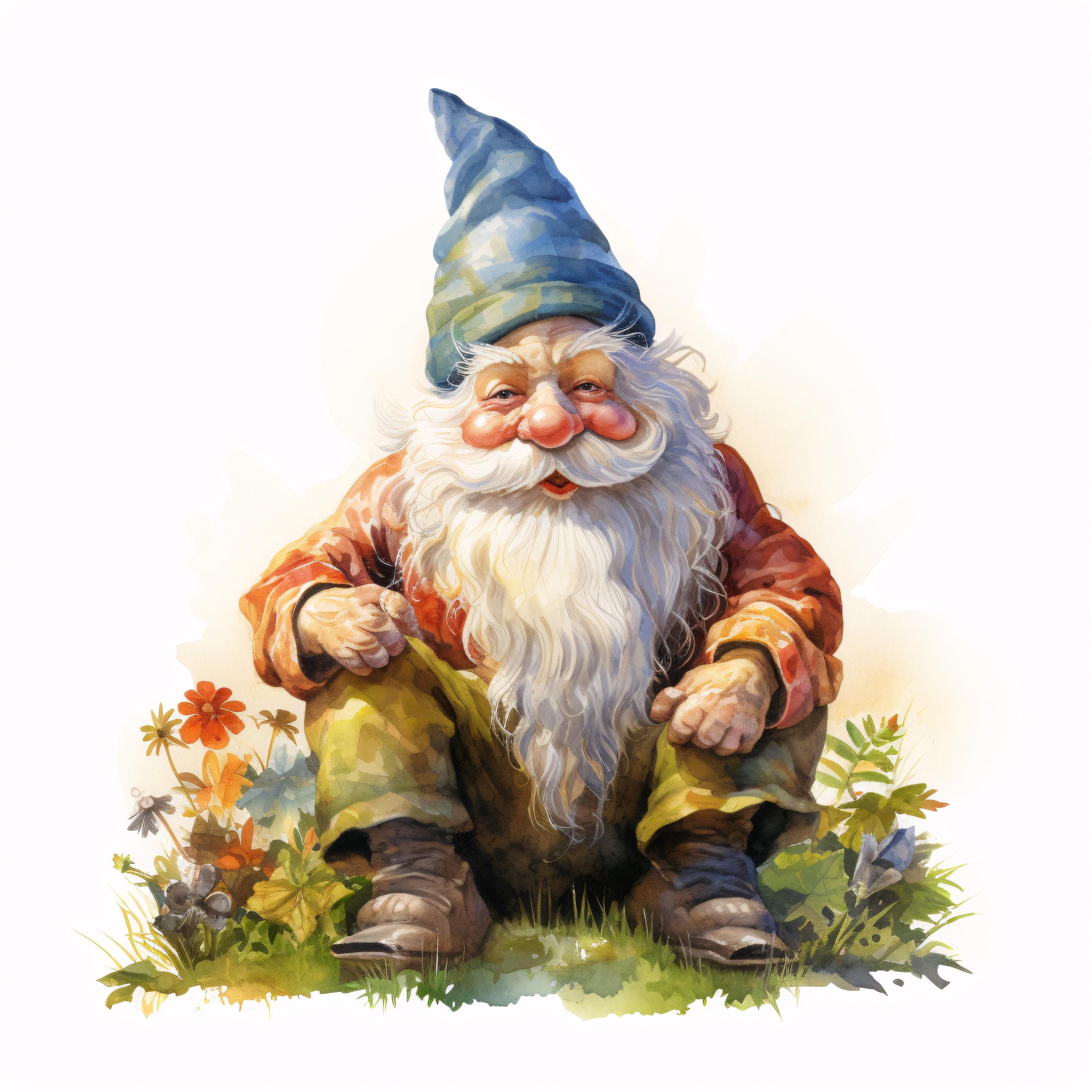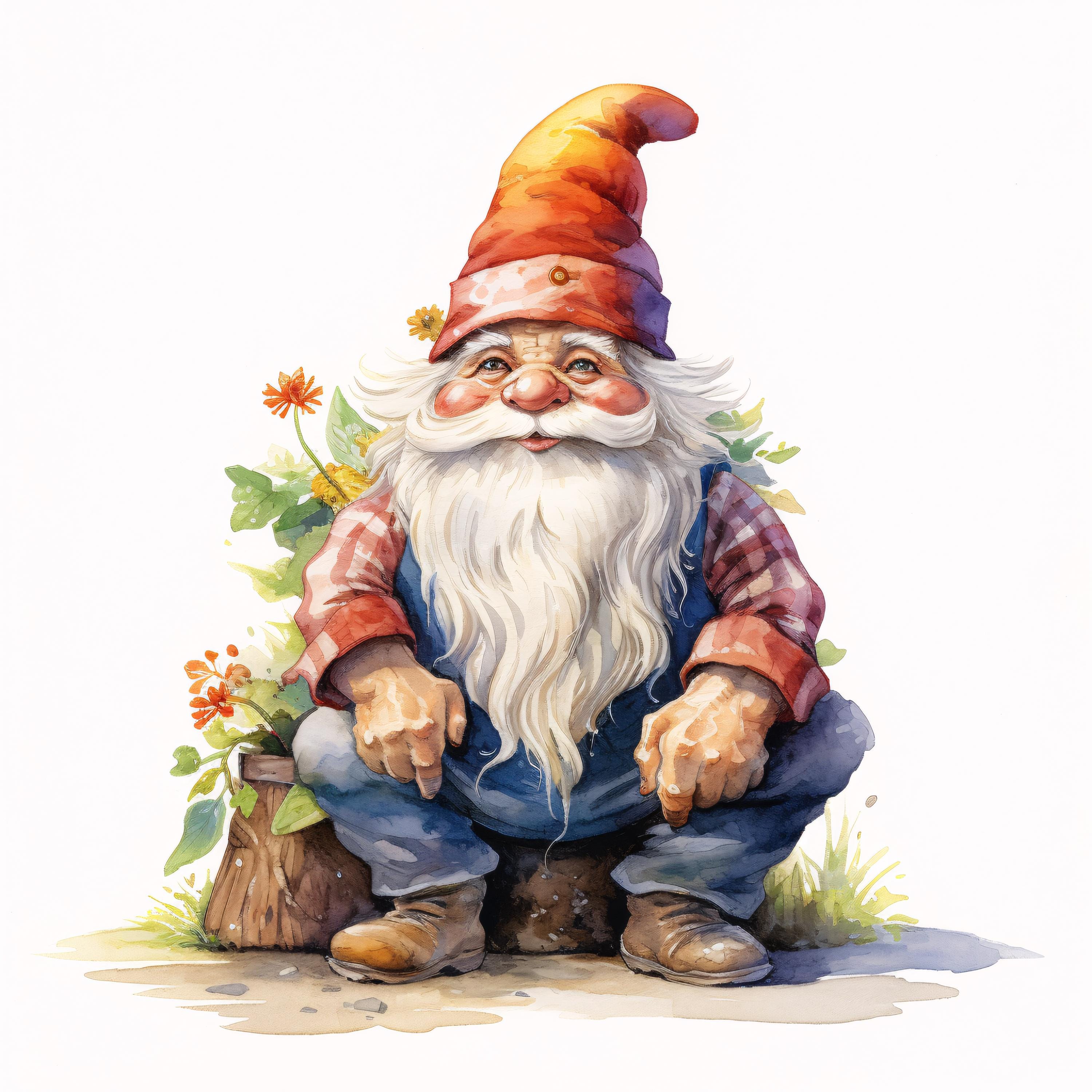 Garden Gnome Clipart, Whimsical Character Images, 10 Watercolor Clip Art, Printable JPGs, Instant Download, Commercial Use, Paper craft