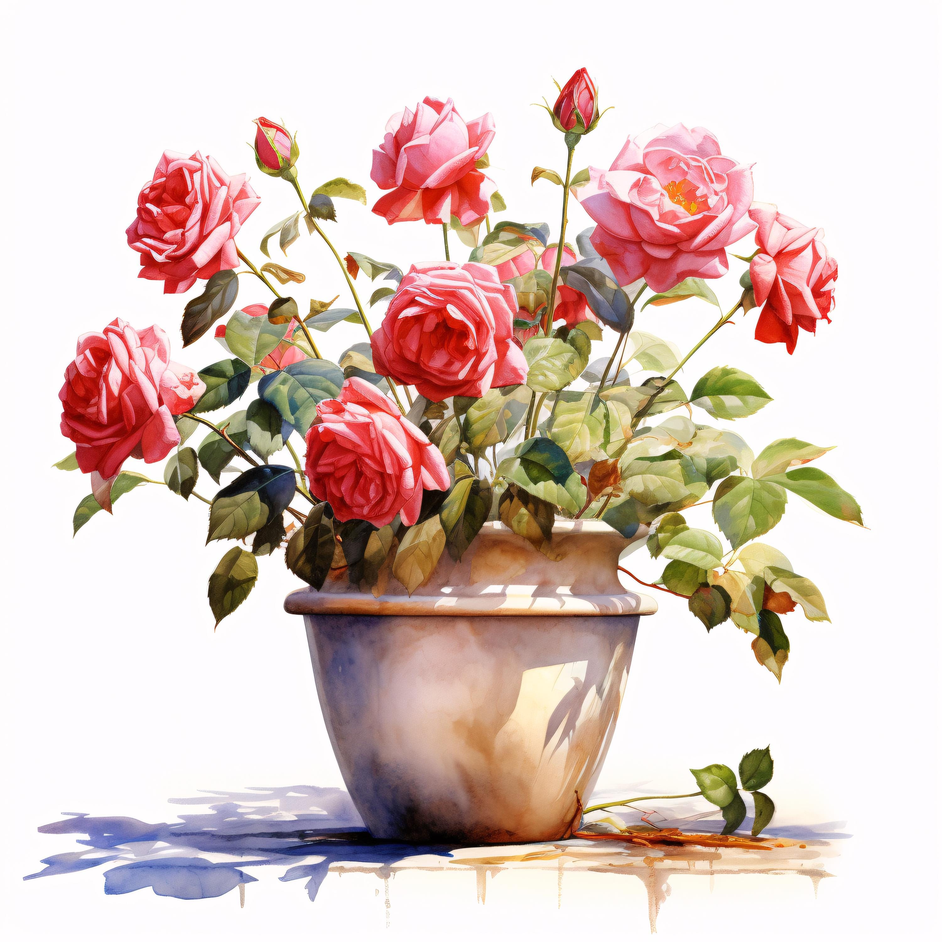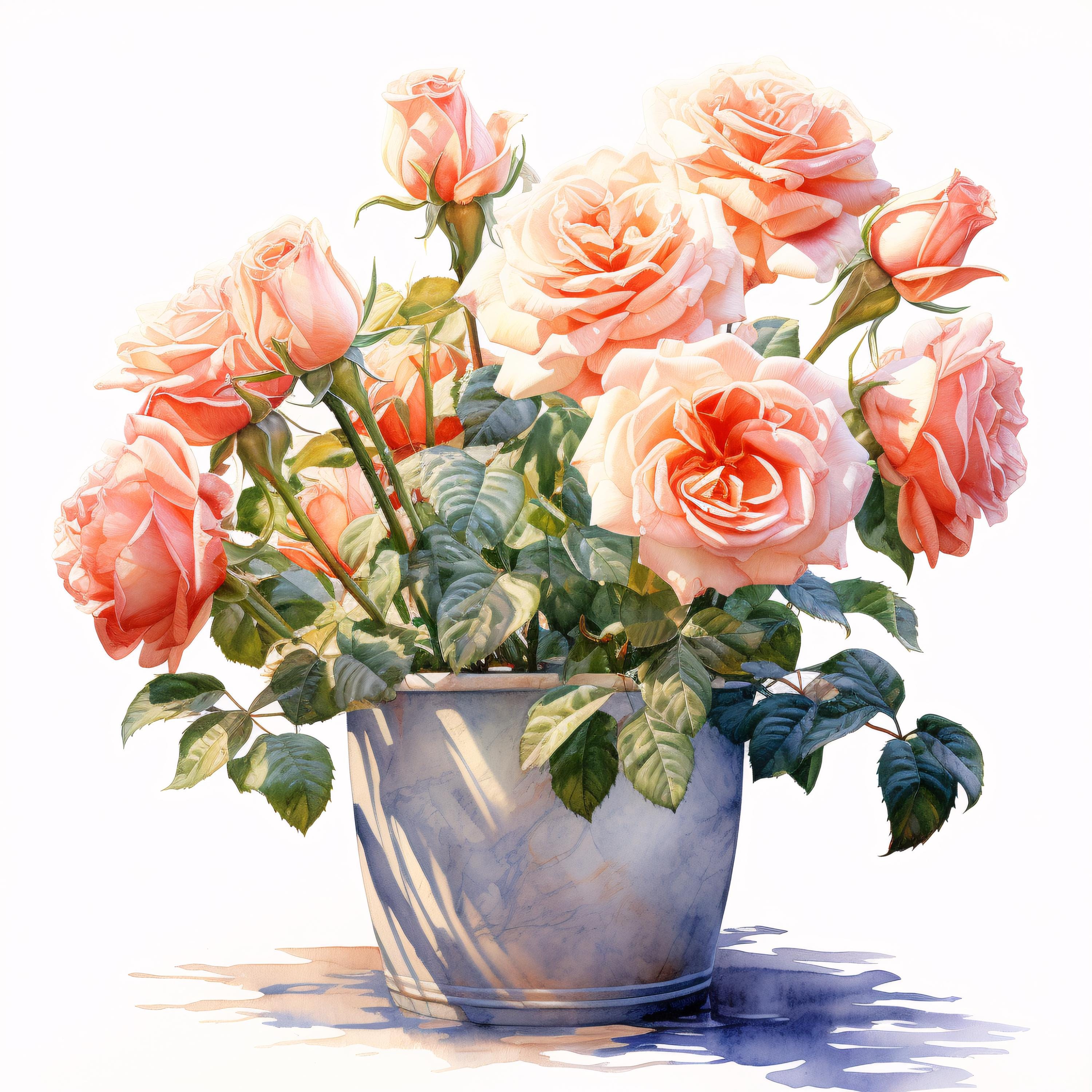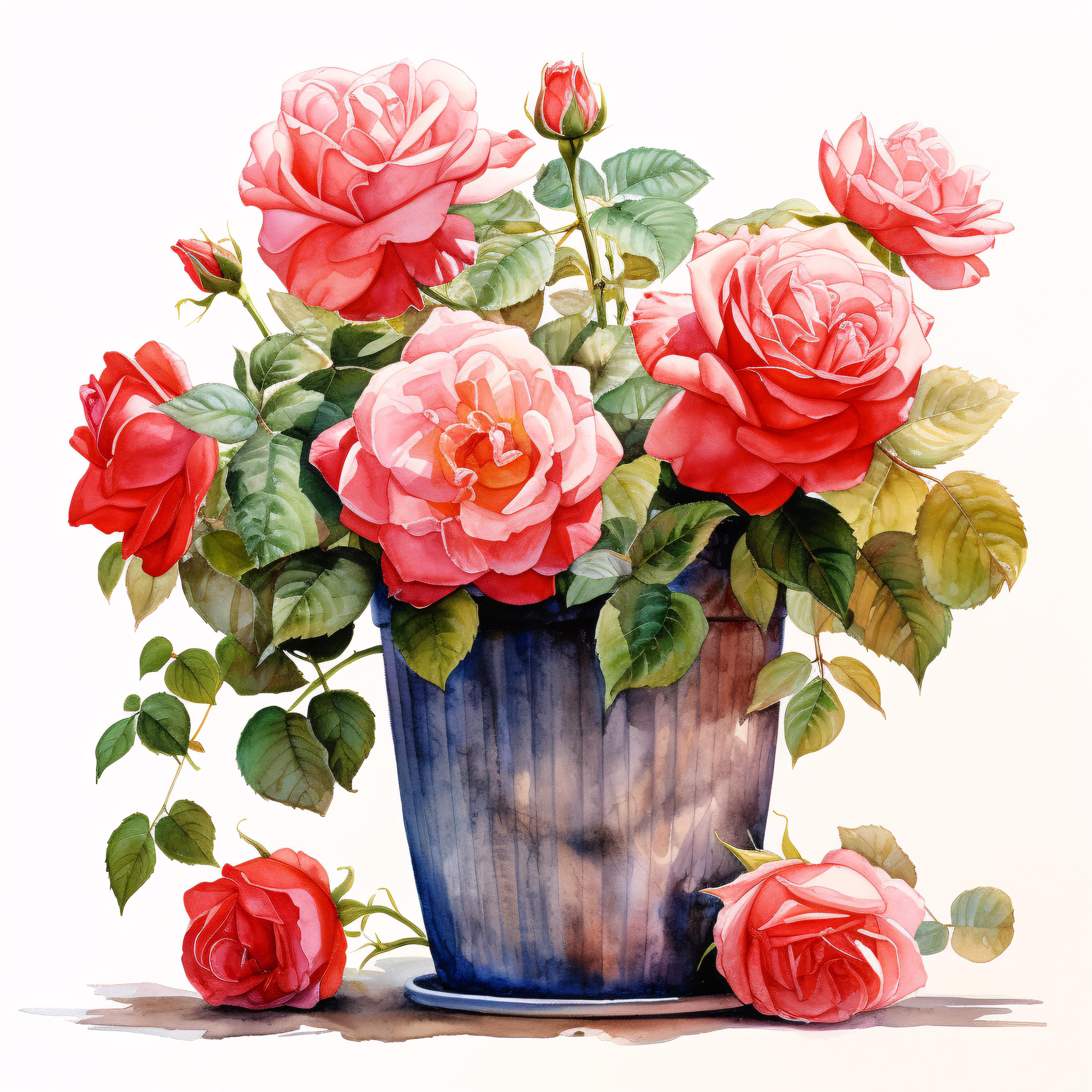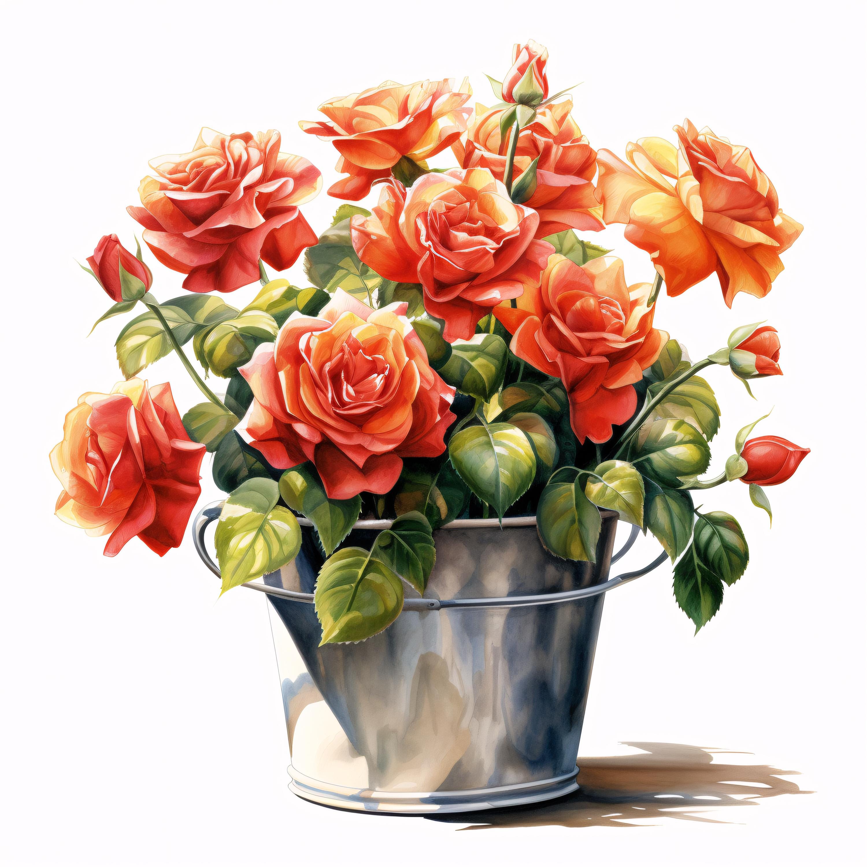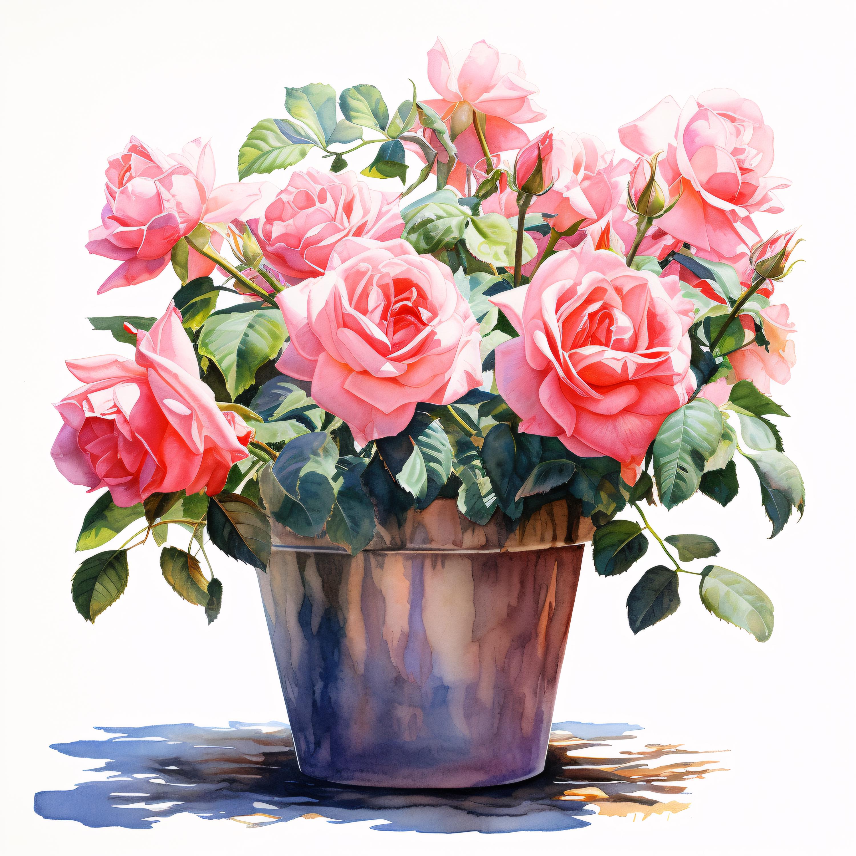 Rose Pot Clipart, Blooming Flowers Images, 10 Watercolor Clip Art, Printable JPGs, Instant Download, Commercial Use, Paper craft