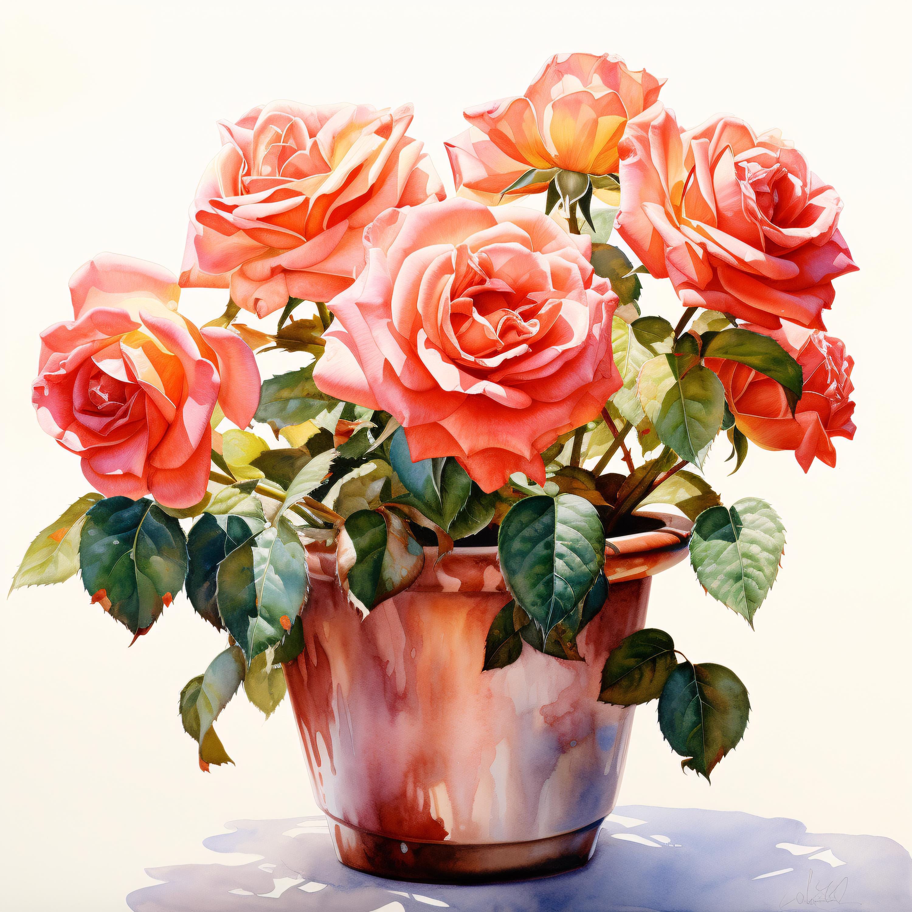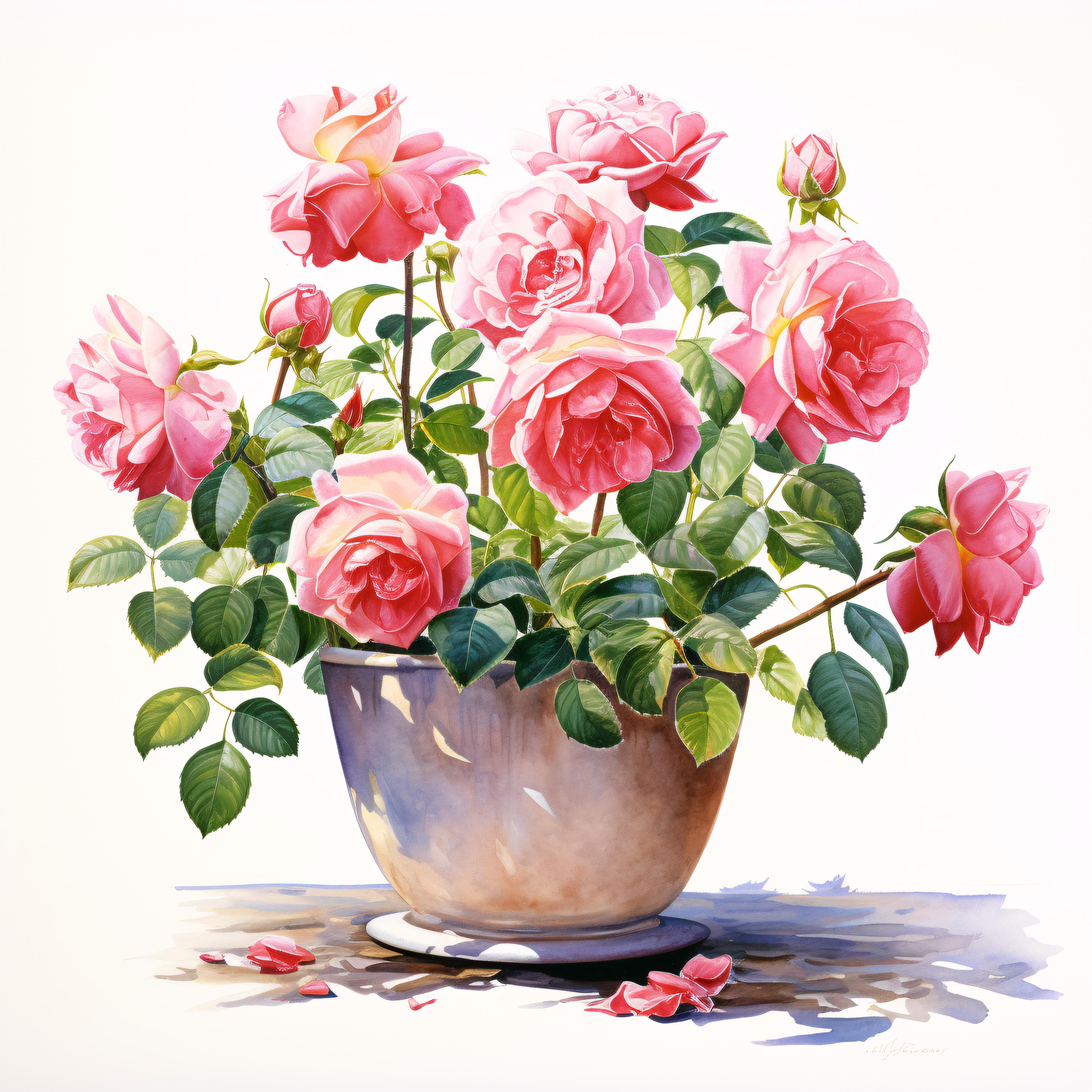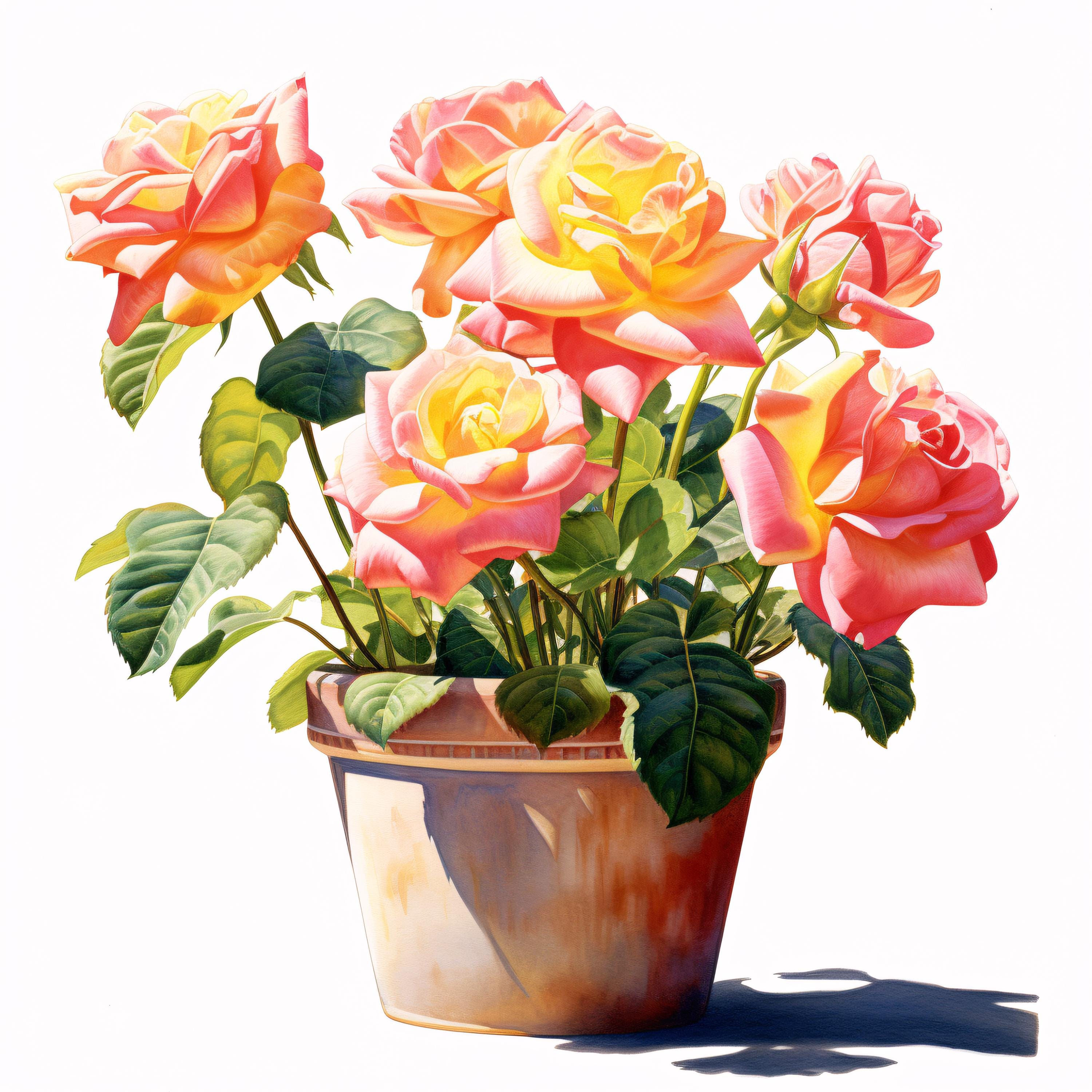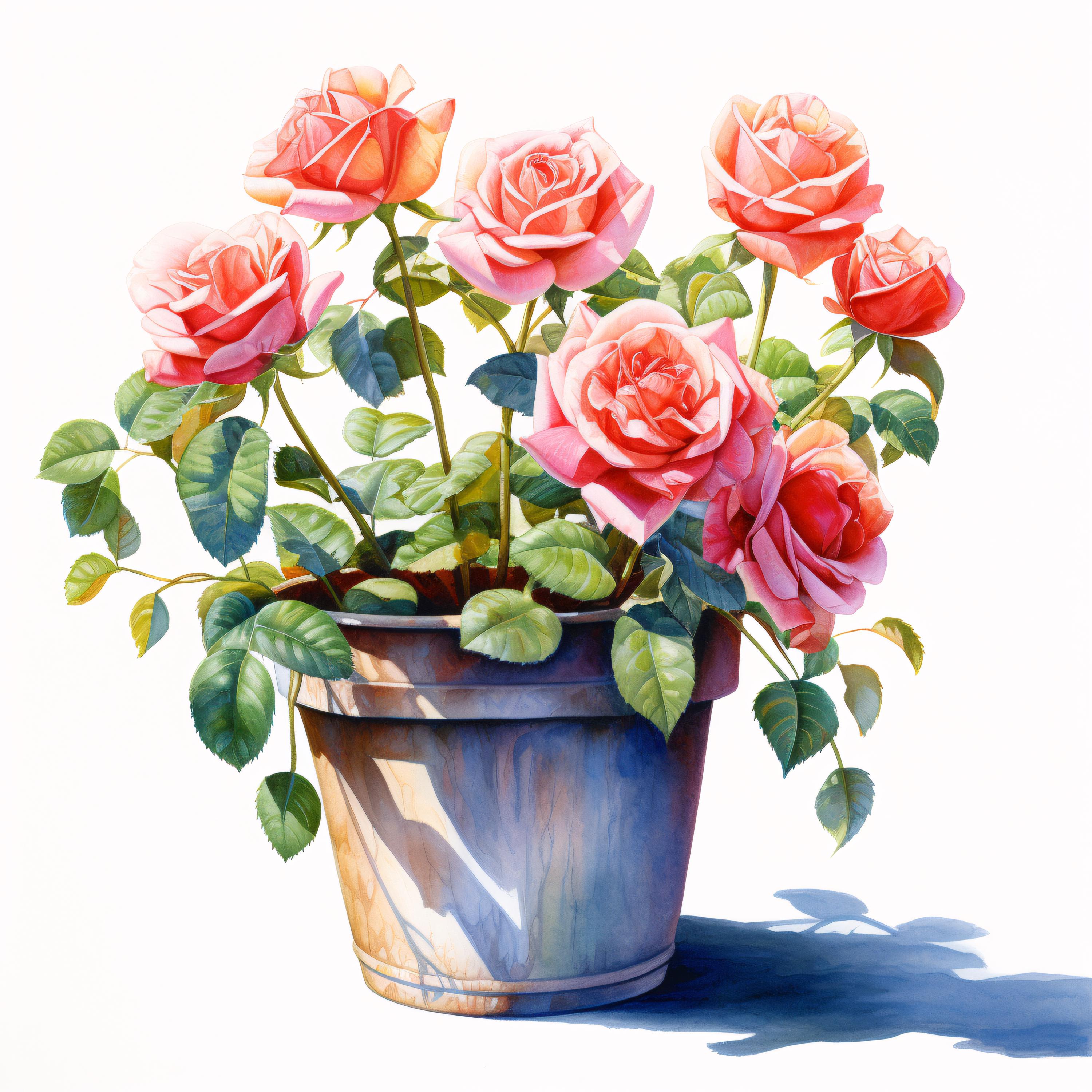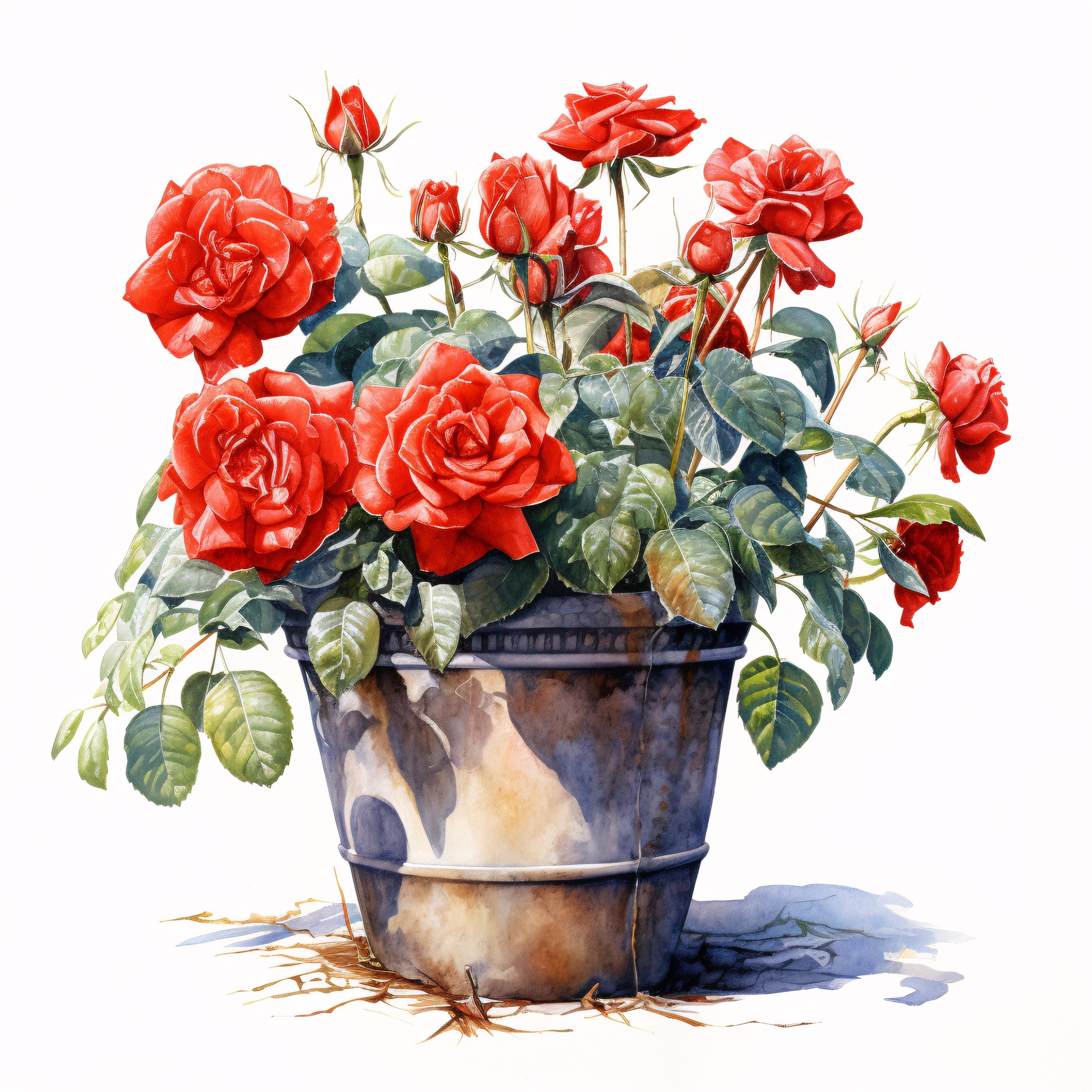 Rose Pot Clipart, Blooming Flowers Images, 10 Watercolor Clip Art, Printable JPGs, Instant Download, Commercial Use, Paper craft