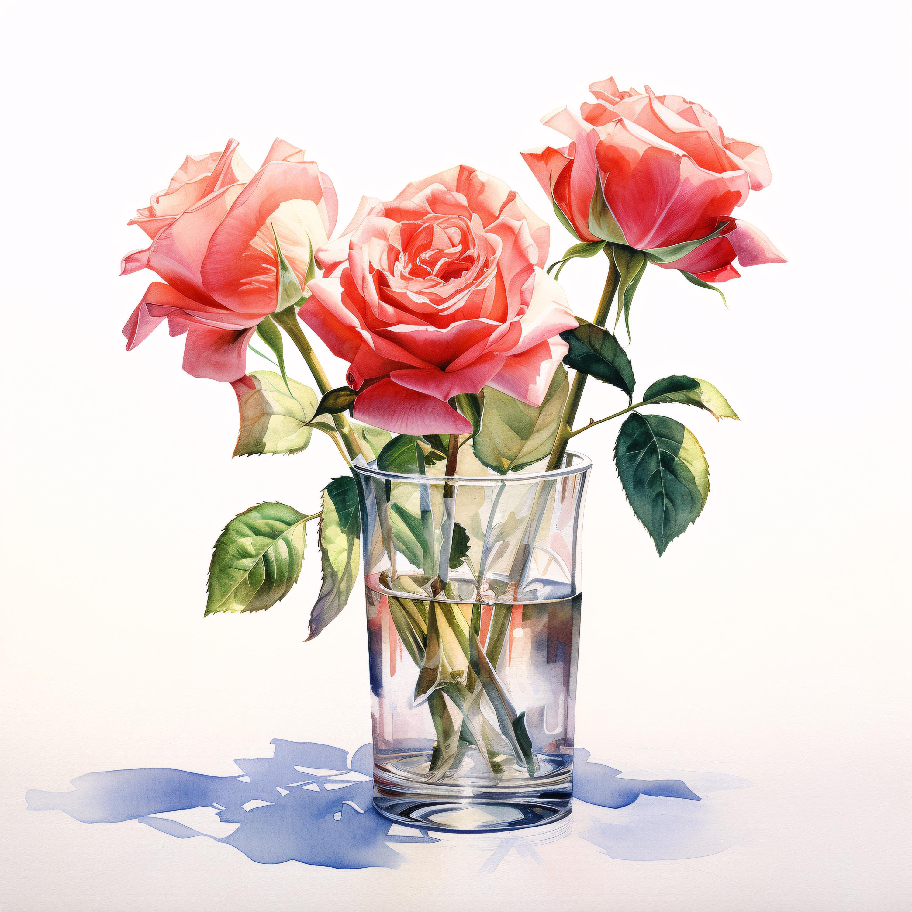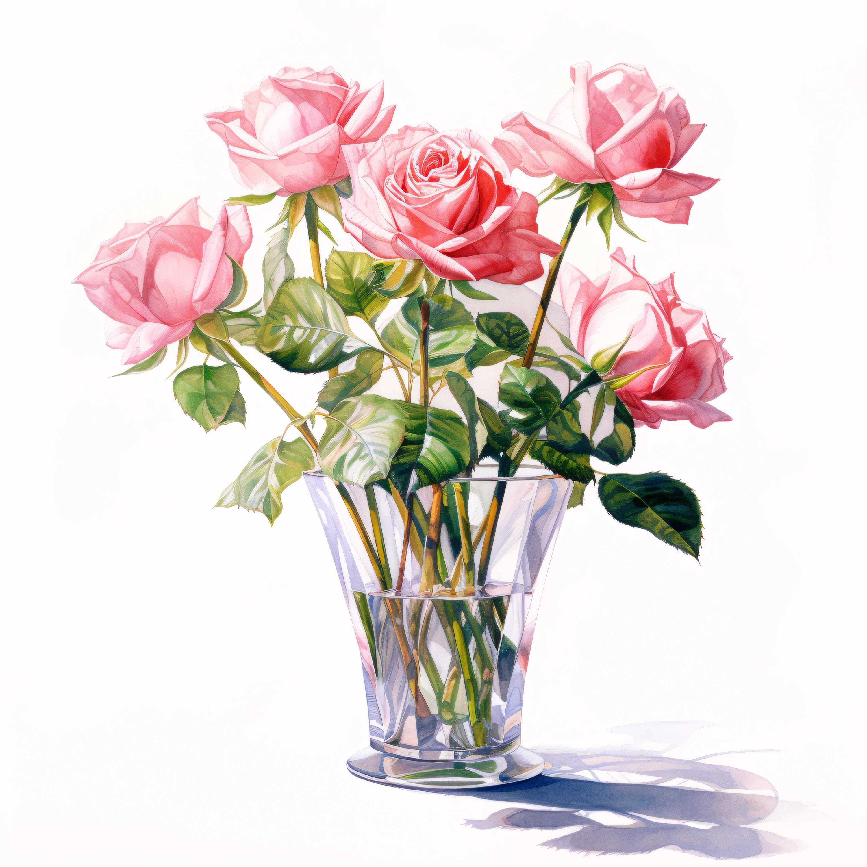 Rose in Vase Clipart, Elegant Flower Images, 10 Watercolor Clip Art, Printable JPGs, Instant Download, Commercial Use, Paper craft
