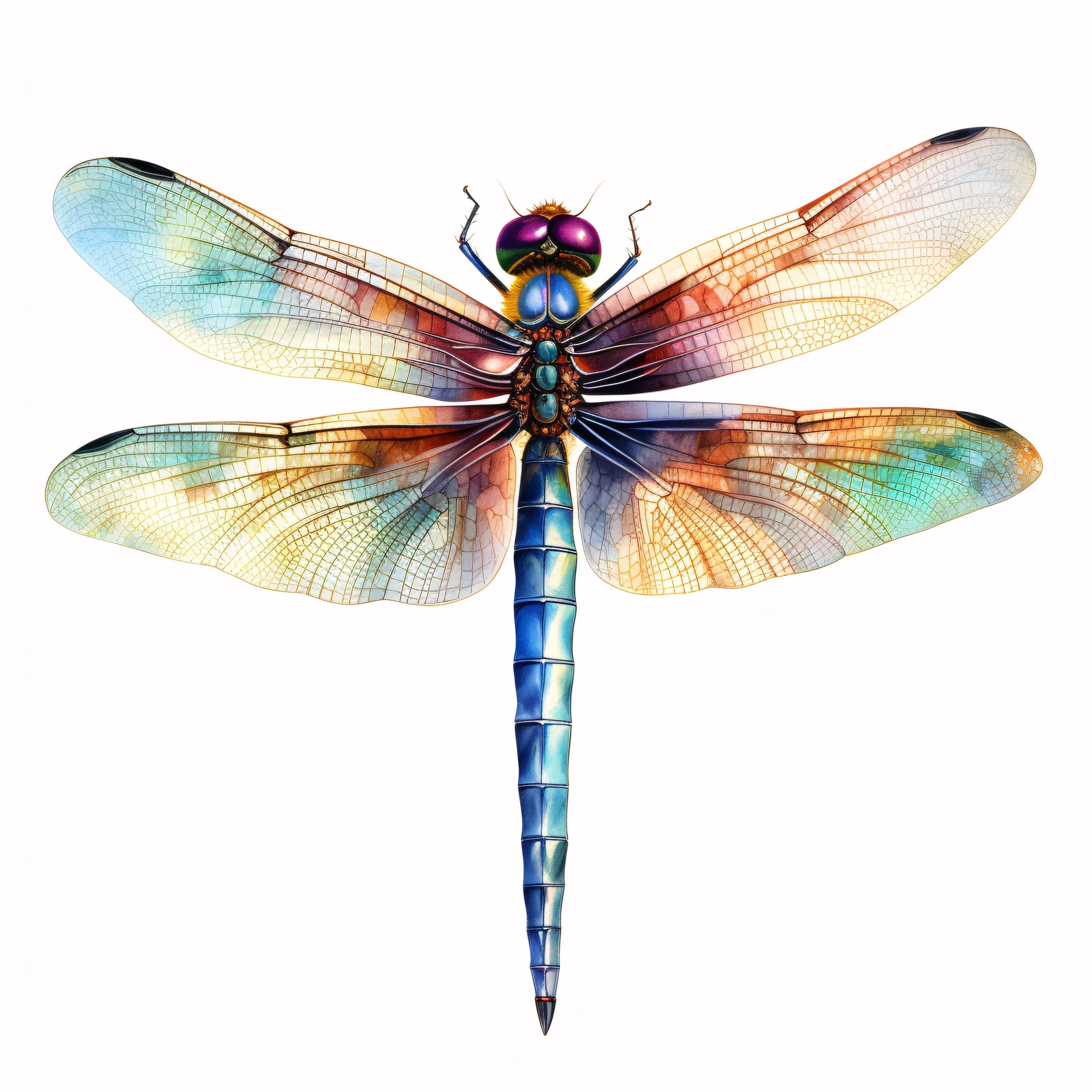 Dragonfly Clipart, Colorful Insect Images, 10 Watercolor Clip Art, Printable JPGs, Instant Download, Commercial Use, Paper craft