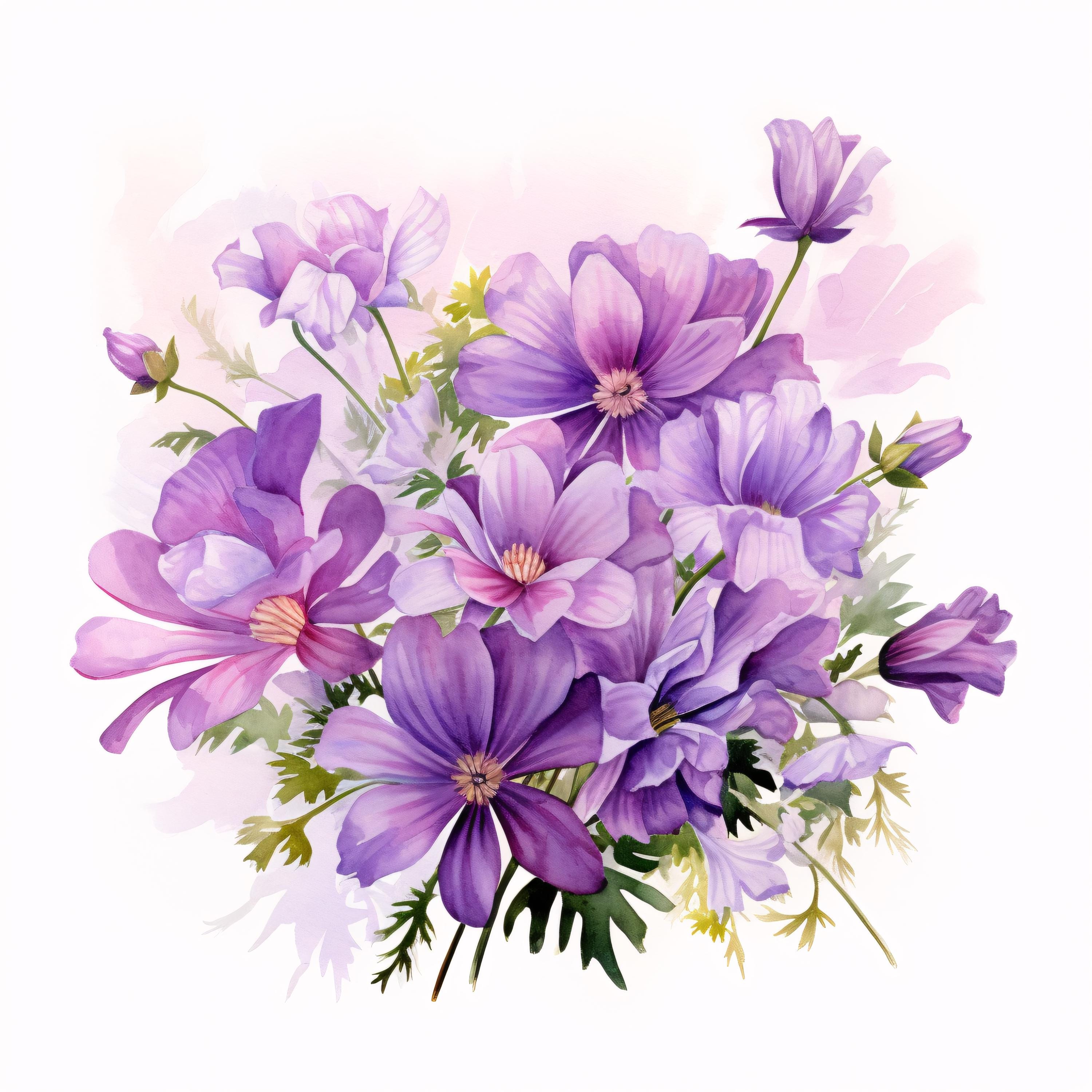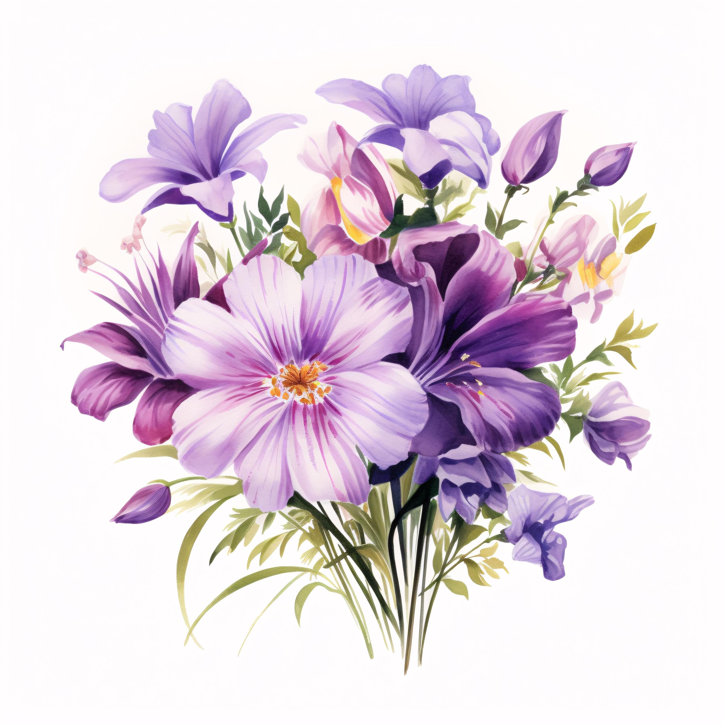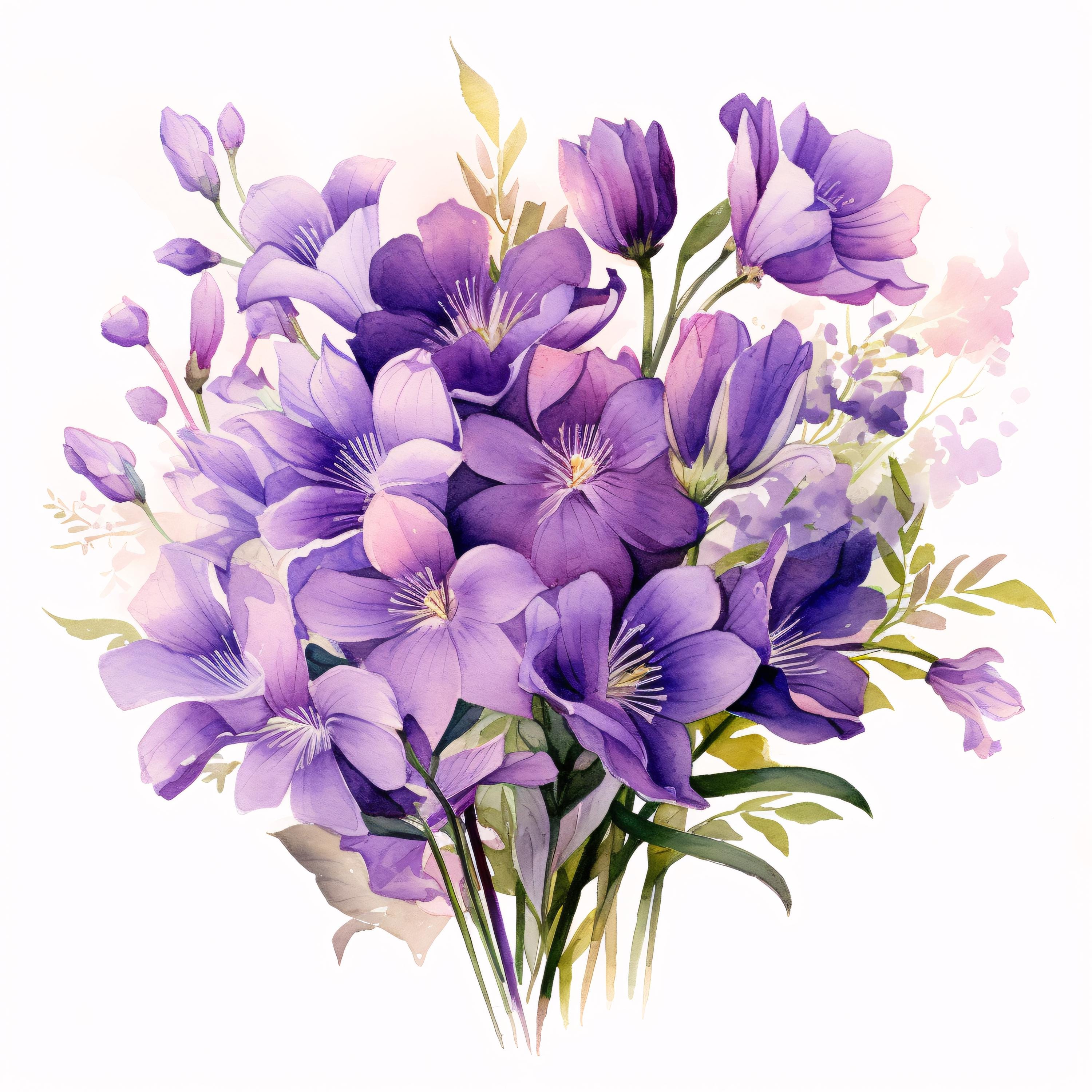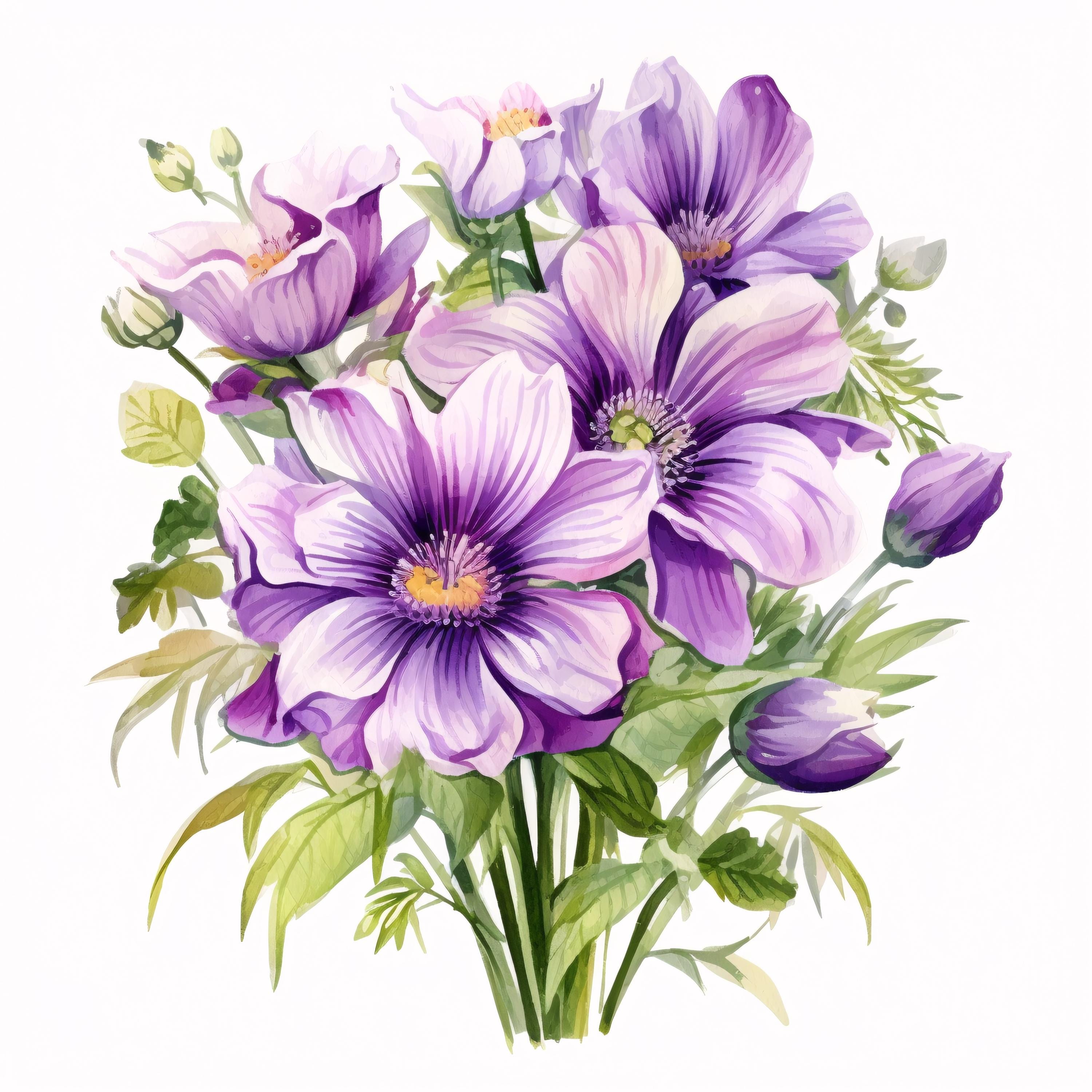 Purple Flower Bouquet Clipart, Bloom Images, 10 Watercolor Clip Art, Printable JPGs, Instant Download, Commercial Use, Paper craft