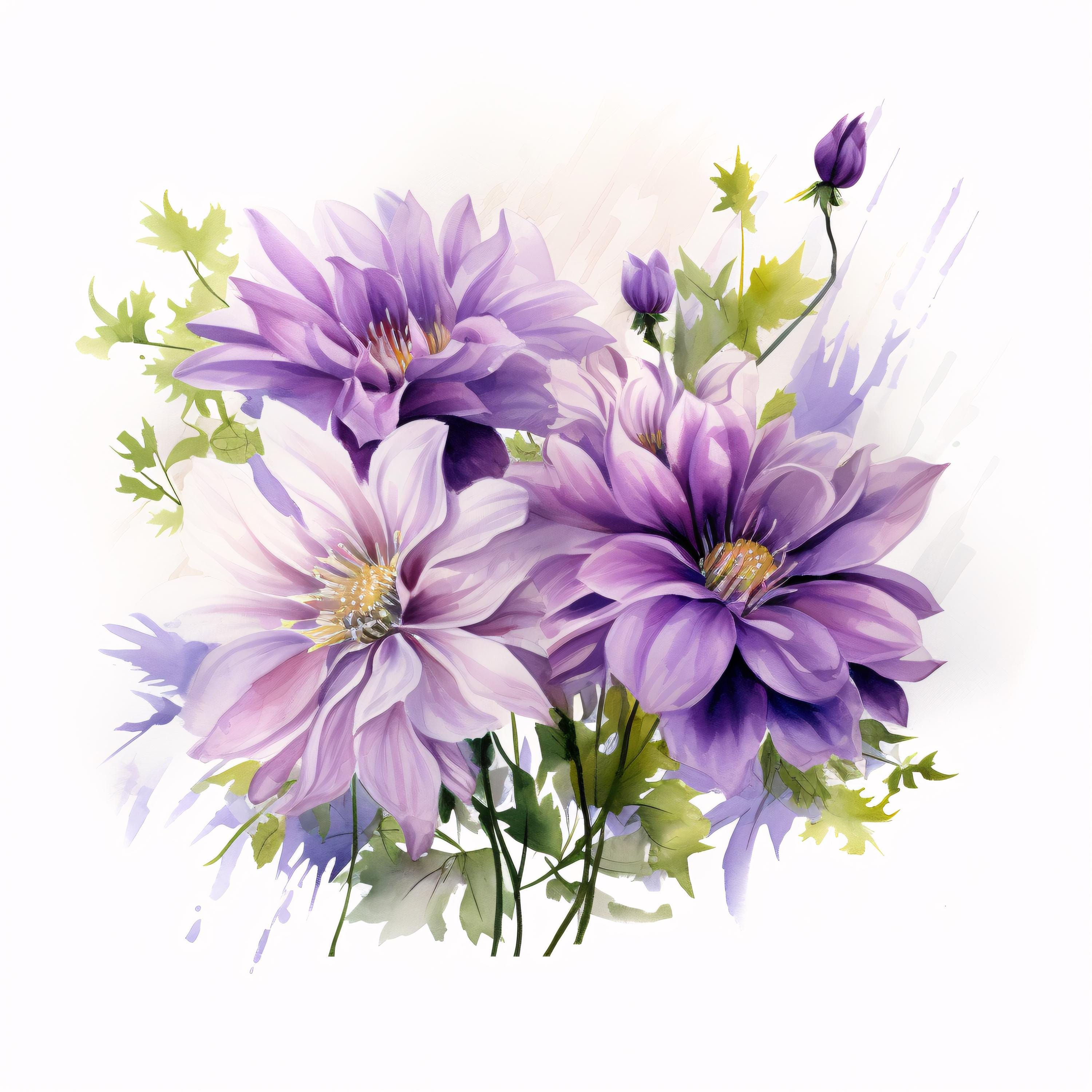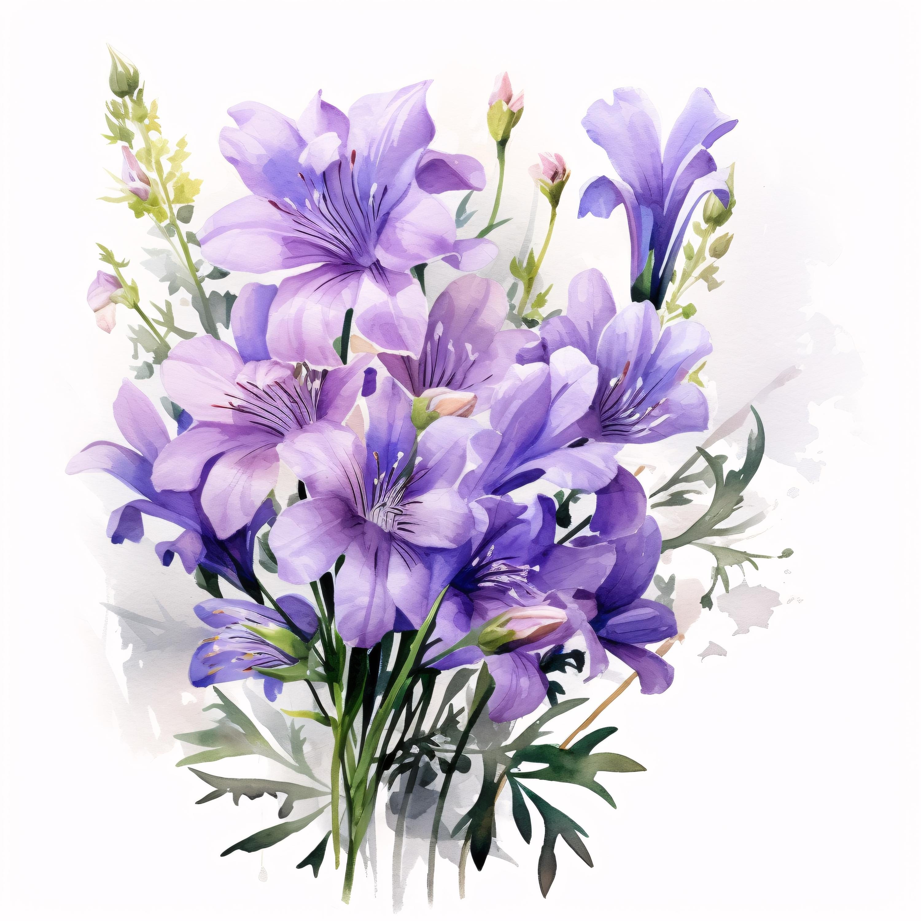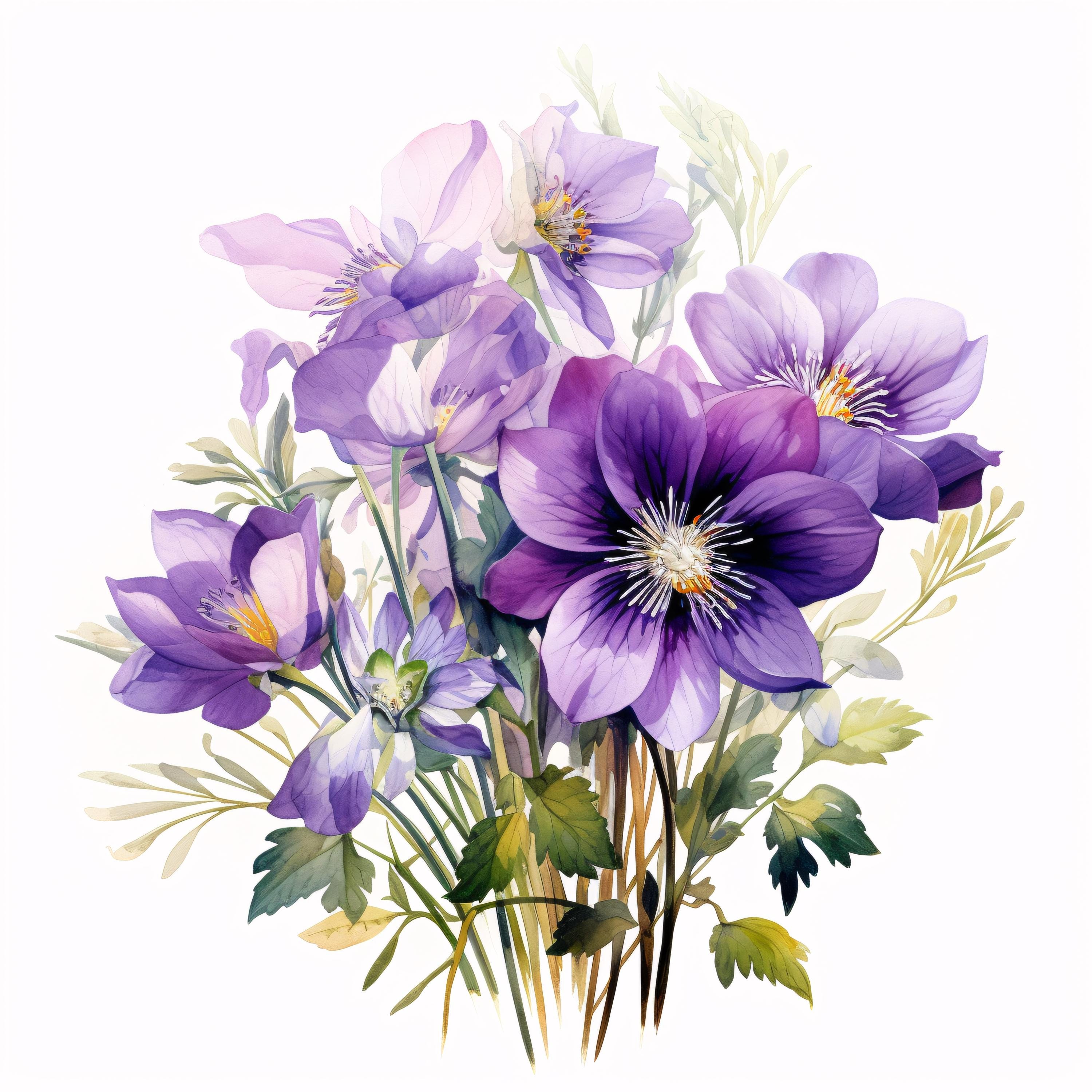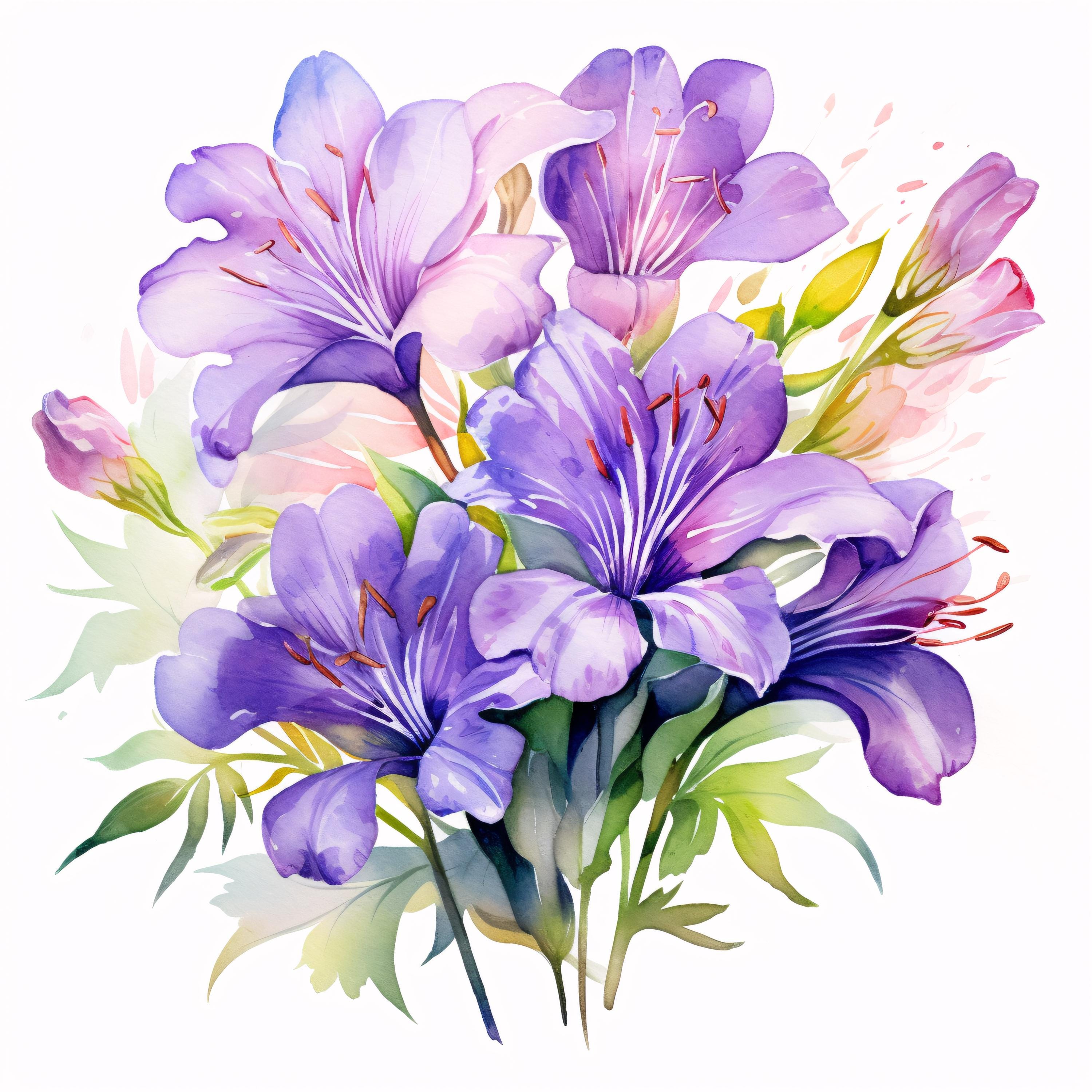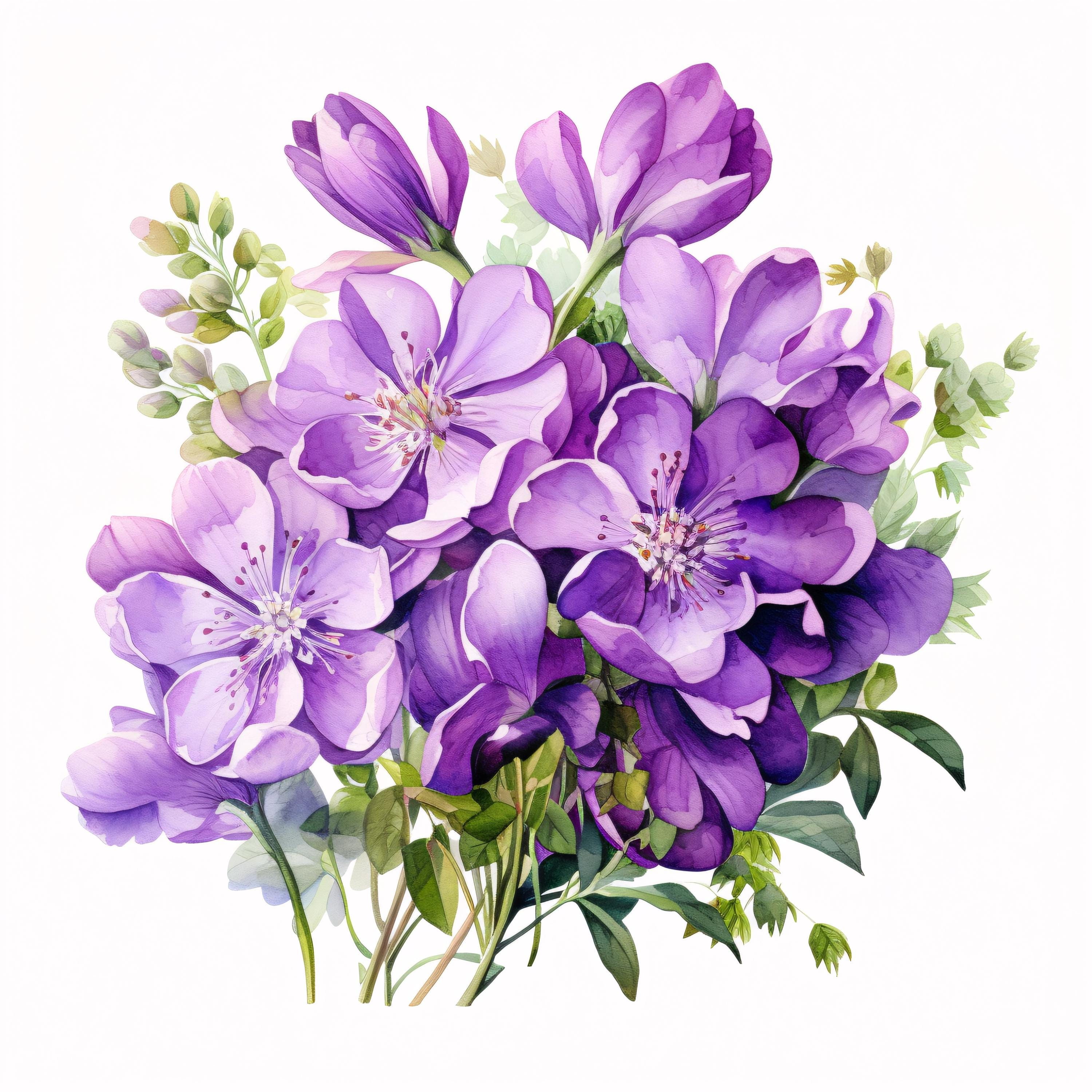 Purple Flower Bouquet Clipart, Bloom Images, 10 Watercolor Clip Art, Printable JPGs, Instant Download, Commercial Use, Paper craft